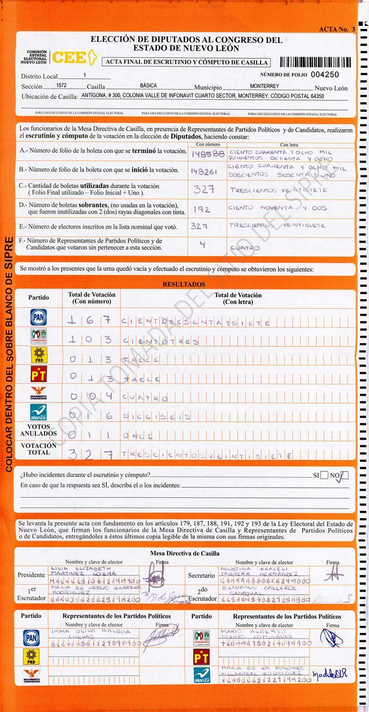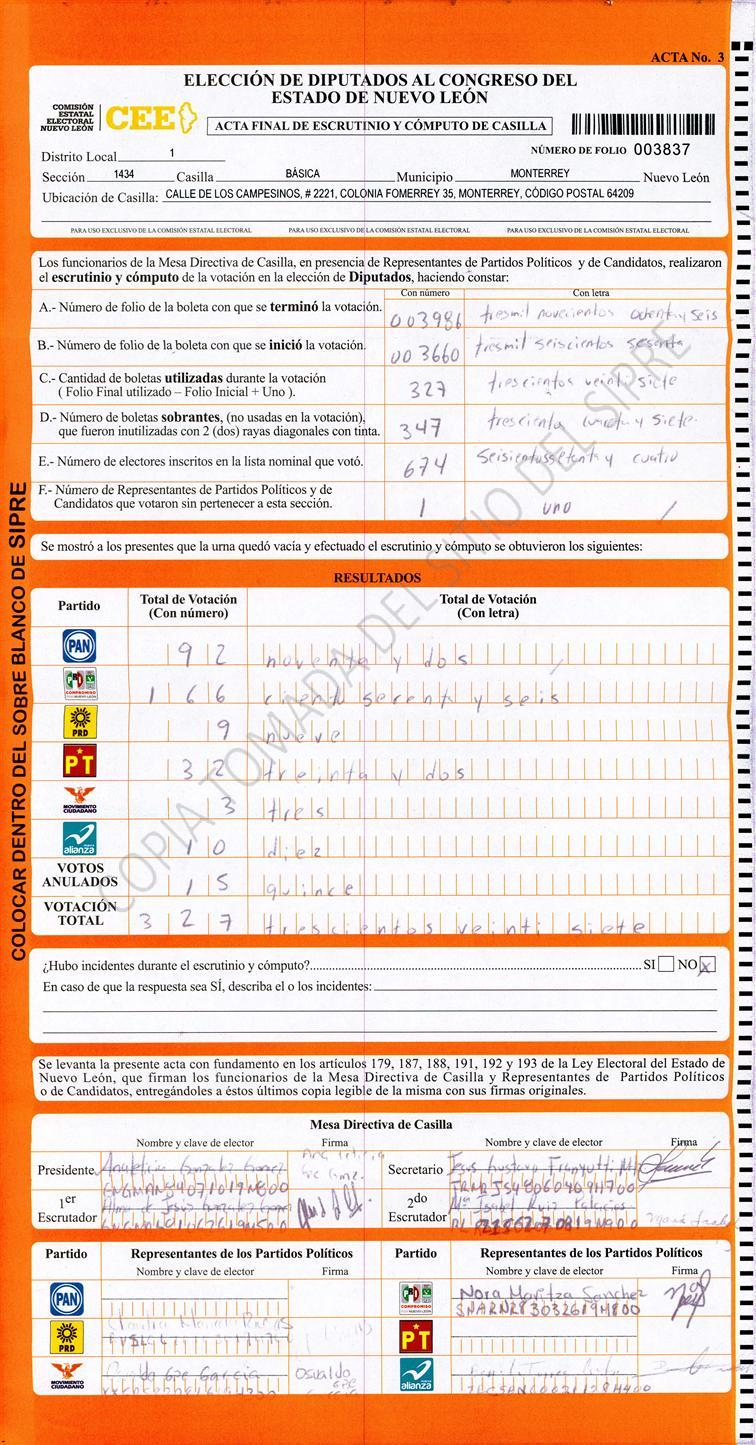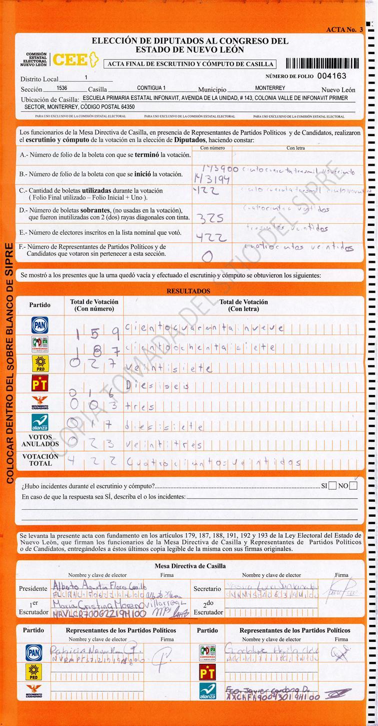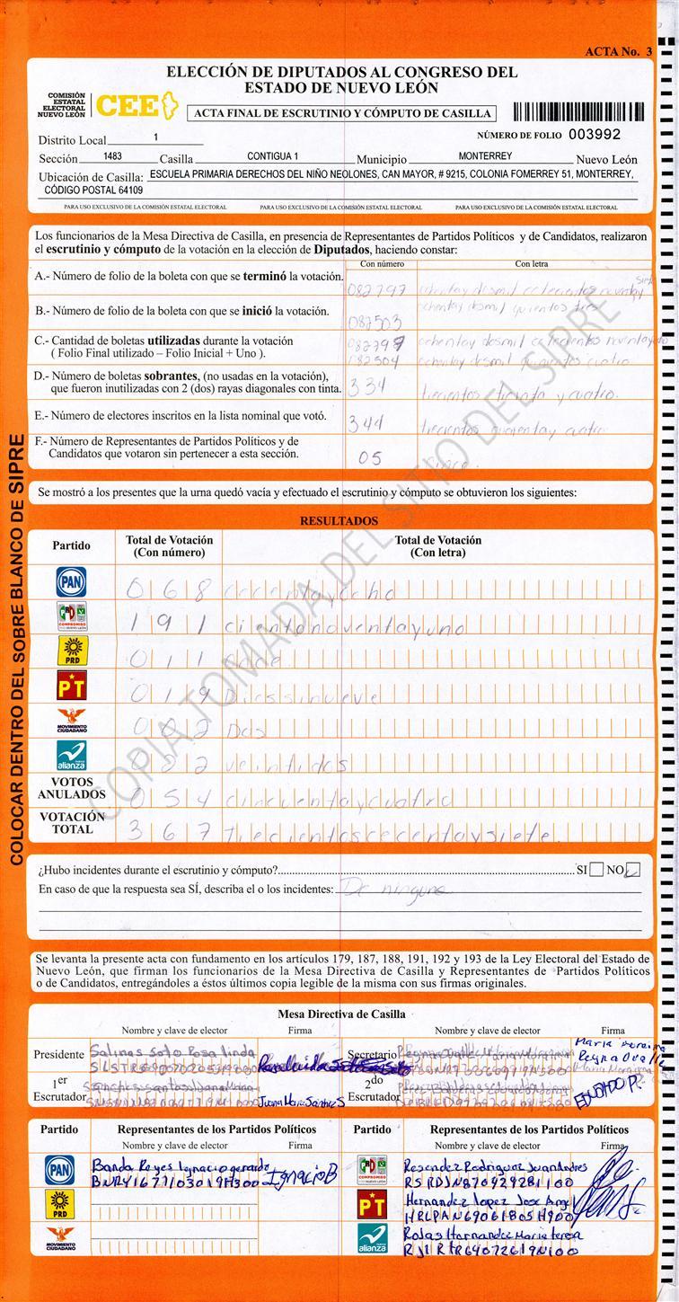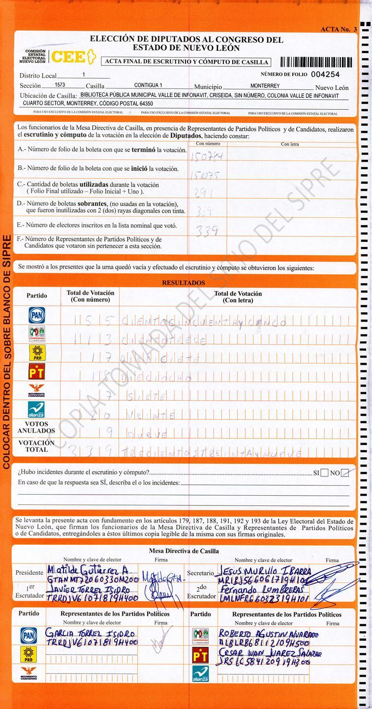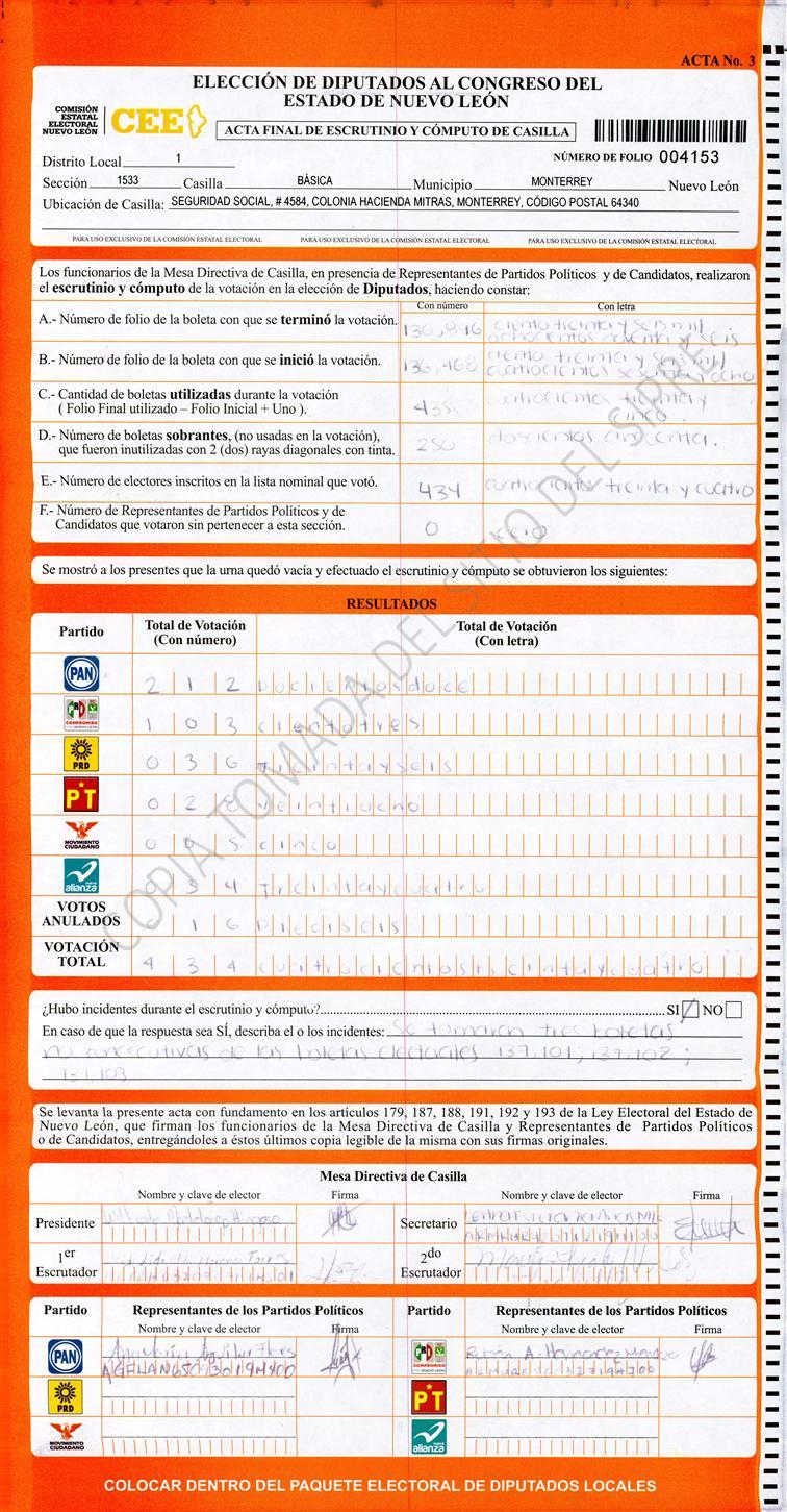 Diputados Locales, Primer Distrito |