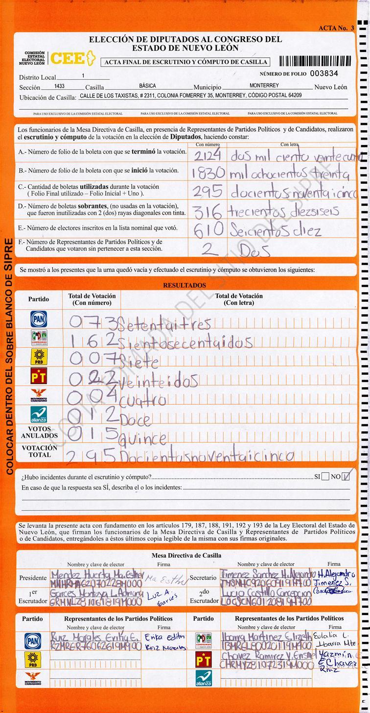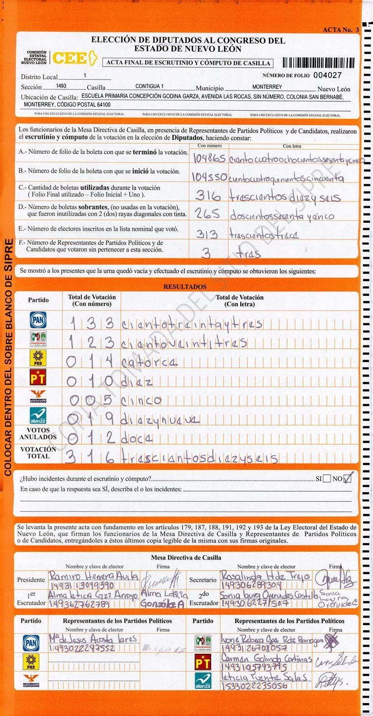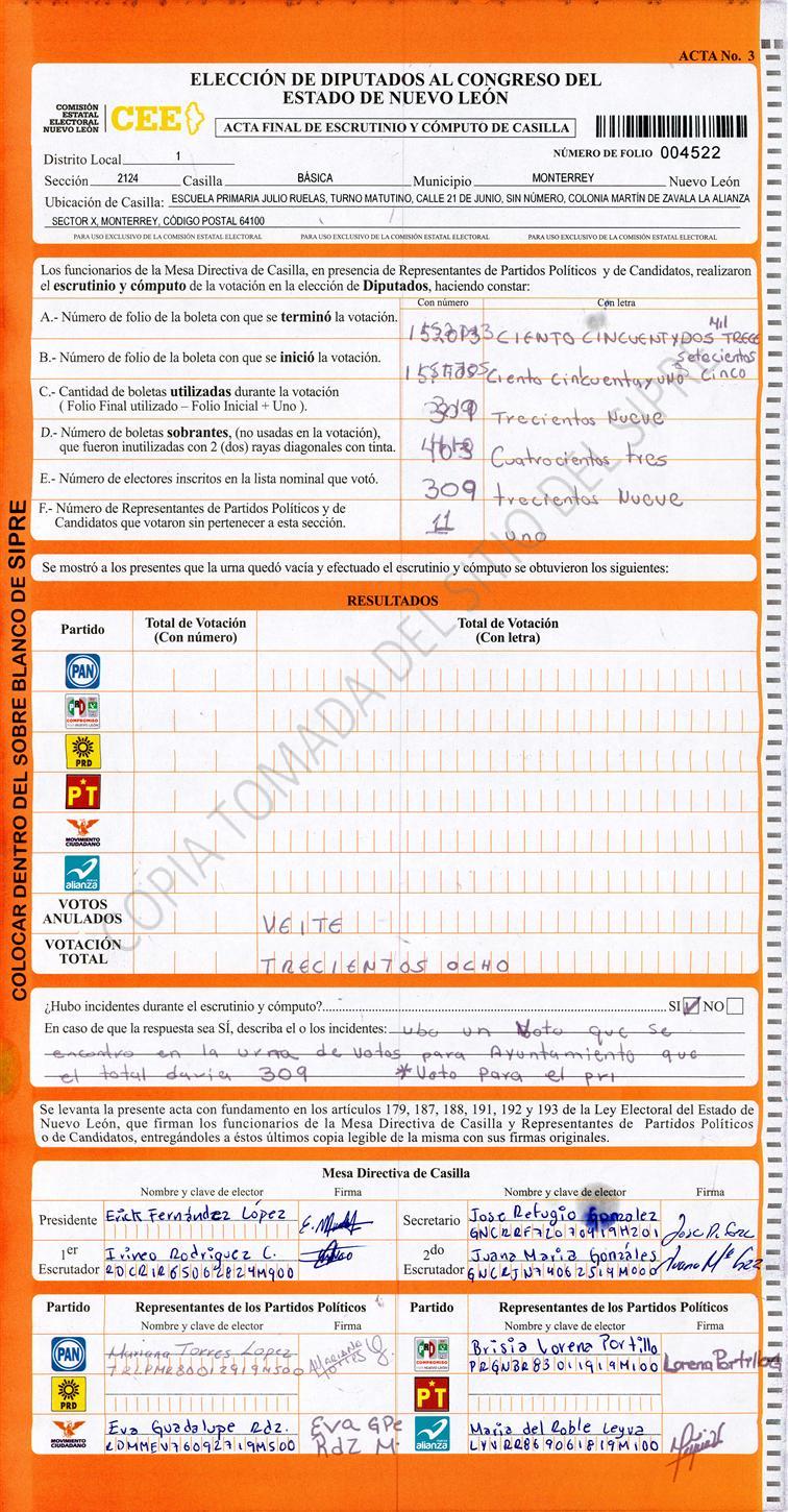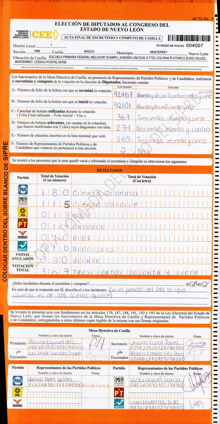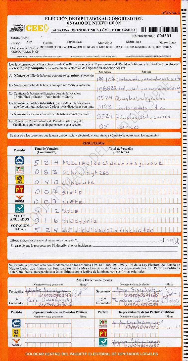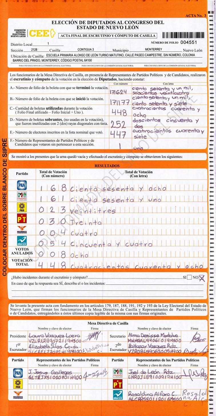 Diputados Locales, Primer Distrito |