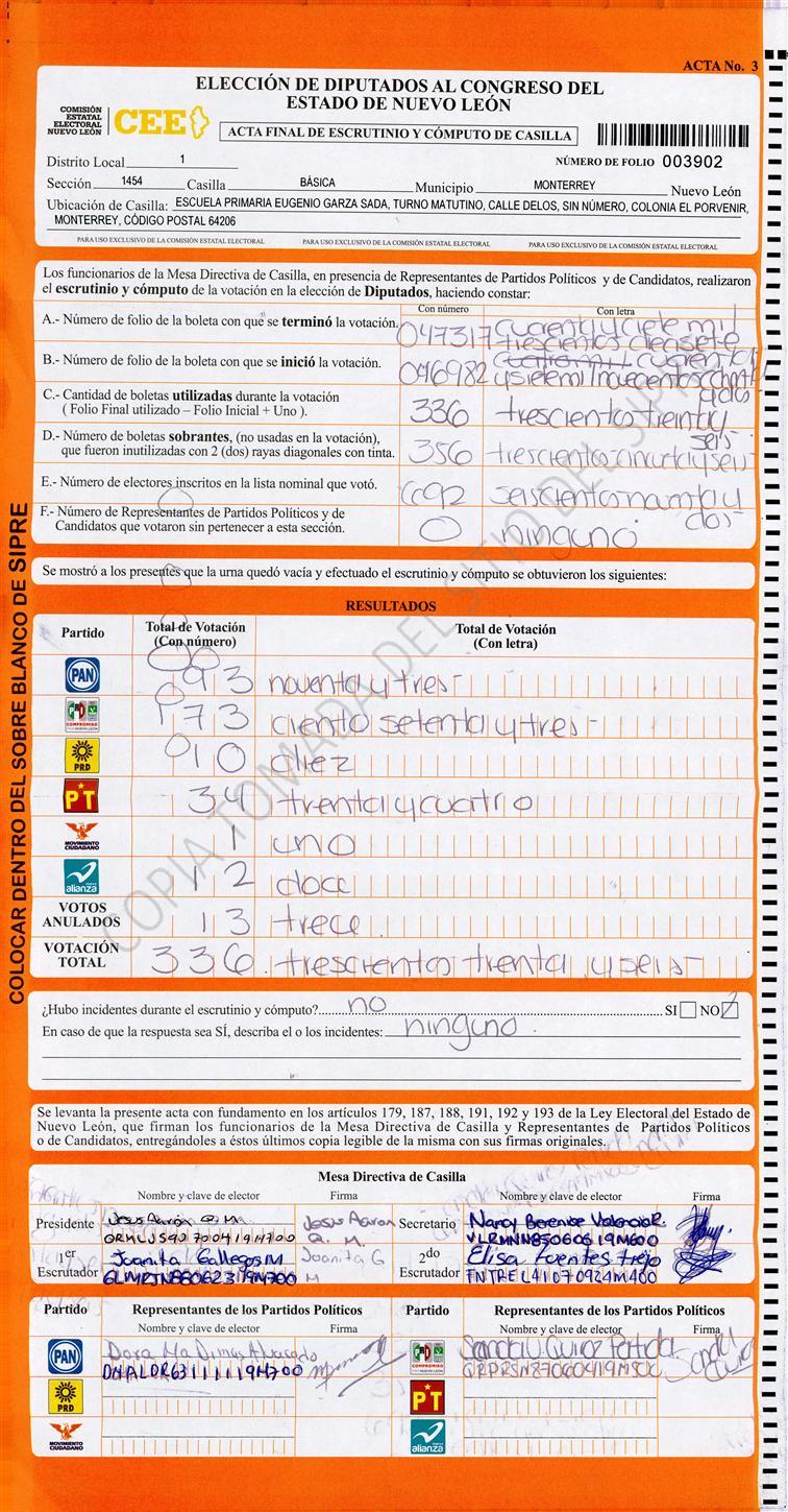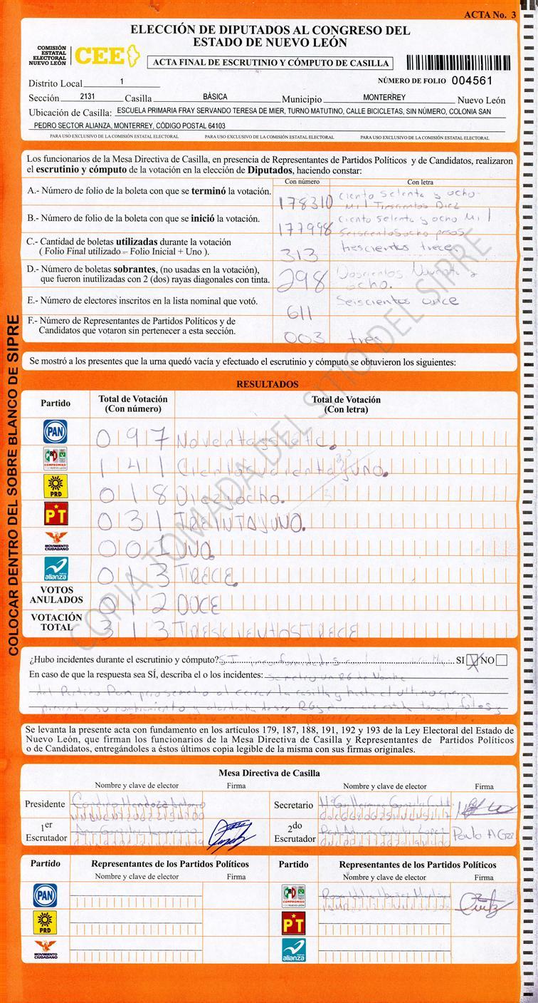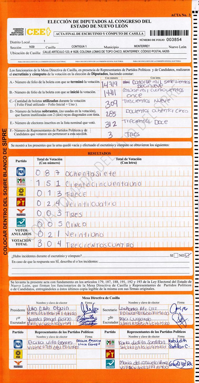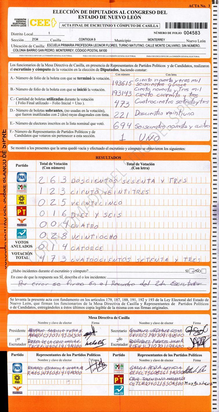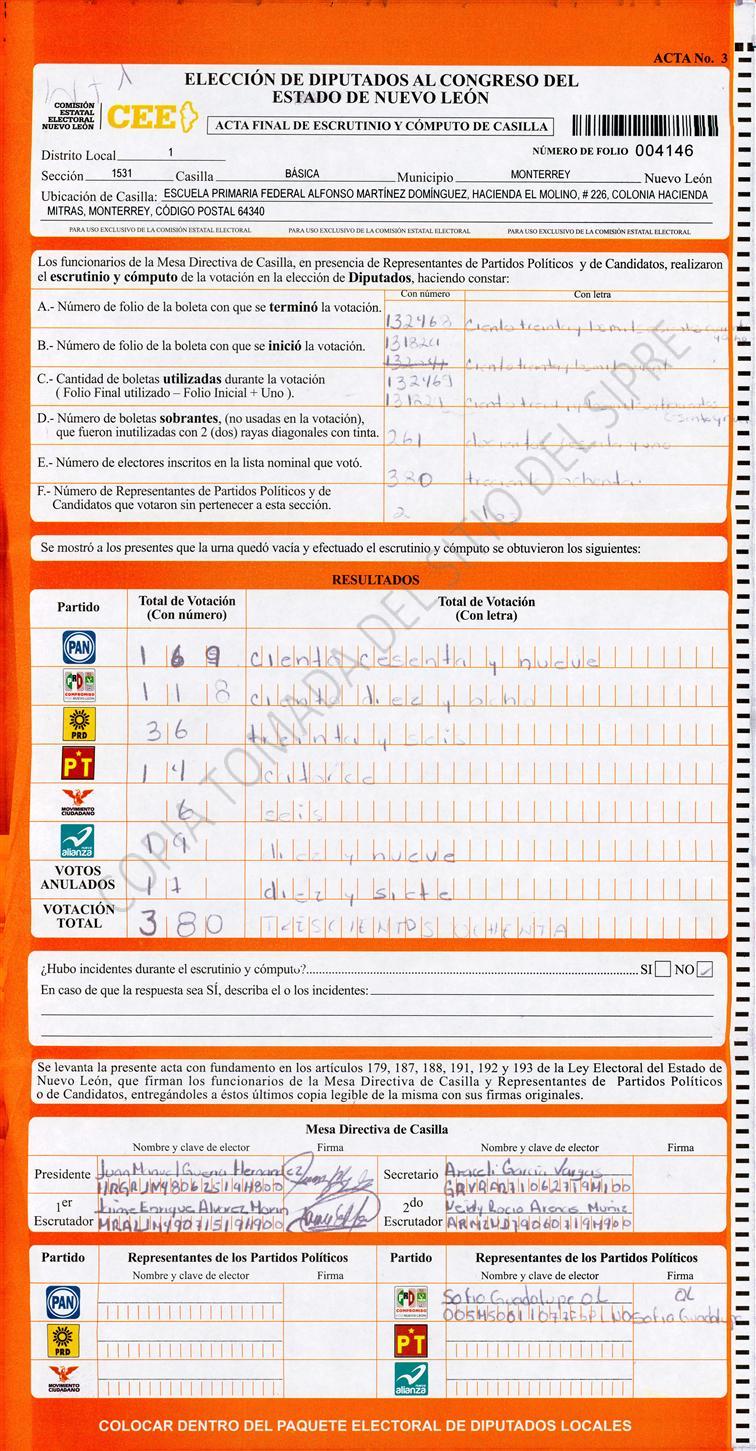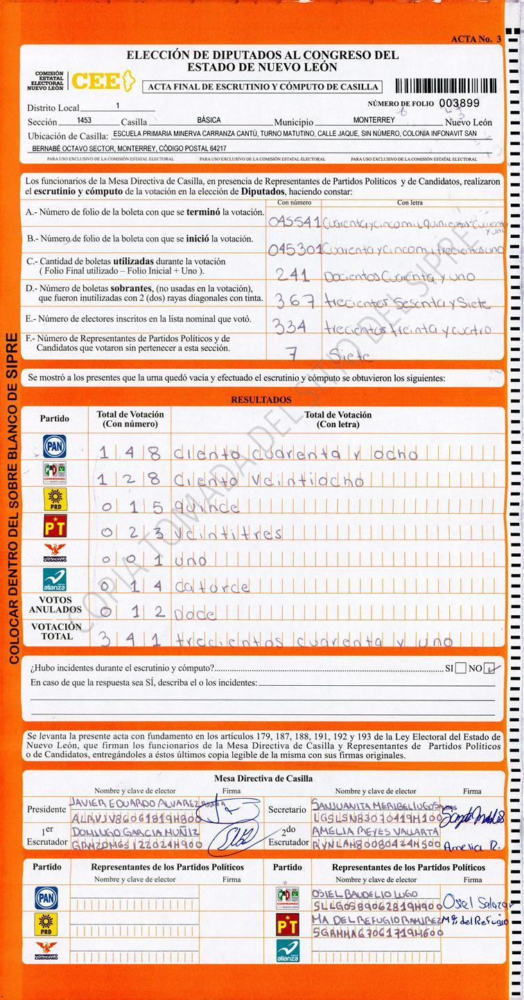 Diputados Locales, Primer Distrito |