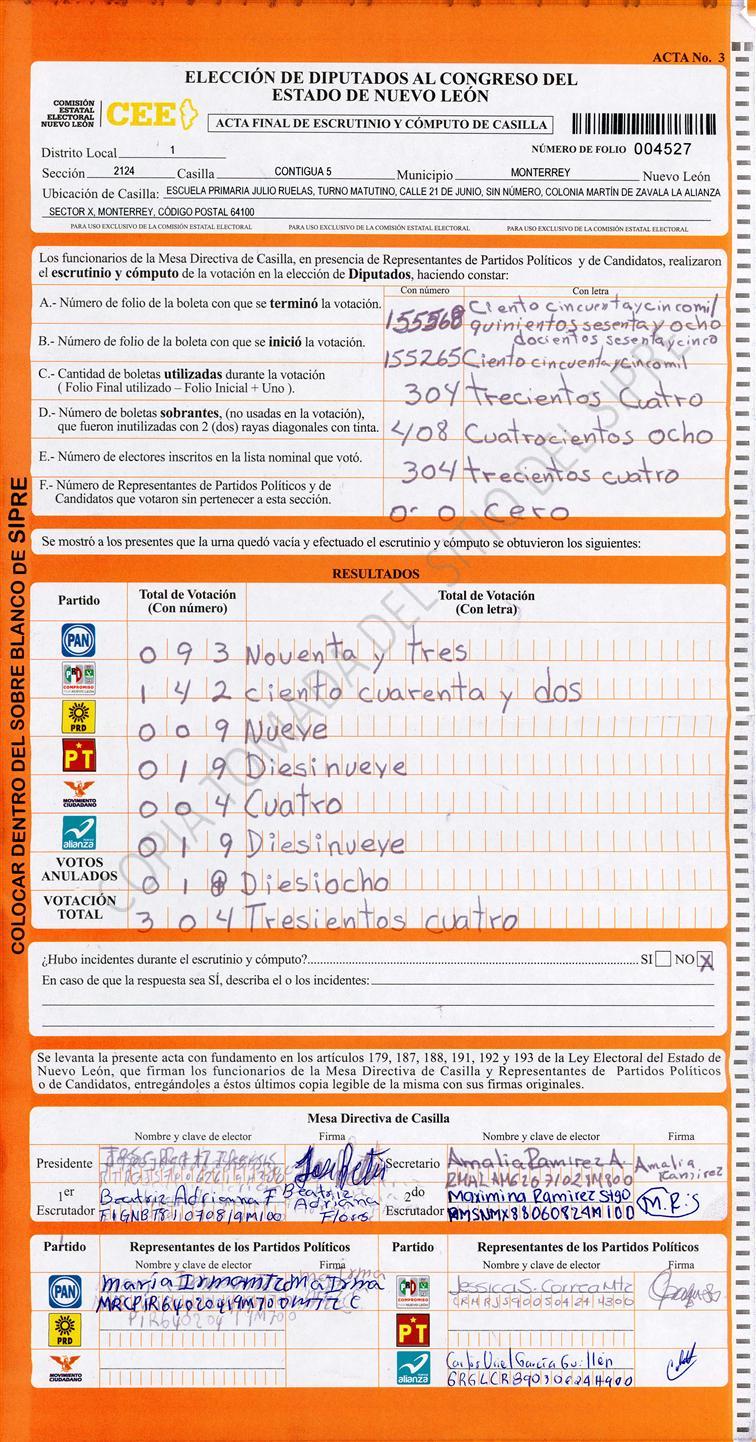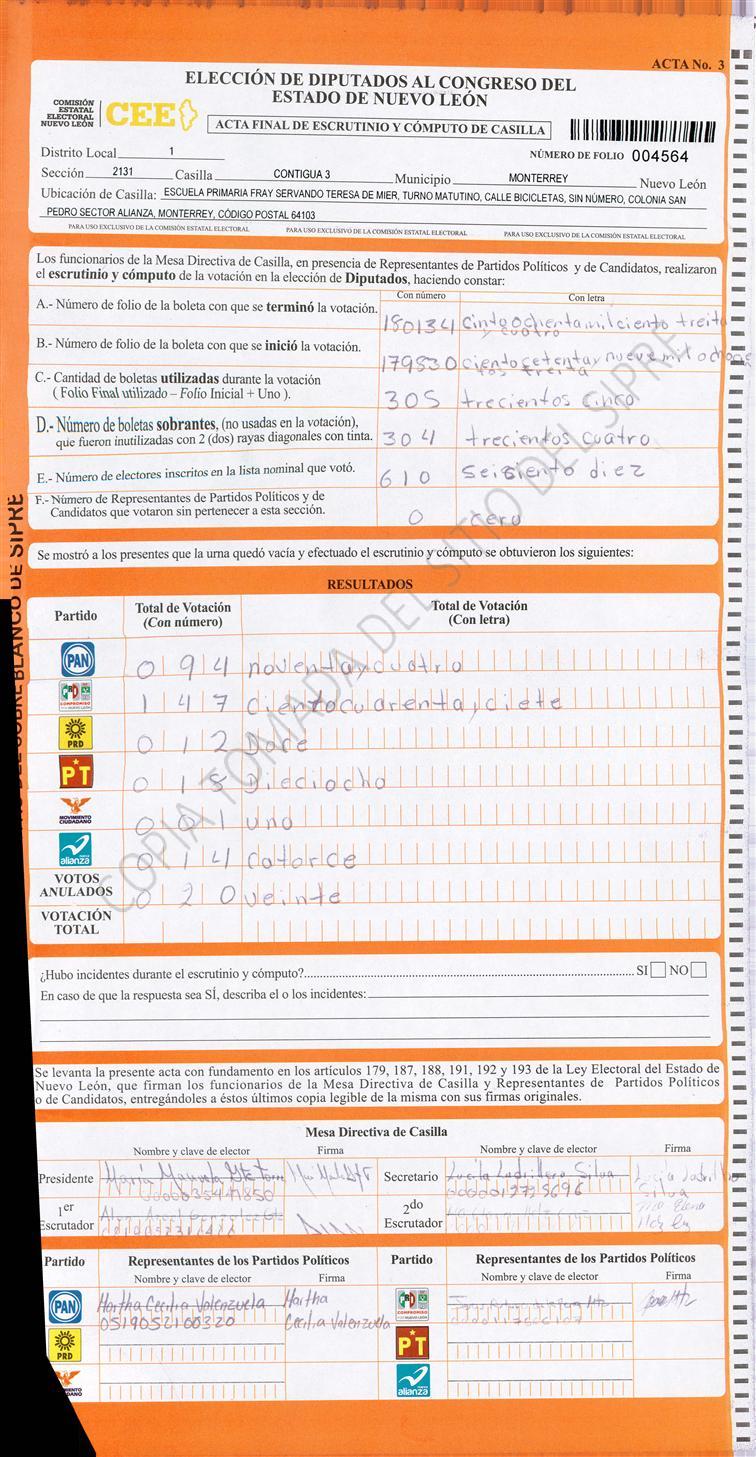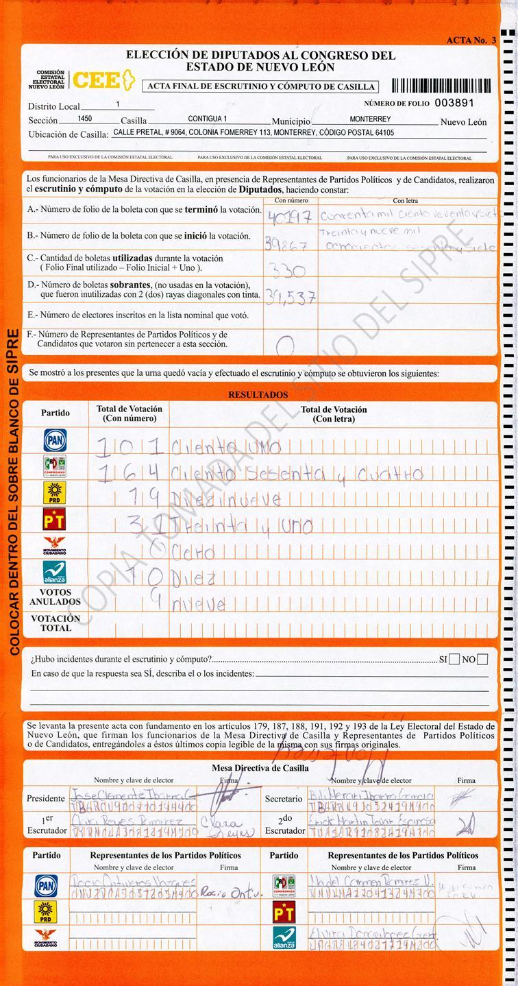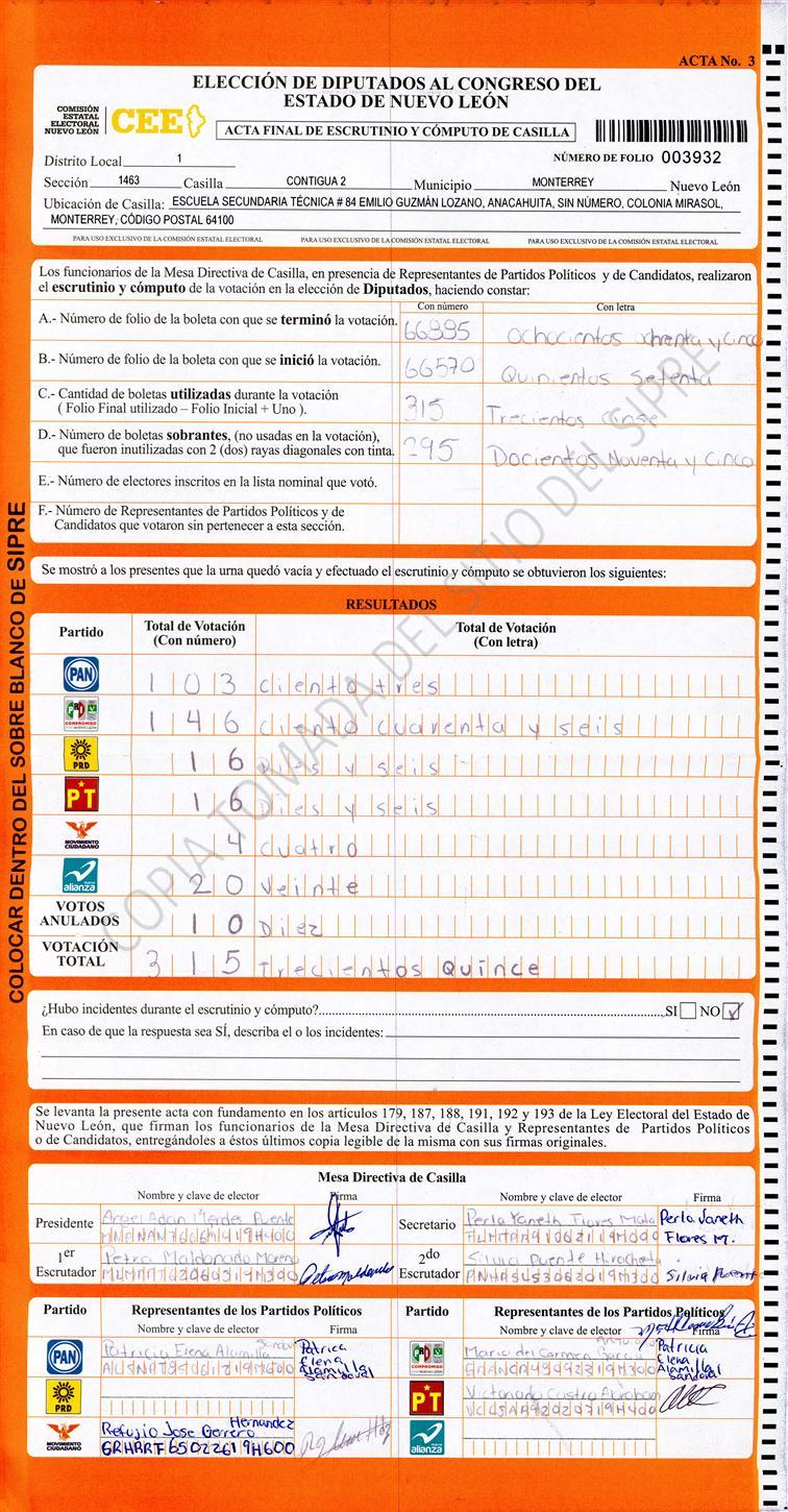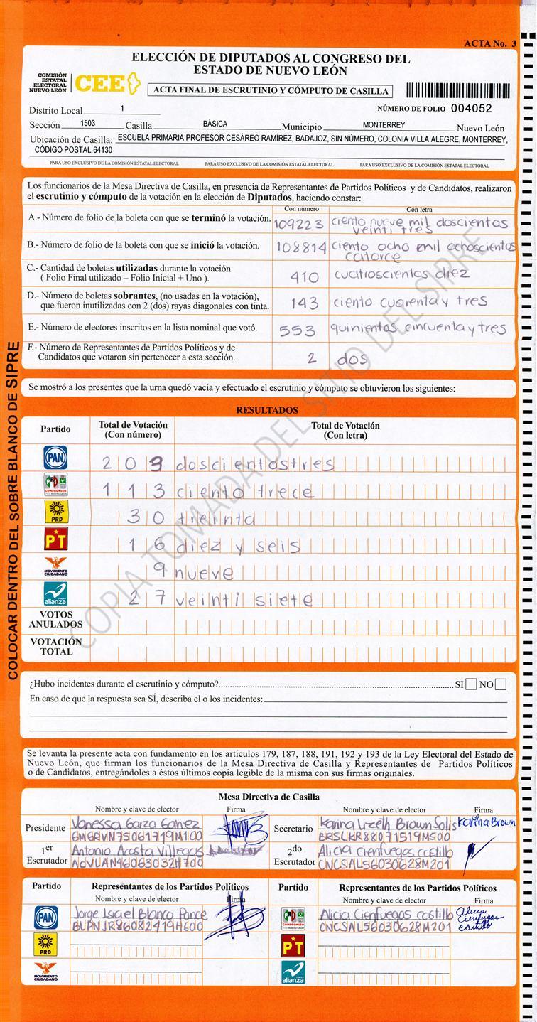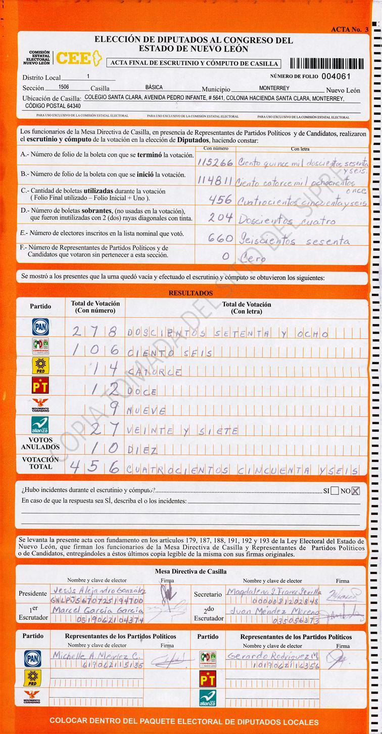 Diputados Locales, Primer Distrito |