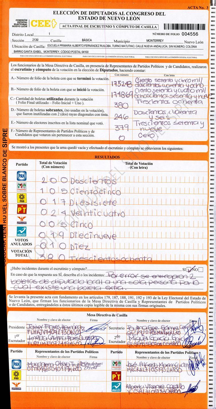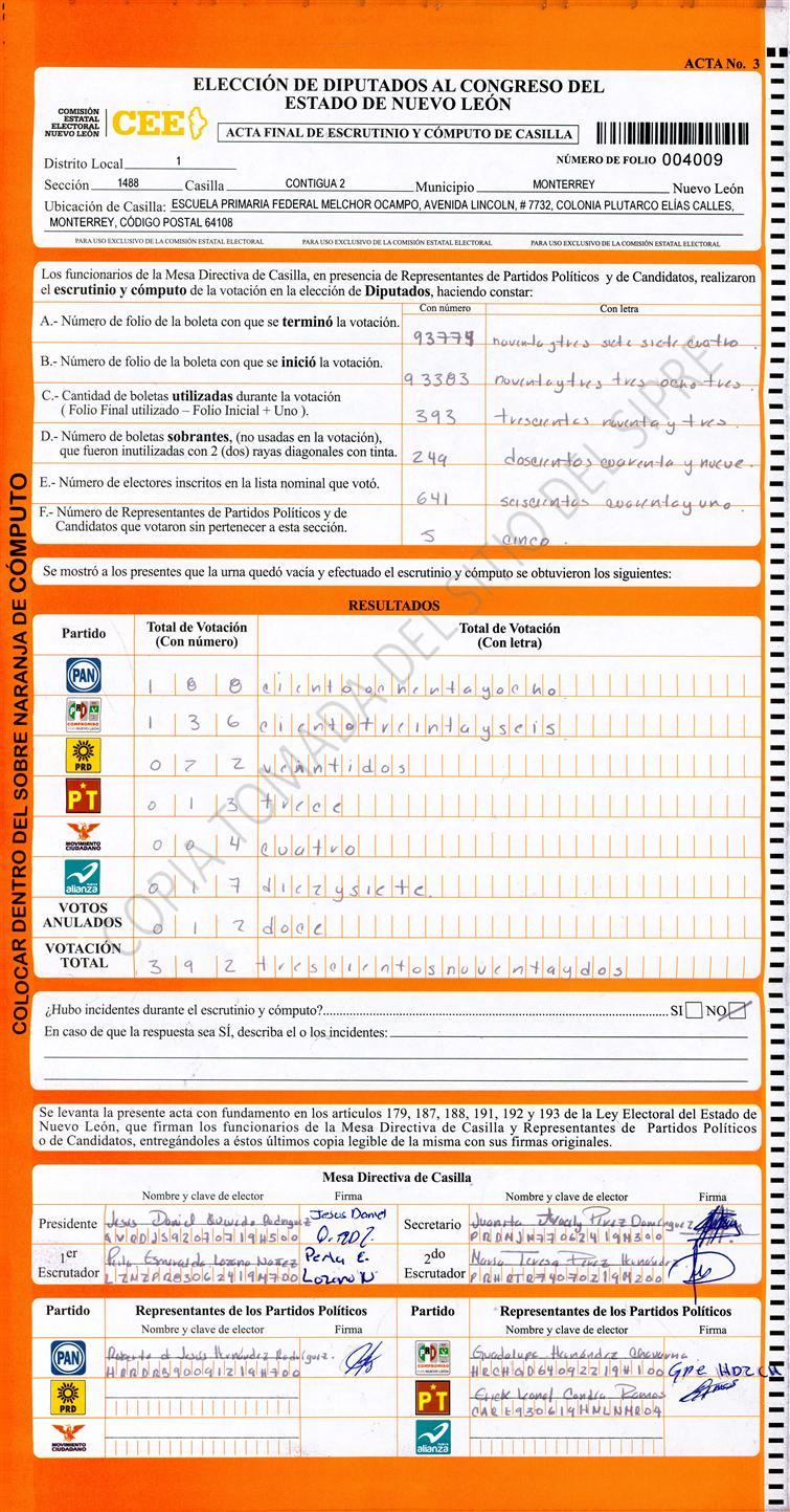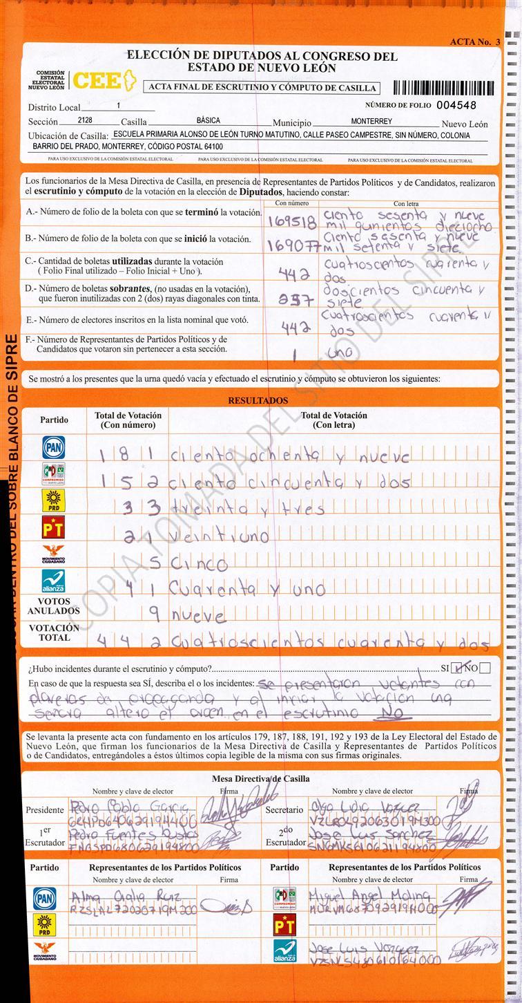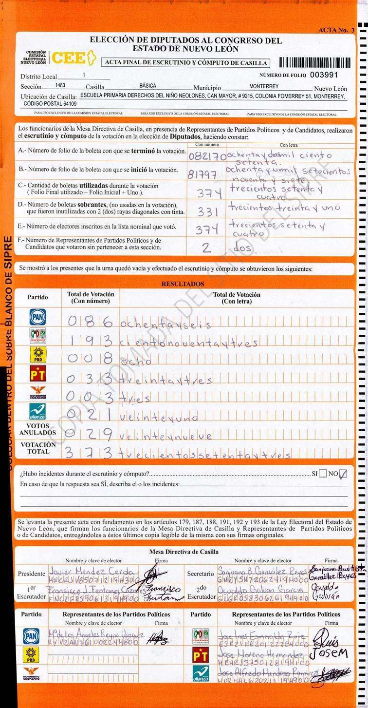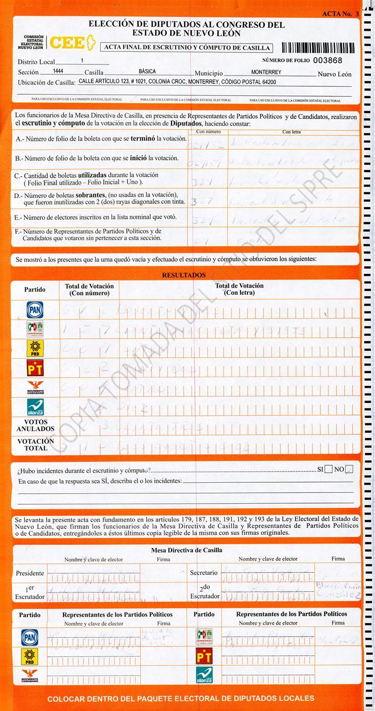Diputados Locales, Primer Distrito |