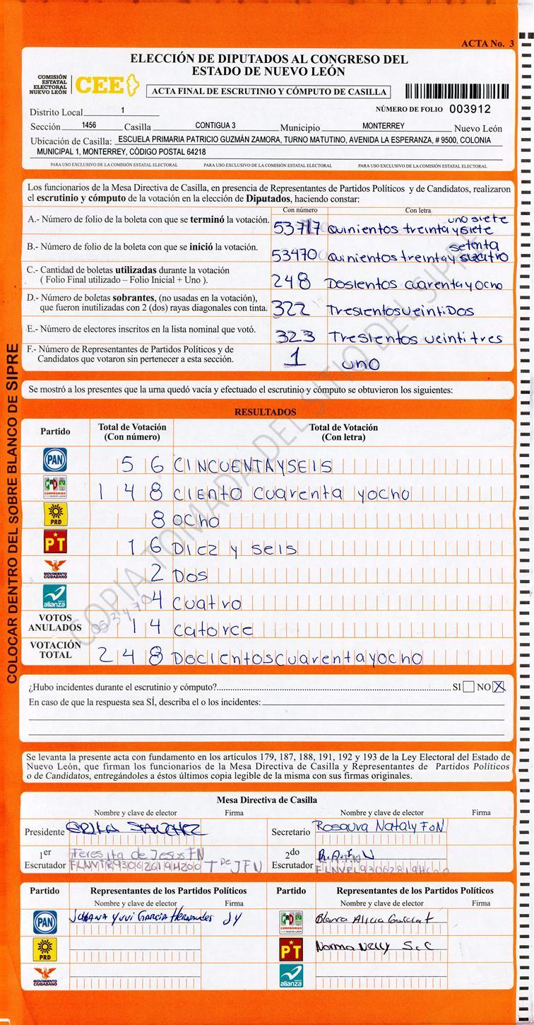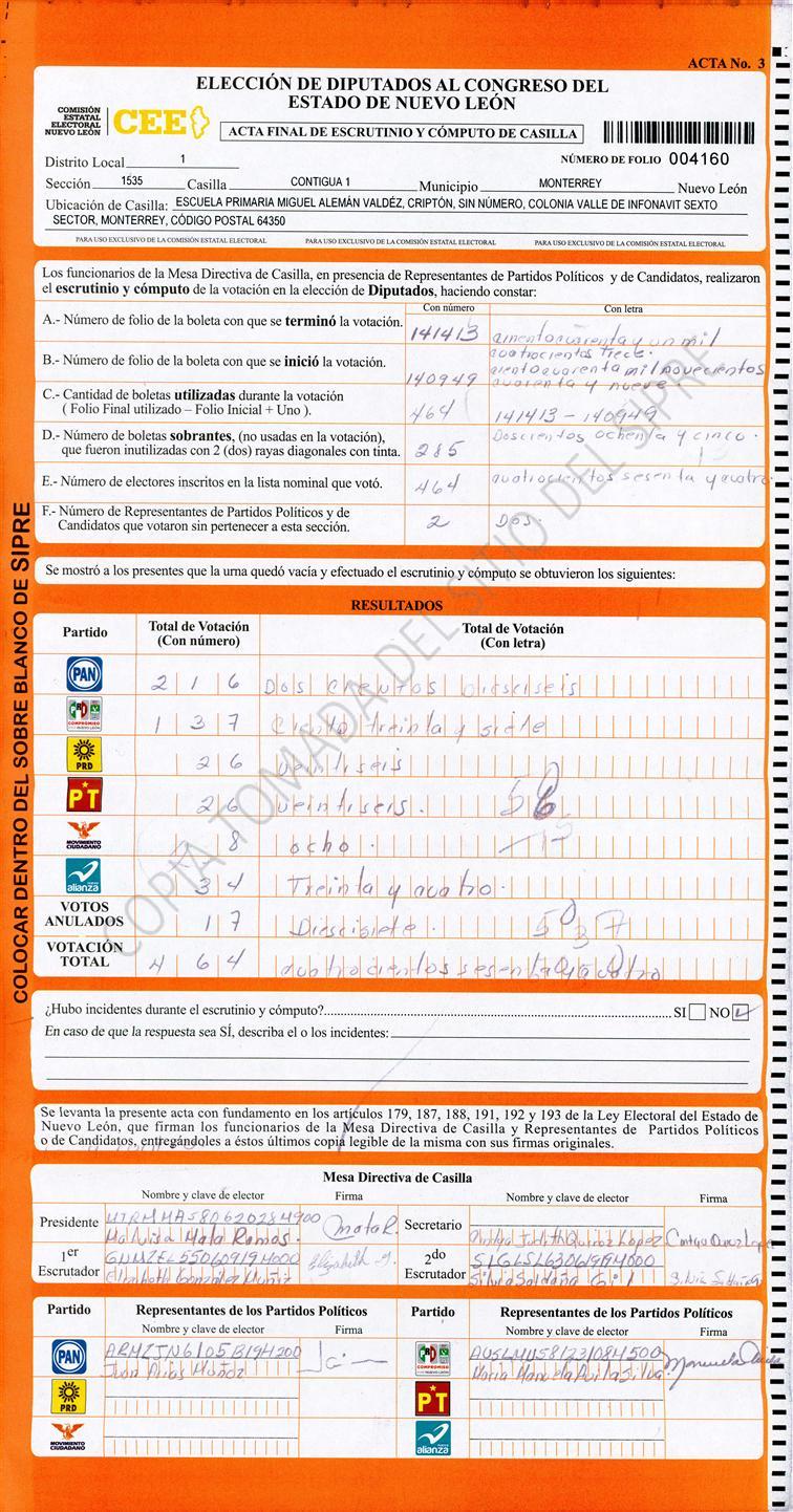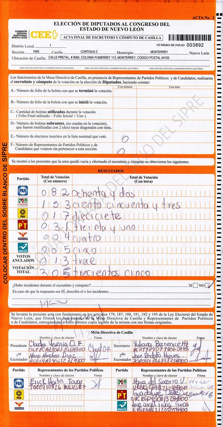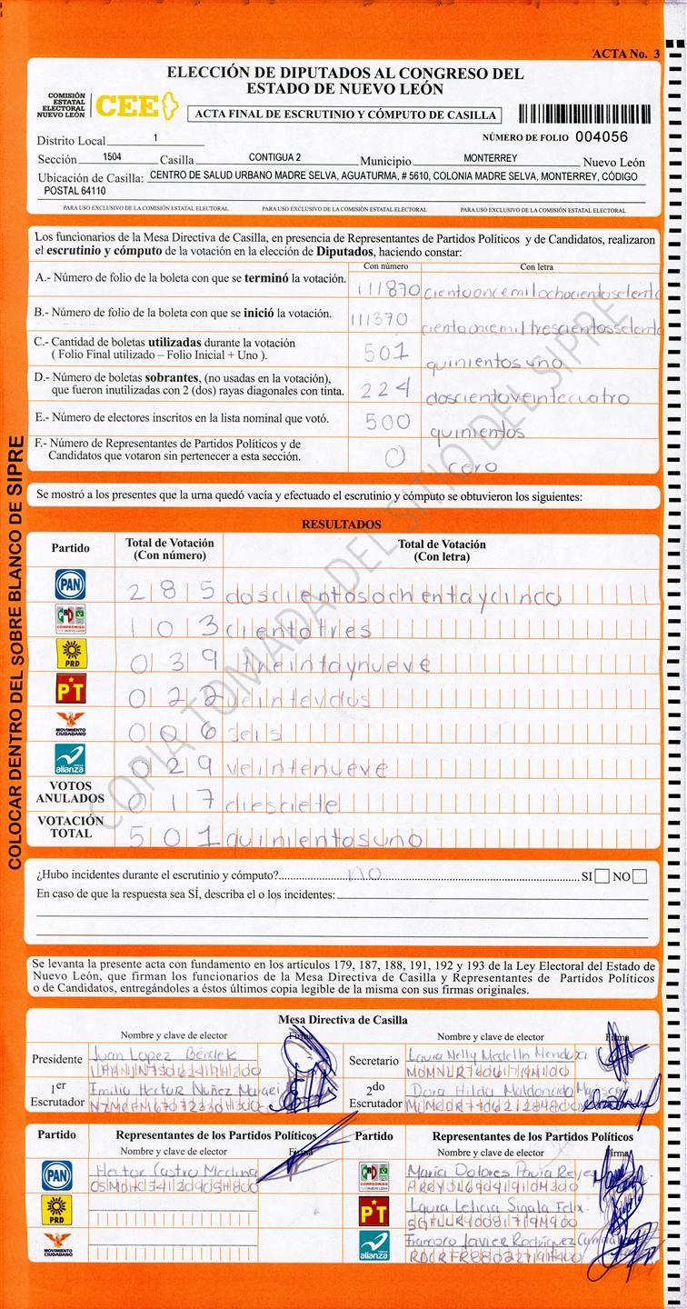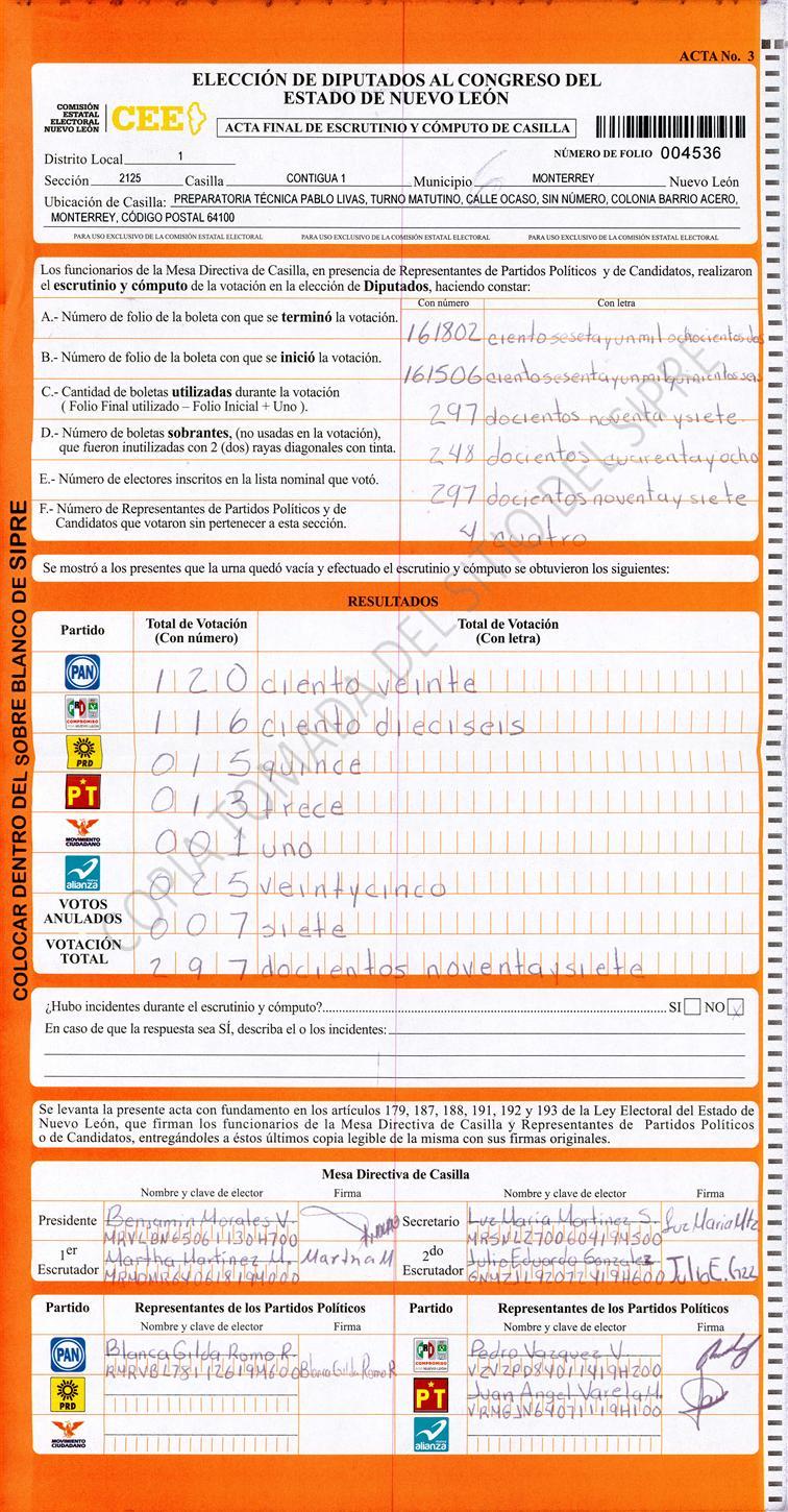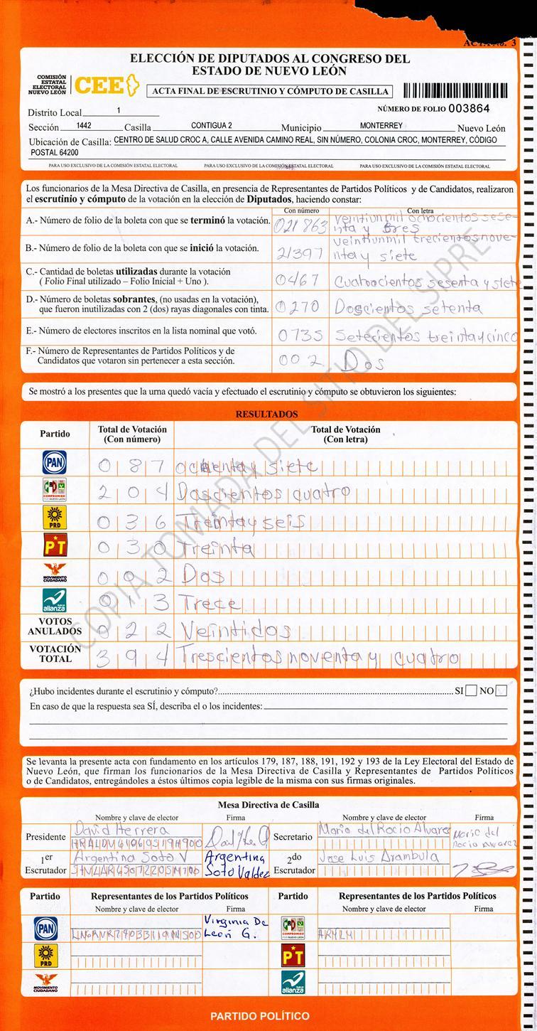 Diputados Locales, Primer Distrito |