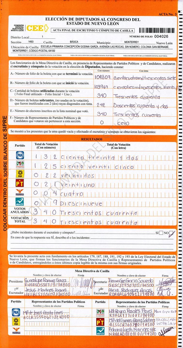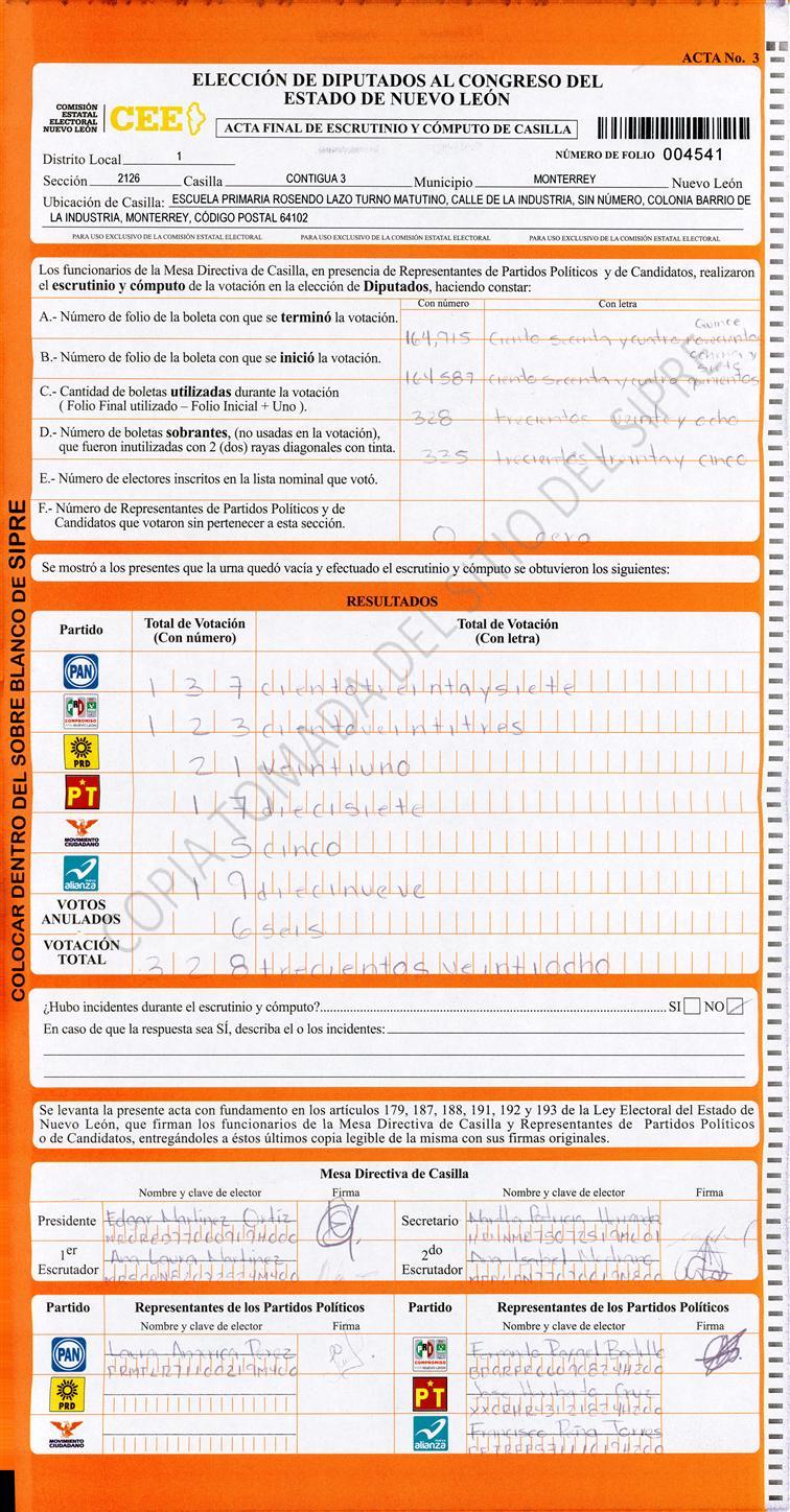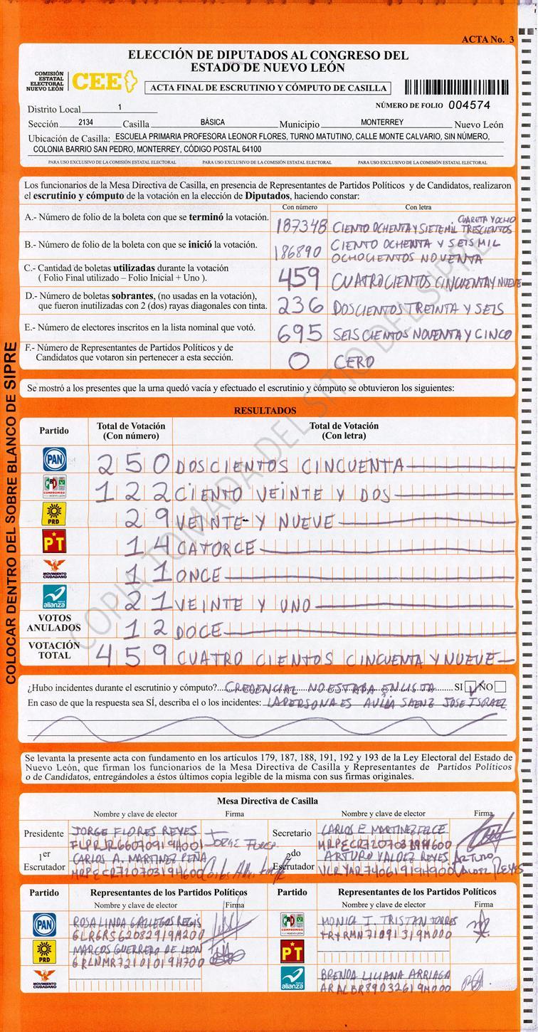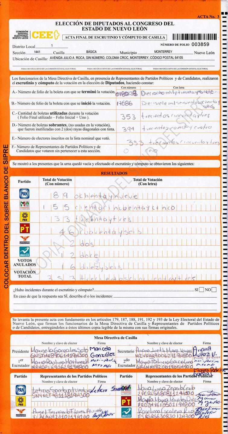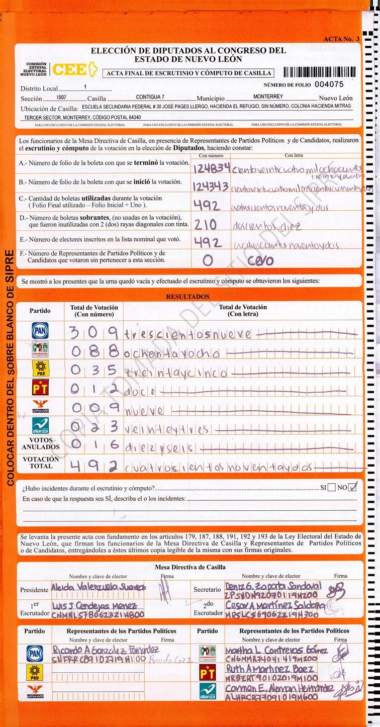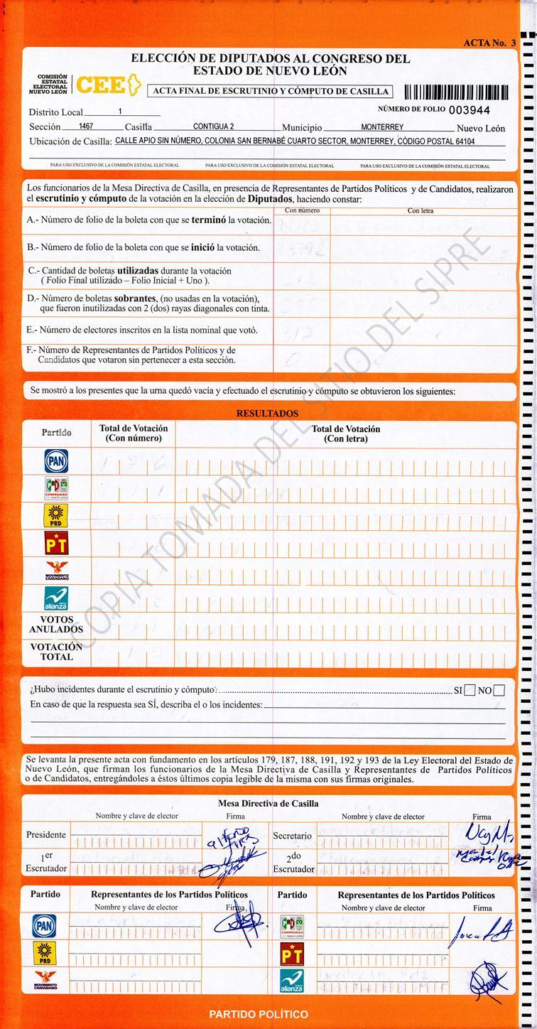 Diputados Locales, Primer Distrito |