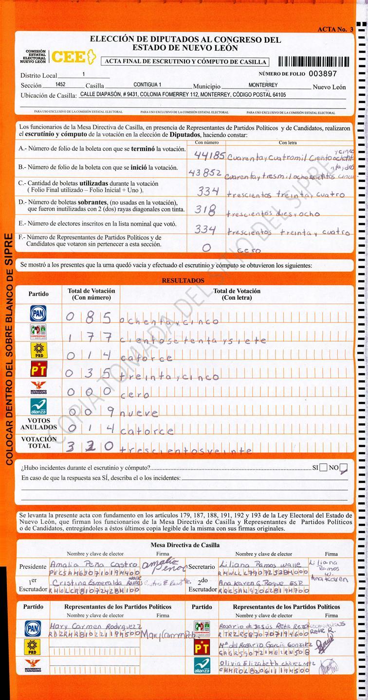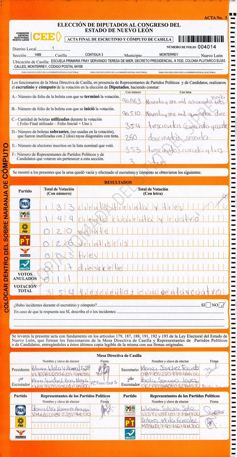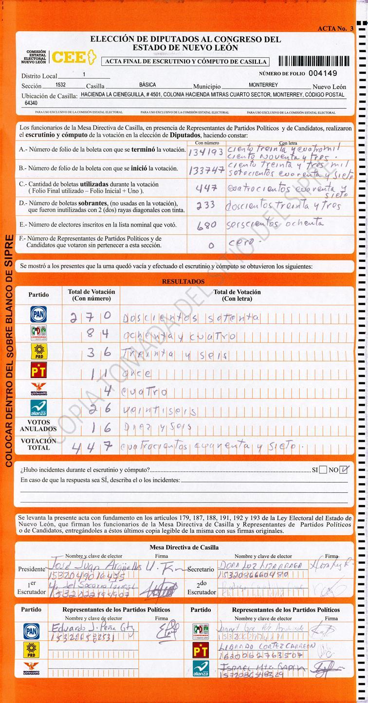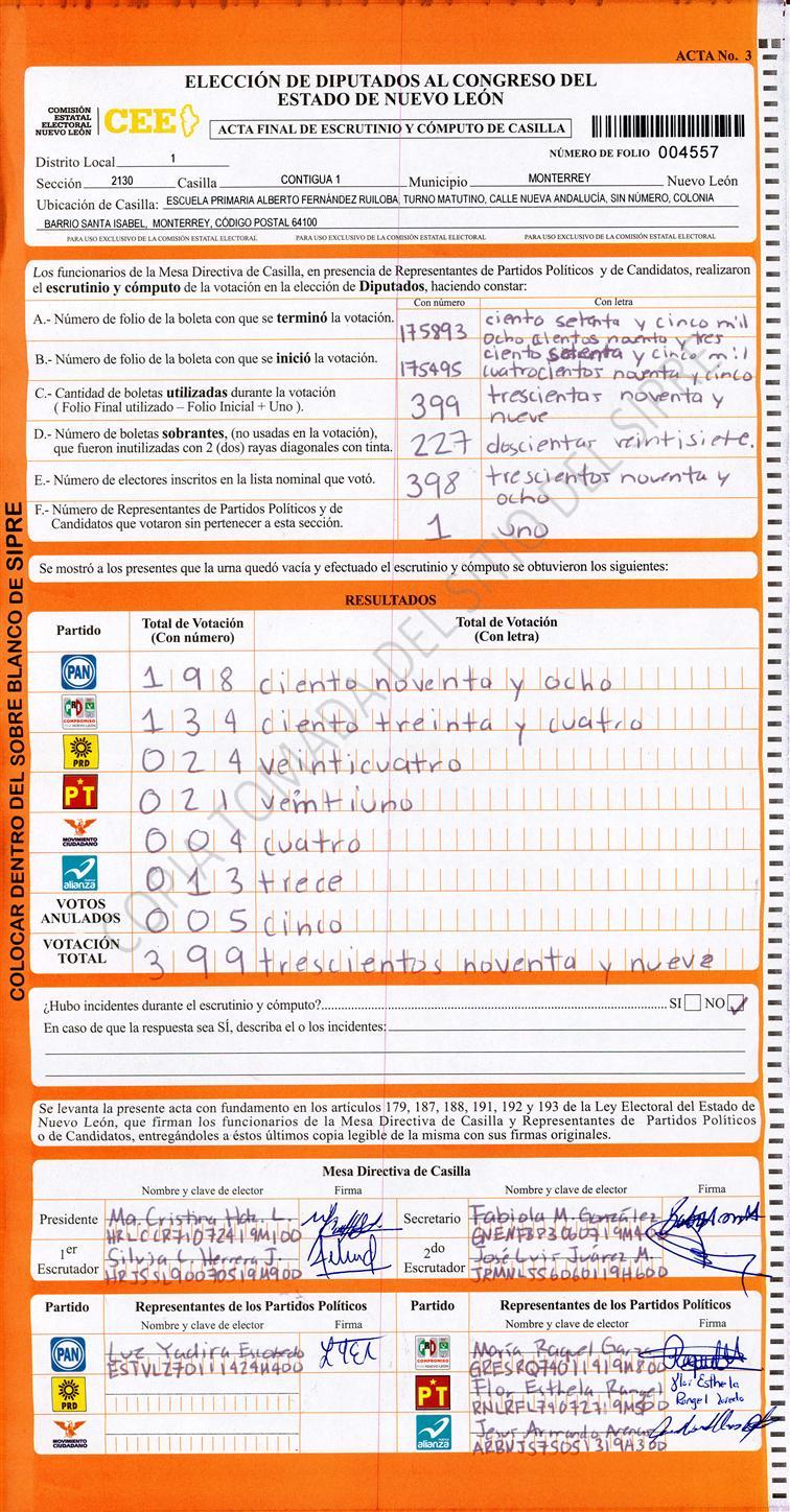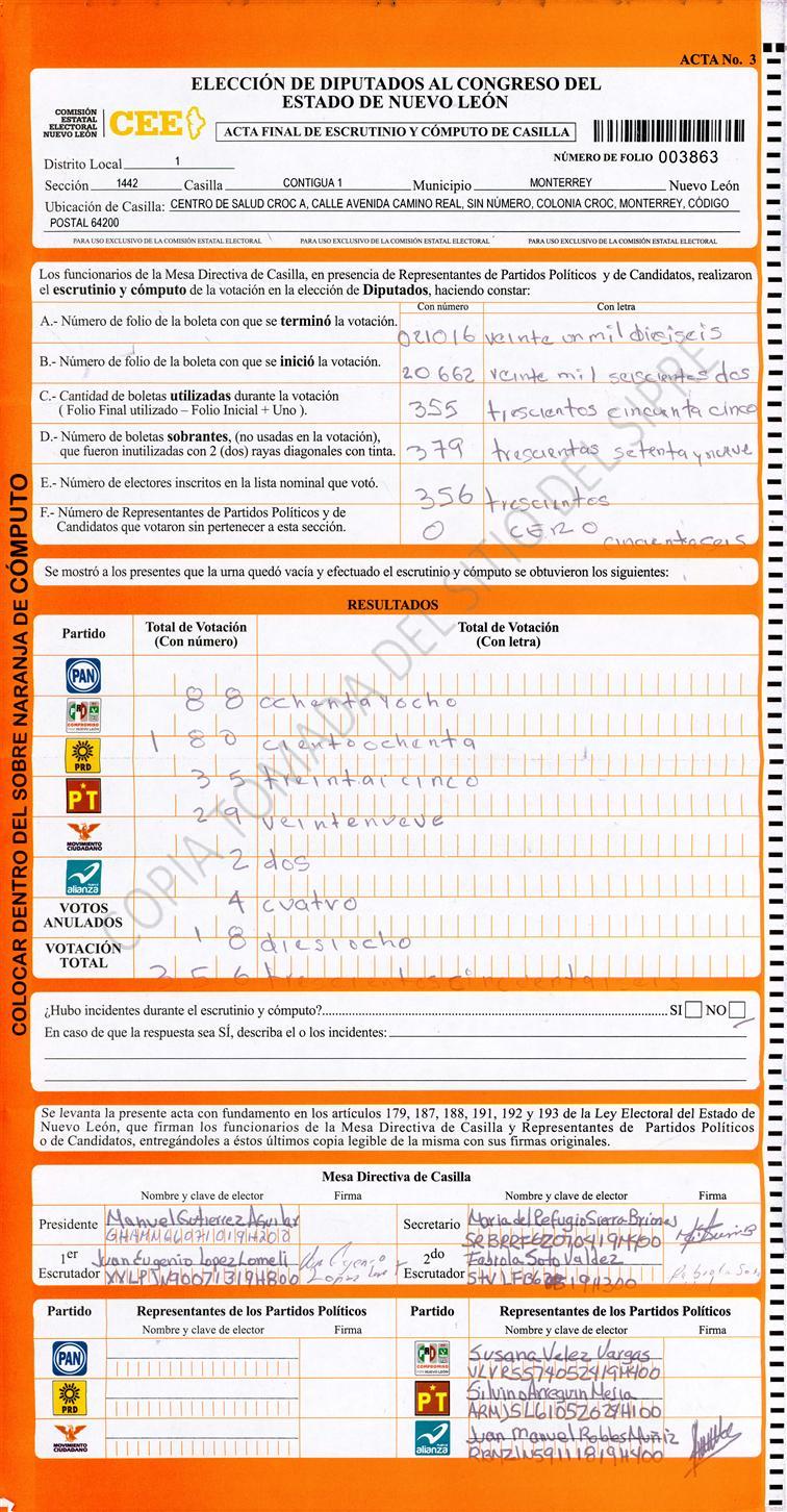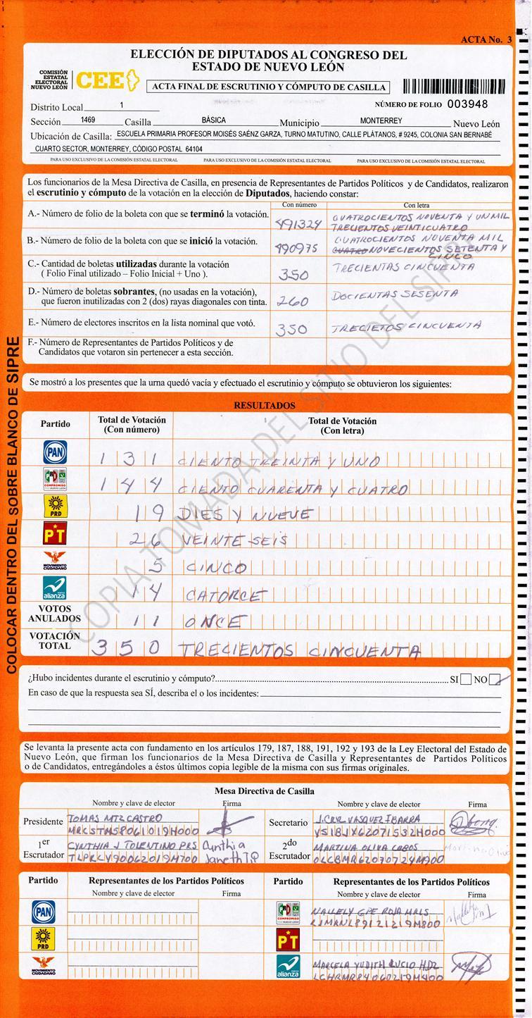 Diputados Locales, Primer Distrito |