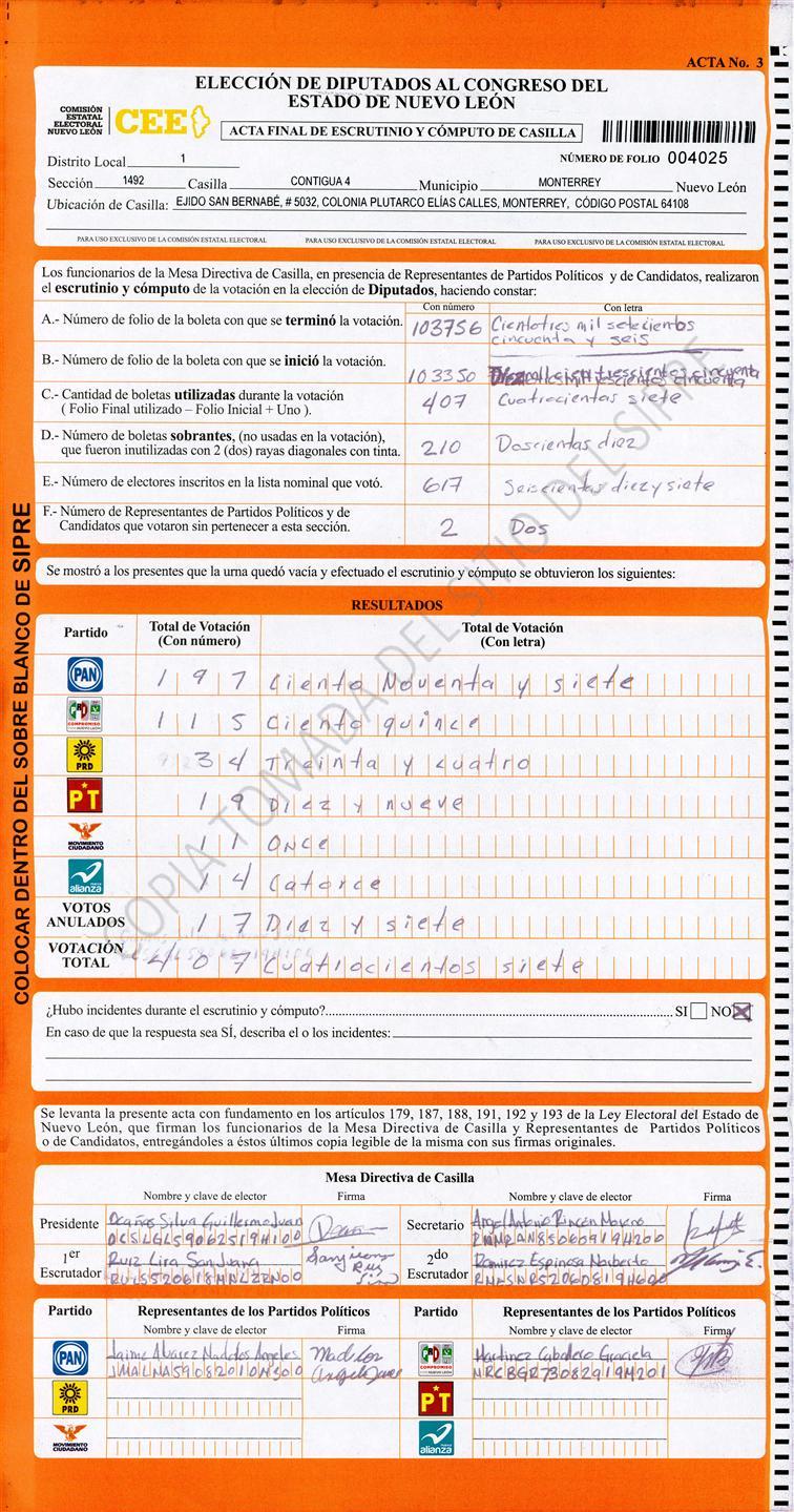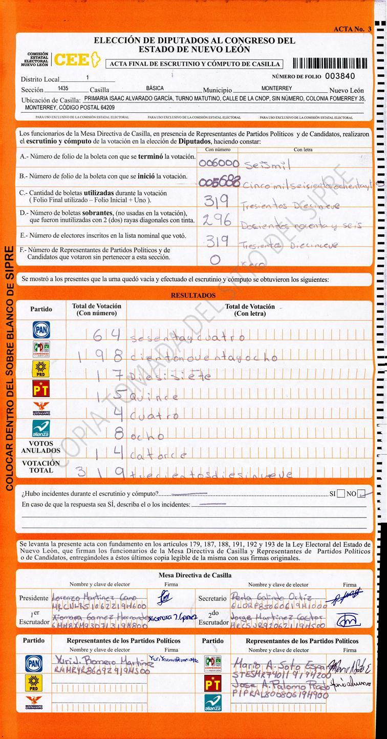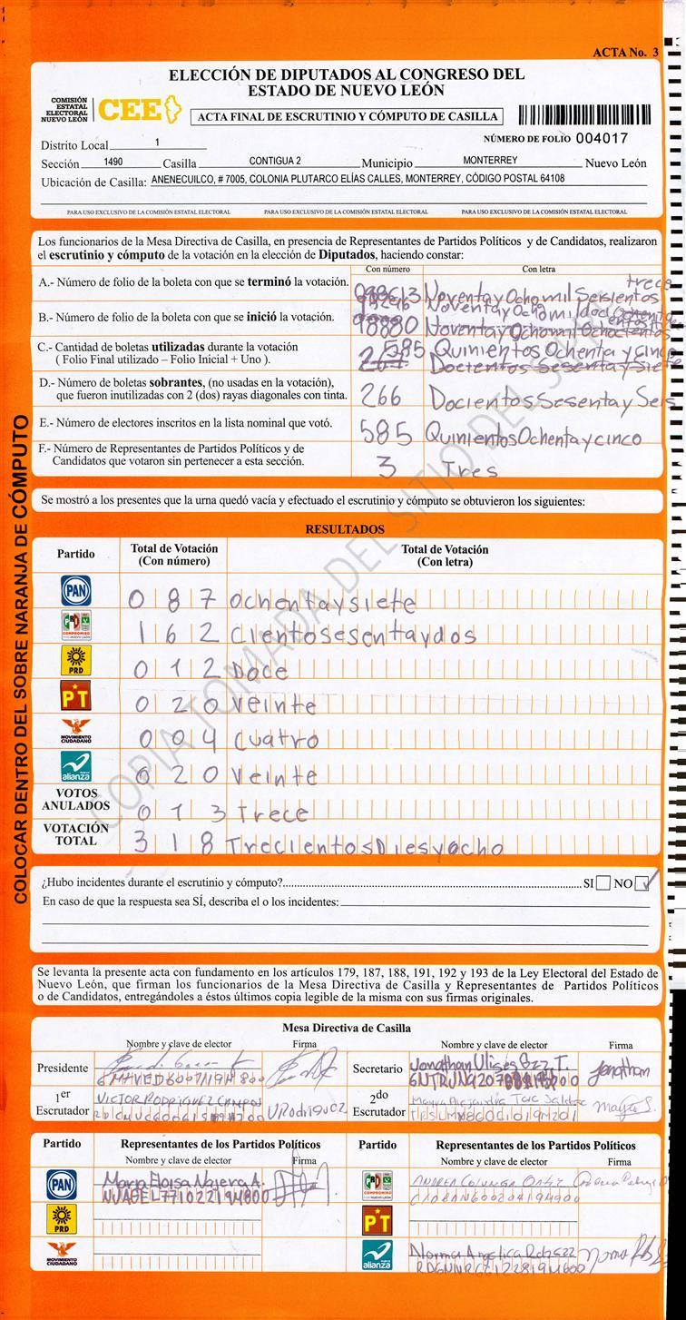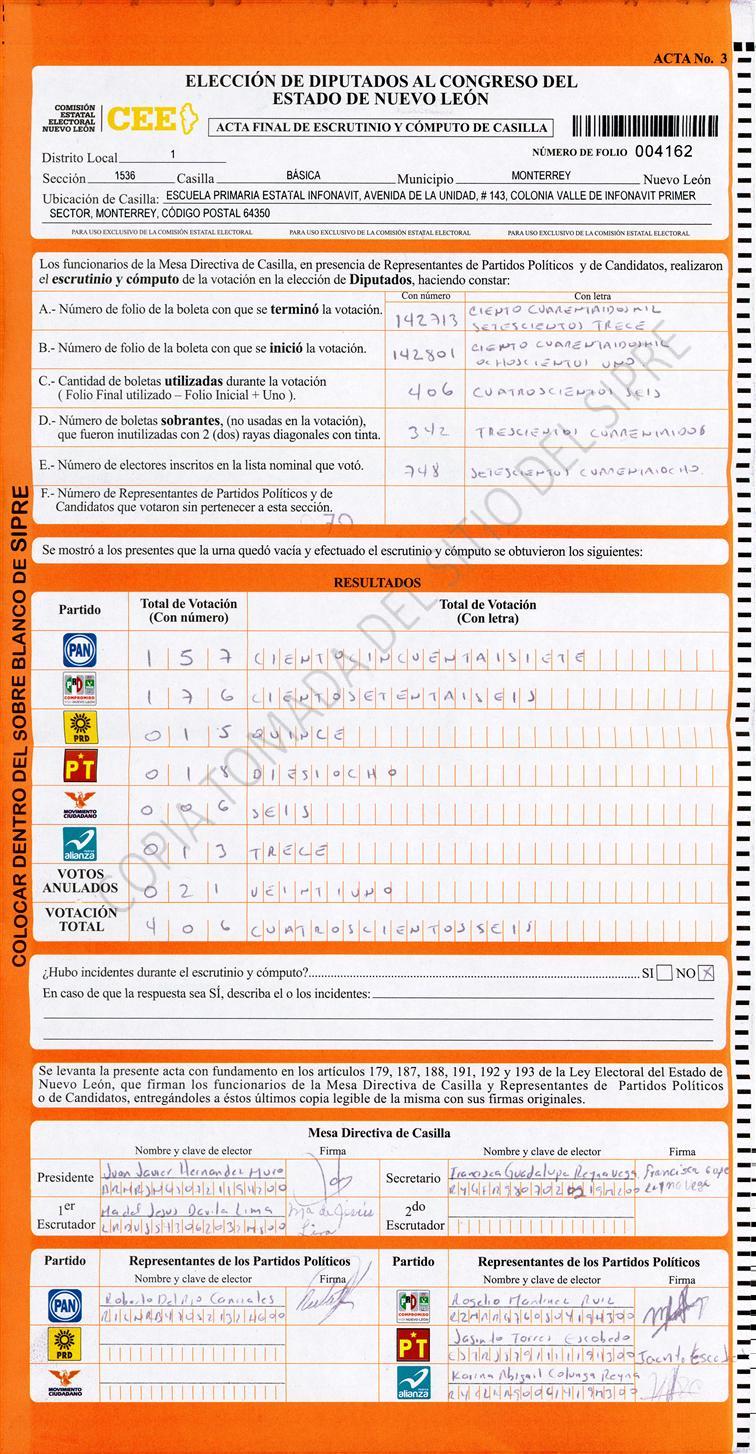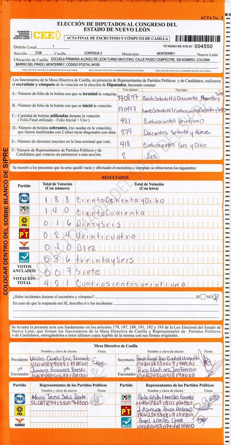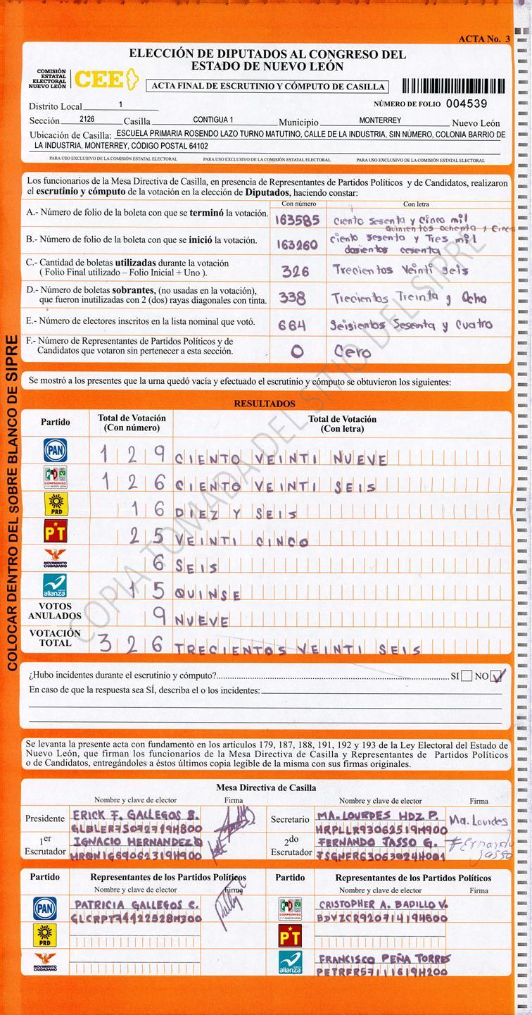 Diputados Locales, Primer Distrito |