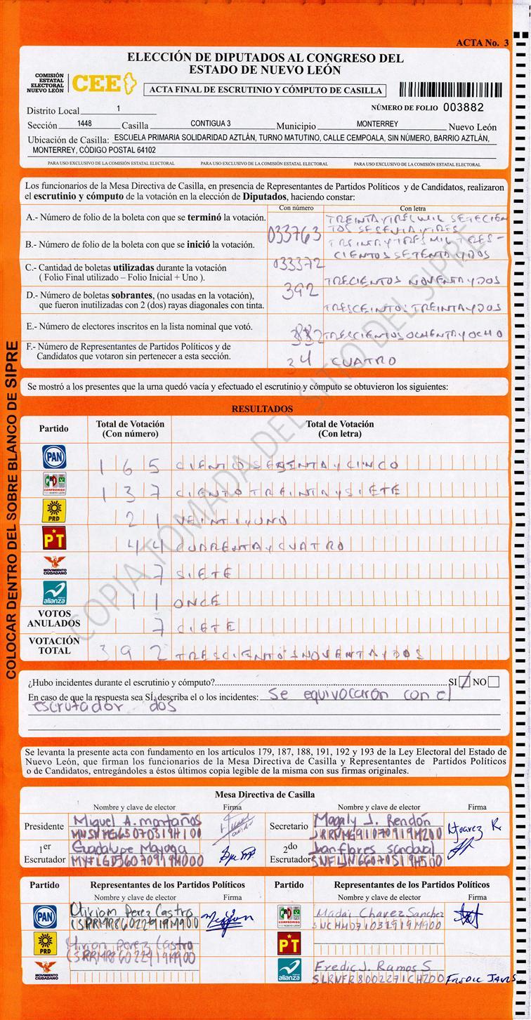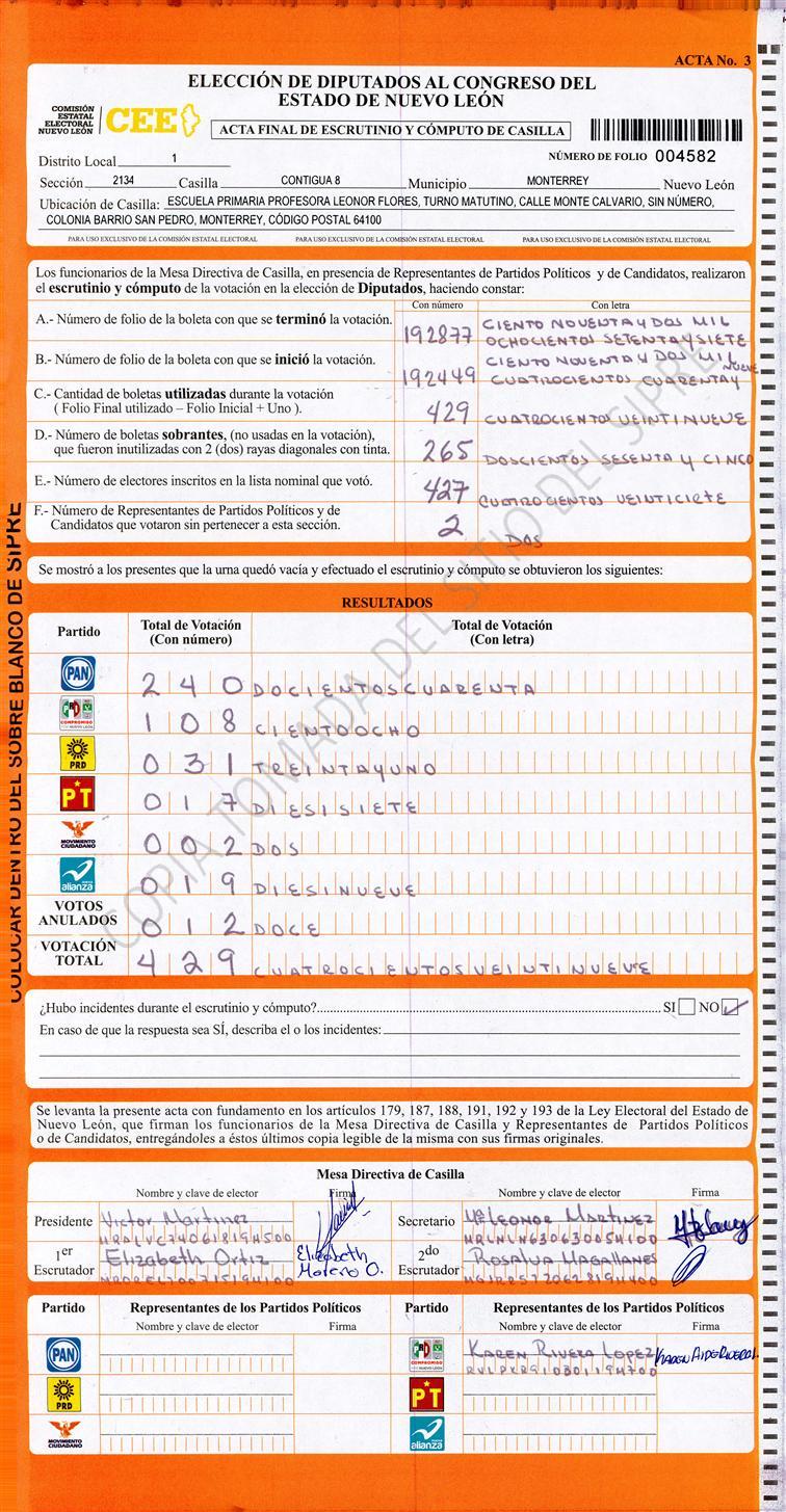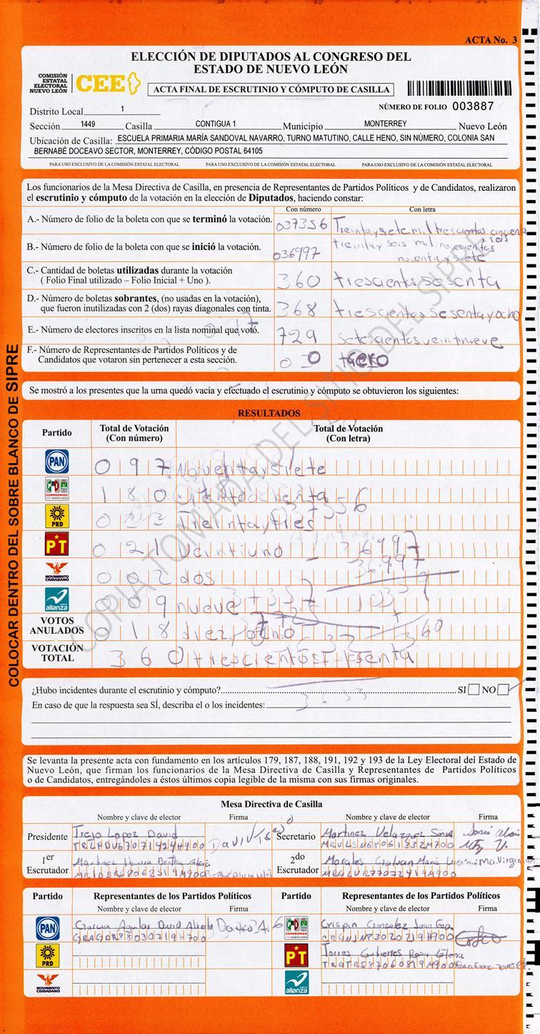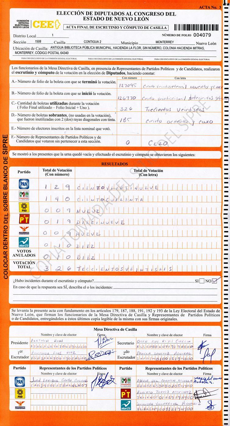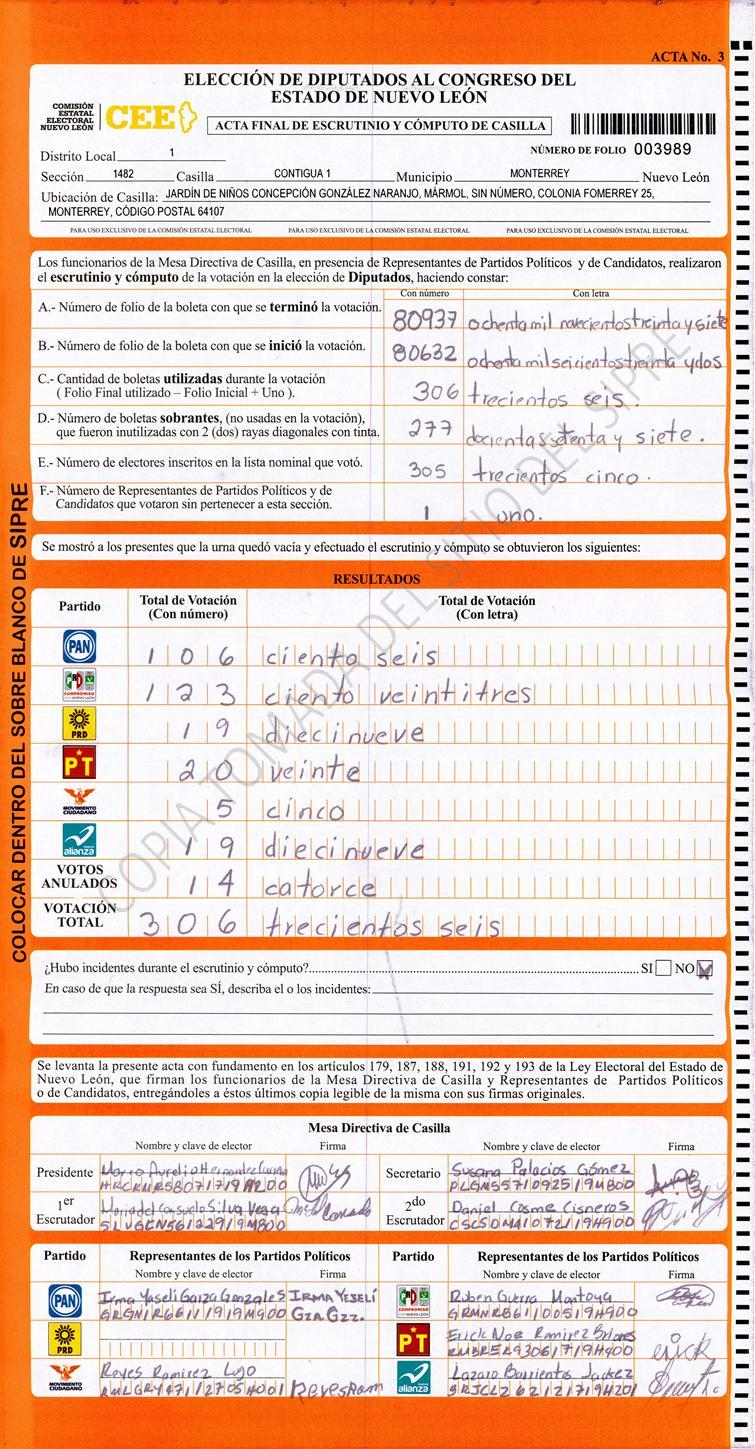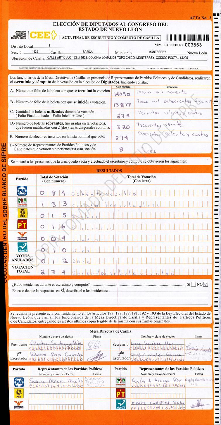 Diputados Locales, Primer Distrito |