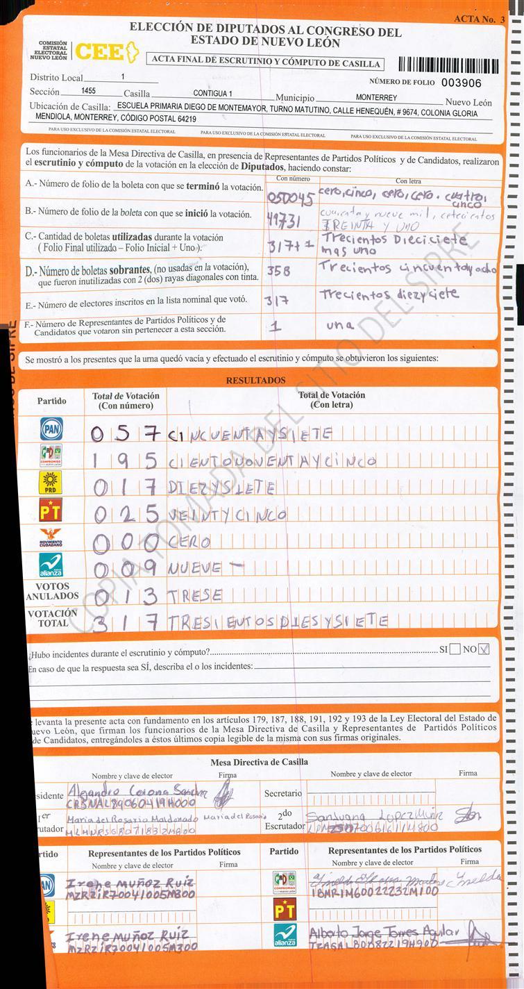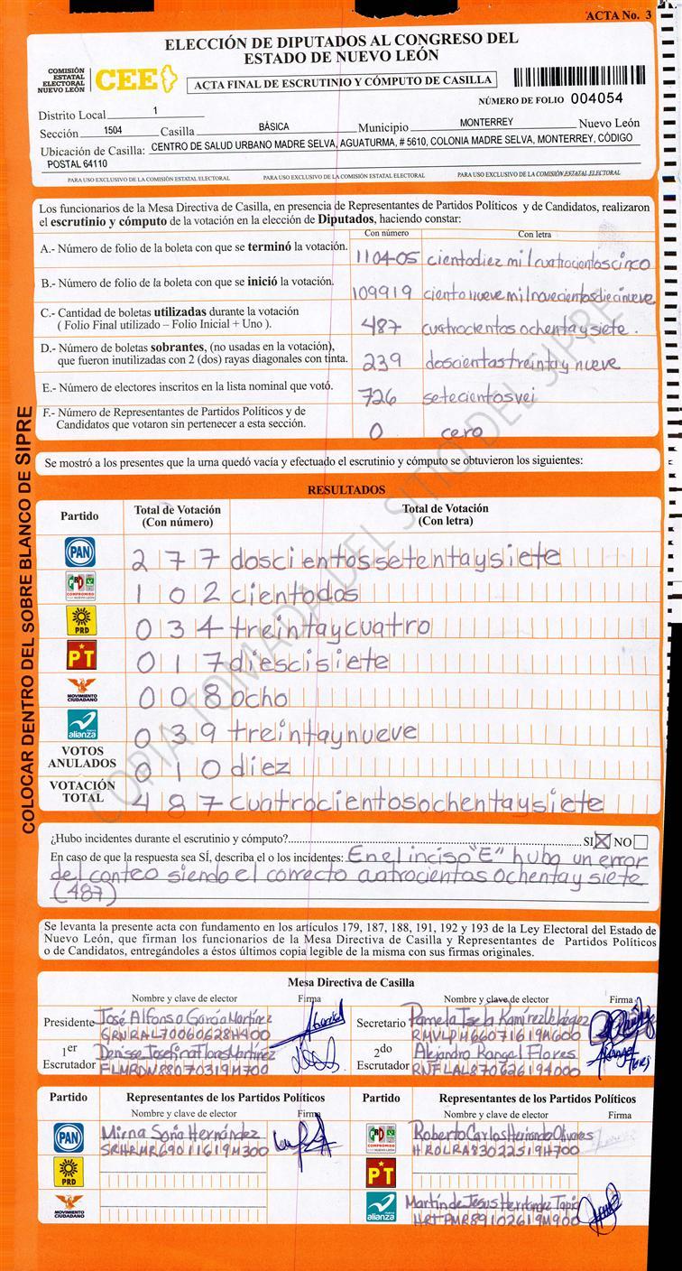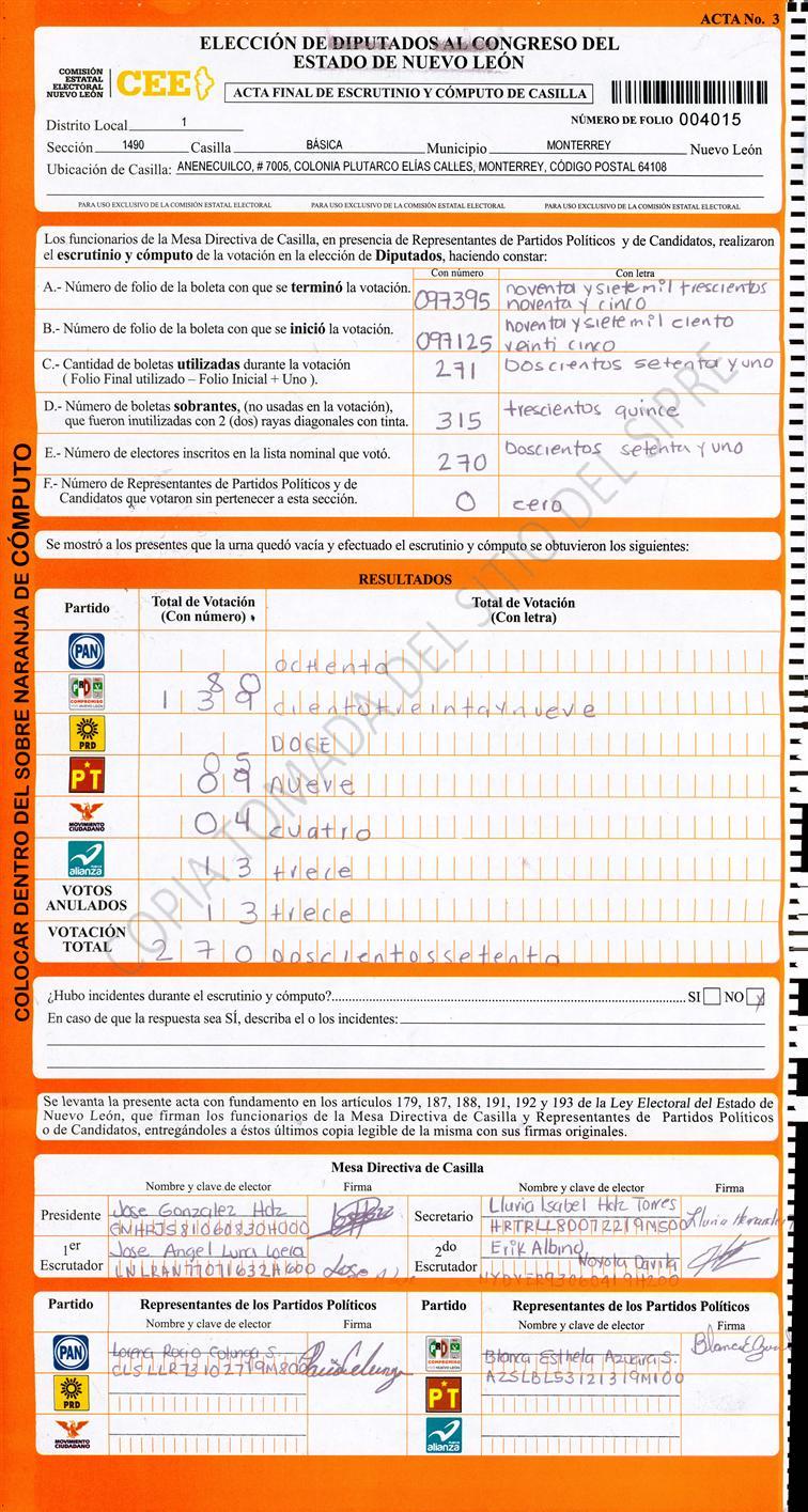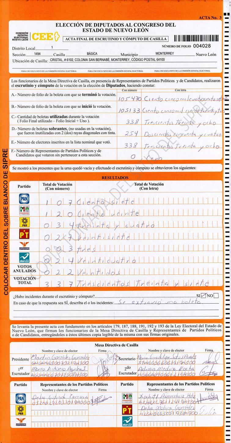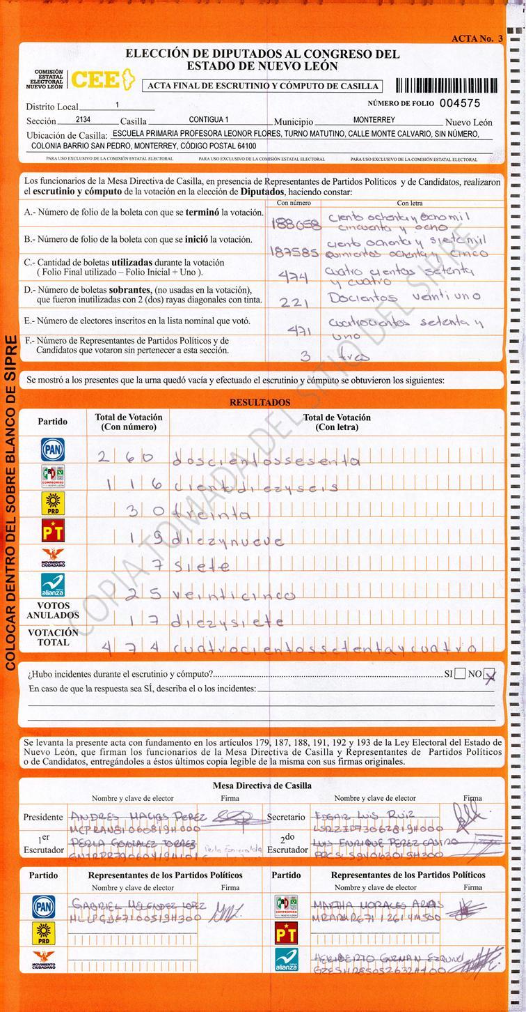 Diputados Locales, Primer Distrito |