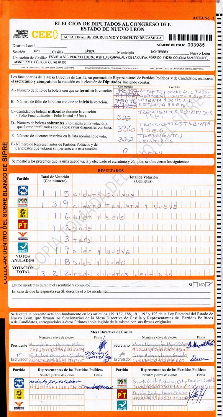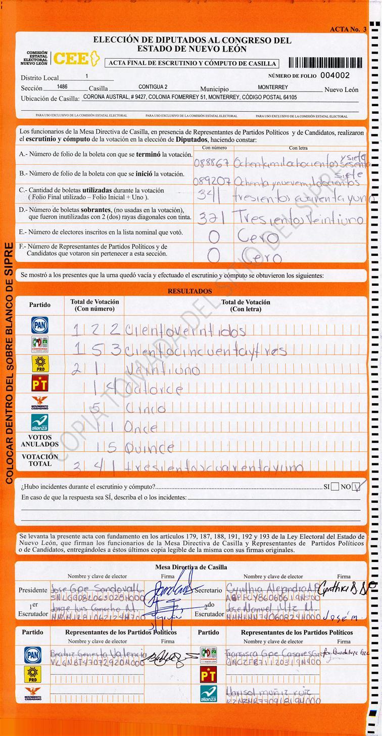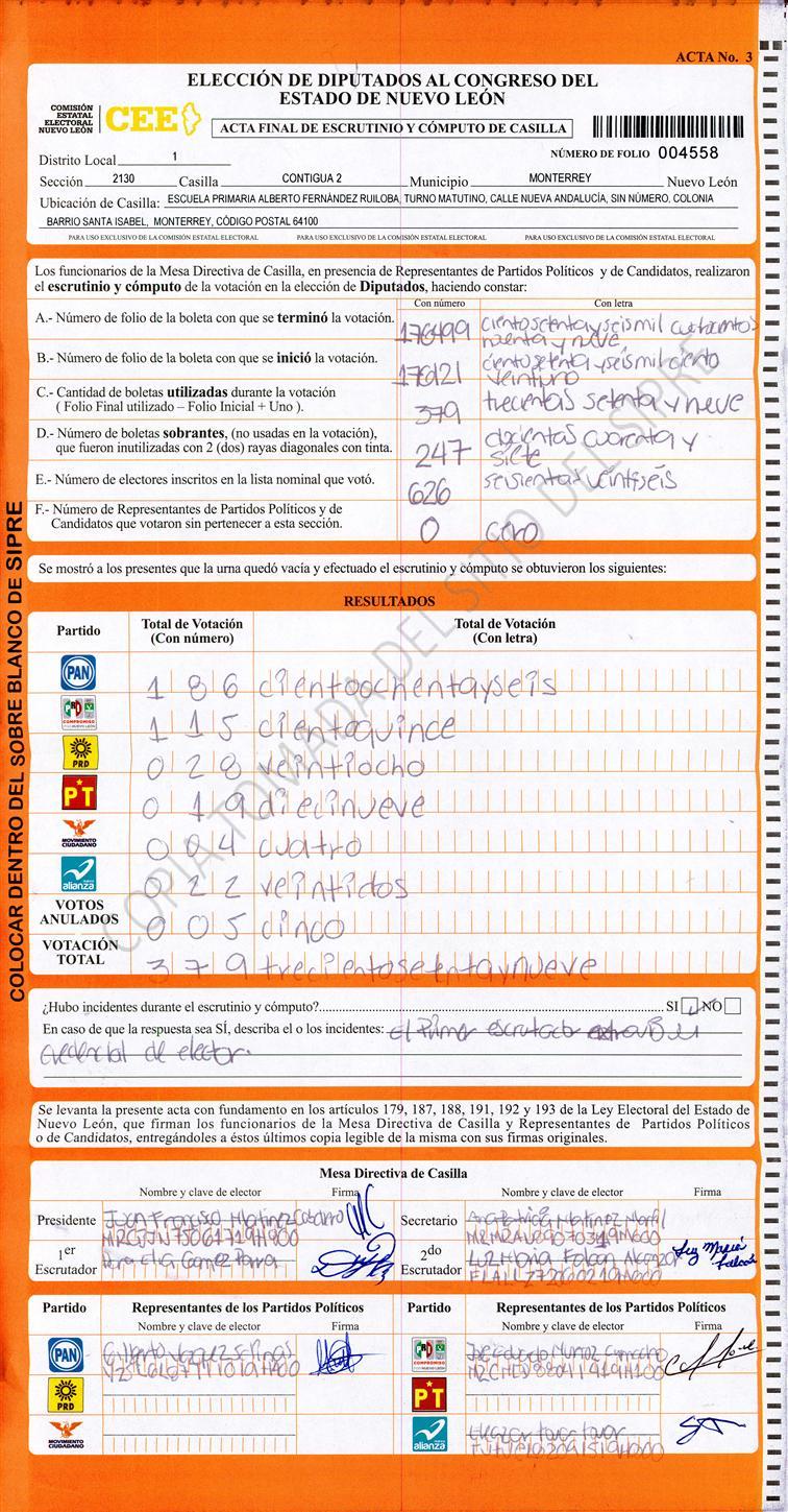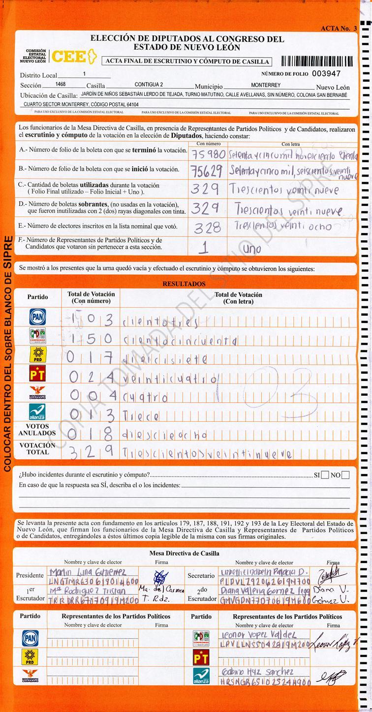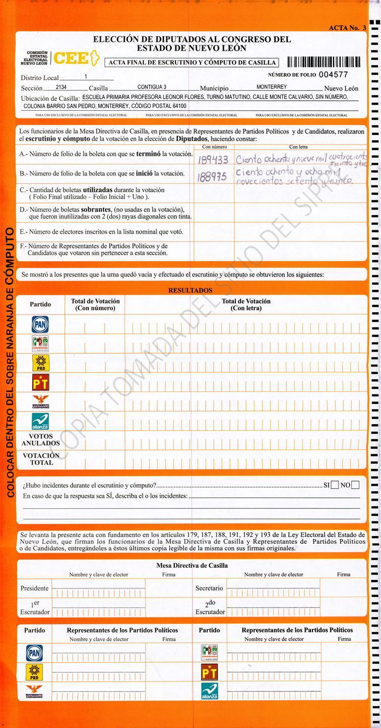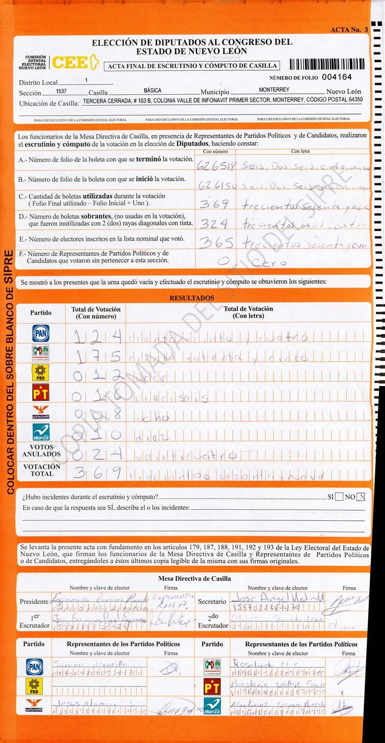 Diputados Locales, Primer Distrito |