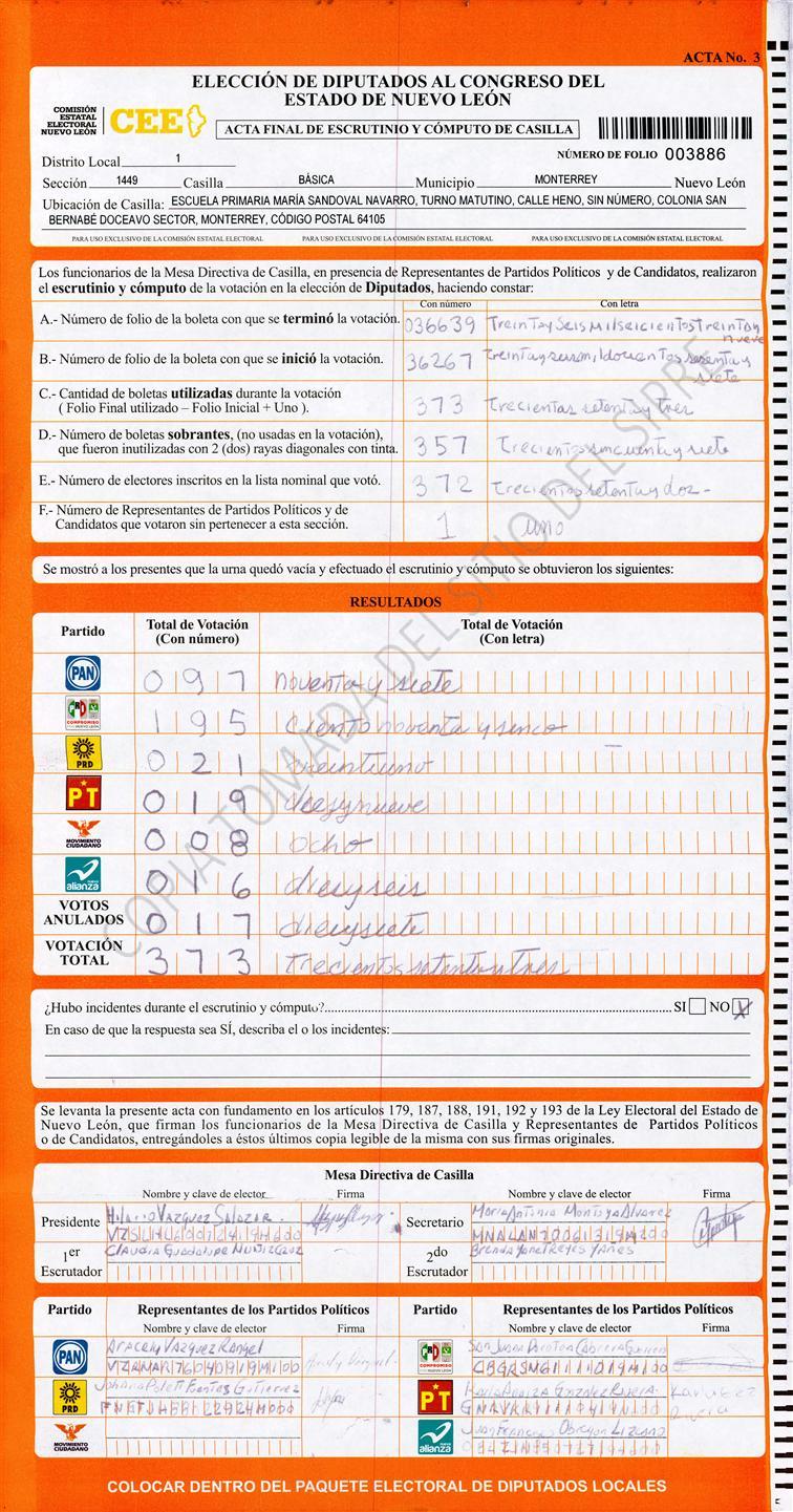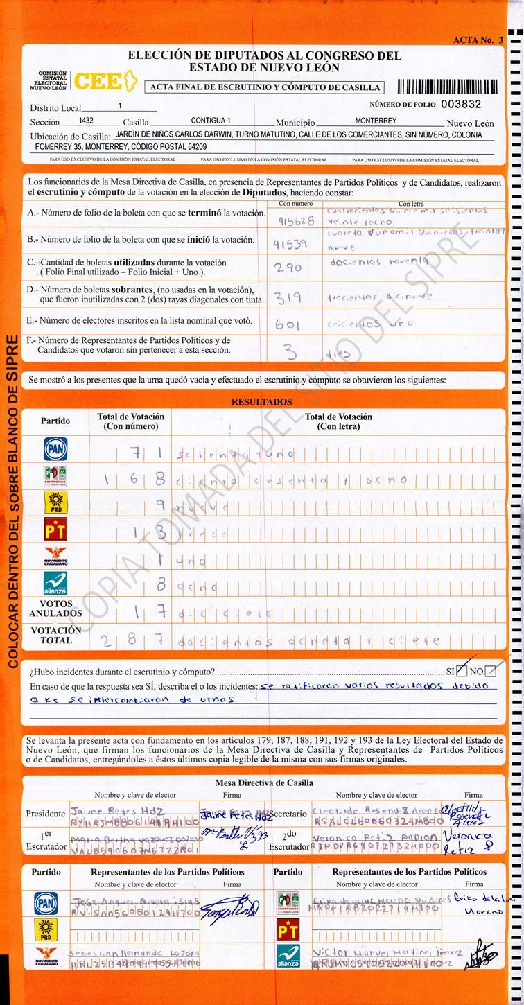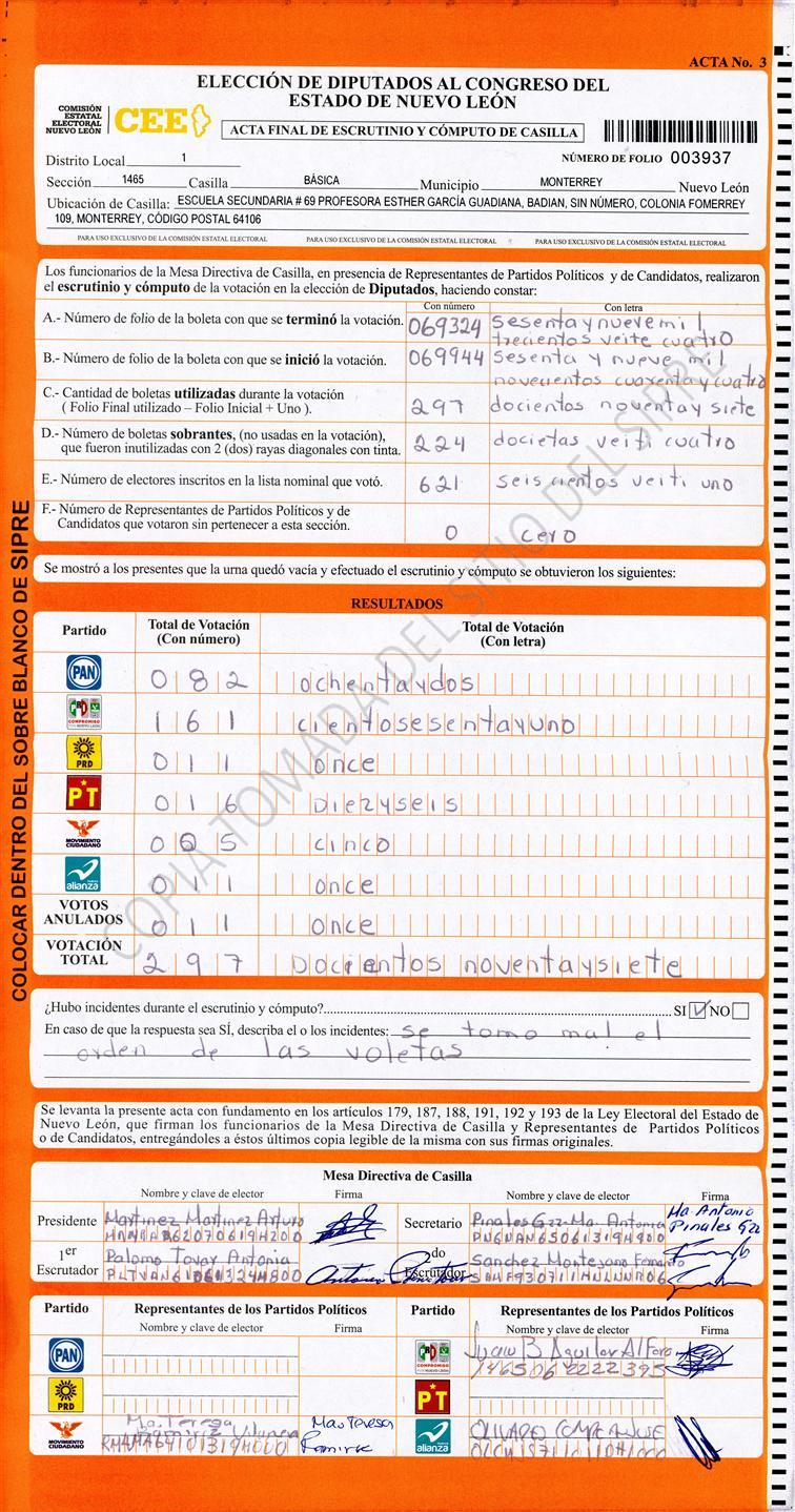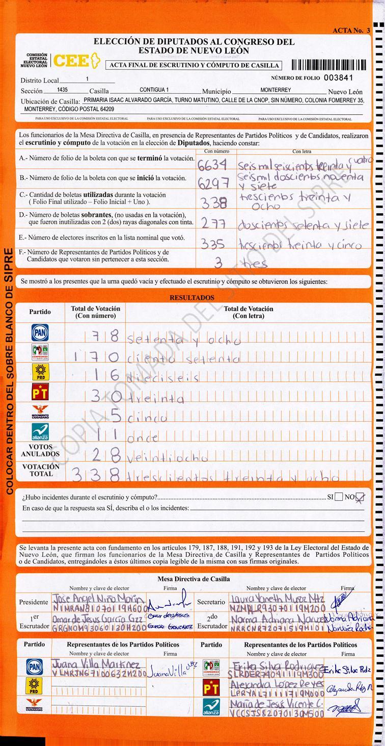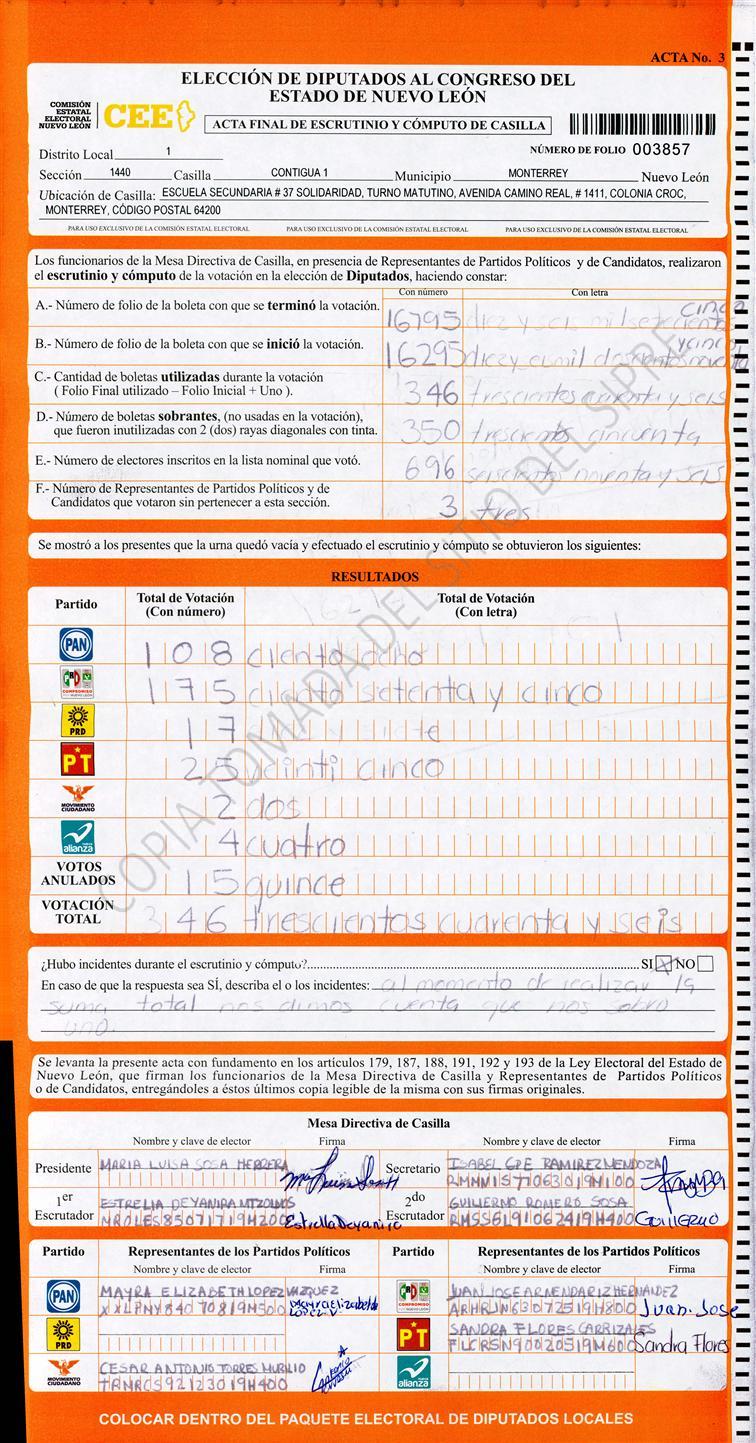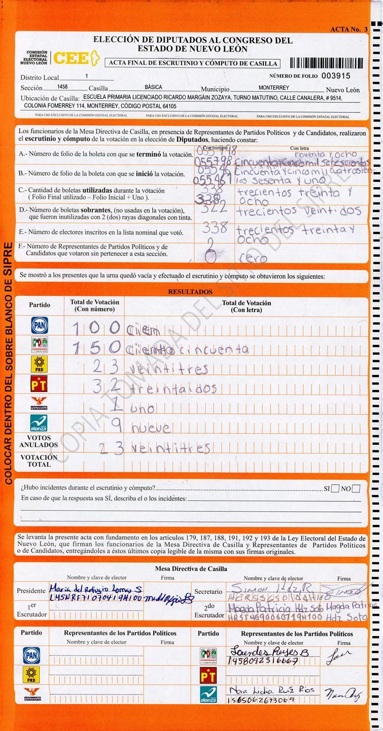 Diputados Locales, Primer Distrito |