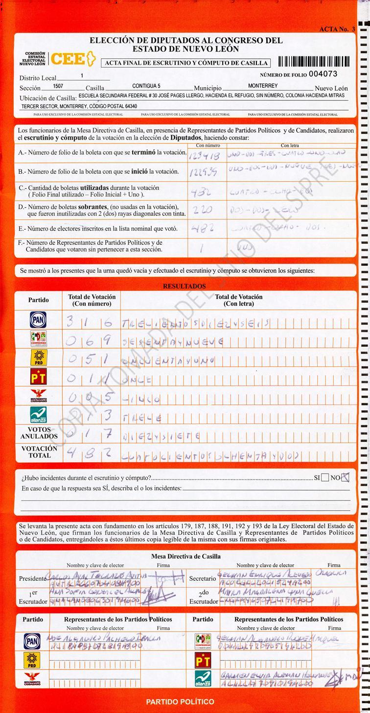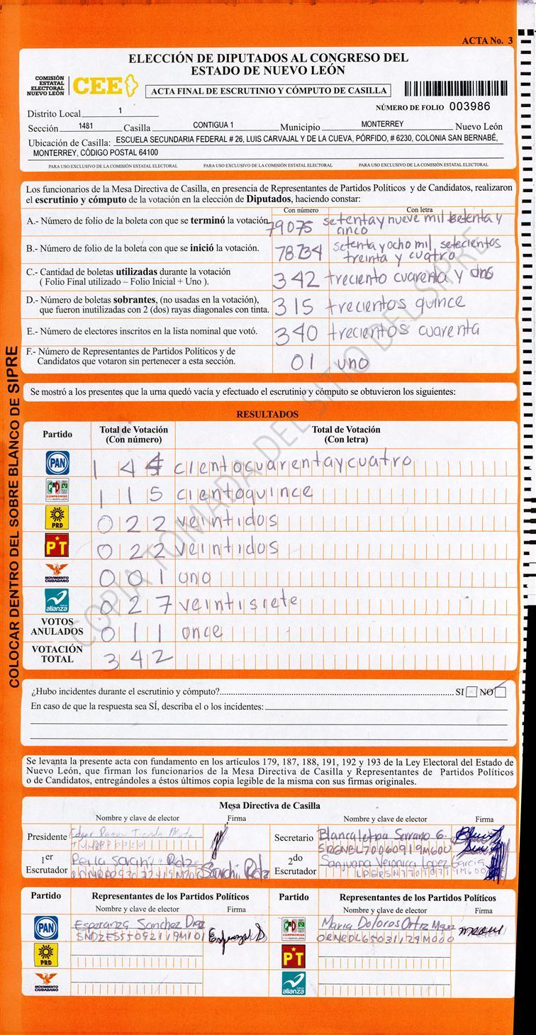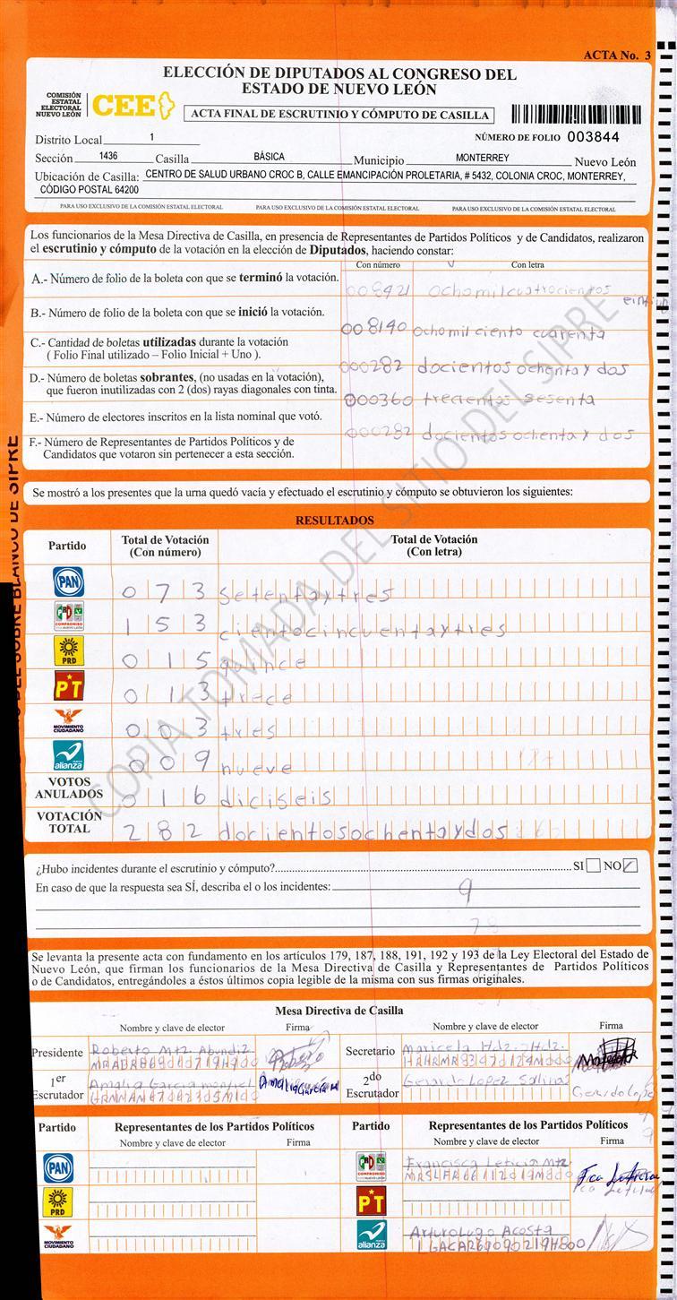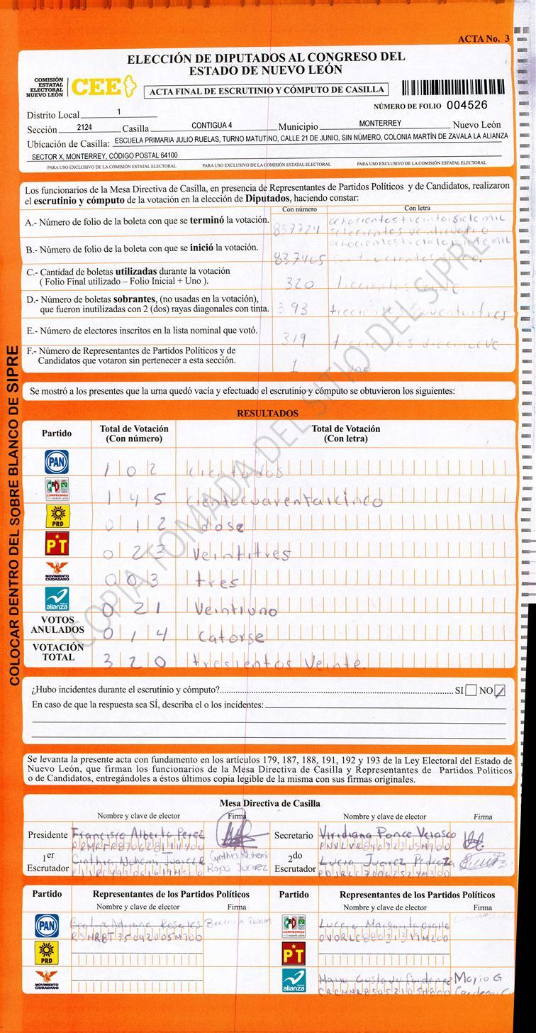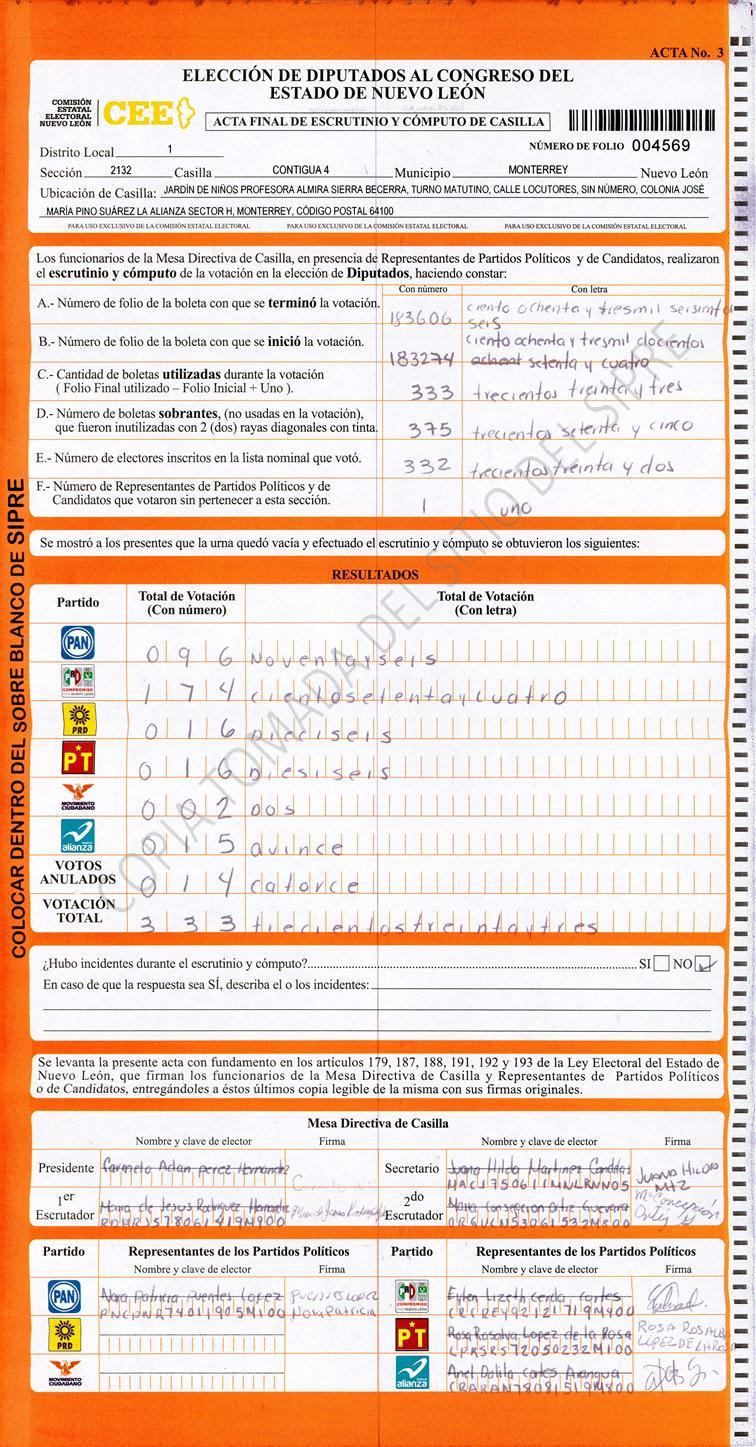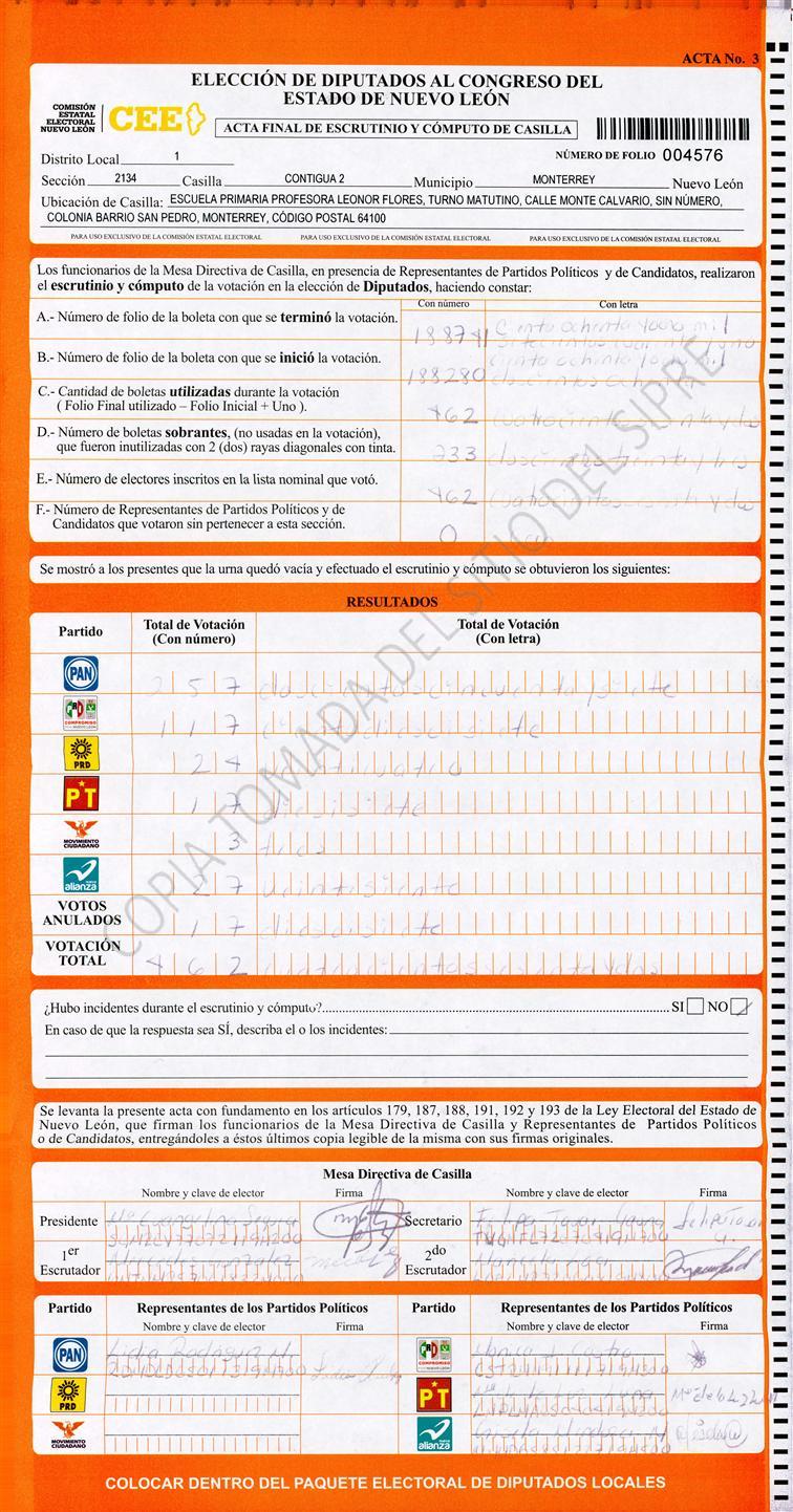 Diputados Locales, Primer Distrito |