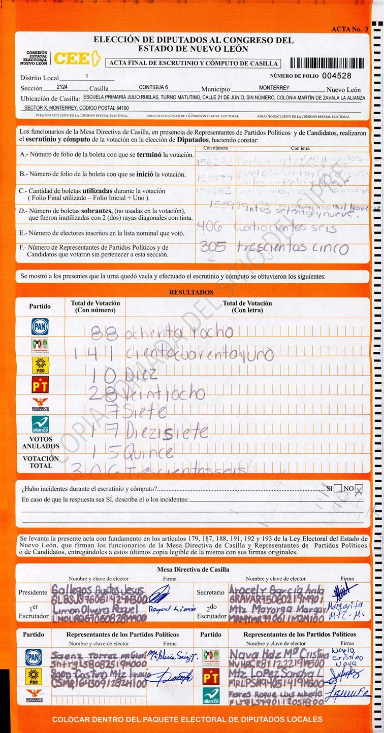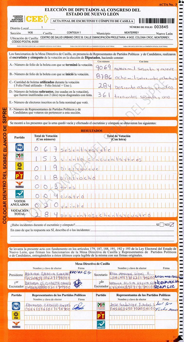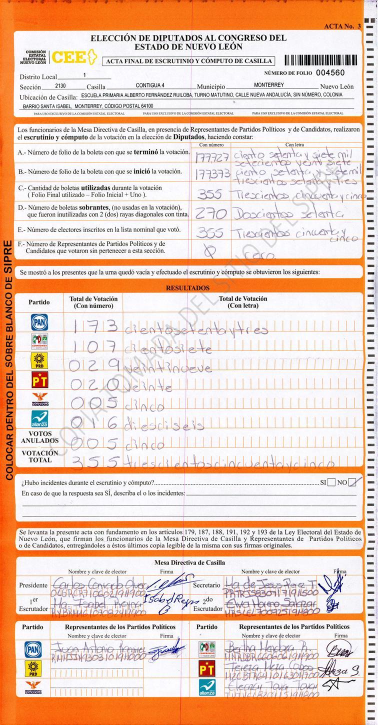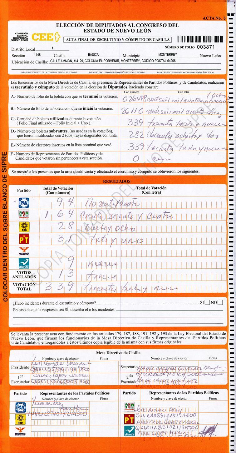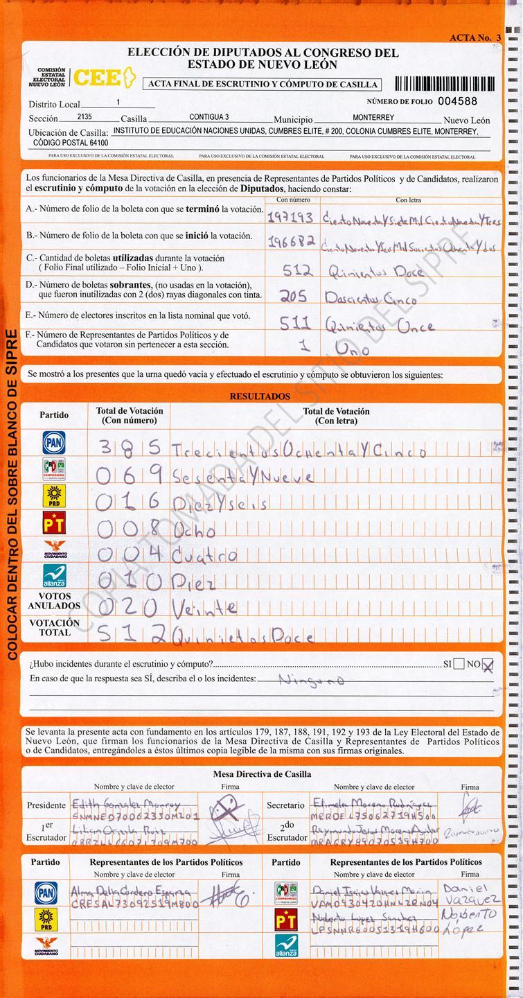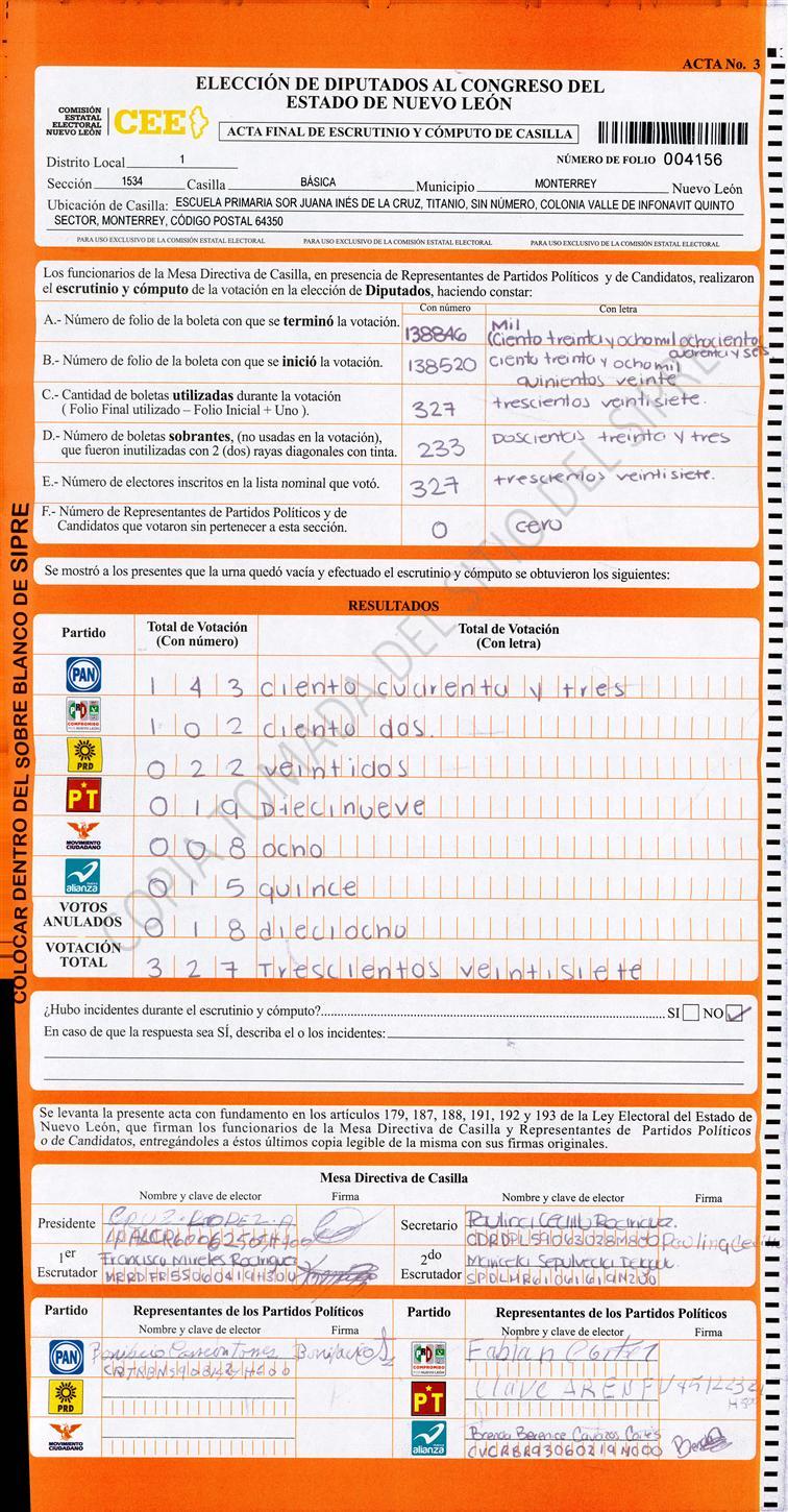 Diputados Locales, Primer Distrito |