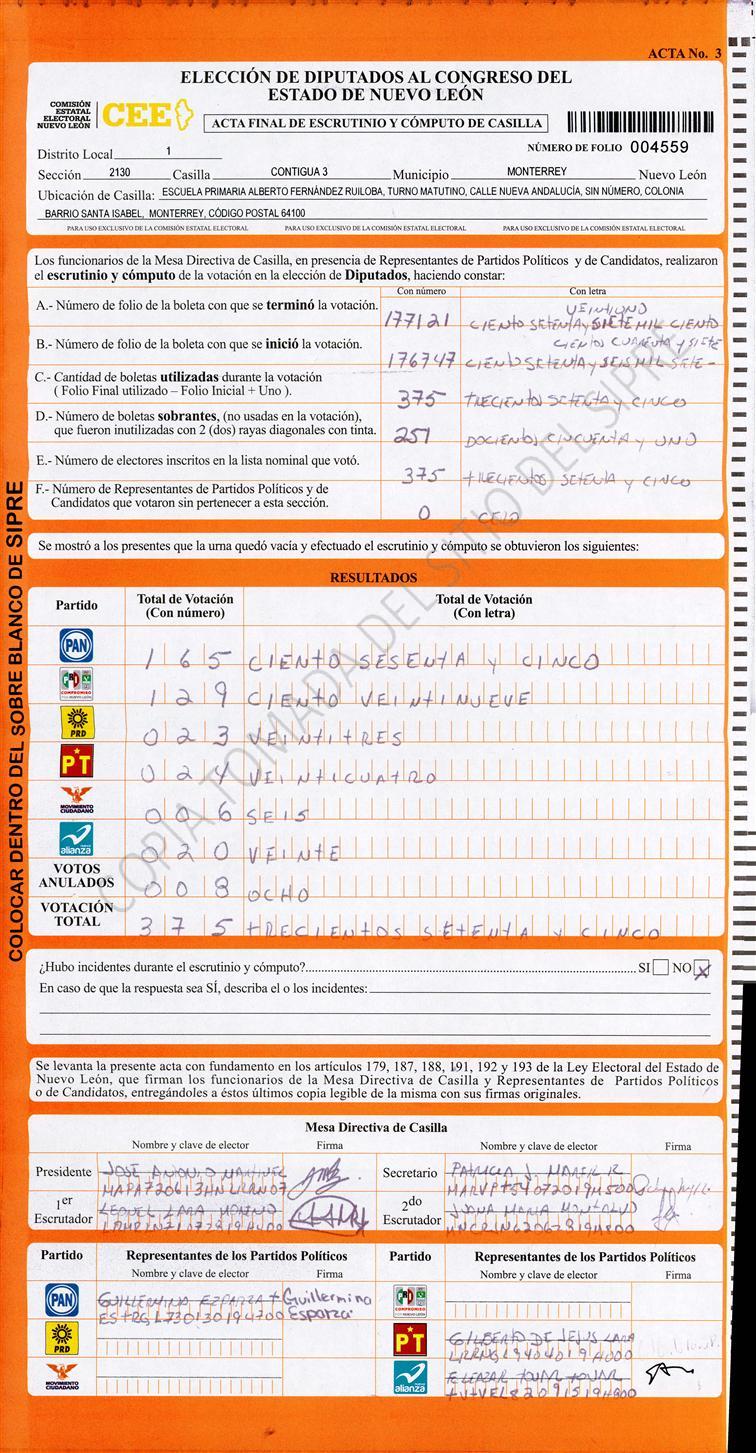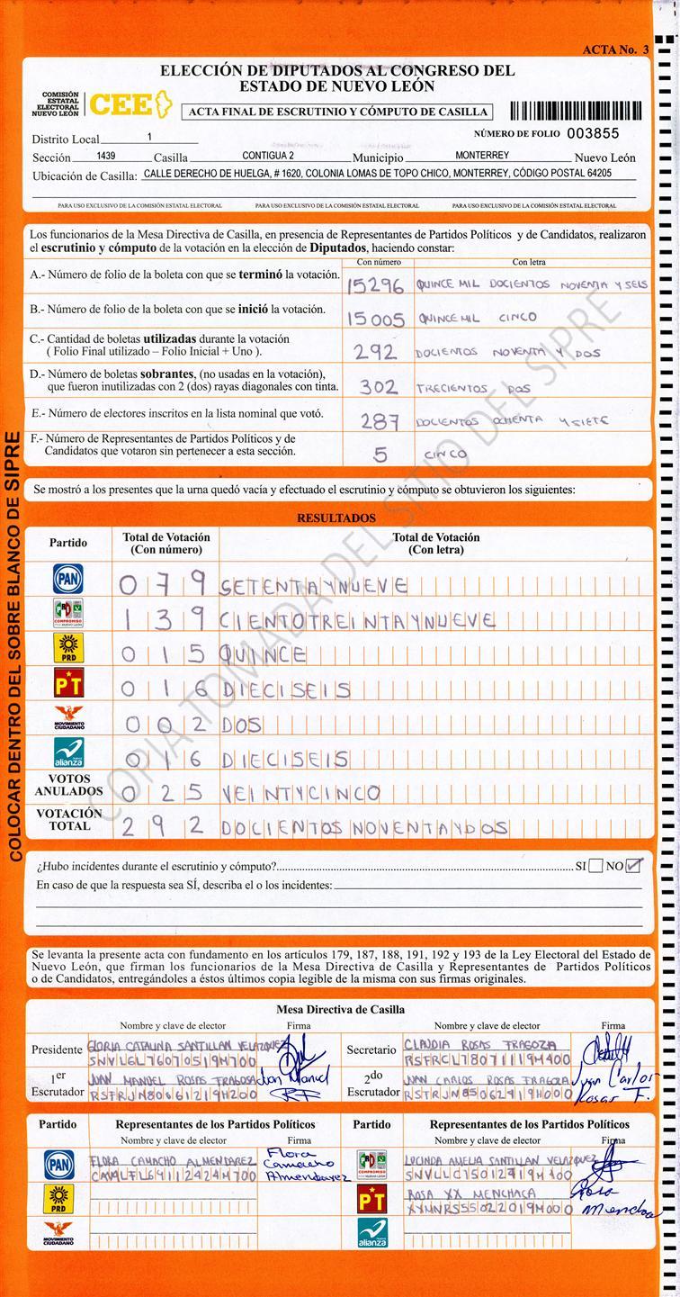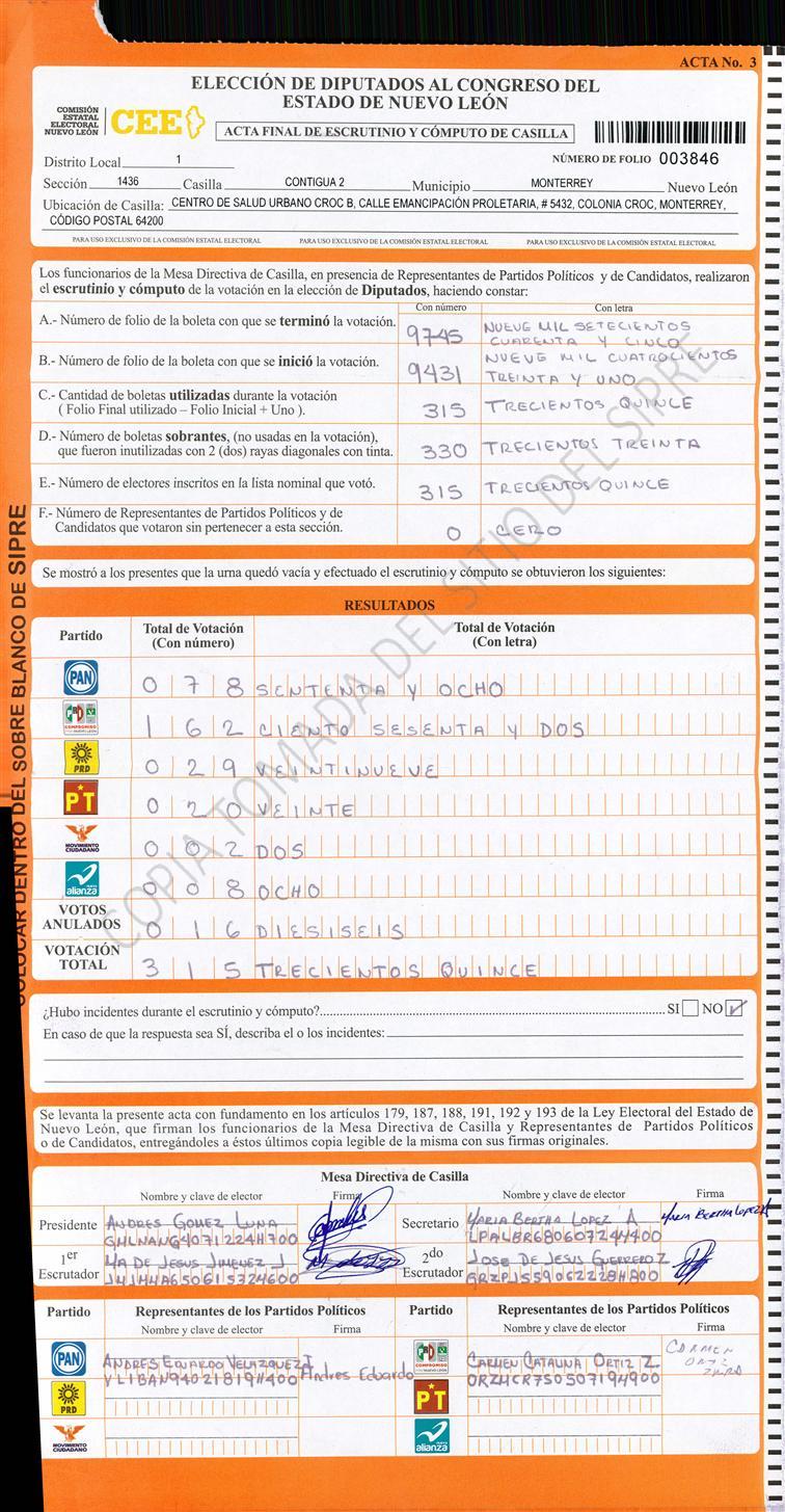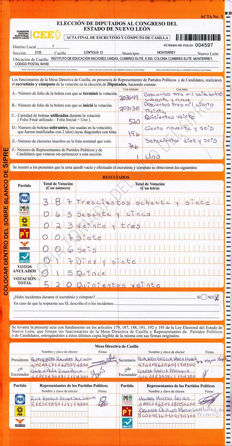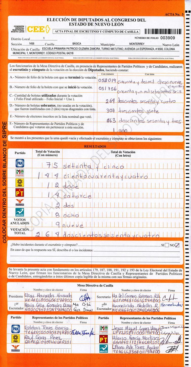 Diputados Locales, Primer Distrito |