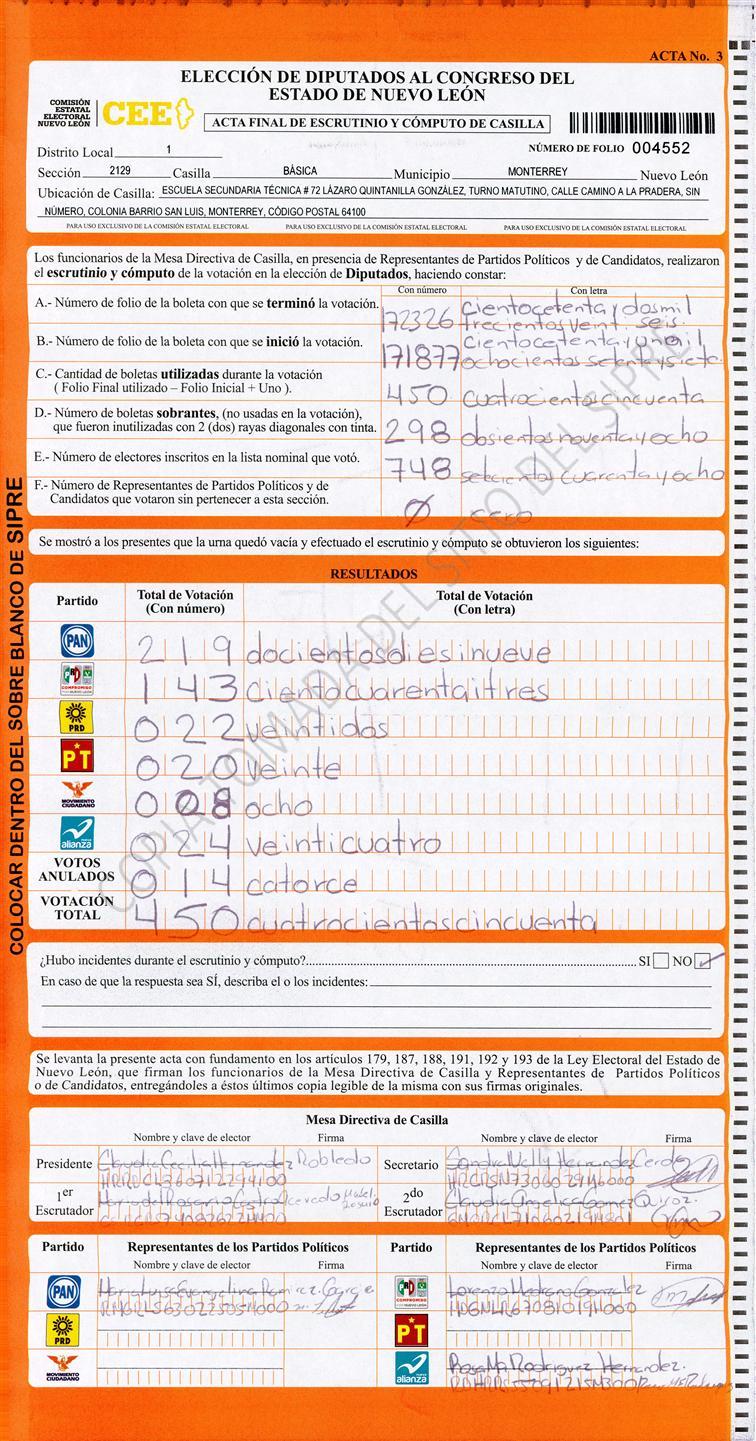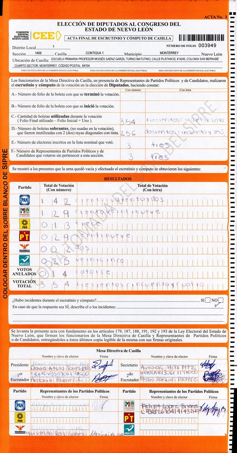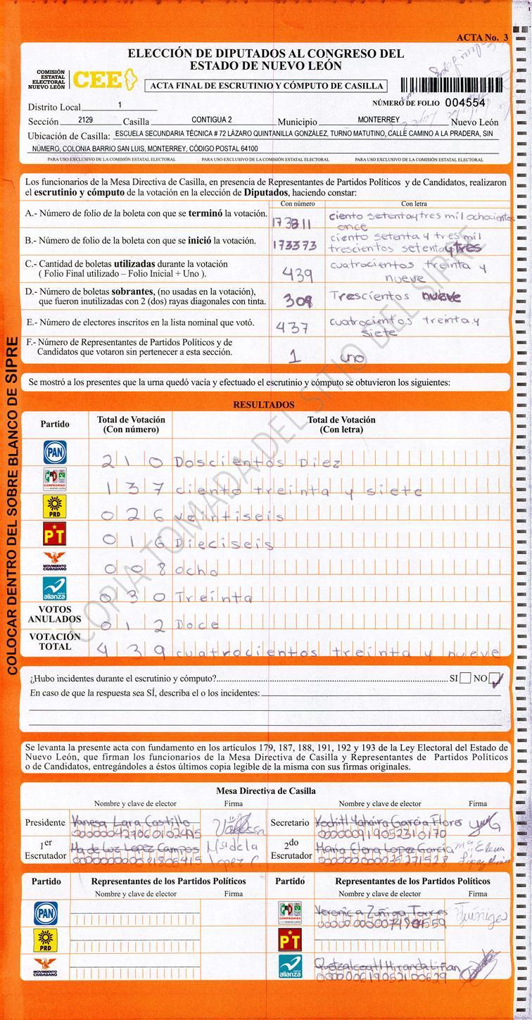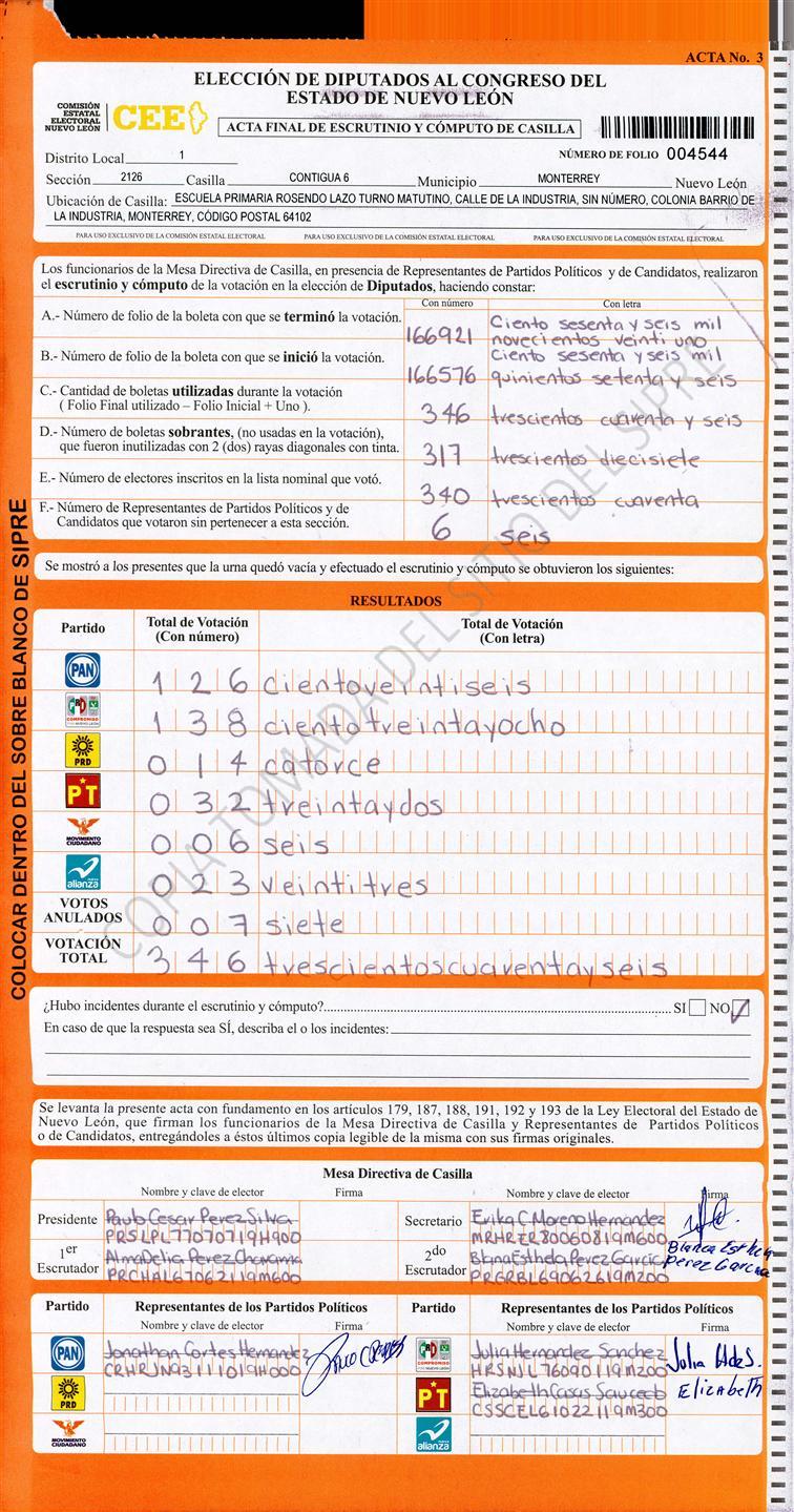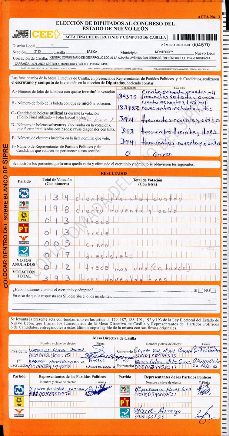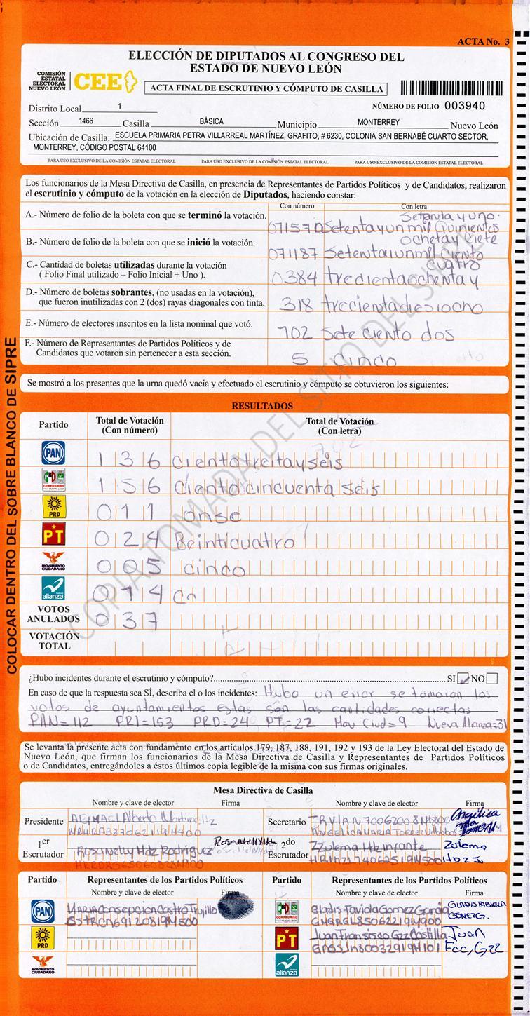 Diputados Locales, Primer Distrito |