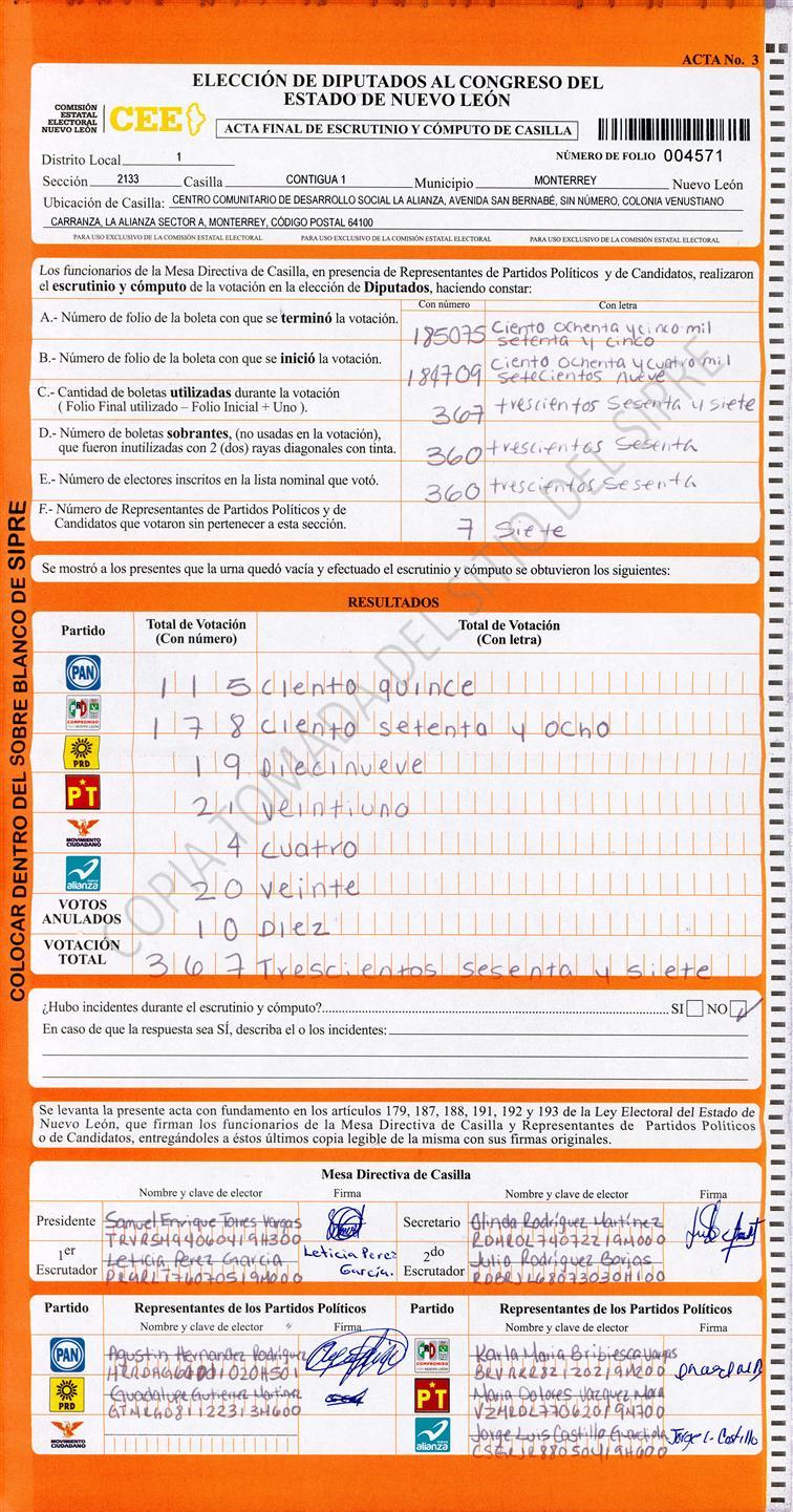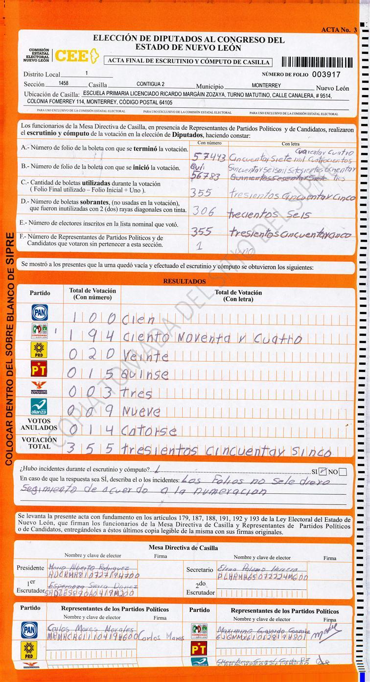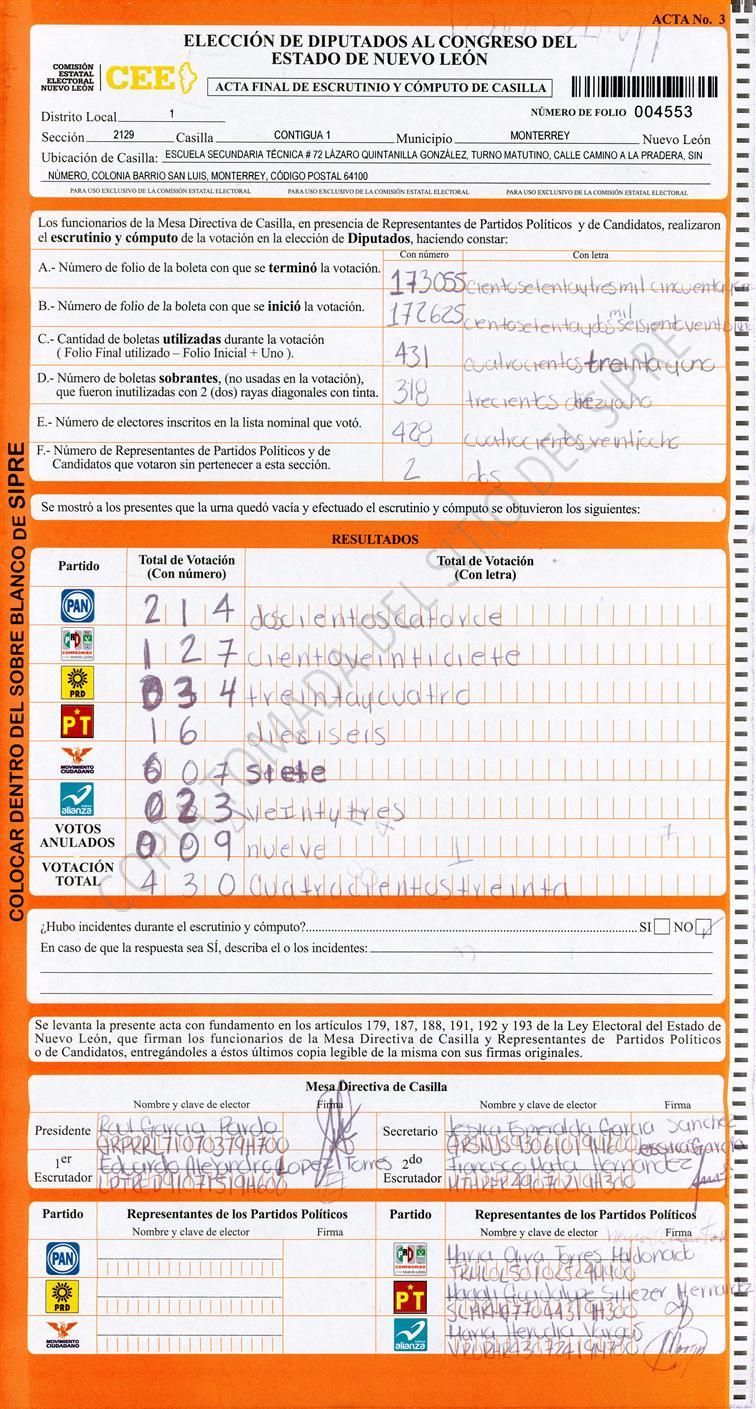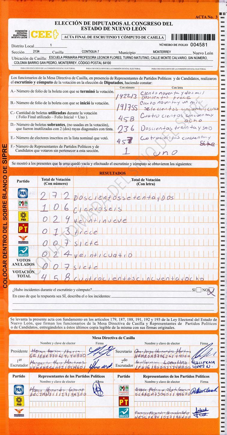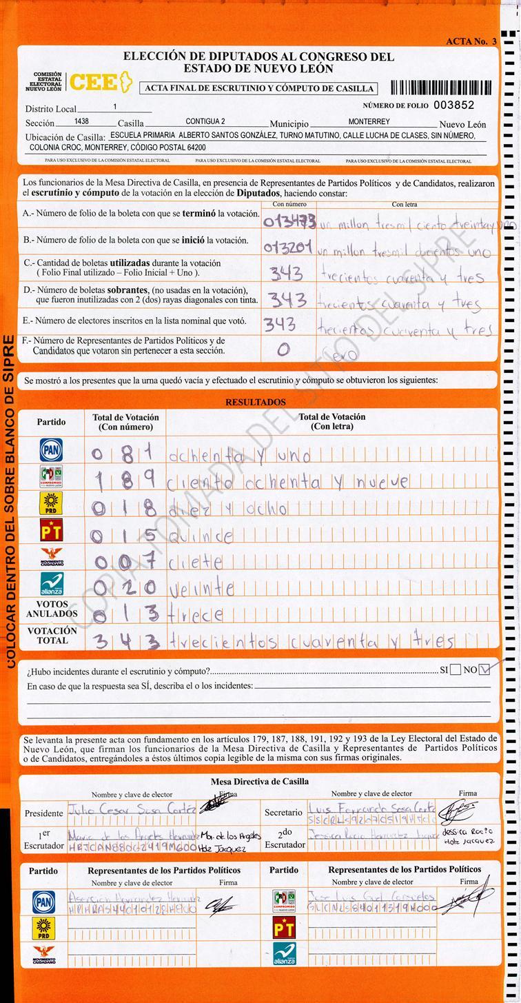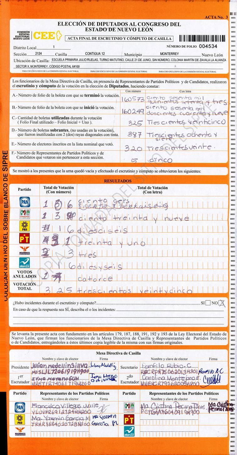 Diputados Locales, Primer Distrito |