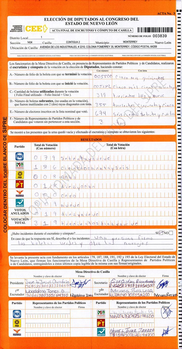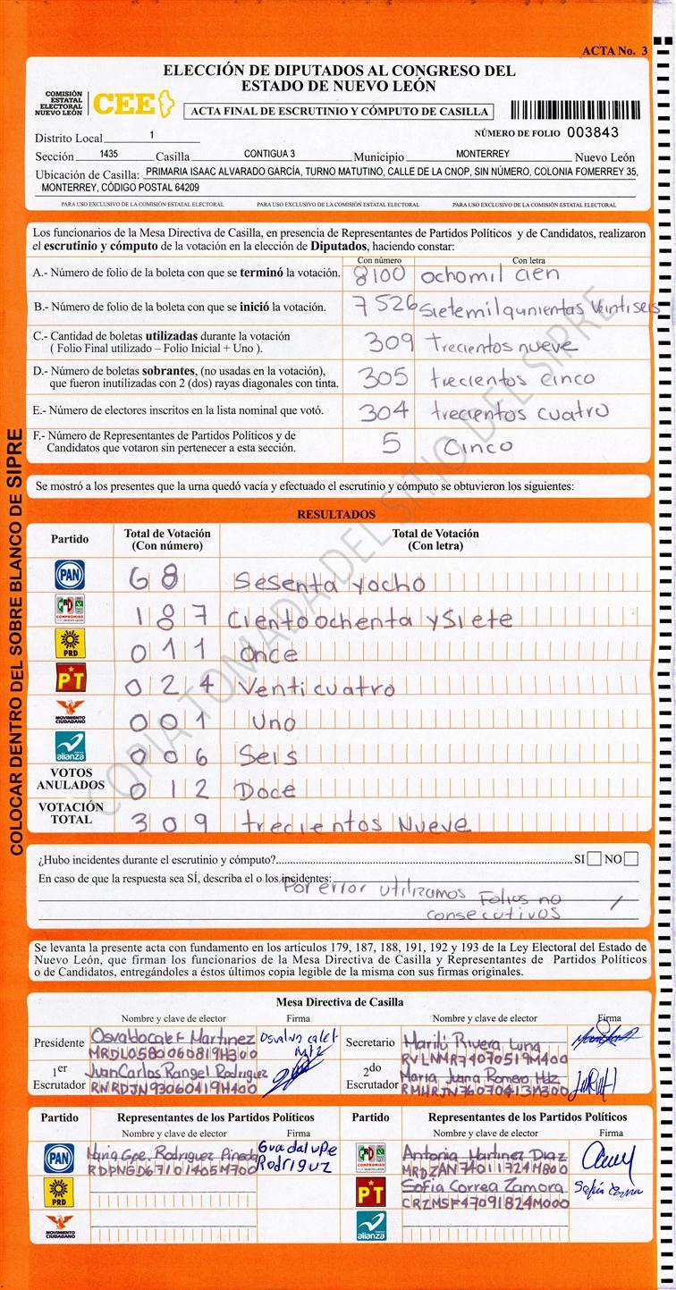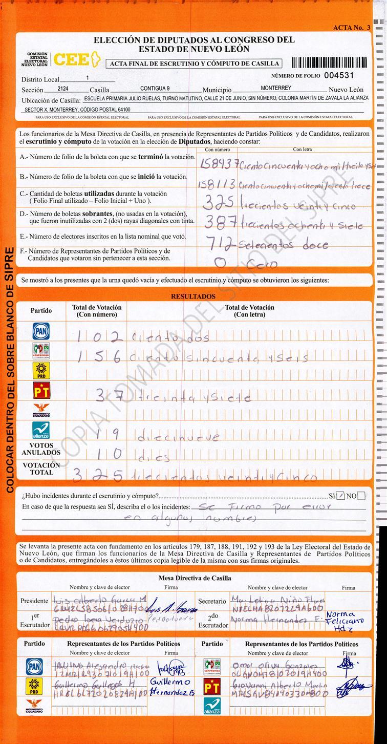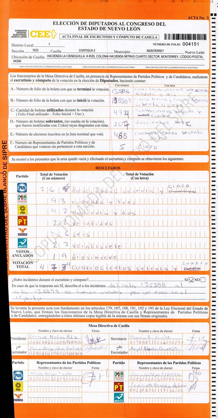 Acta con Incidencia: No hay acta |