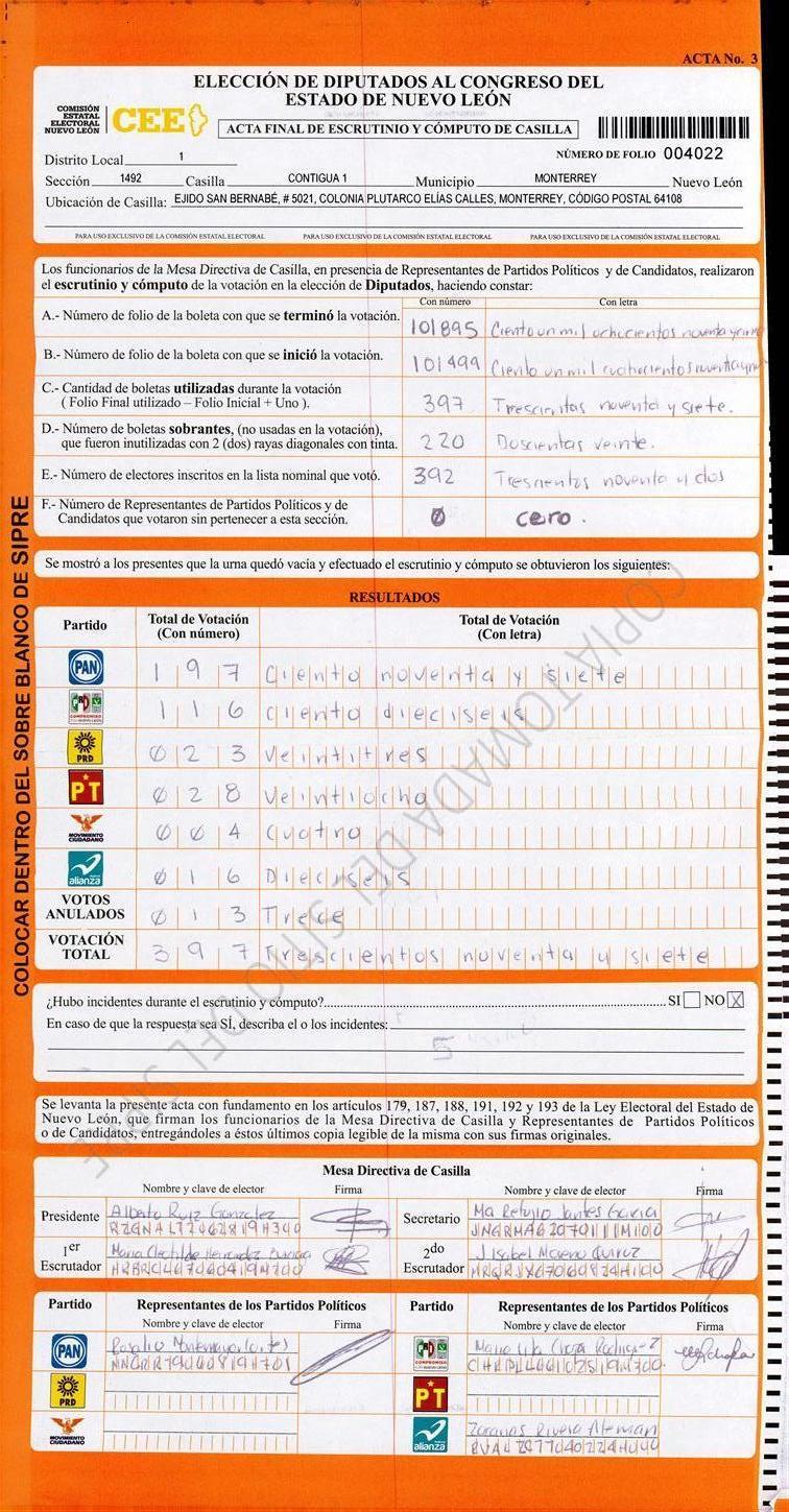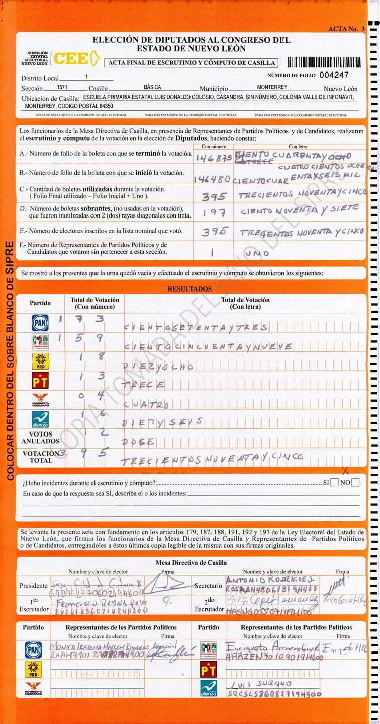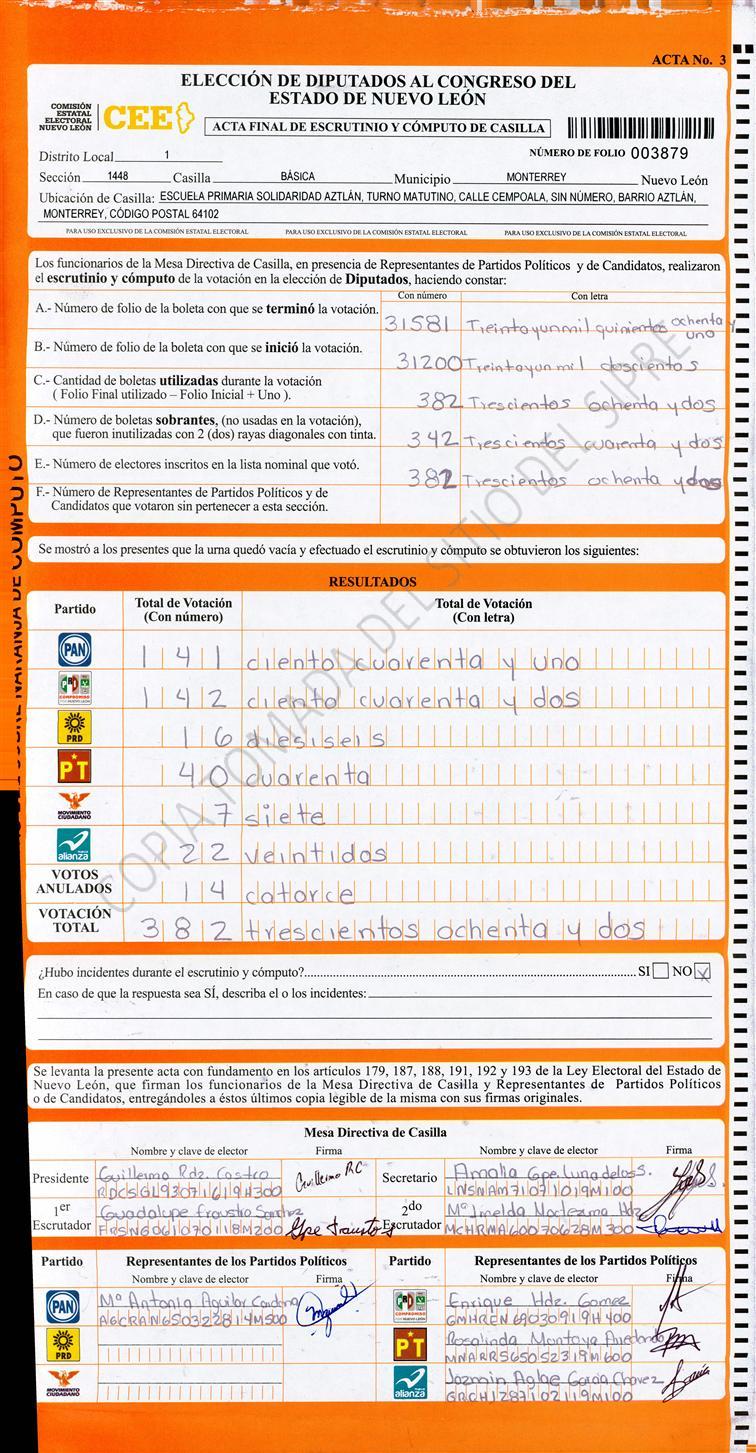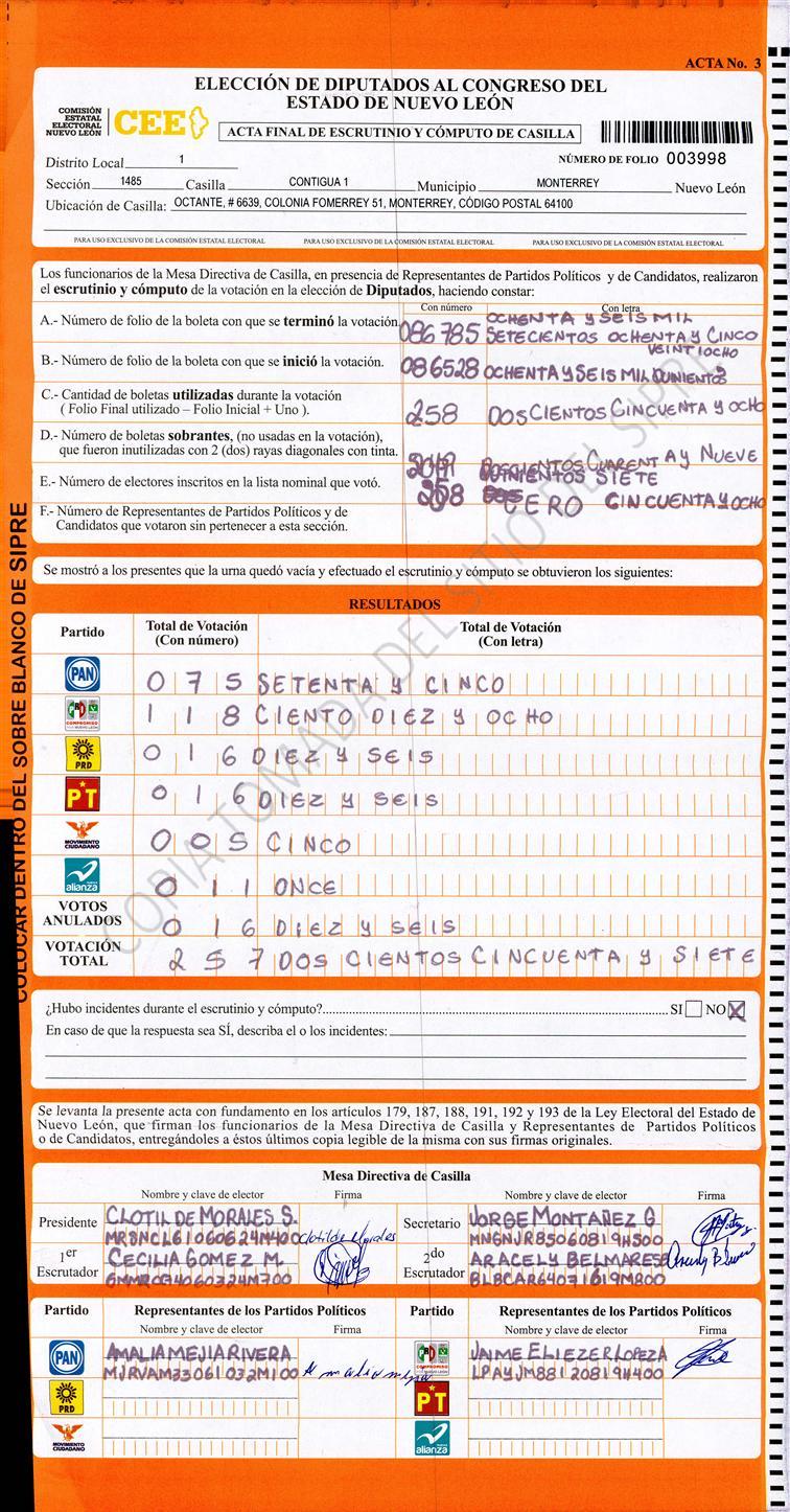 , (8) Copiado Movido , (9) Con Signos Inválidos , (10) Excede Lista Nominal , (11) Otra |