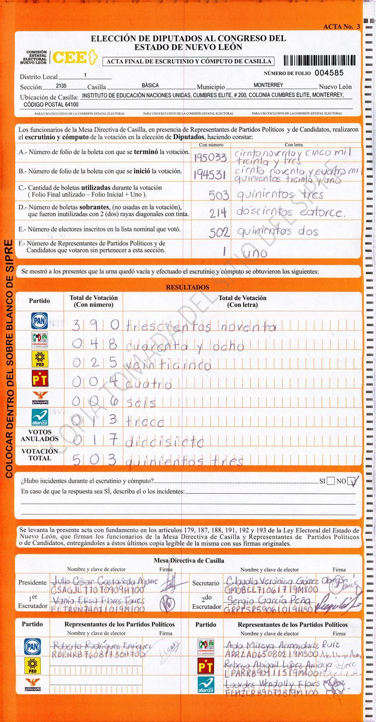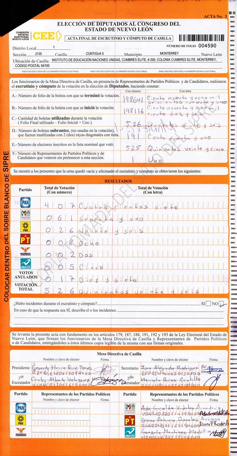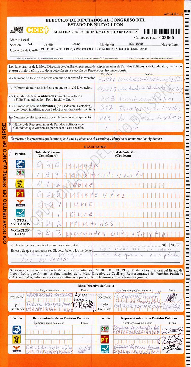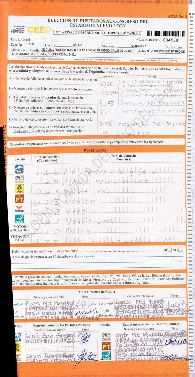 , (8) Copiado Movido , (9) Con Signos Inválidos , (10) Excede Lista Nominal , (11) Otra |