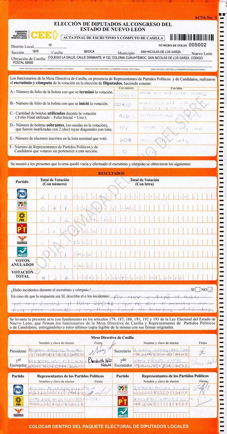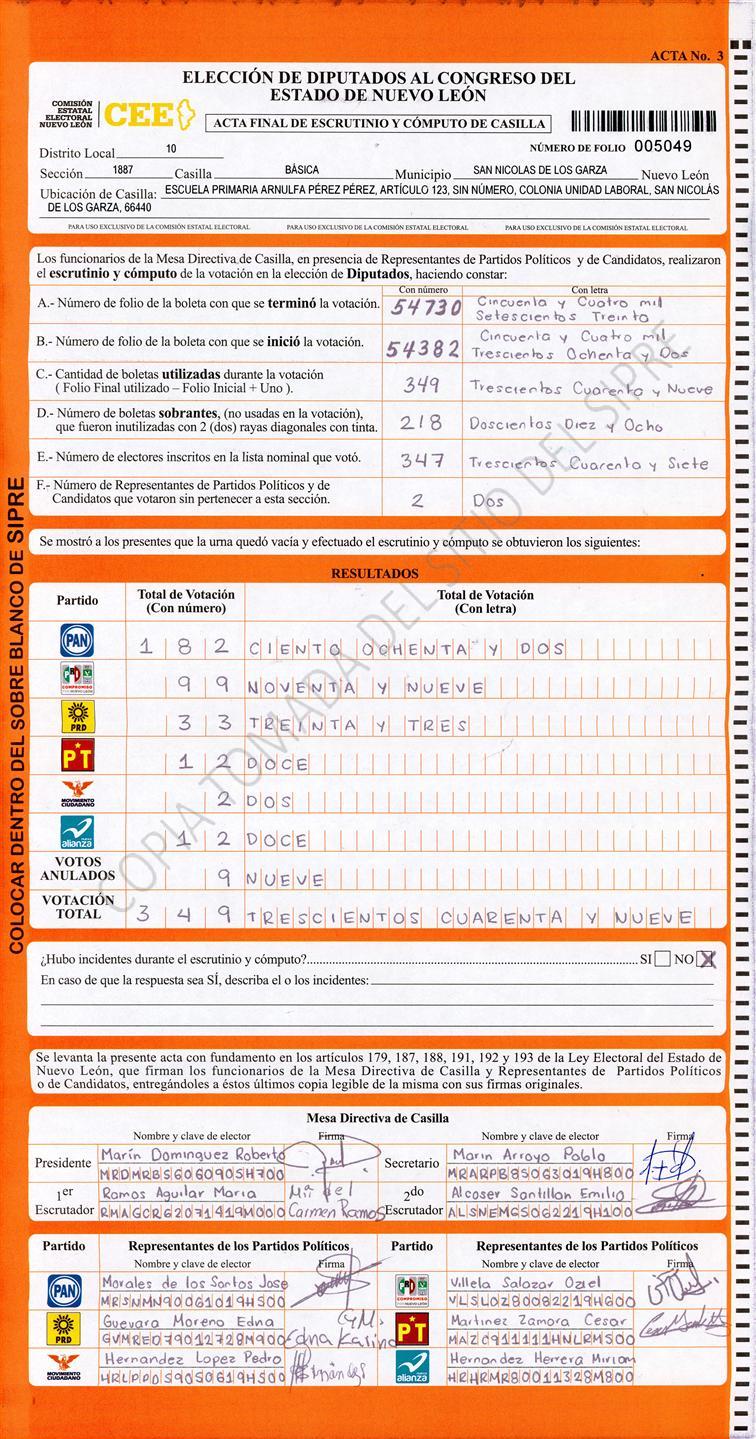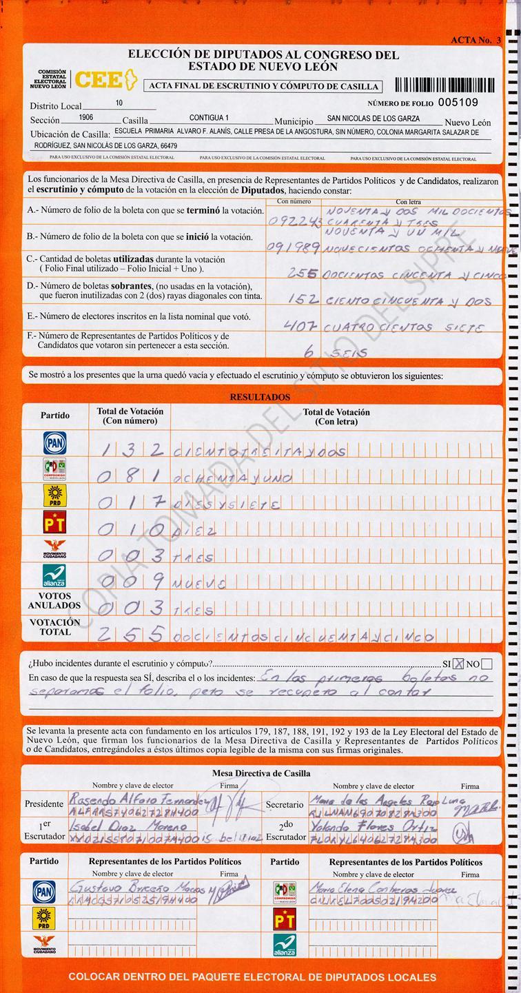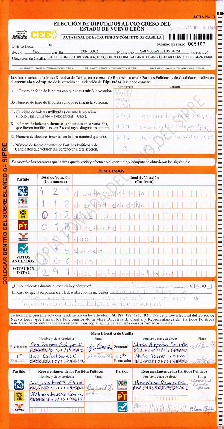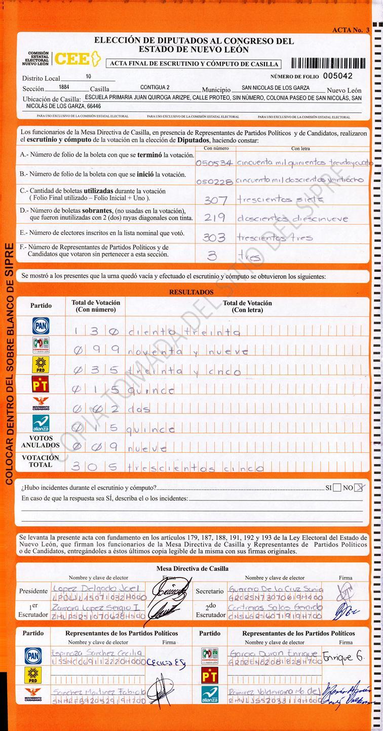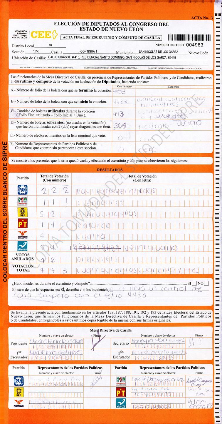 , (8) Copiado Movido , (9) Con Signos Inválidos , (10) Excede Lista Nominal , (11) Otra |
