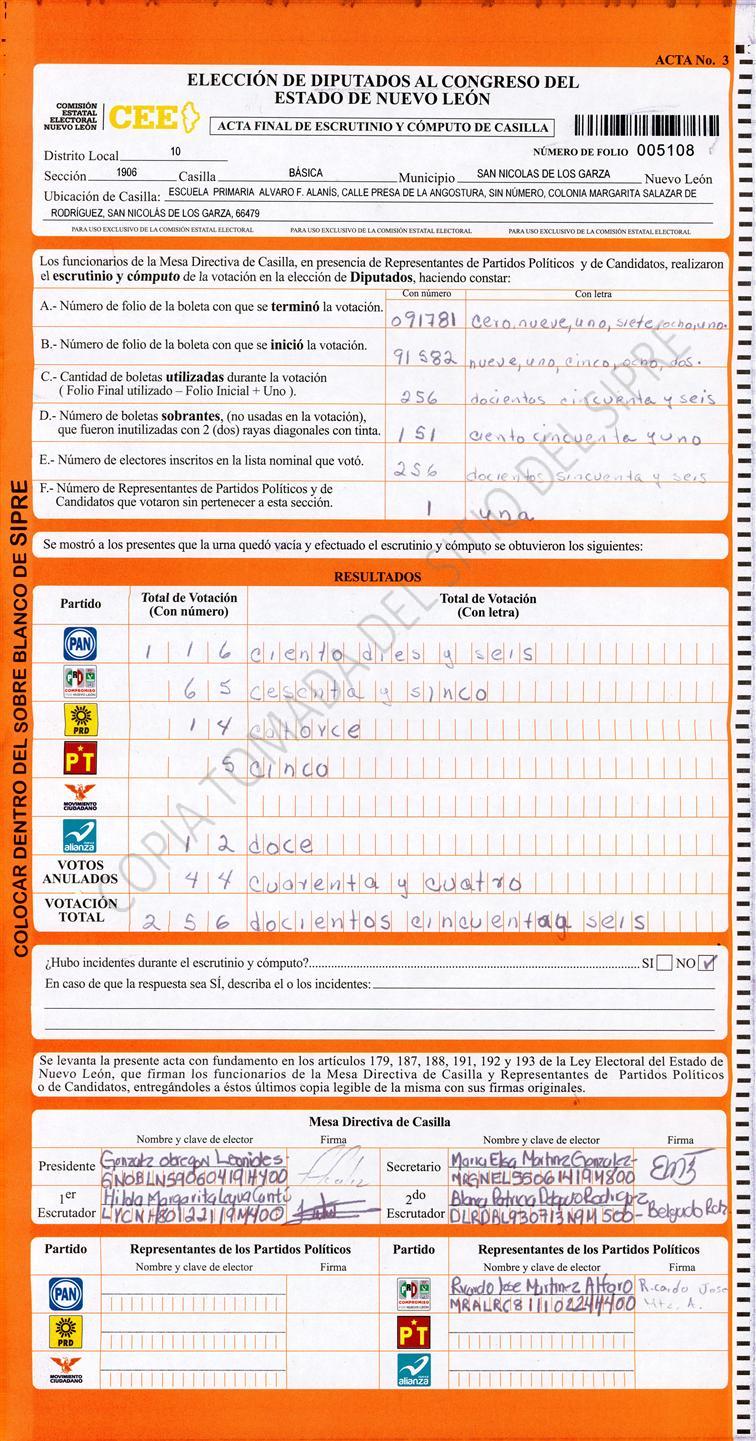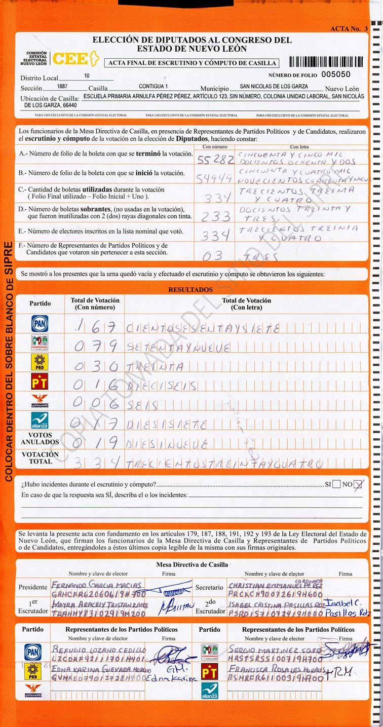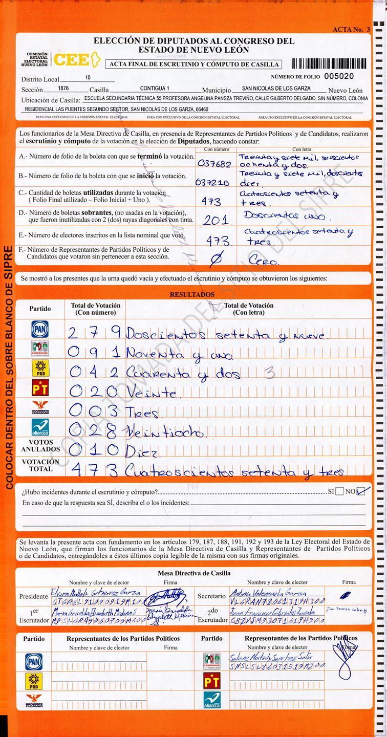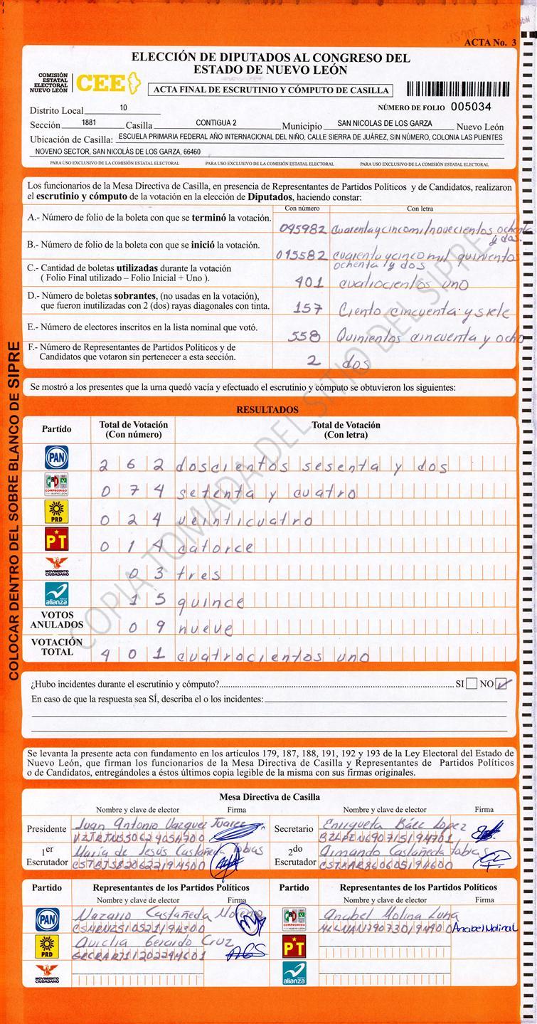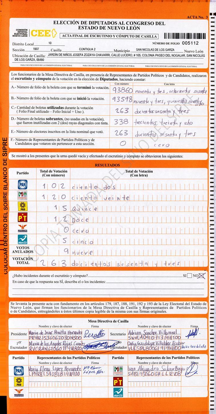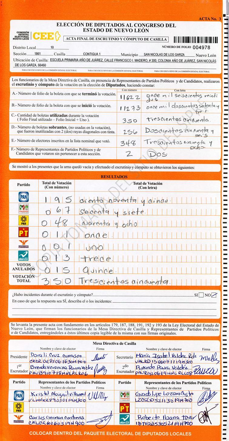, (8) Copiado Movido , (9) Con Signos Inválidos , (10) Excede Lista Nominal , (11) Otra |