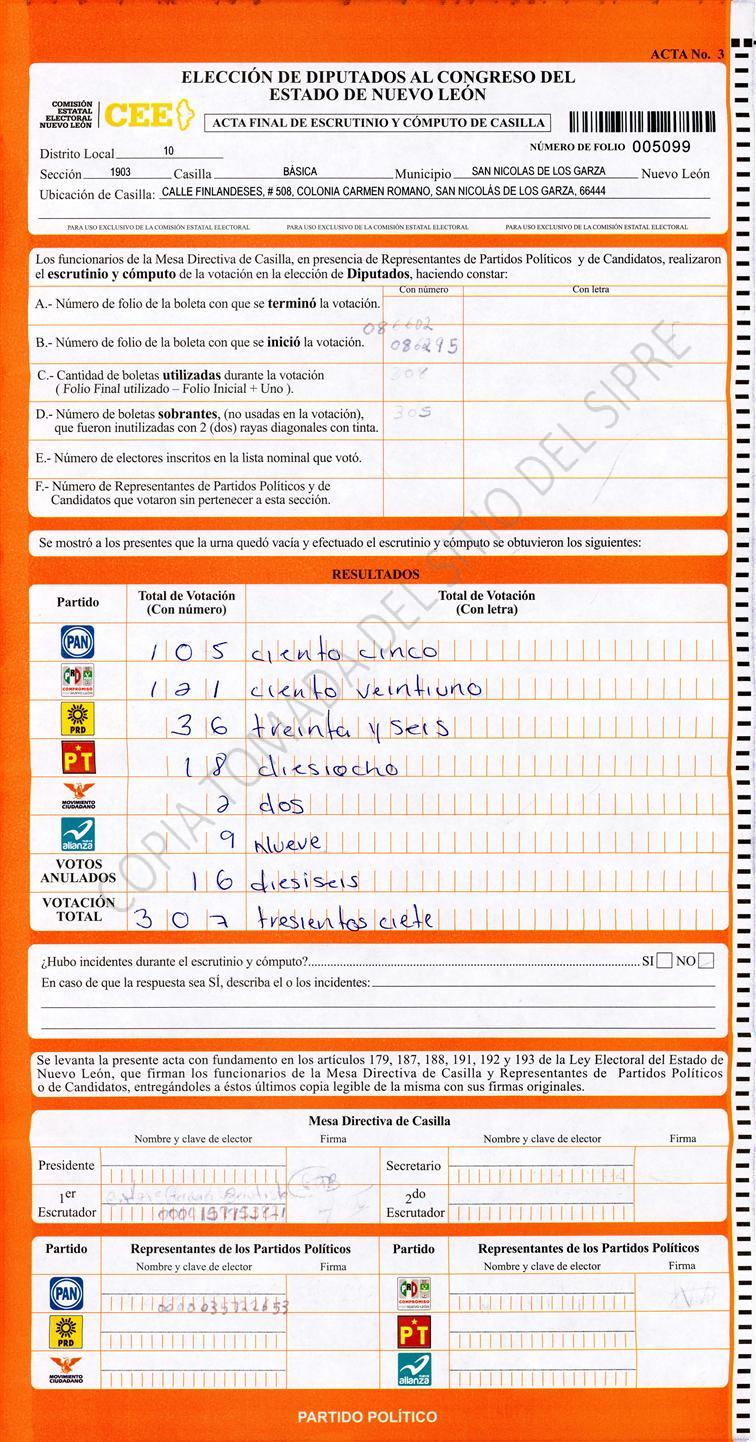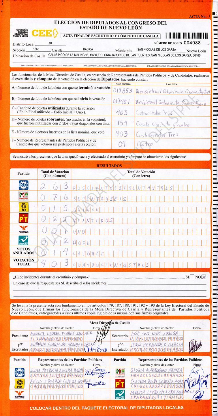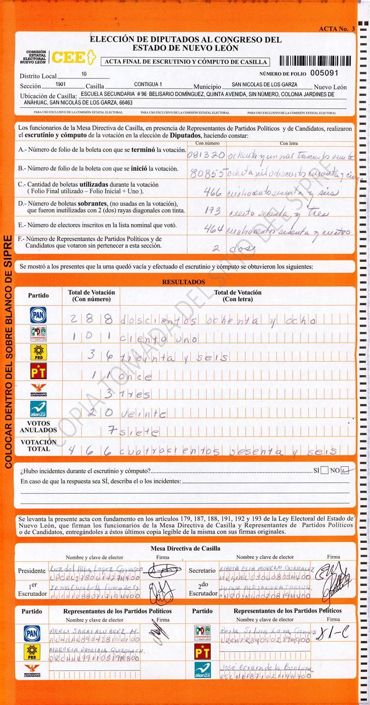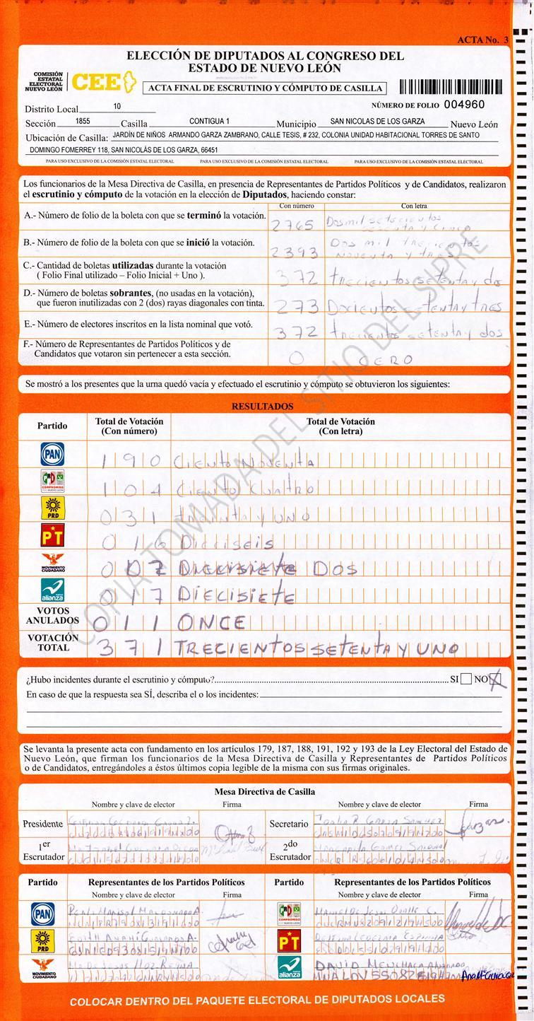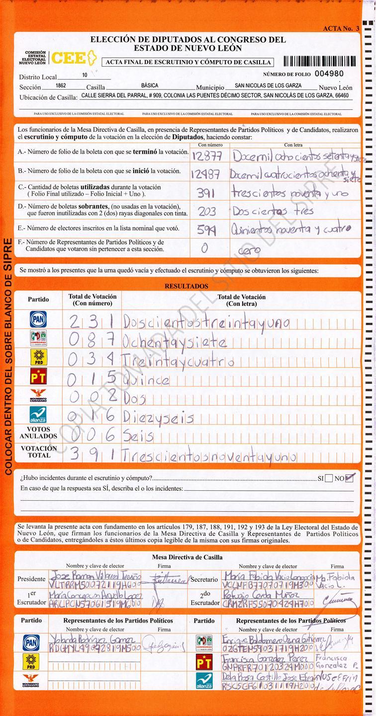, (8) Copiado Movido , (9) Con Signos Inválidos , (10) Excede Lista Nominal , (11) Otra |