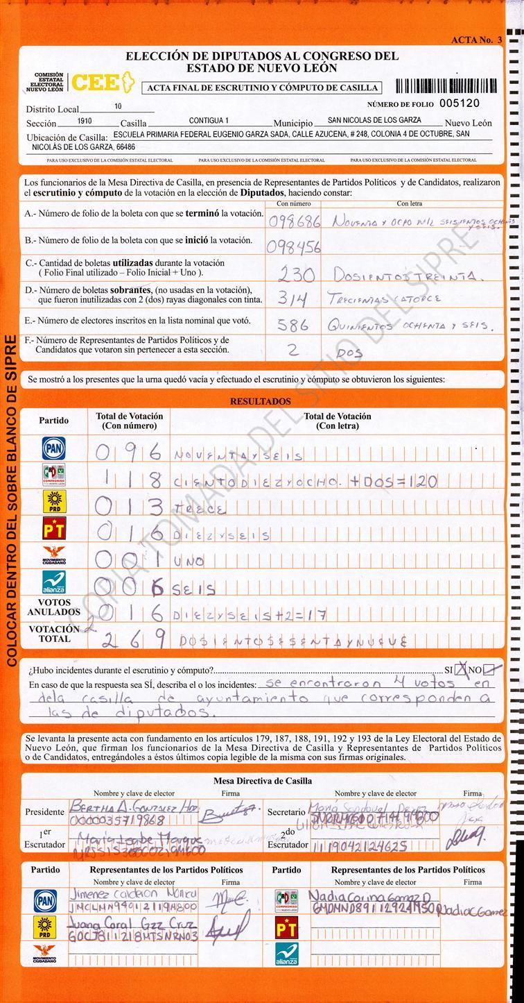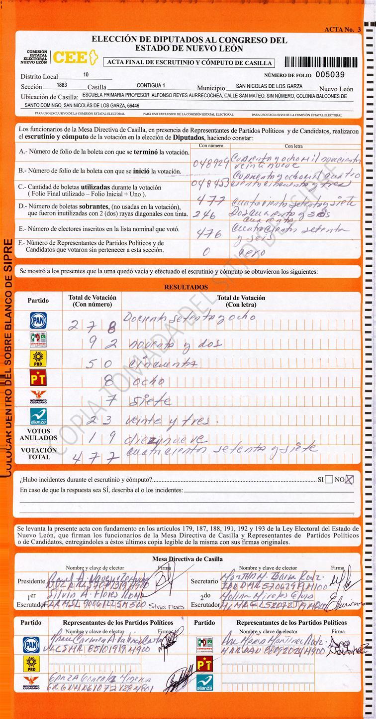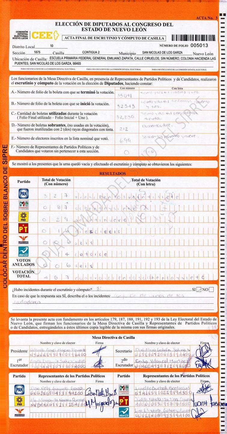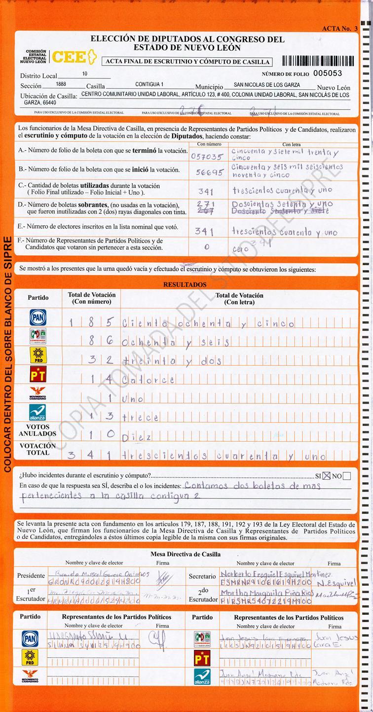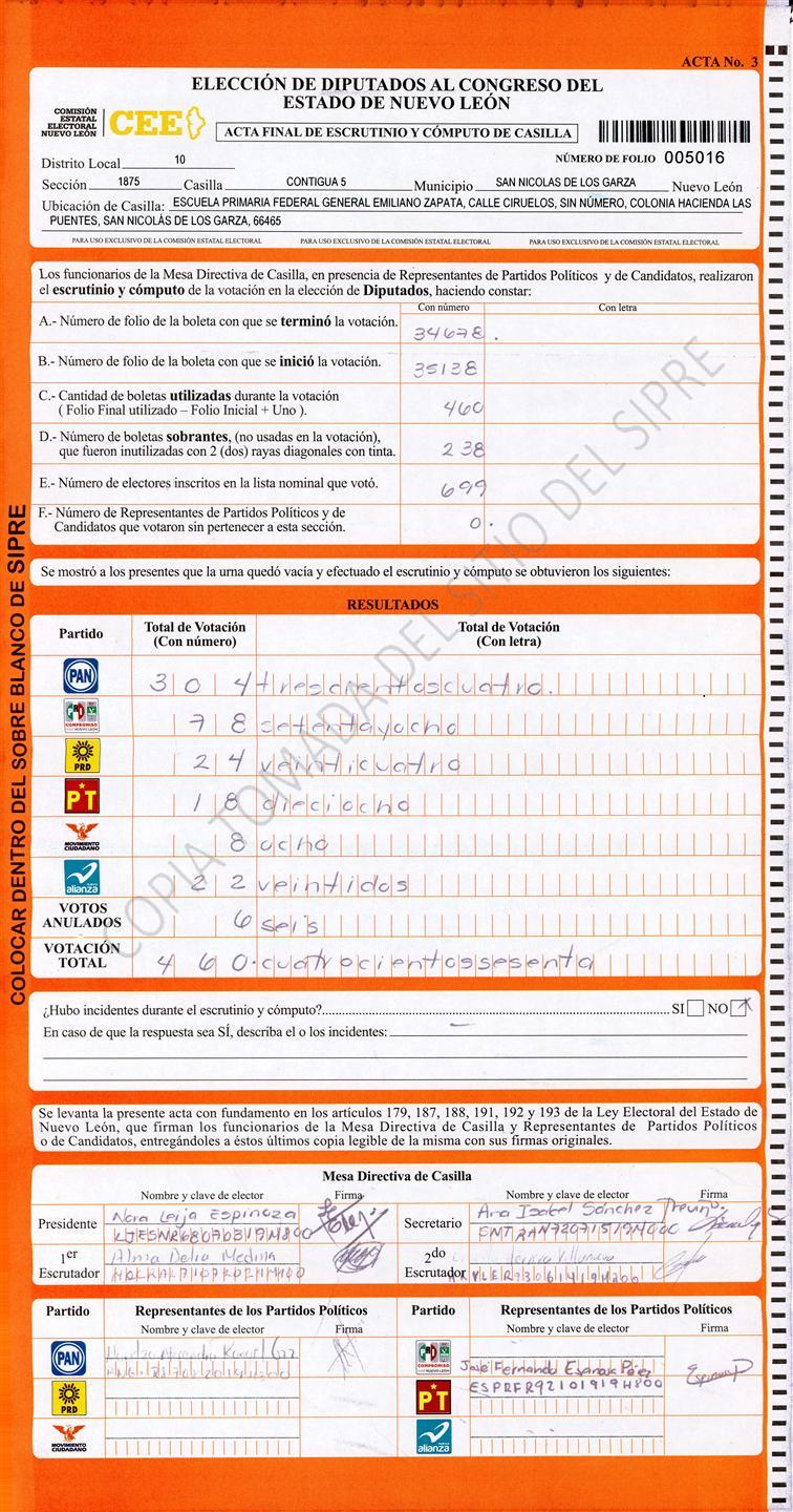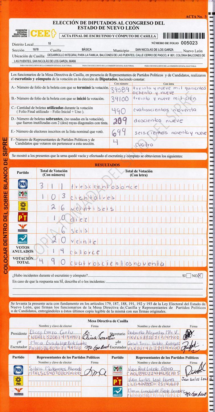 , (8) Copiado Movido , (9) Con Signos Inválidos , (10) Excede Lista Nominal , (11) Otra |