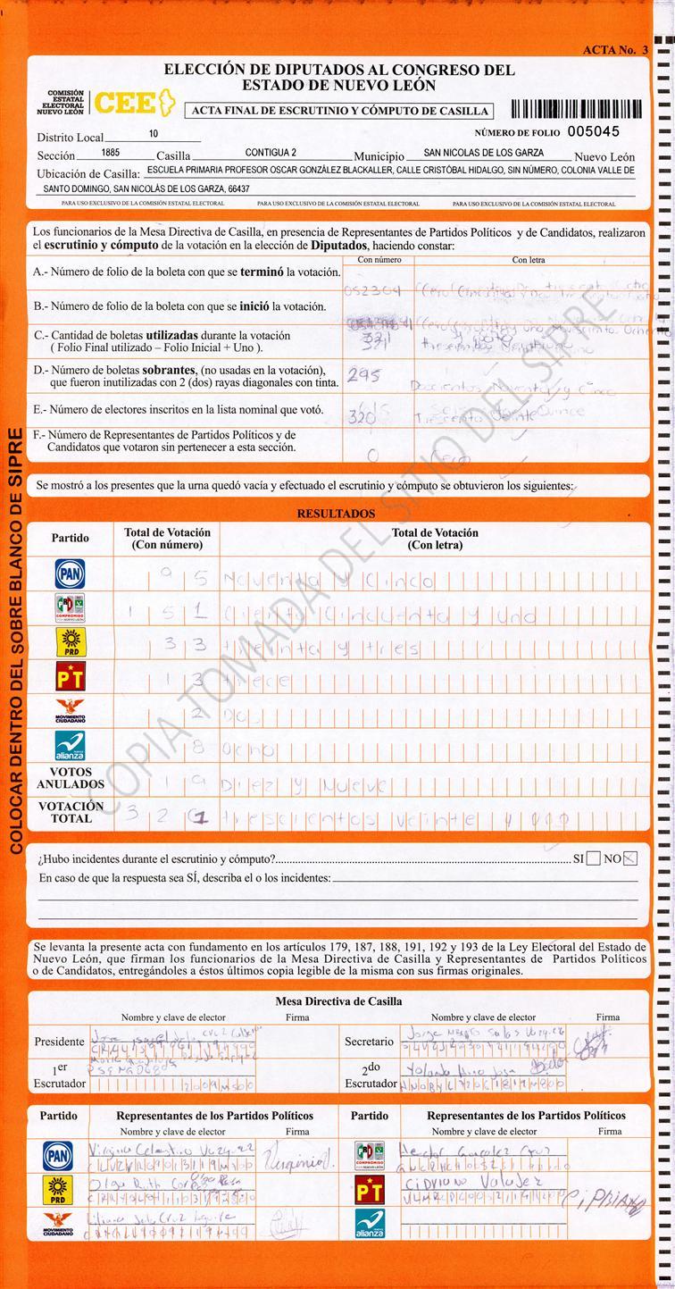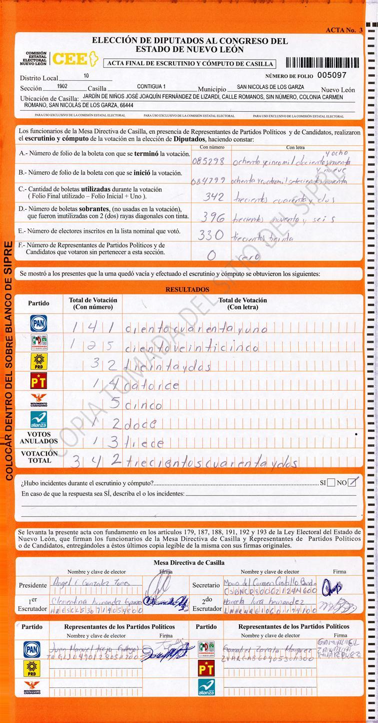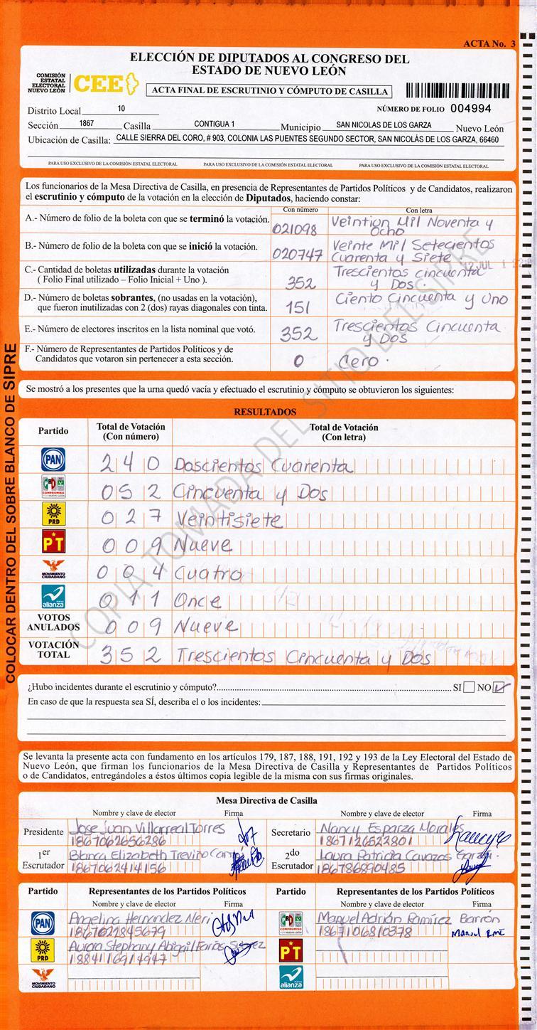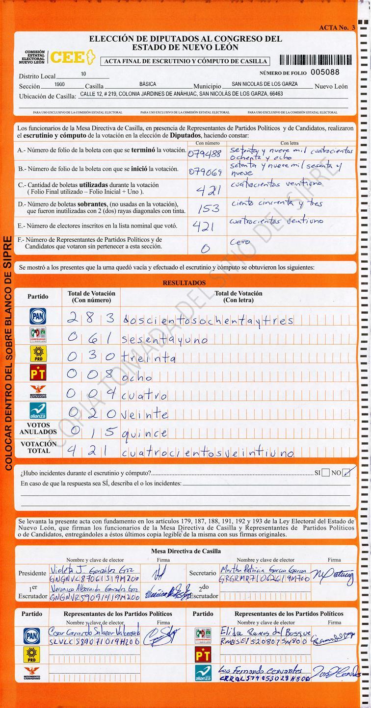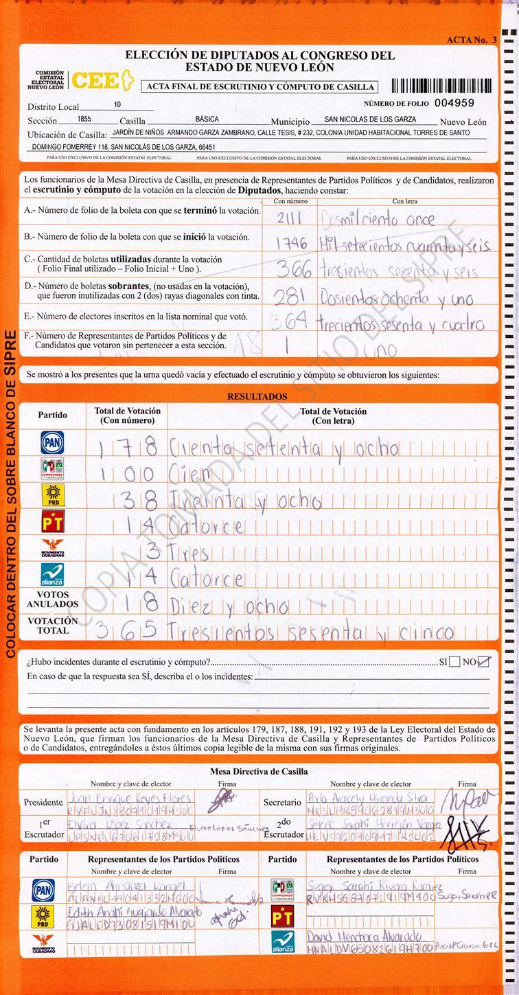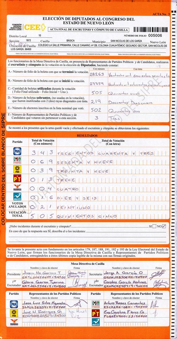 , (8) Copiado Movido , (9) Con Signos Inválidos , (10) Excede Lista Nominal , (11) Otra |