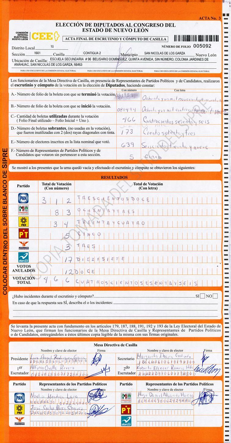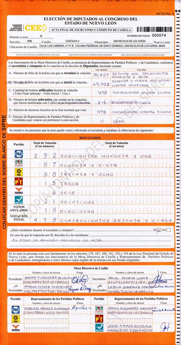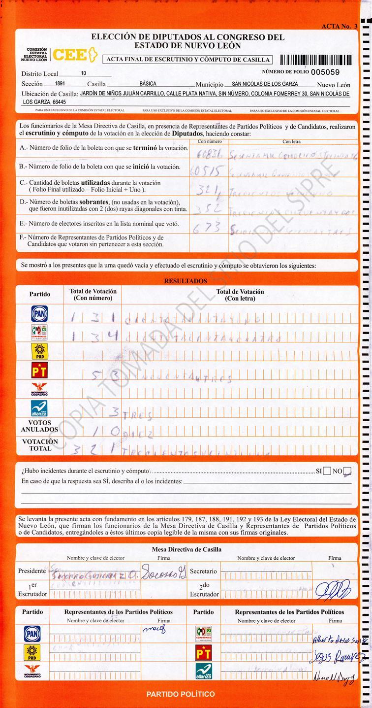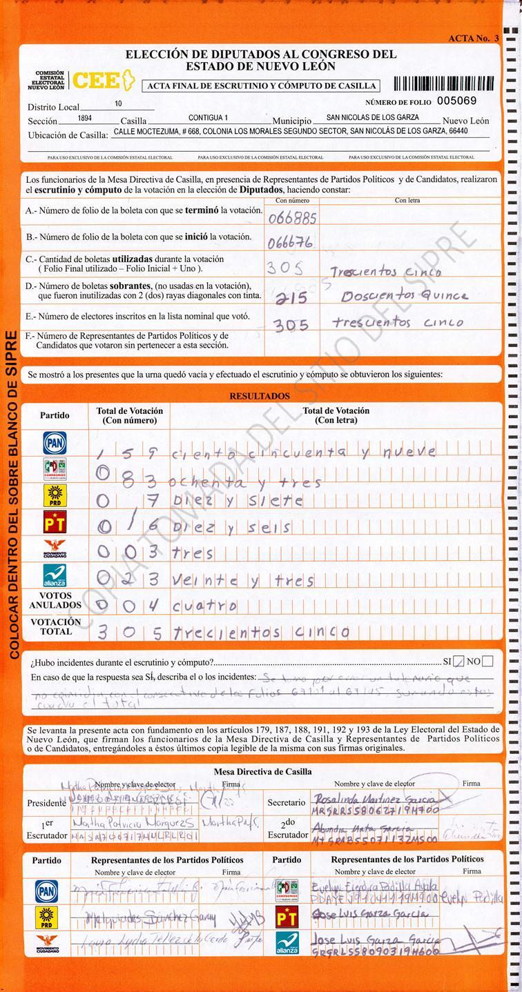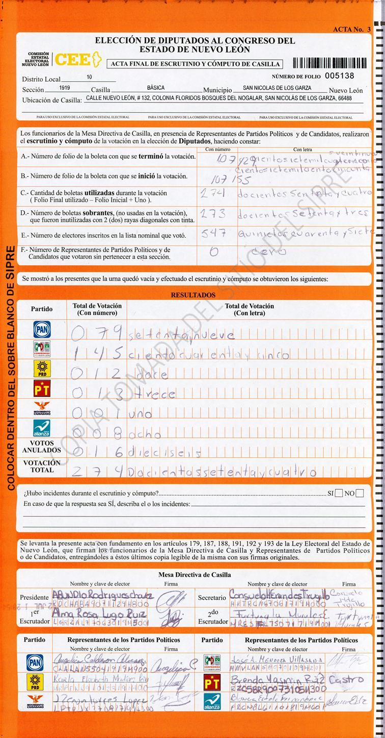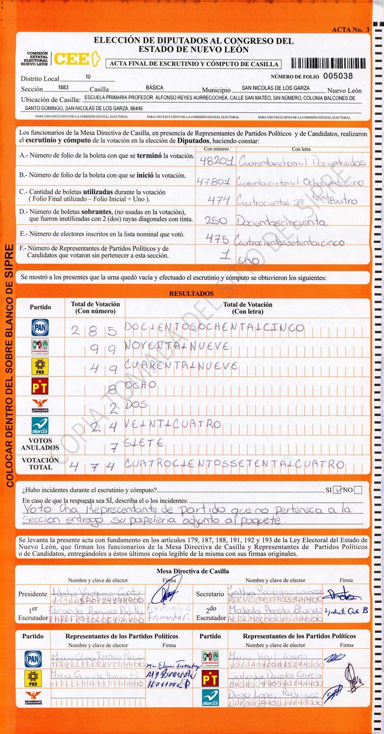 , (8) Copiado Movido , (9) Con Signos Inválidos , (10) Excede Lista Nominal , (11) Otra |