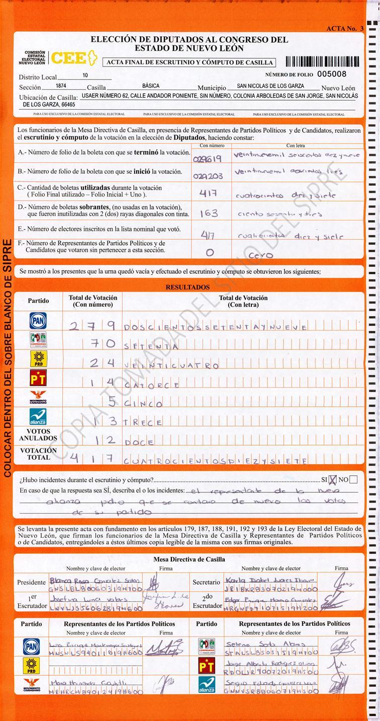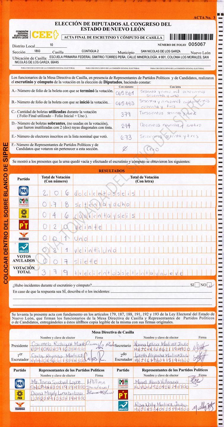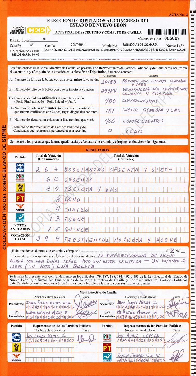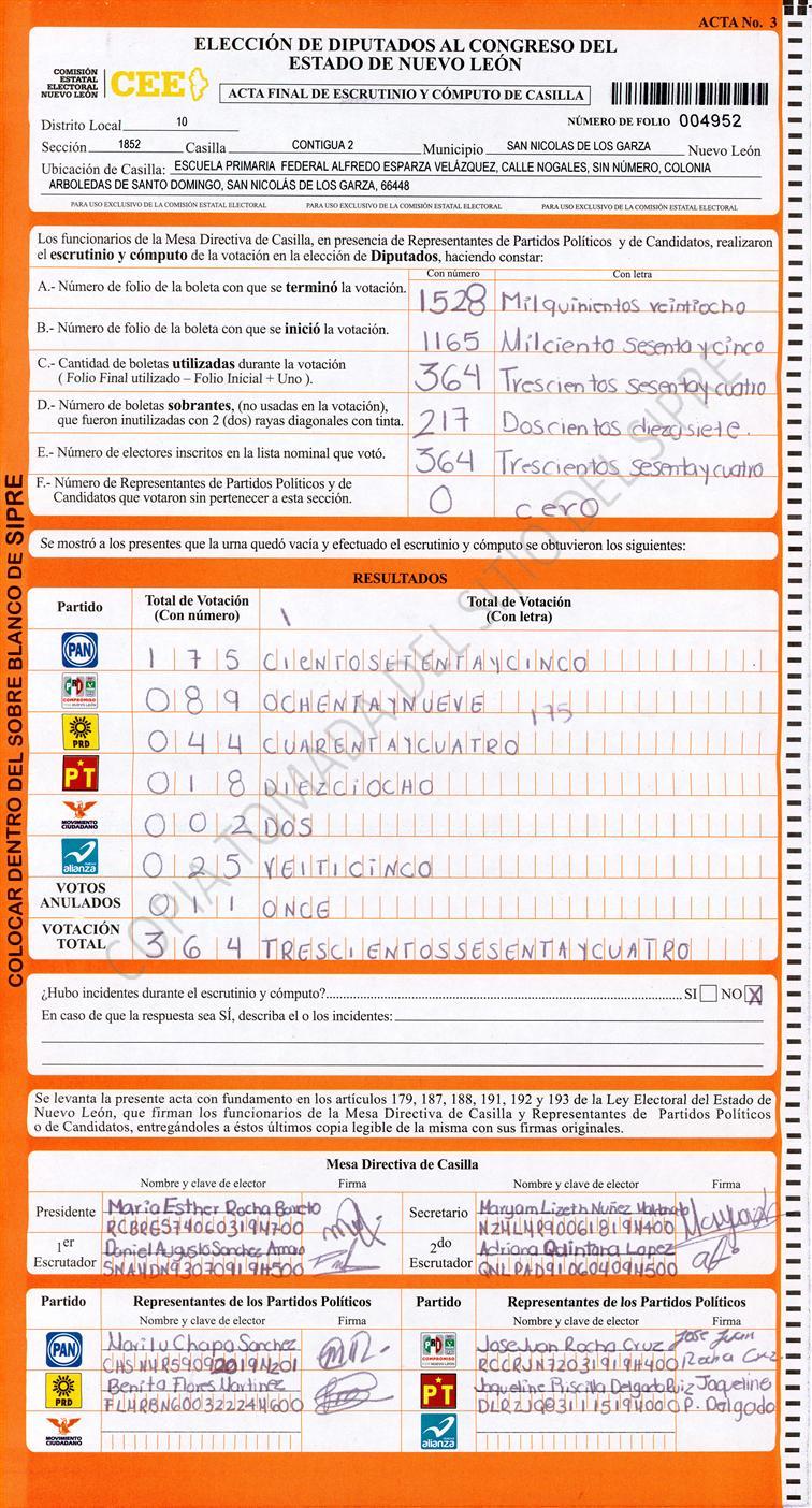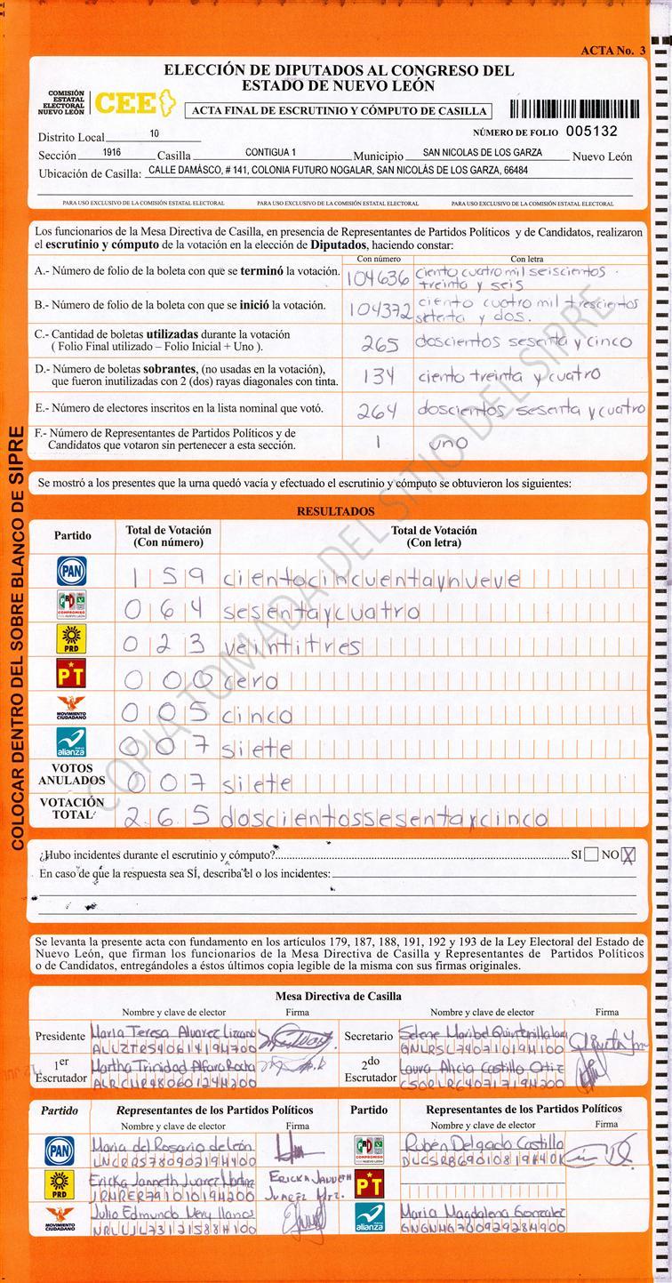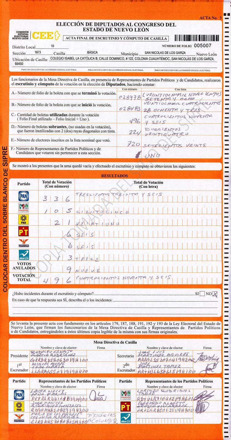 , (8) Copiado Movido , (9) Con Signos Inválidos , (10) Excede Lista Nominal , (11) Otra |