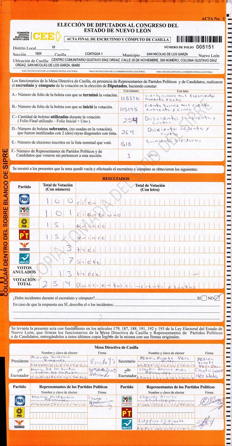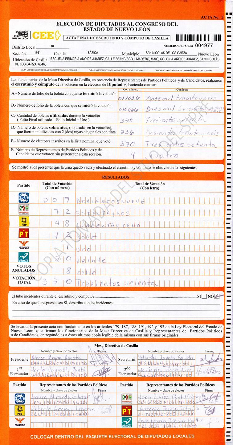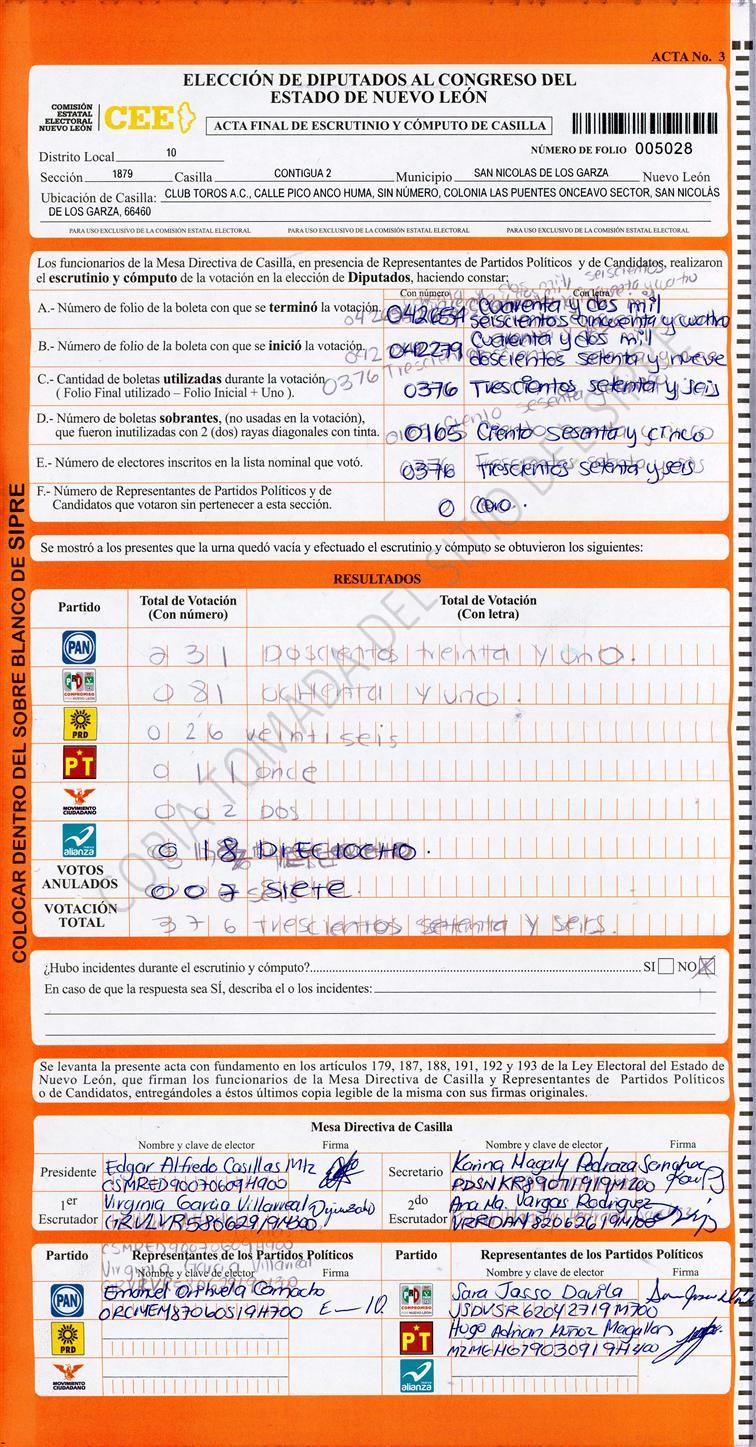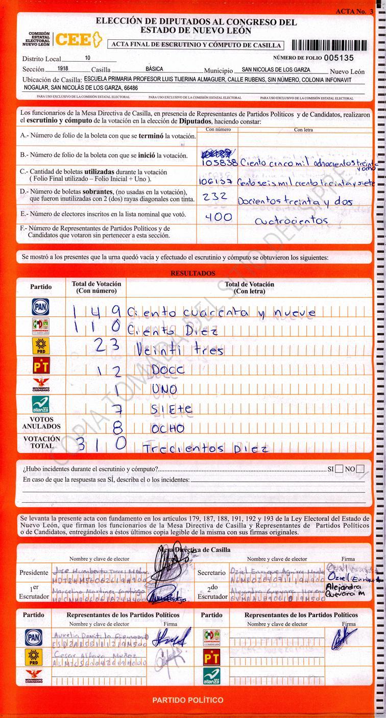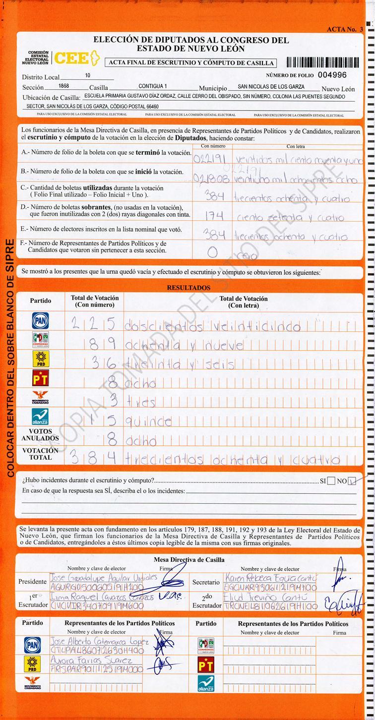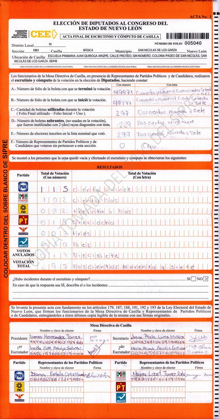 , (8) Copiado Movido , (9) Con Signos Inválidos , (10) Excede Lista Nominal , (11) Otra |