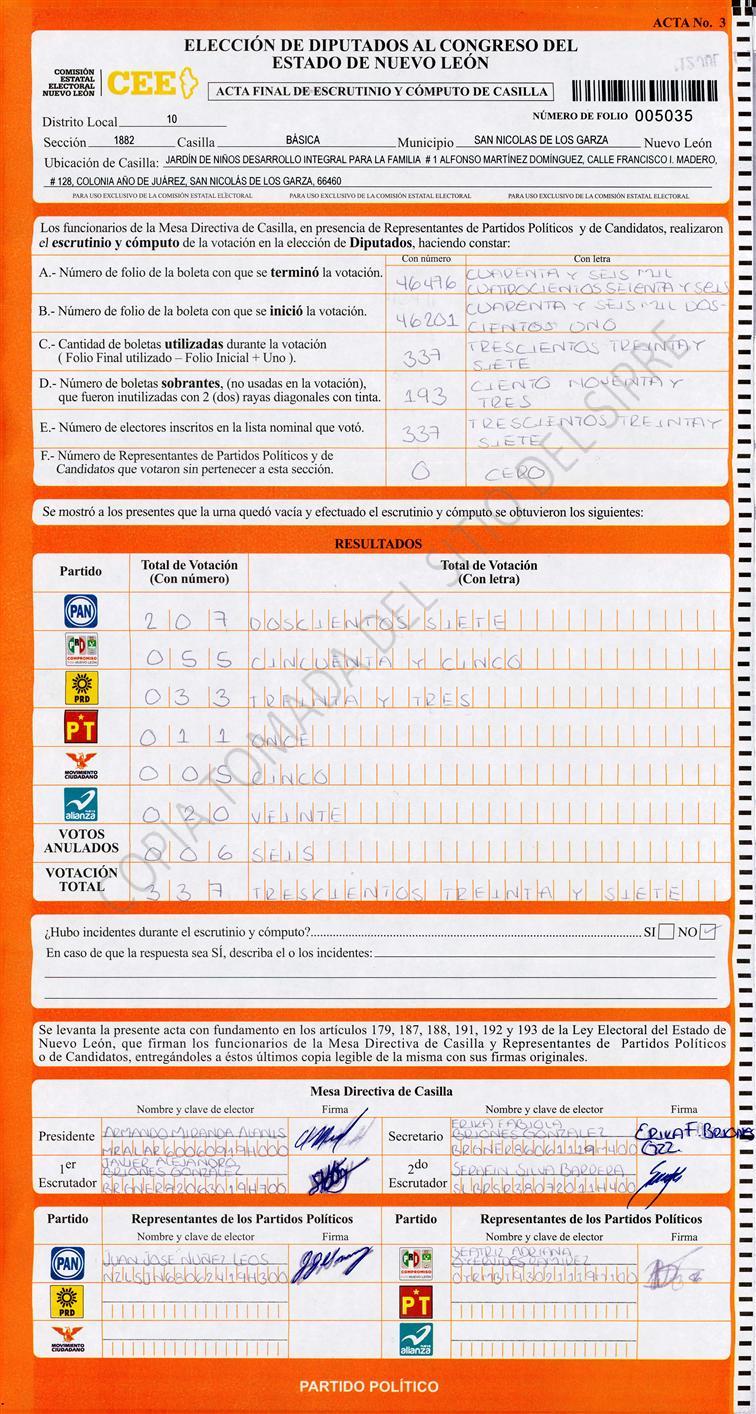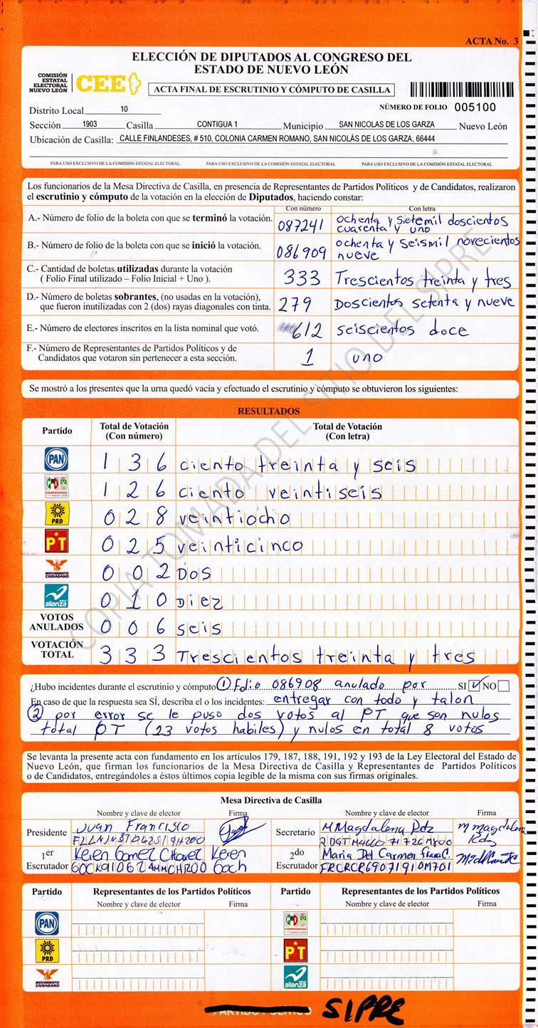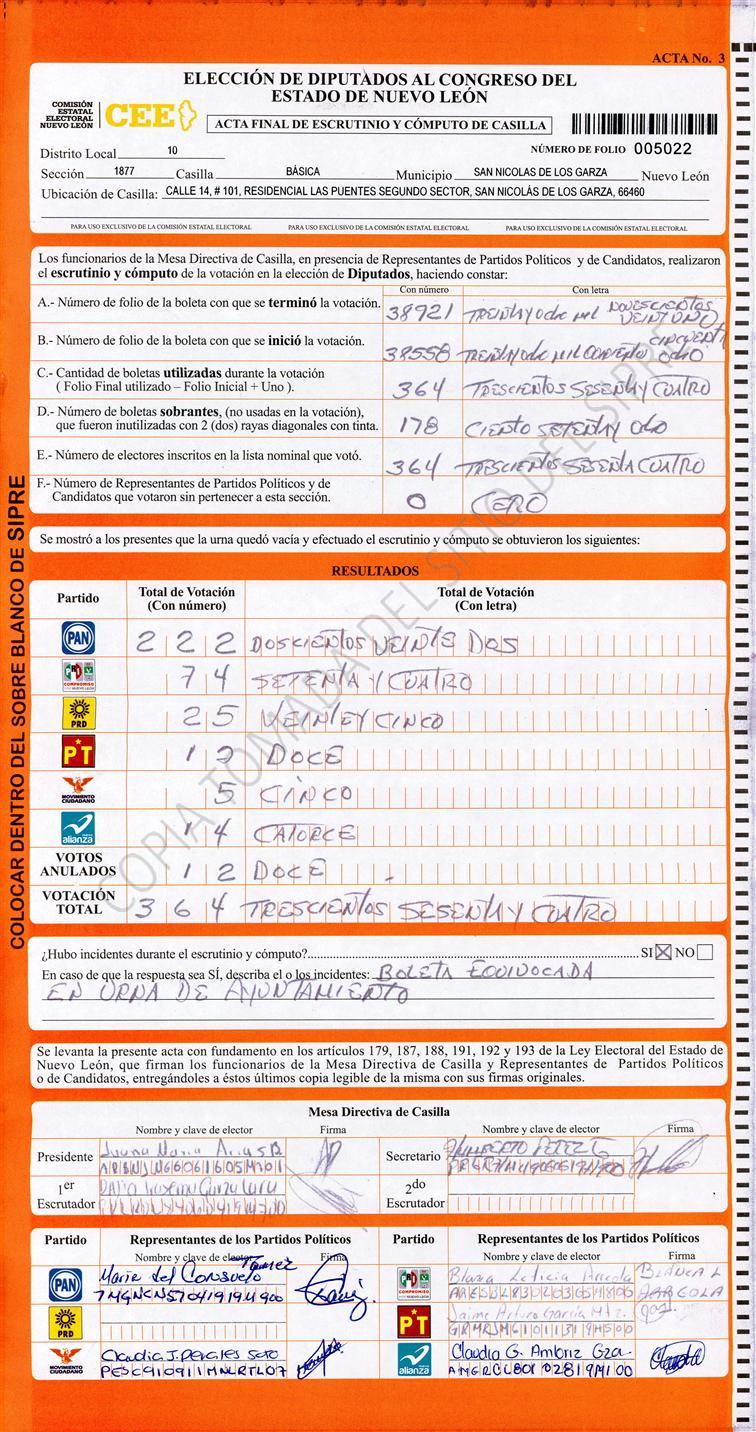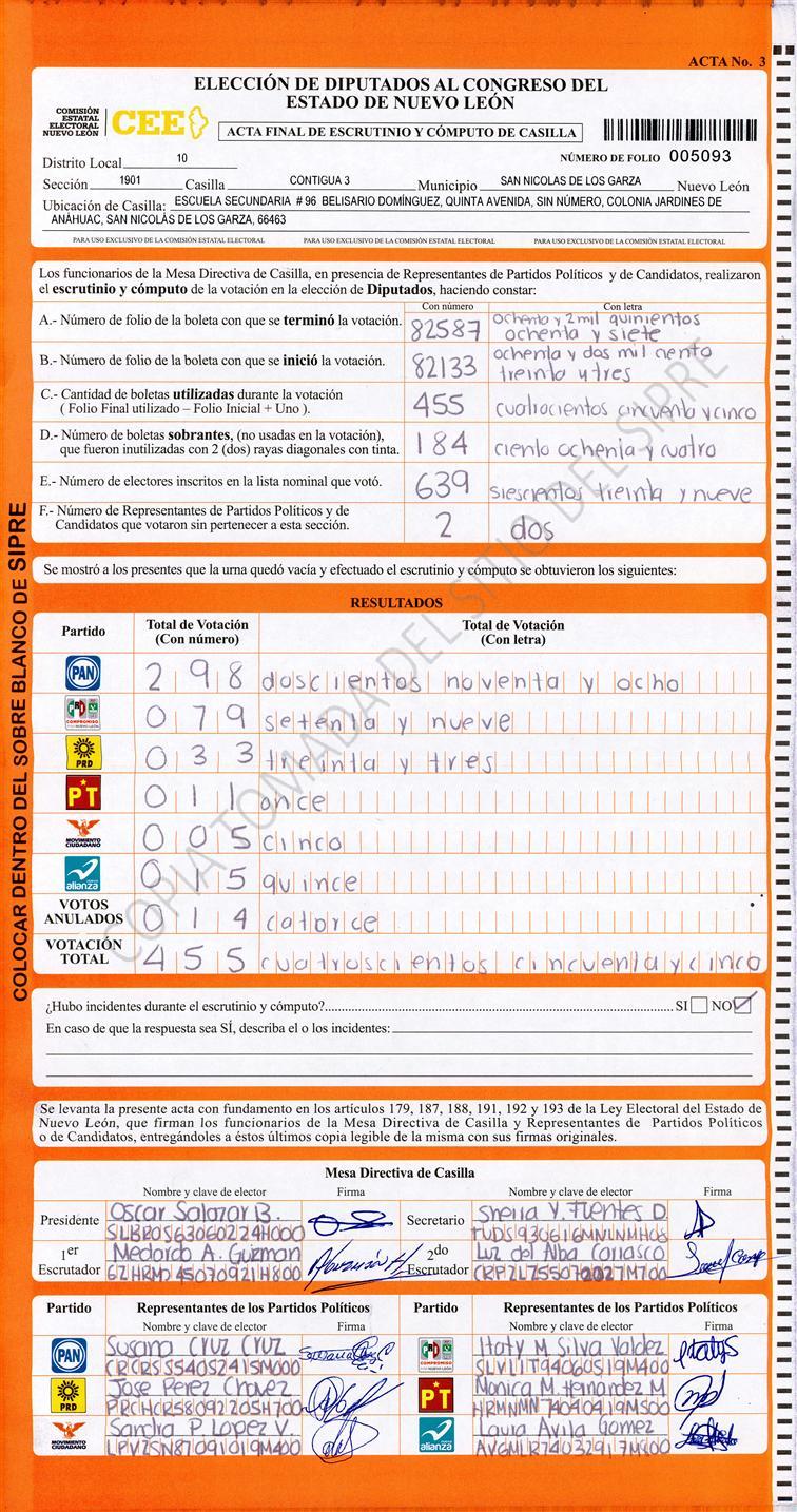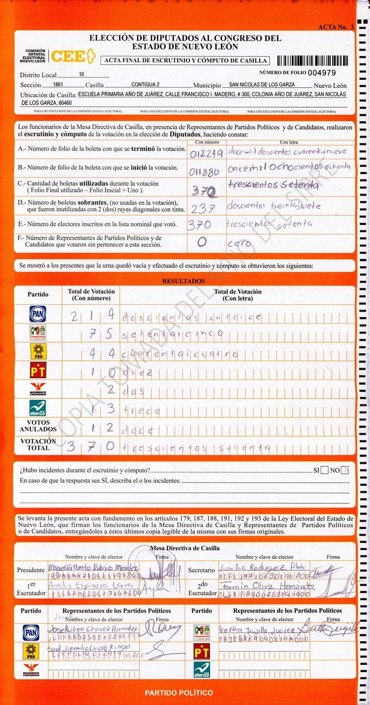 , (8) Copiado Movido , (9) Con Signos Inválidos , (10) Excede Lista Nominal , (11) Otra |
