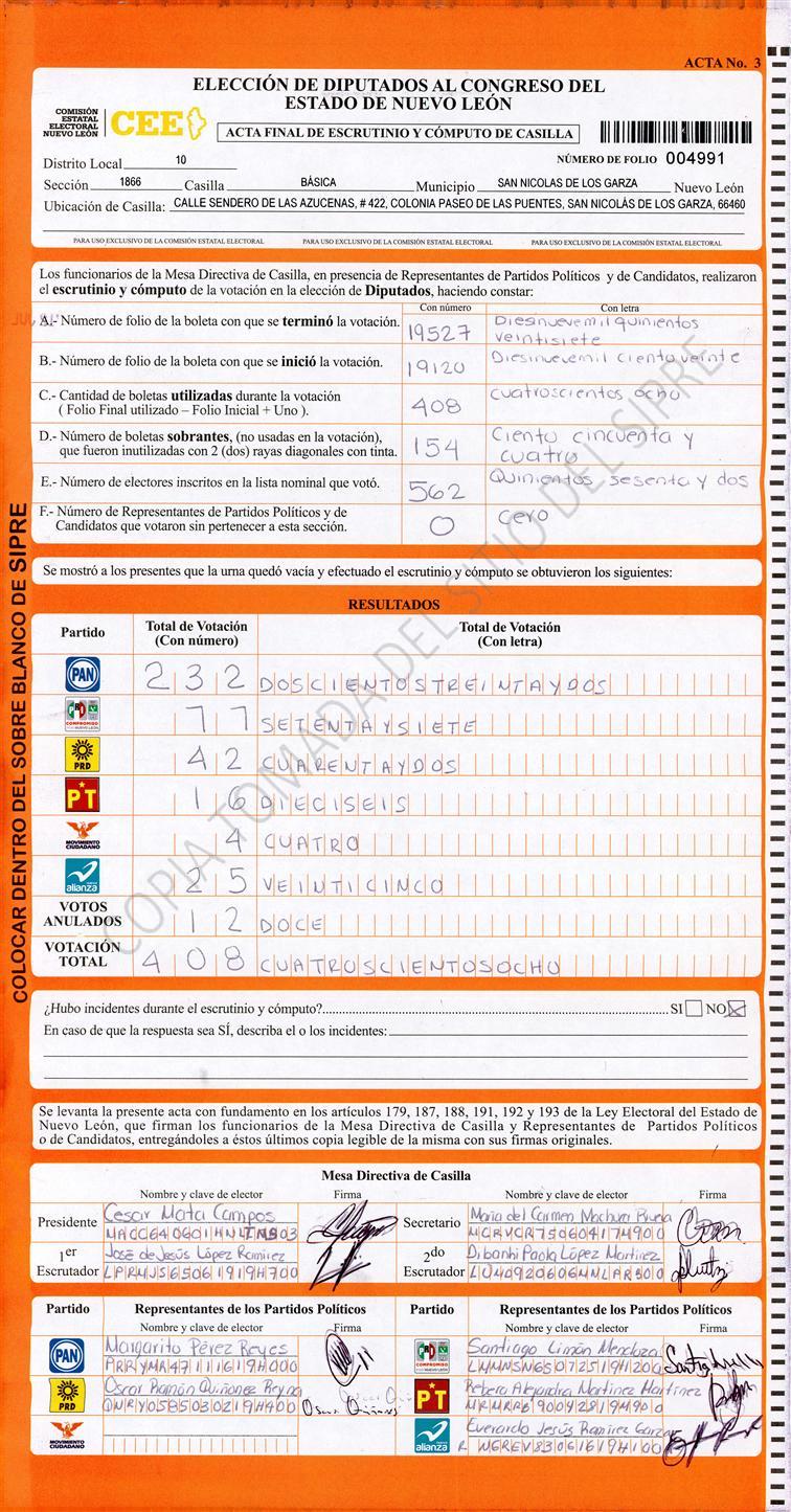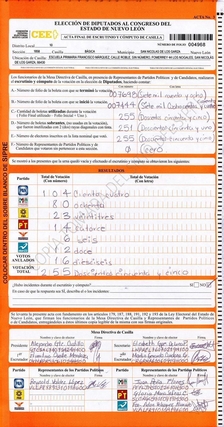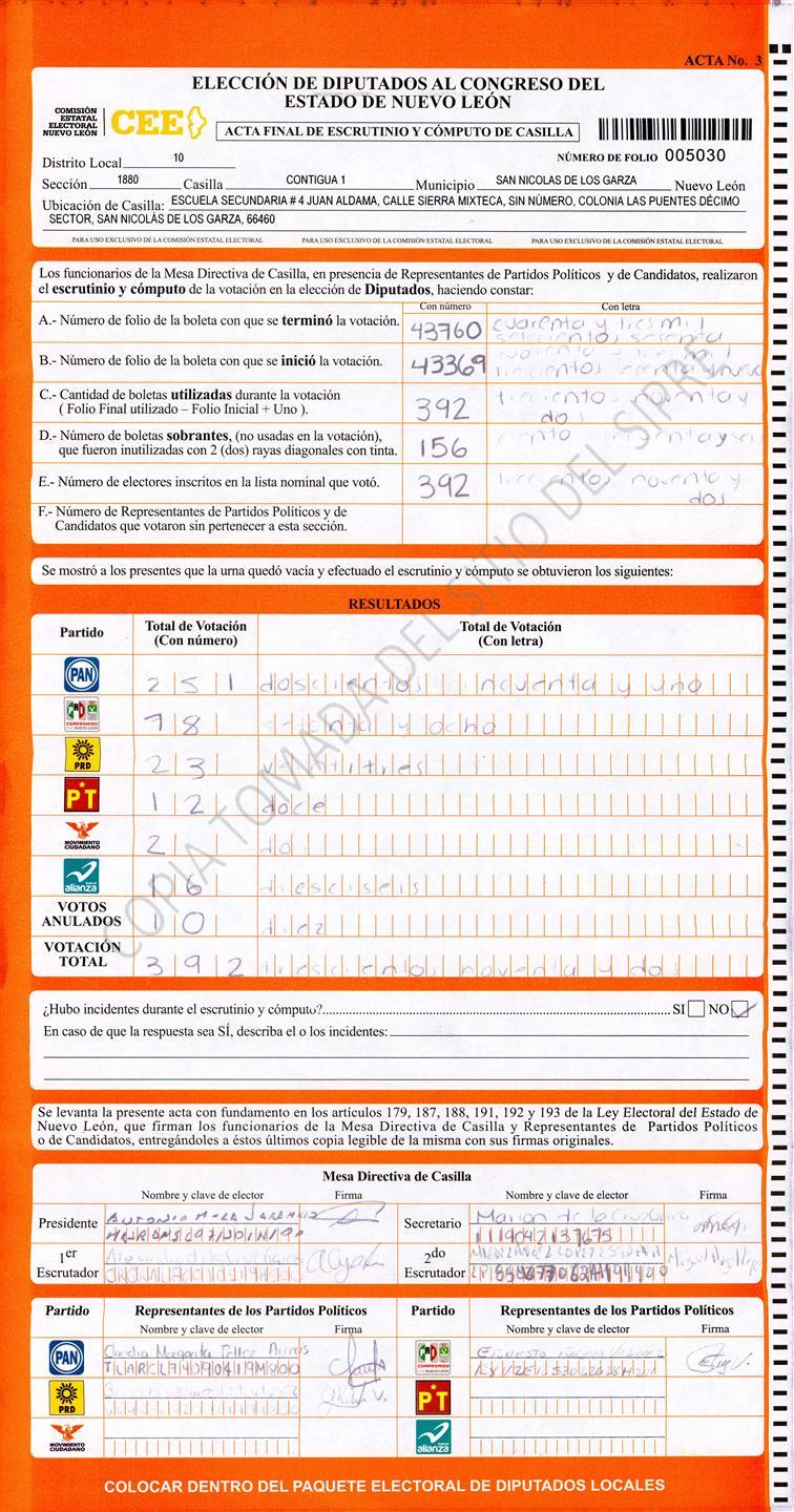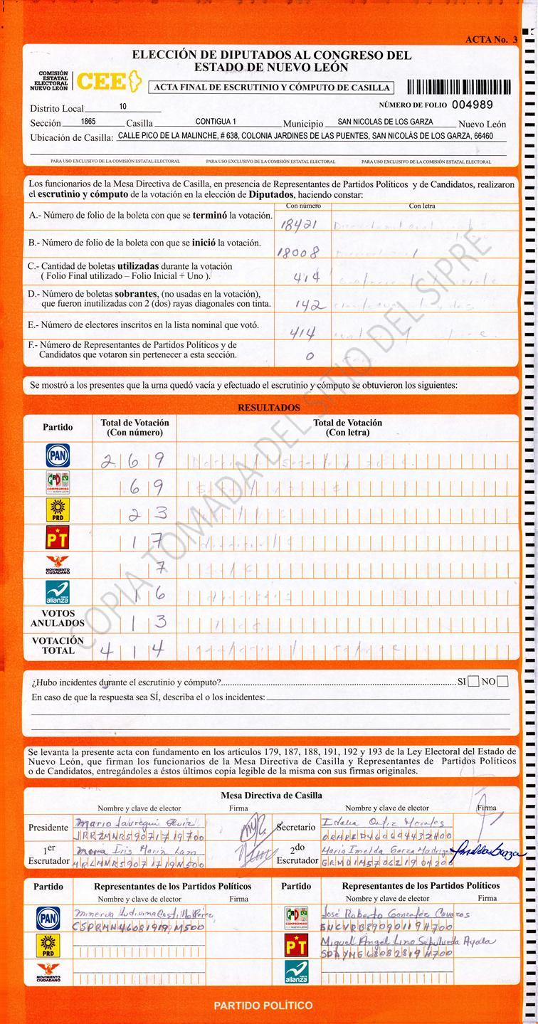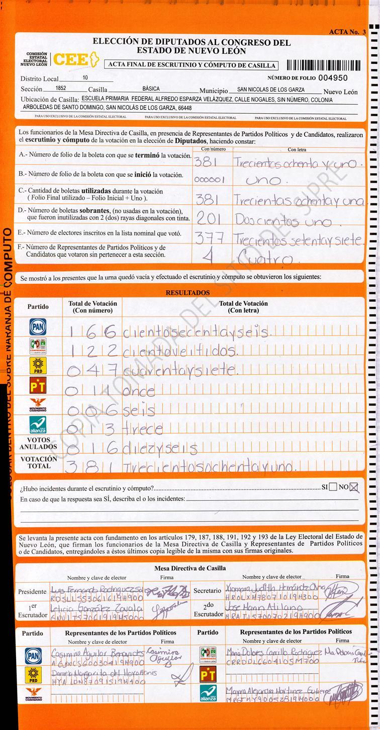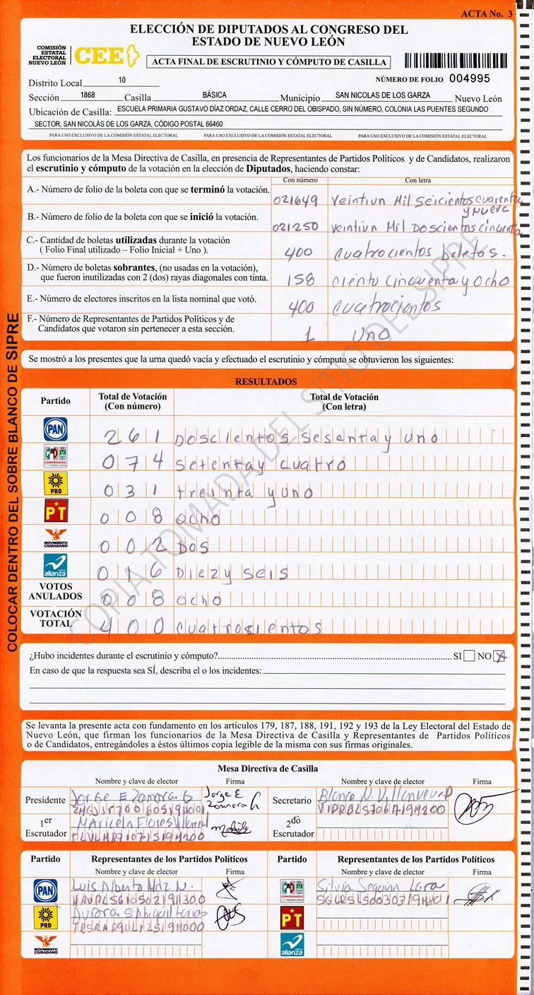 , (8) Copiado Movido , (9) Con Signos Inválidos , (10) Excede Lista Nominal , (11) Otra |
