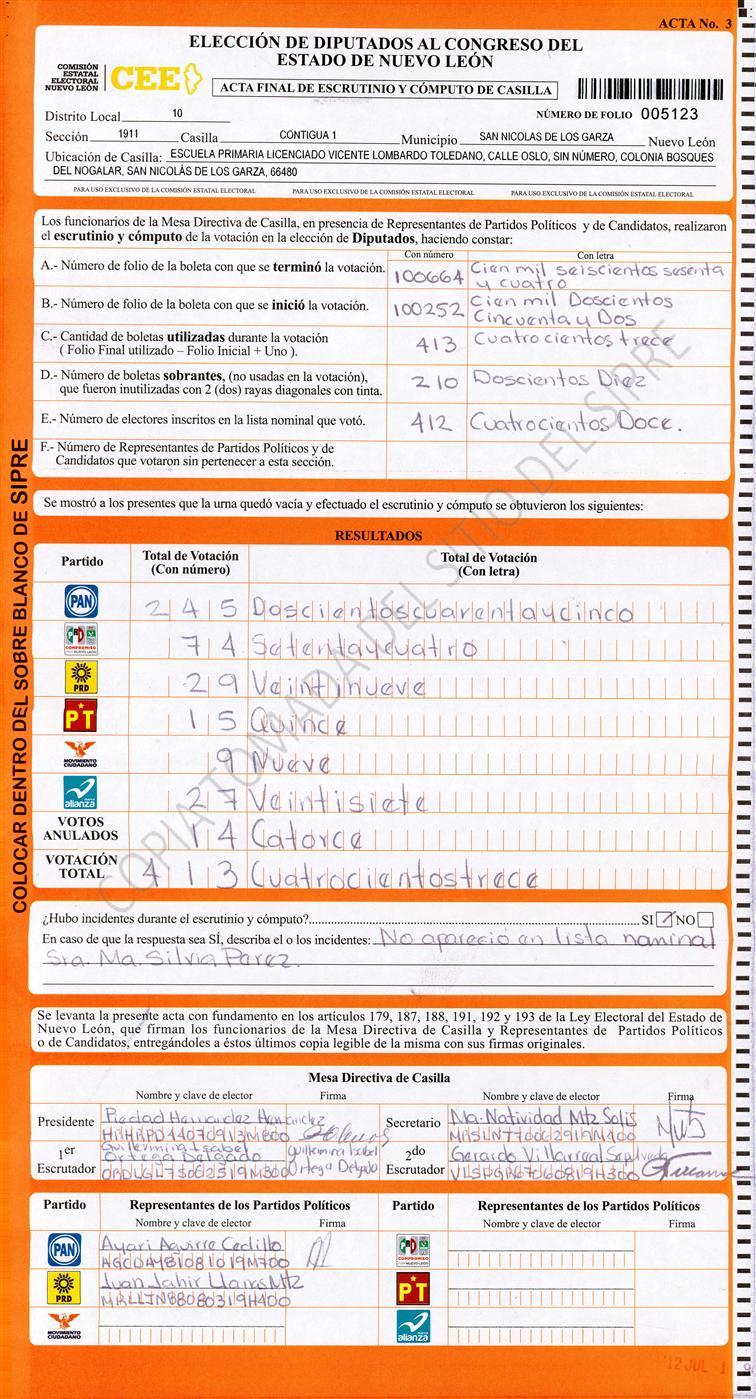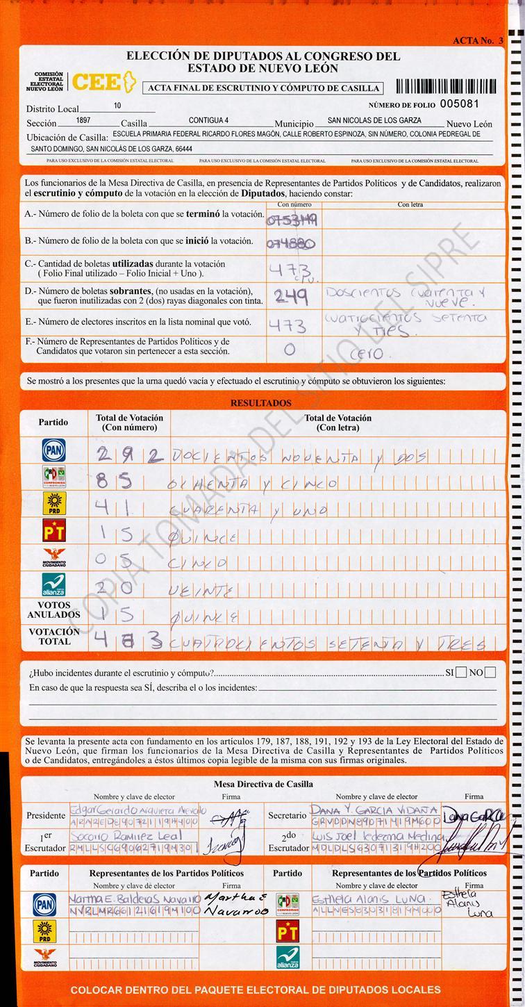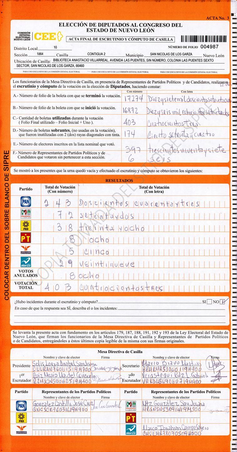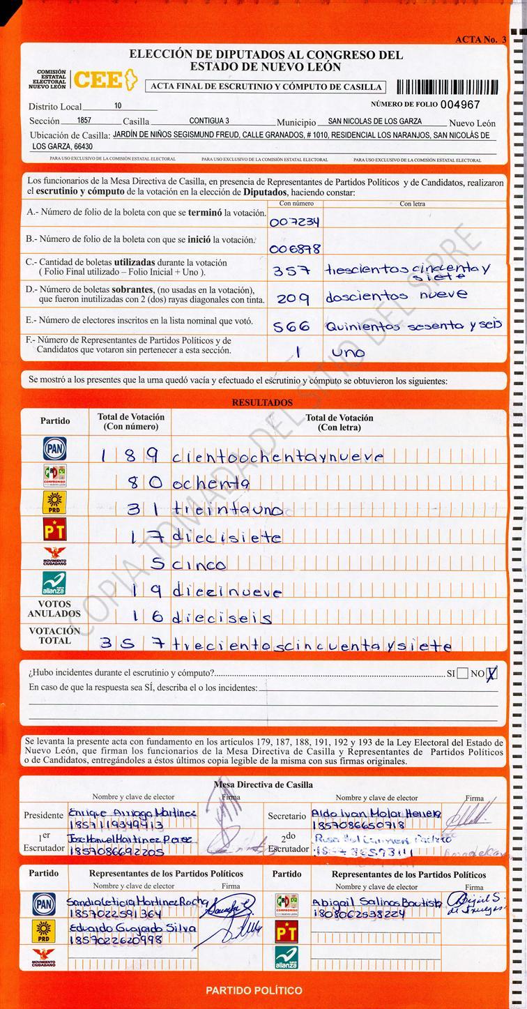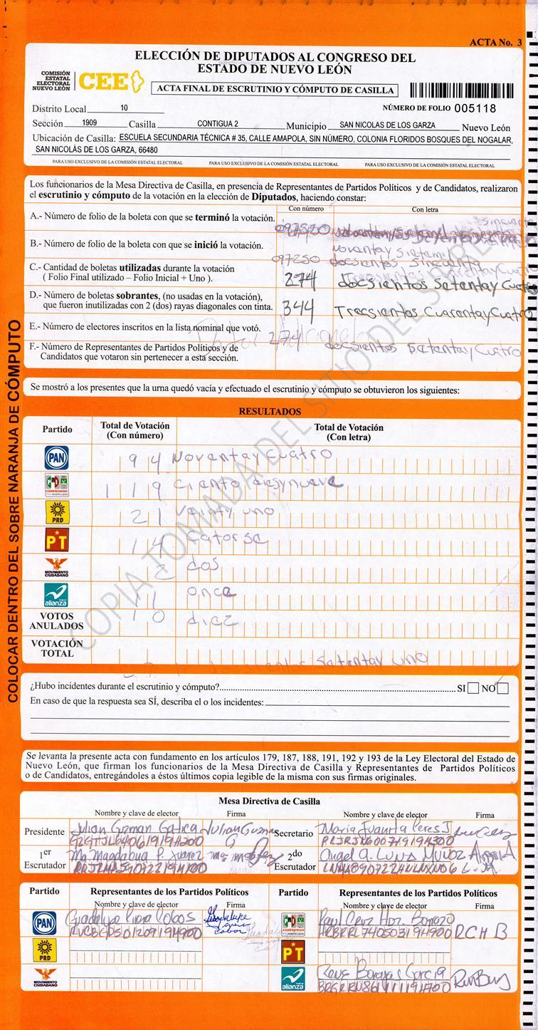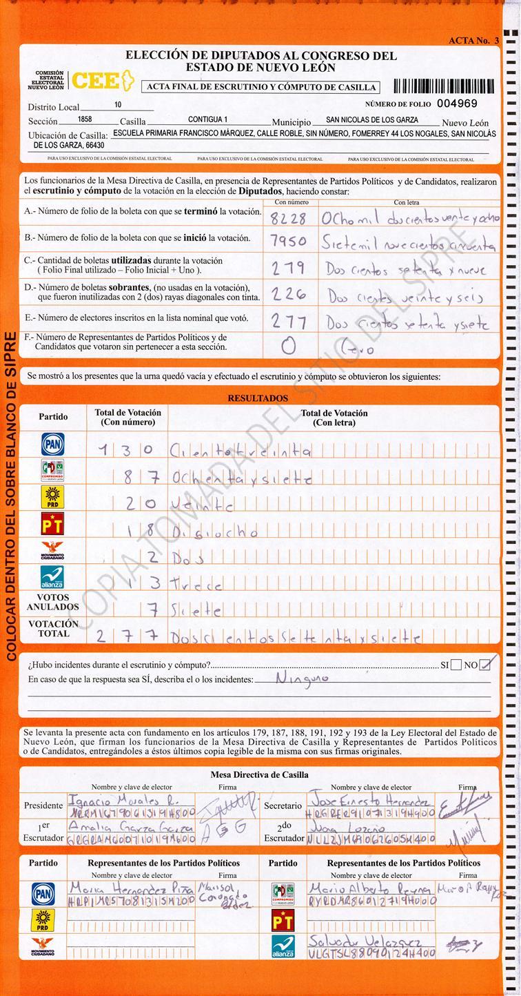 , (8) Copiado Movido , (9) Con Signos Inválidos , (10) Excede Lista Nominal , (11) Otra |