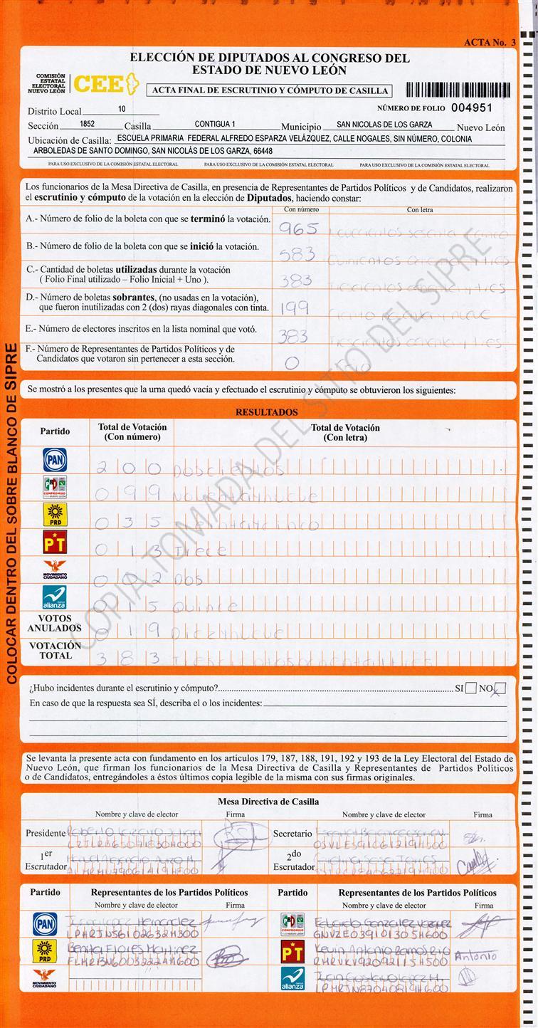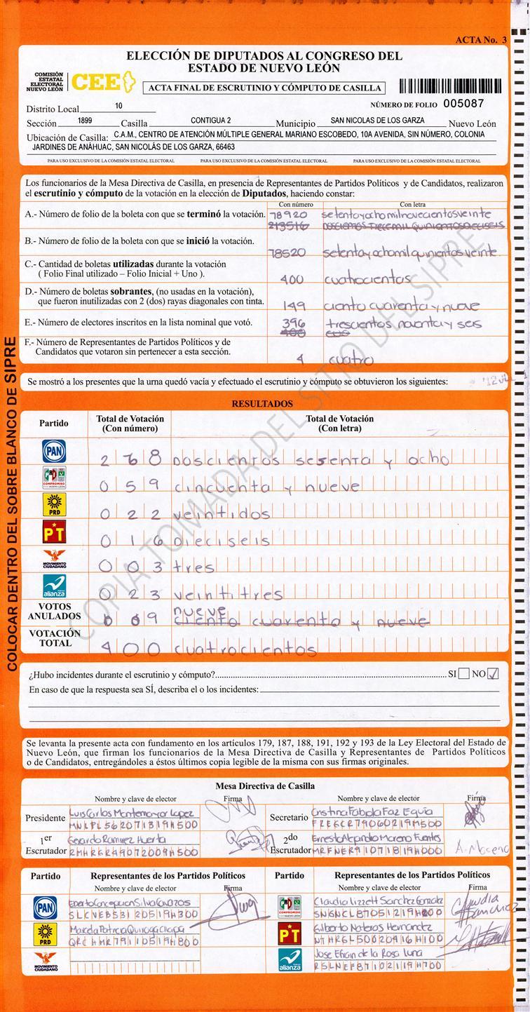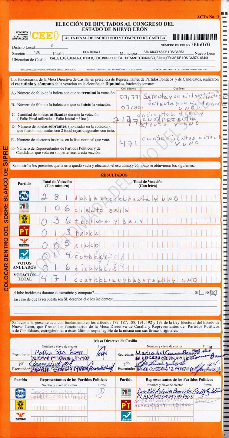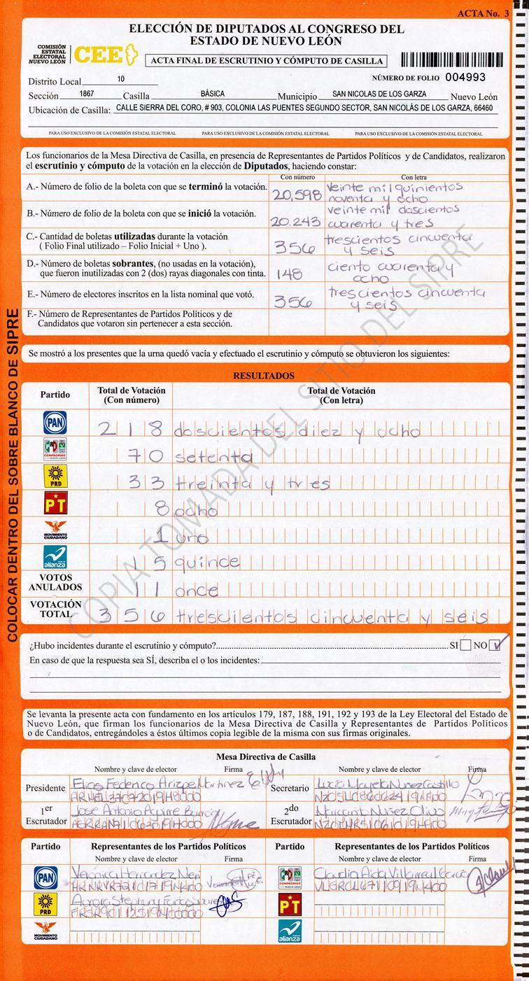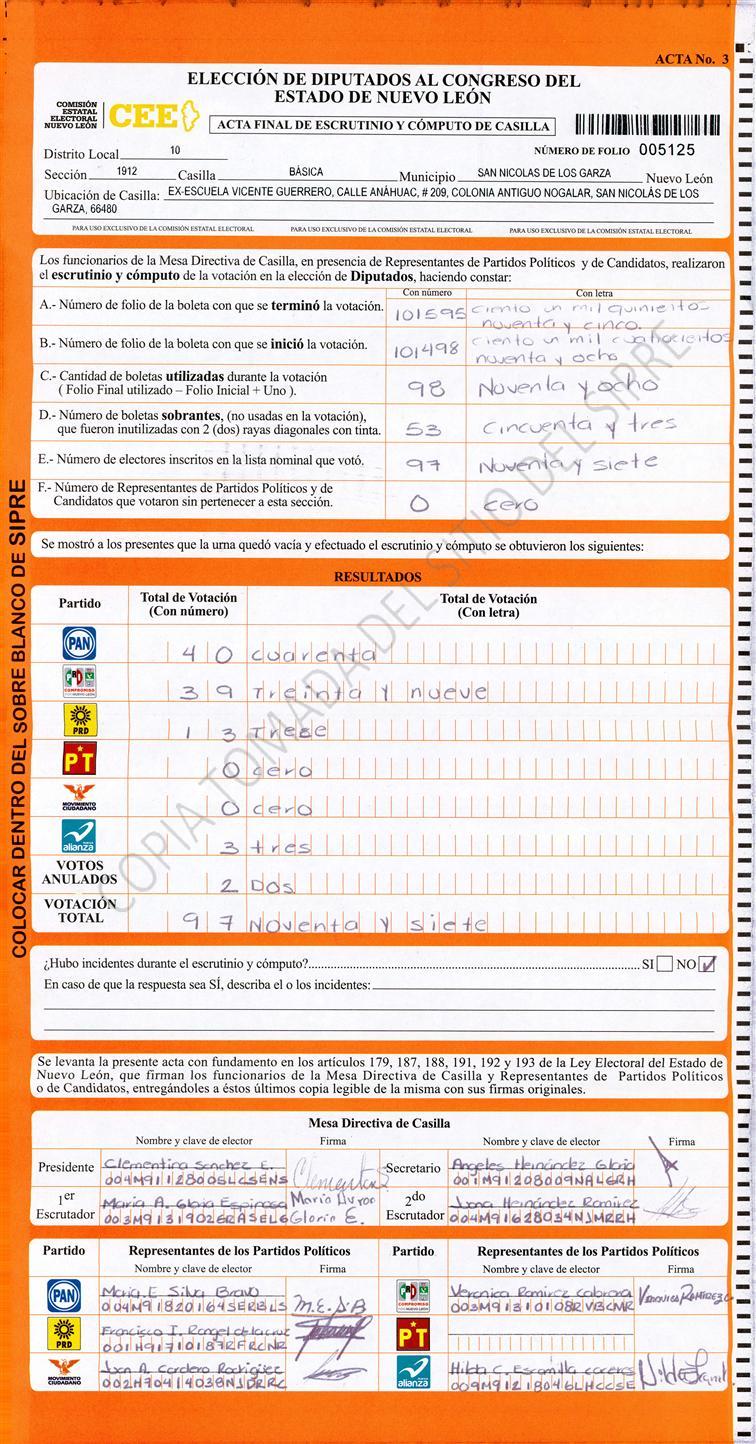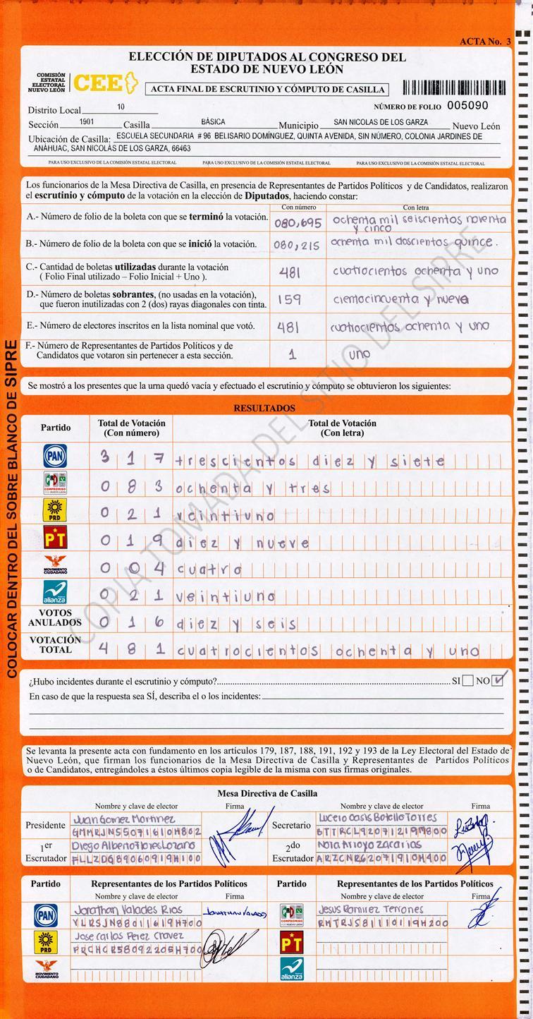 , (8) Copiado Movido , (9) Con Signos Inválidos , (10) Excede Lista Nominal , (11) Otra |