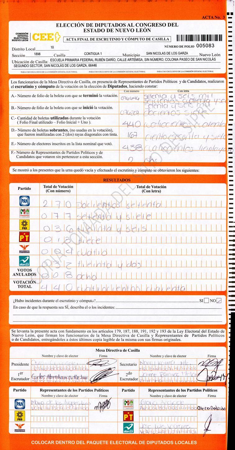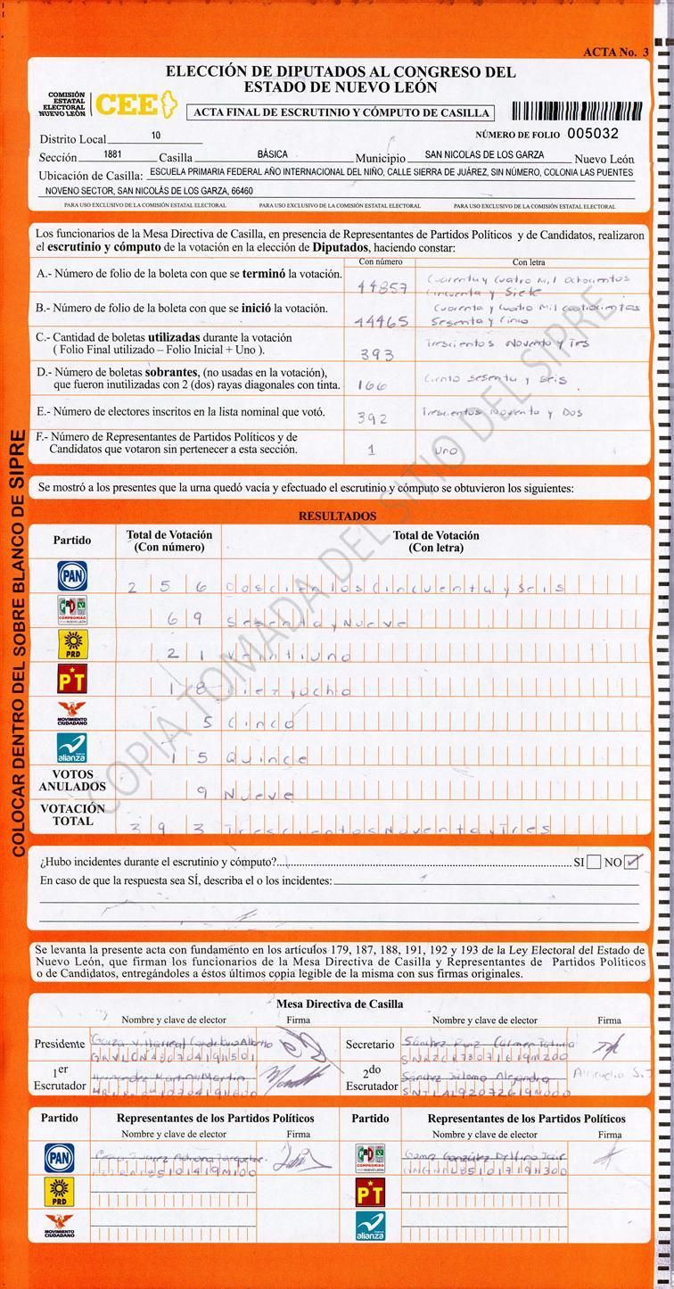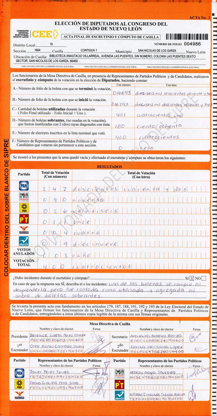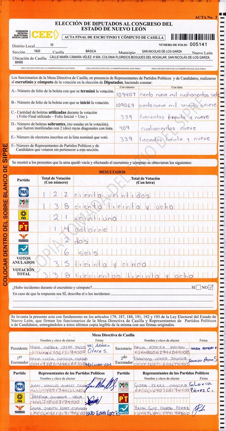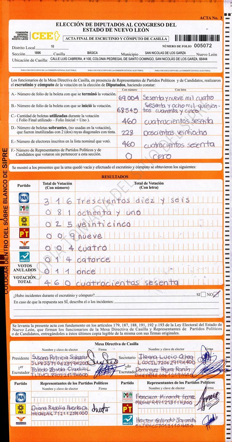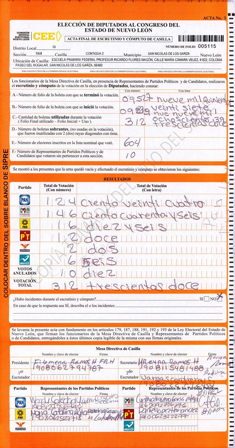 , (8) Copiado Movido , (9) Con Signos Inválidos , (10) Excede Lista Nominal , (11) Otra |