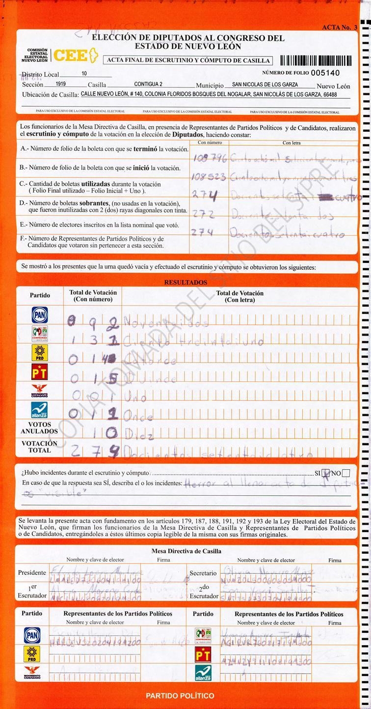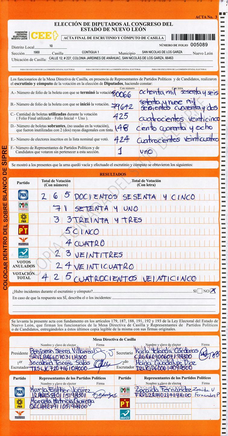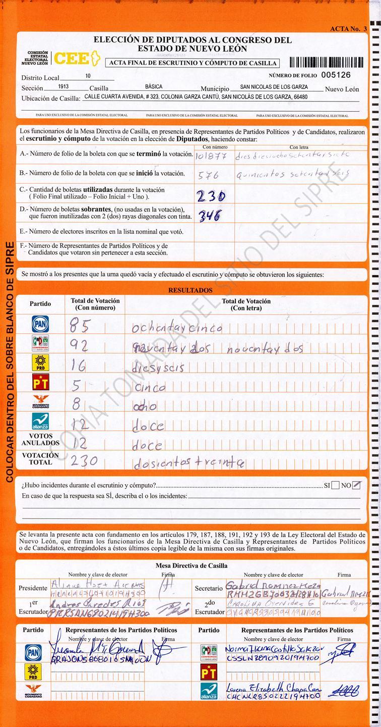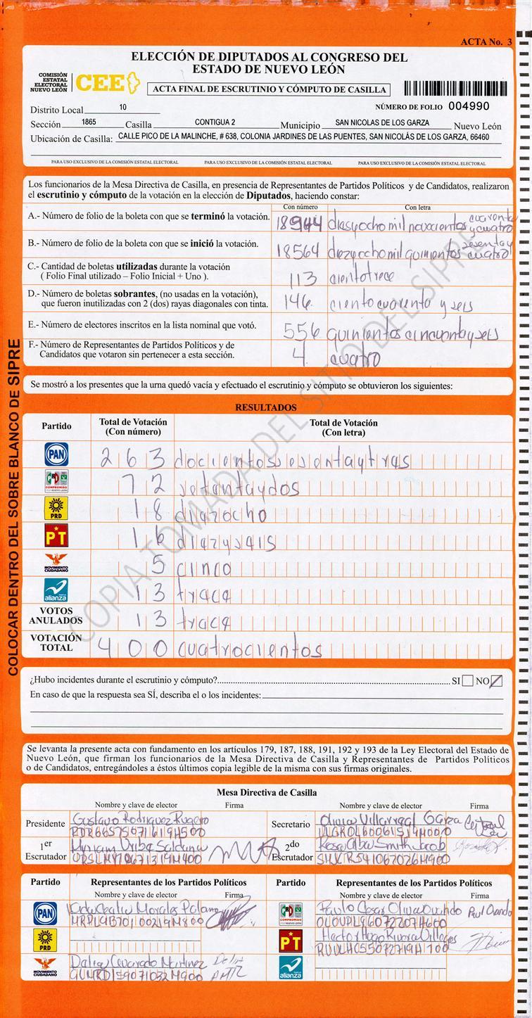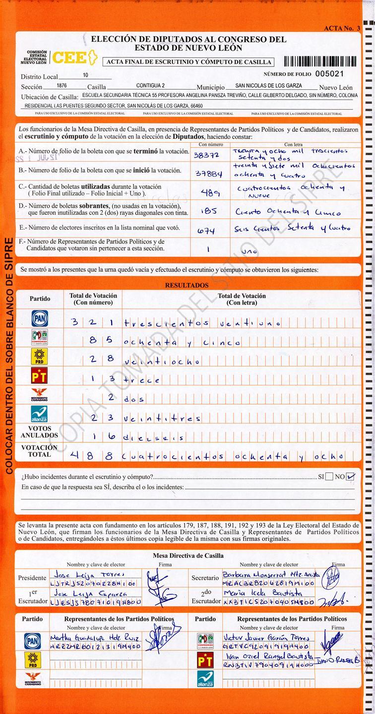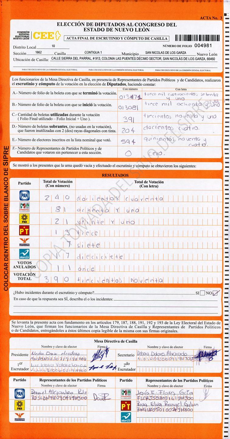 , (8) Copiado Movido , (9) Con Signos Inválidos , (10) Excede Lista Nominal , (11) Otra |