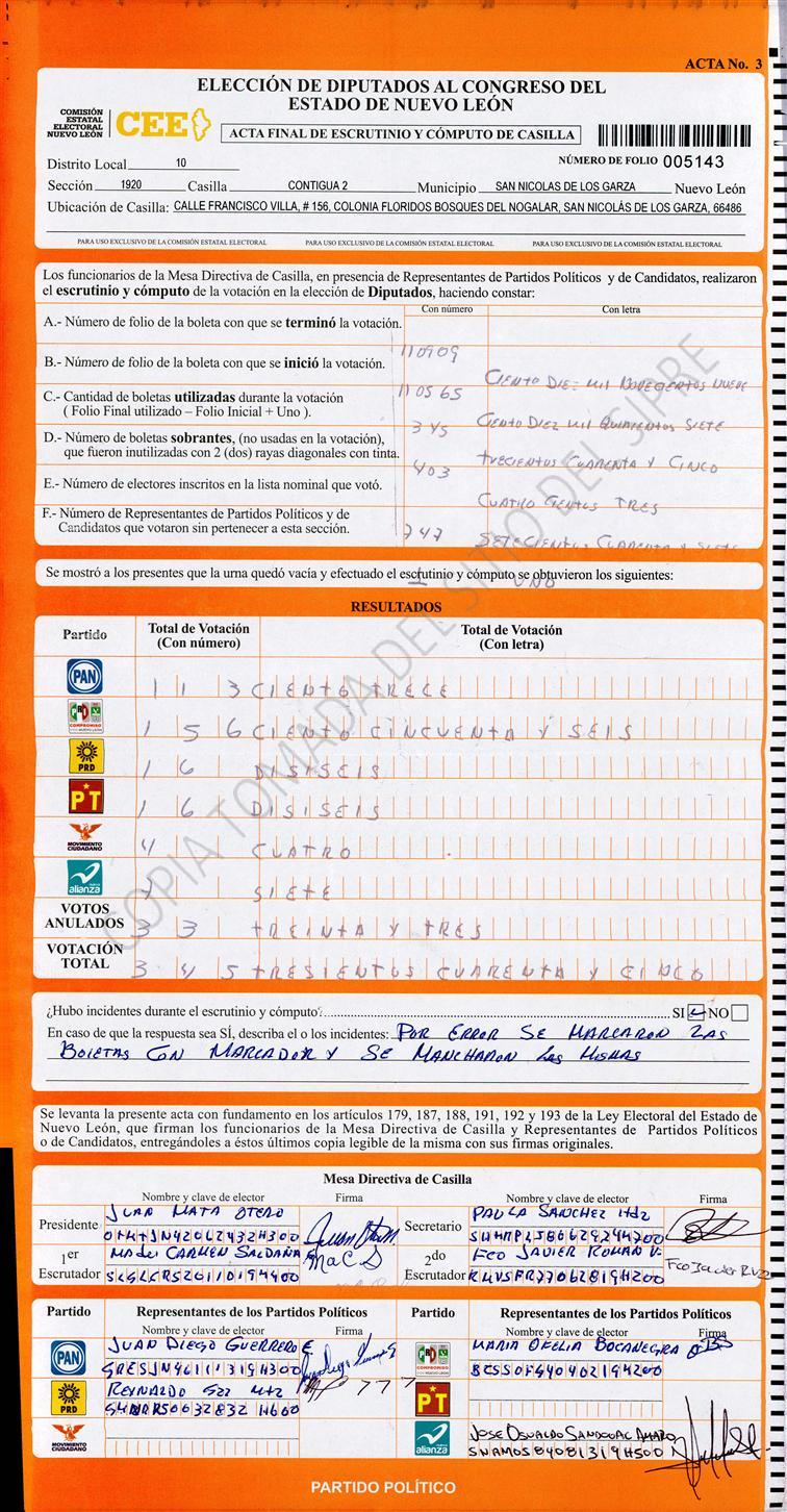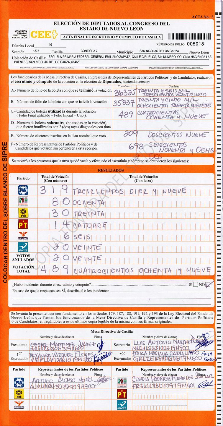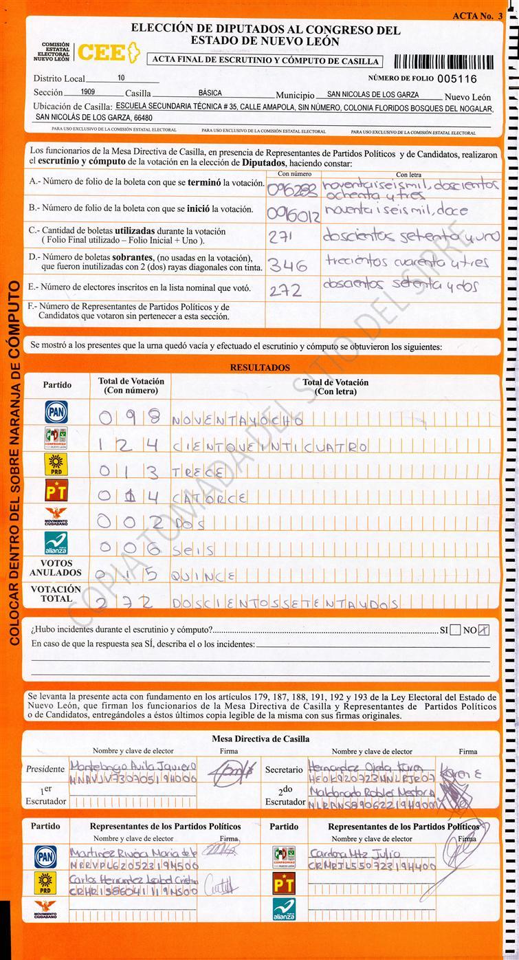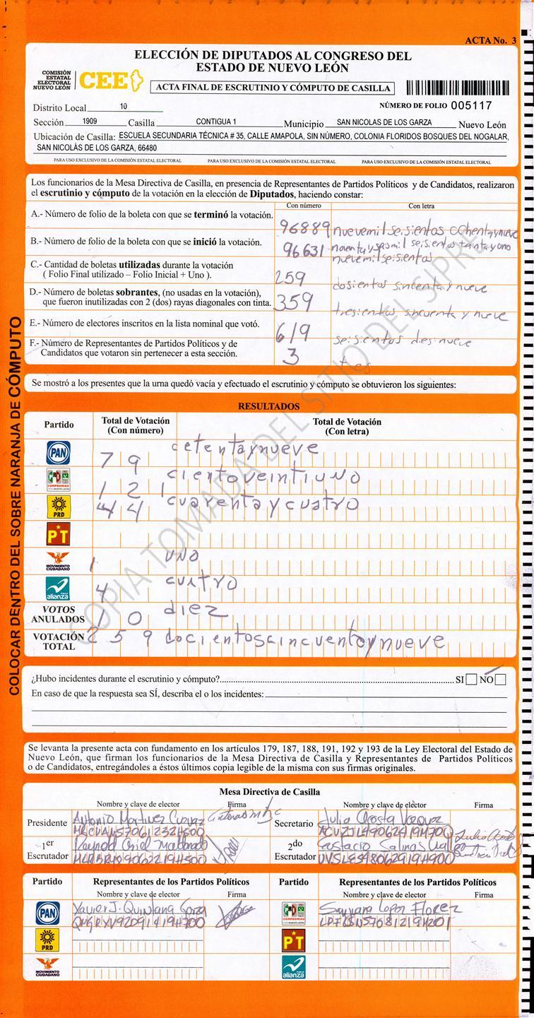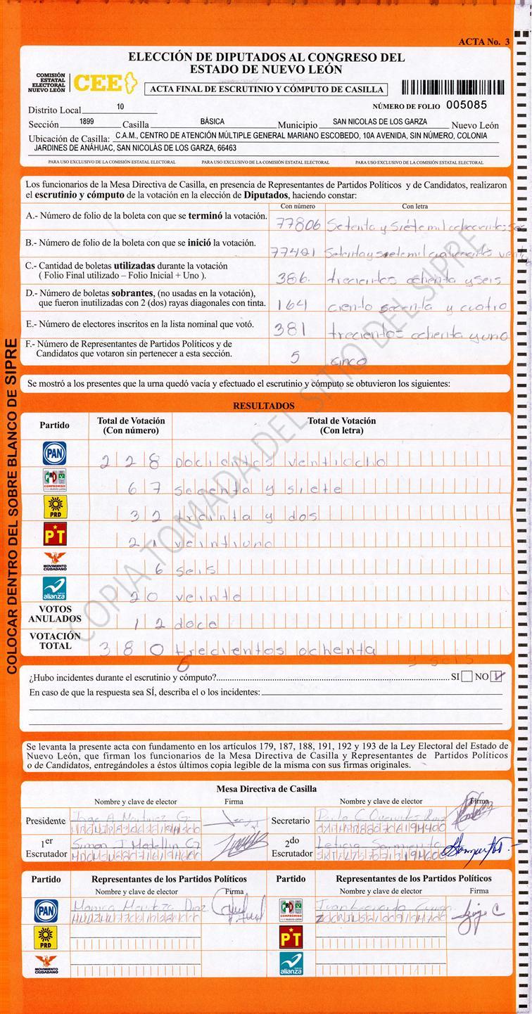 , (8) Copiado Movido , (9) Con Signos Inválidos , (10) Excede Lista Nominal , (11) Otra |