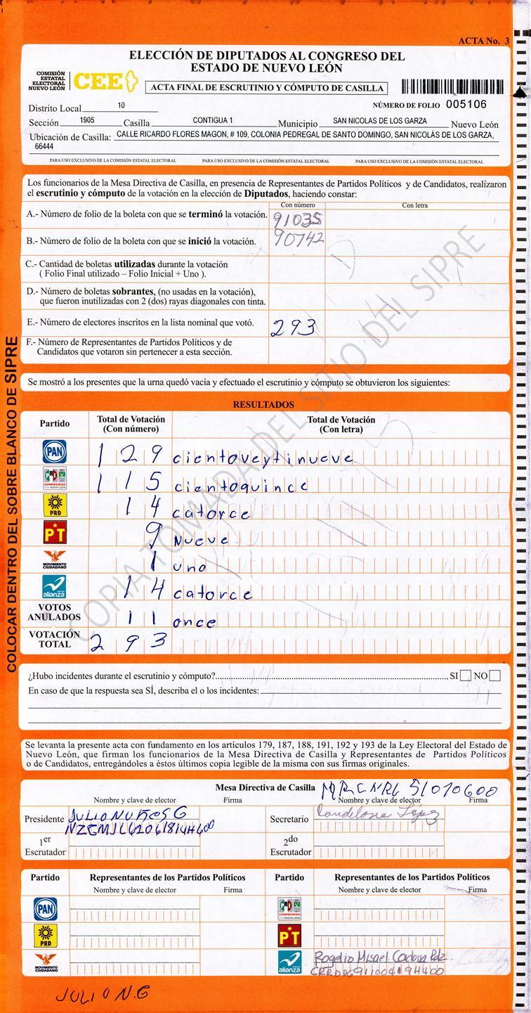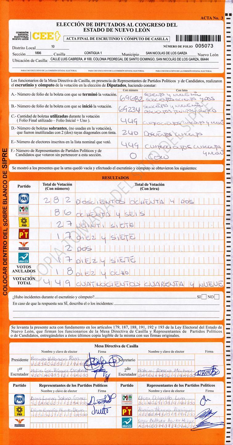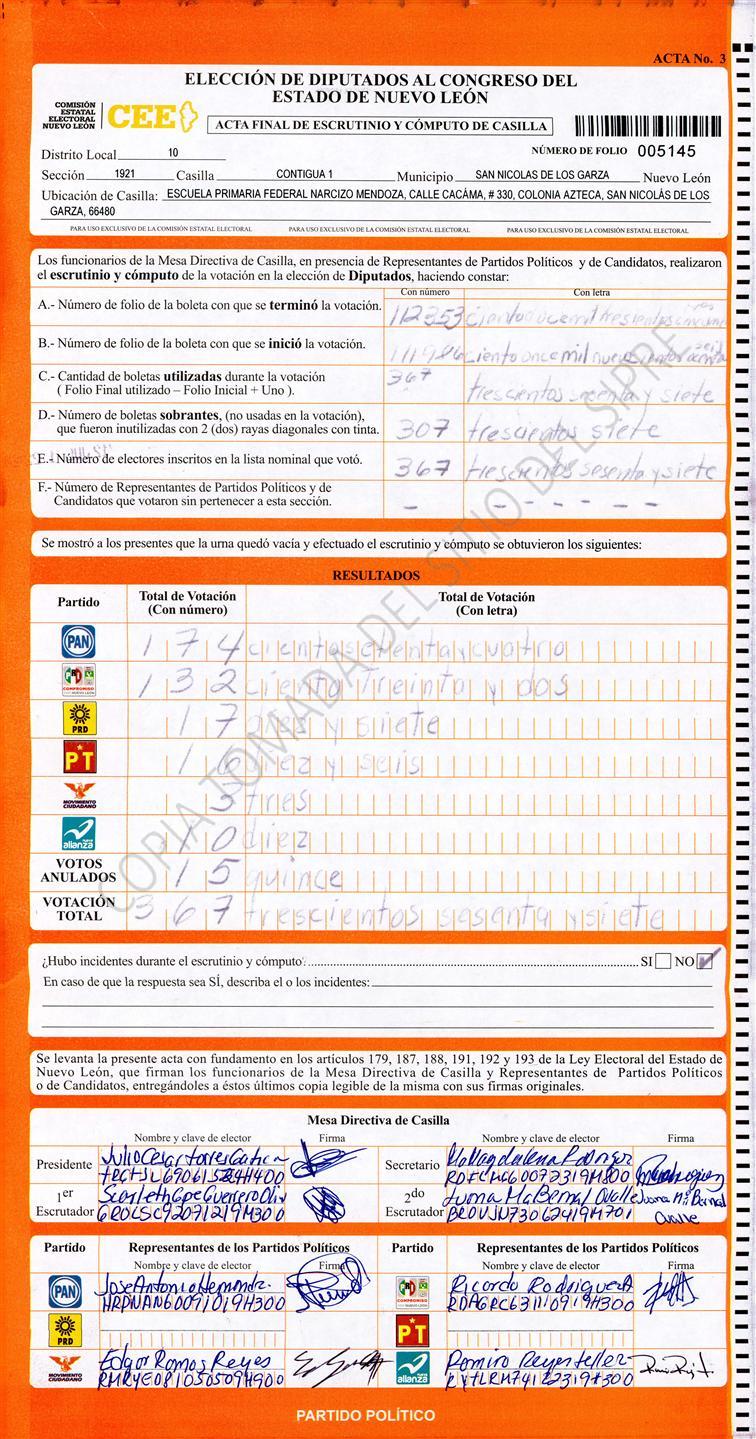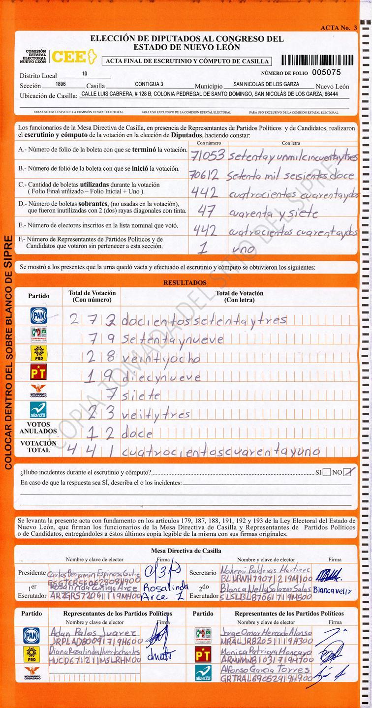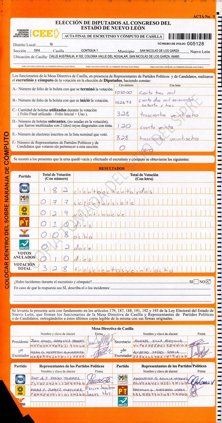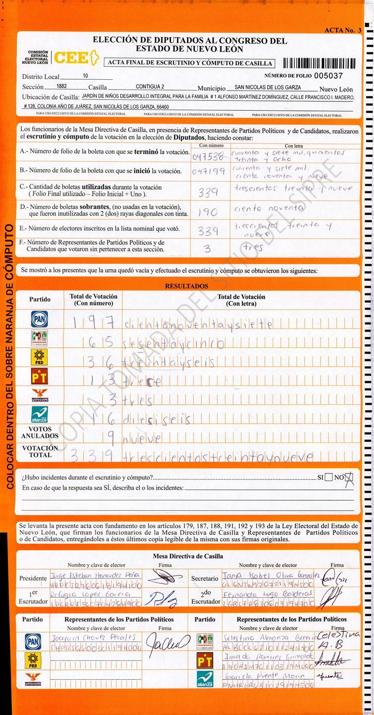, (8) Copiado Movido , (9) Con Signos Inválidos , (10) Excede Lista Nominal , (11) Otra |