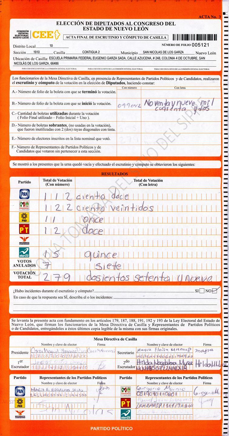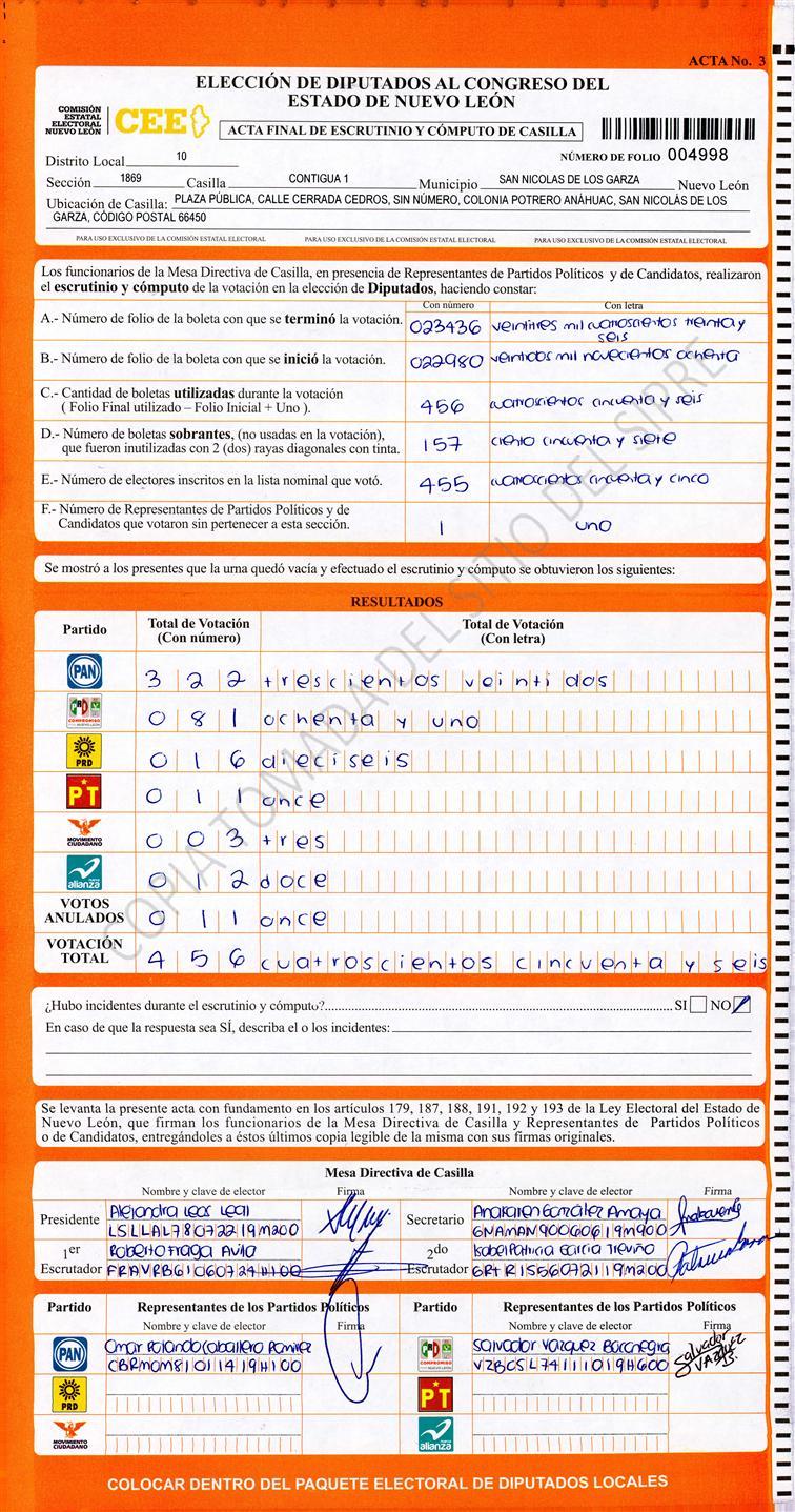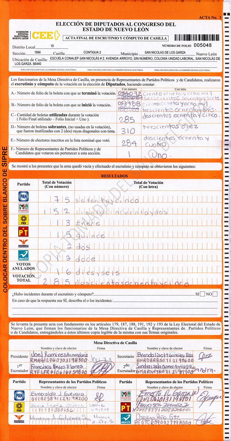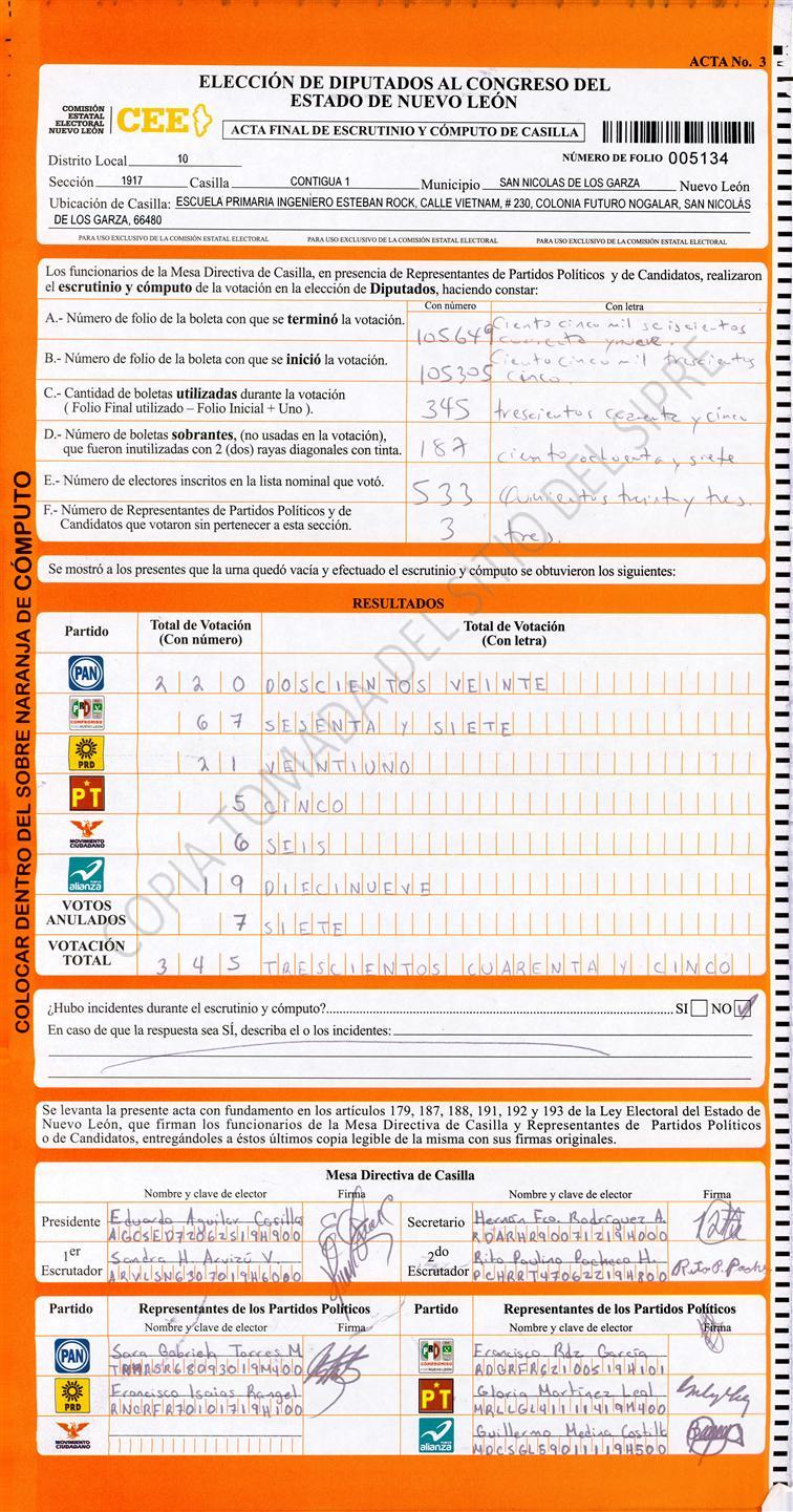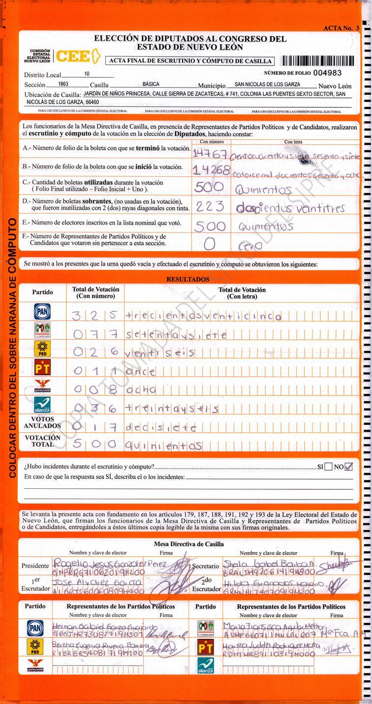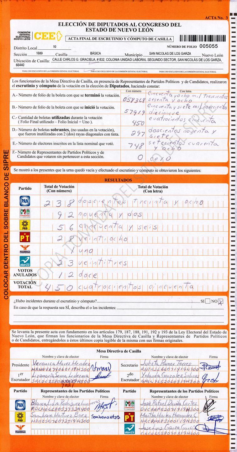 , (8) Copiado Movido , (9) Con Signos Inválidos , (10) Excede Lista Nominal , (11) Otra |