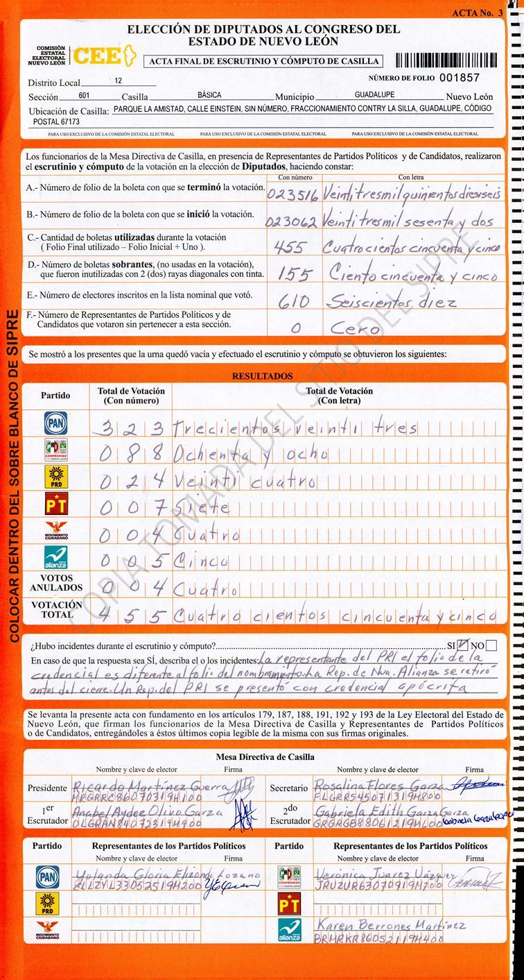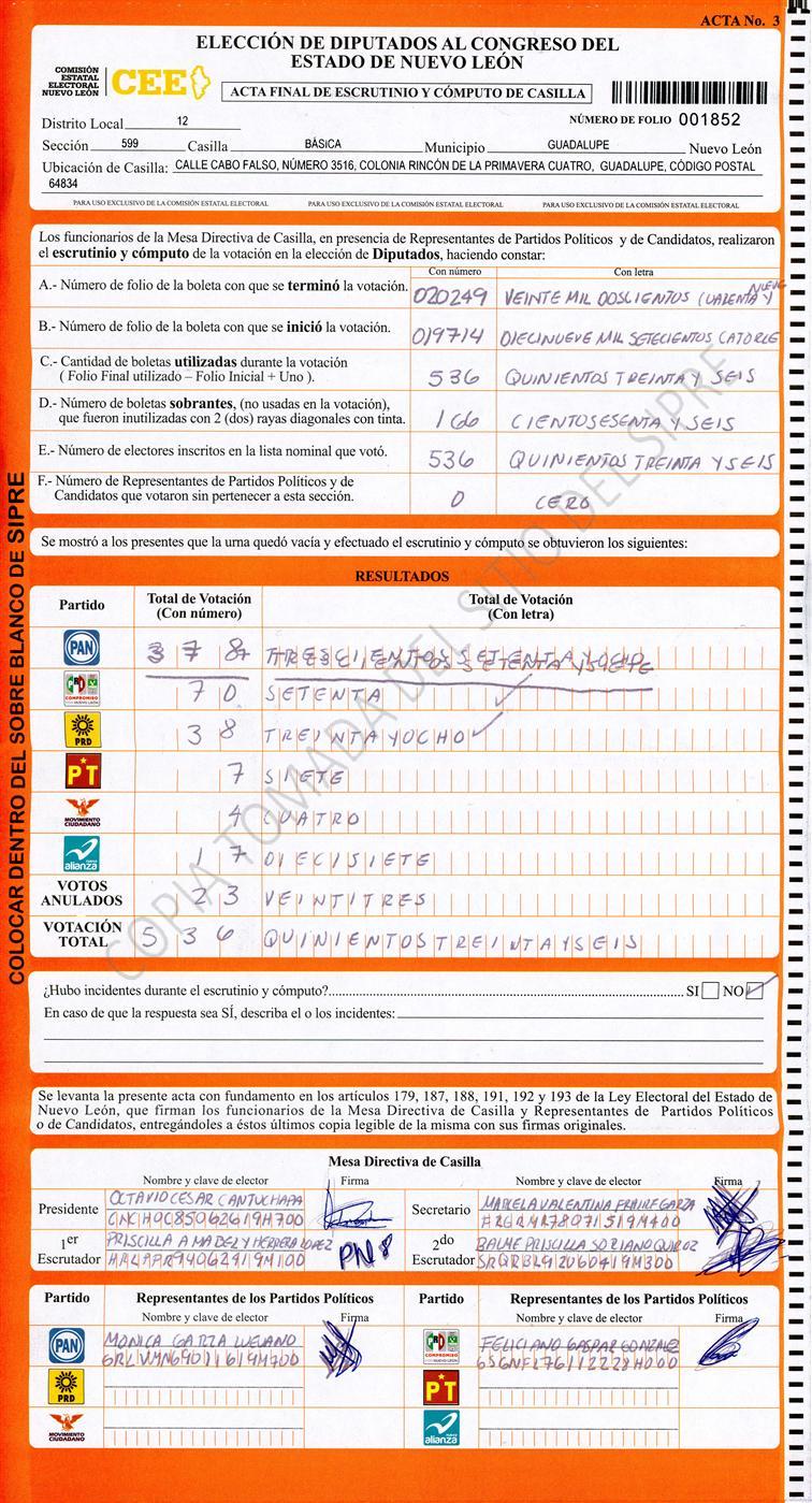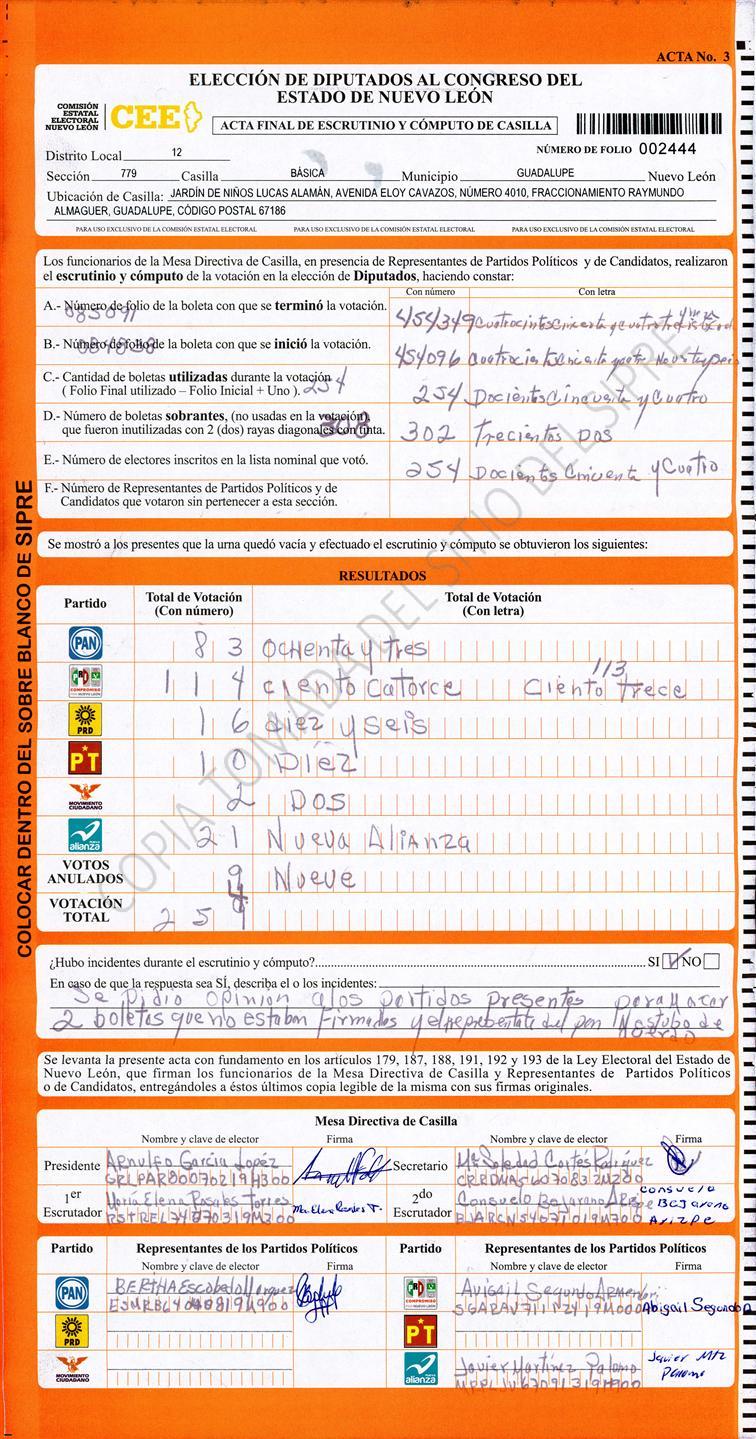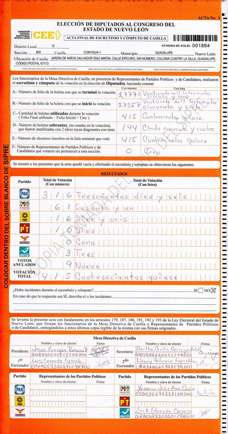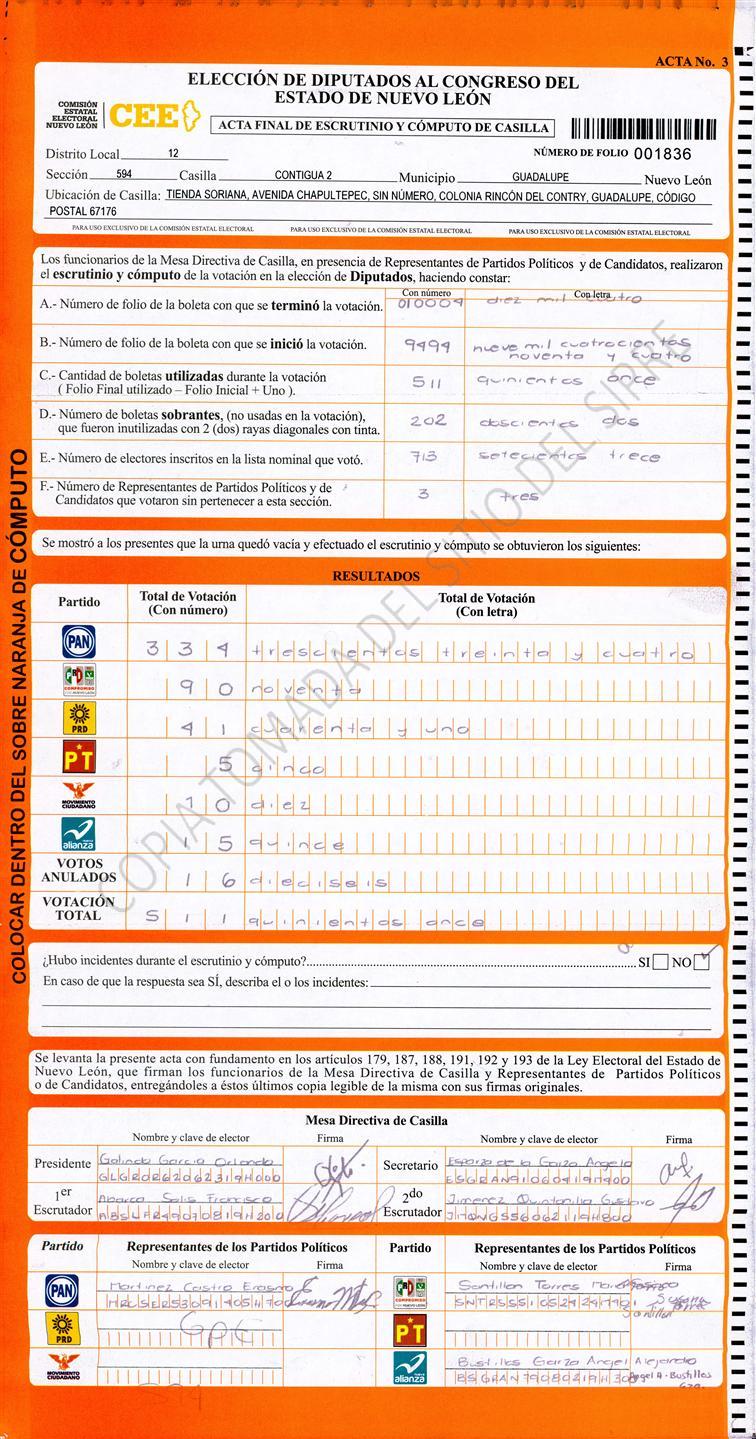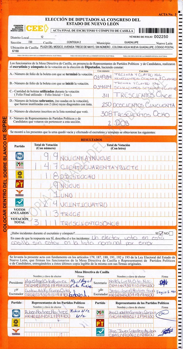 , (8) Copiado Movido , (9) Con Signos Inválidos , (10) Excede Lista Nominal , (11) Otra |