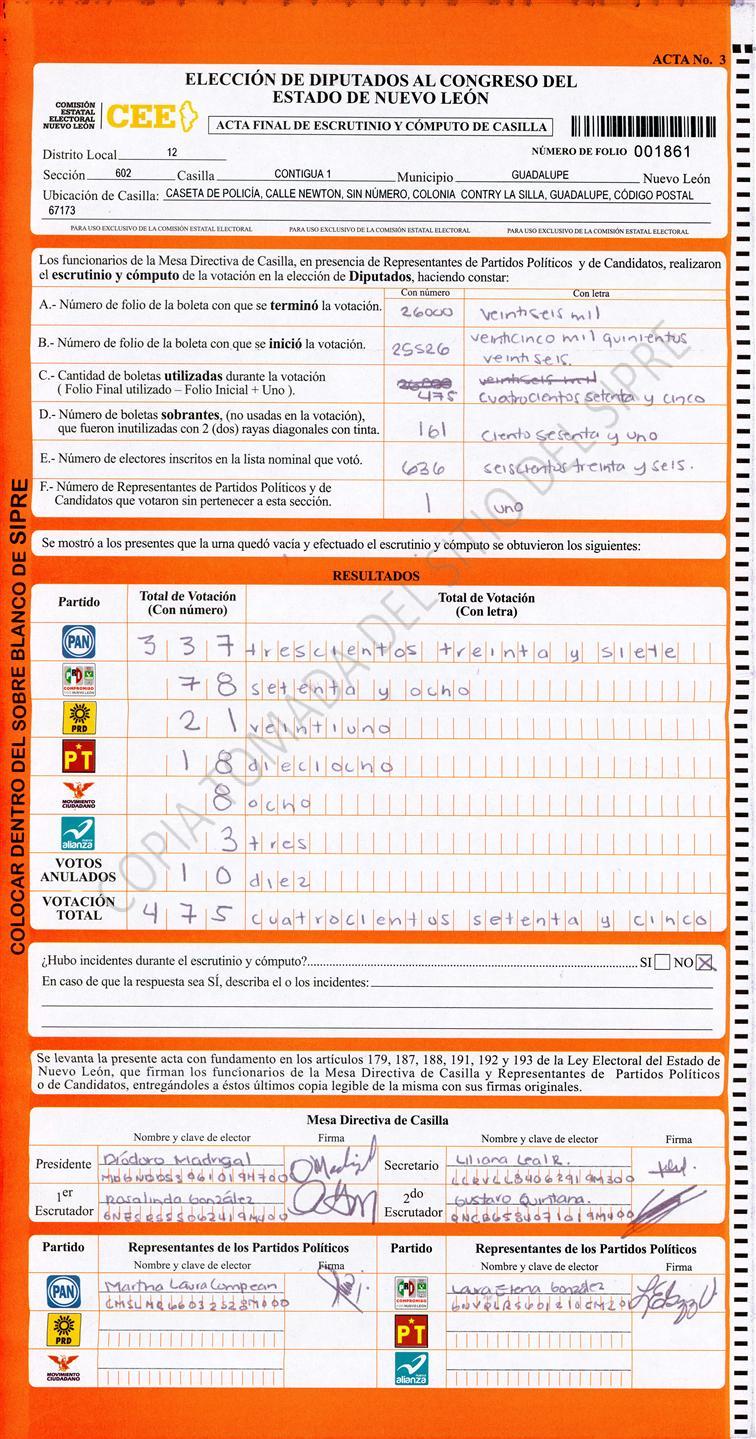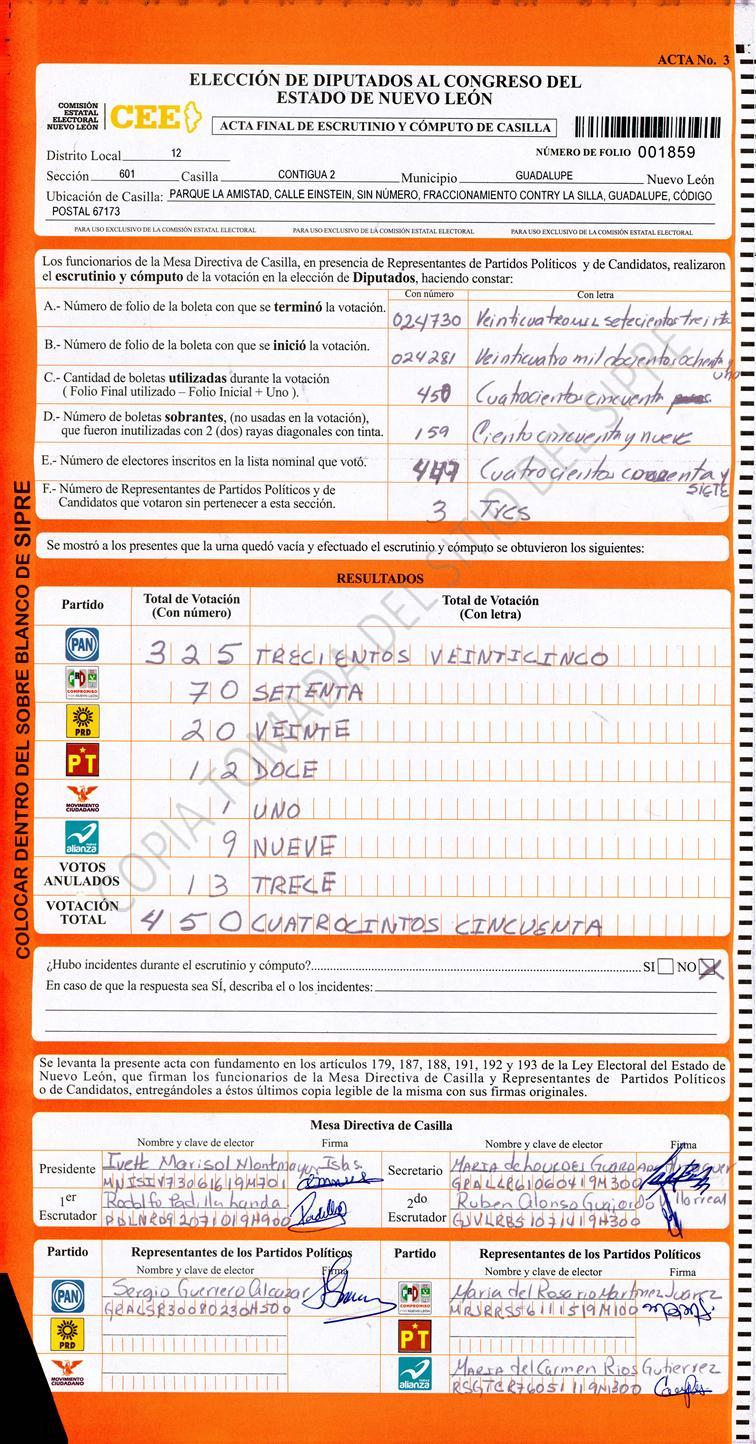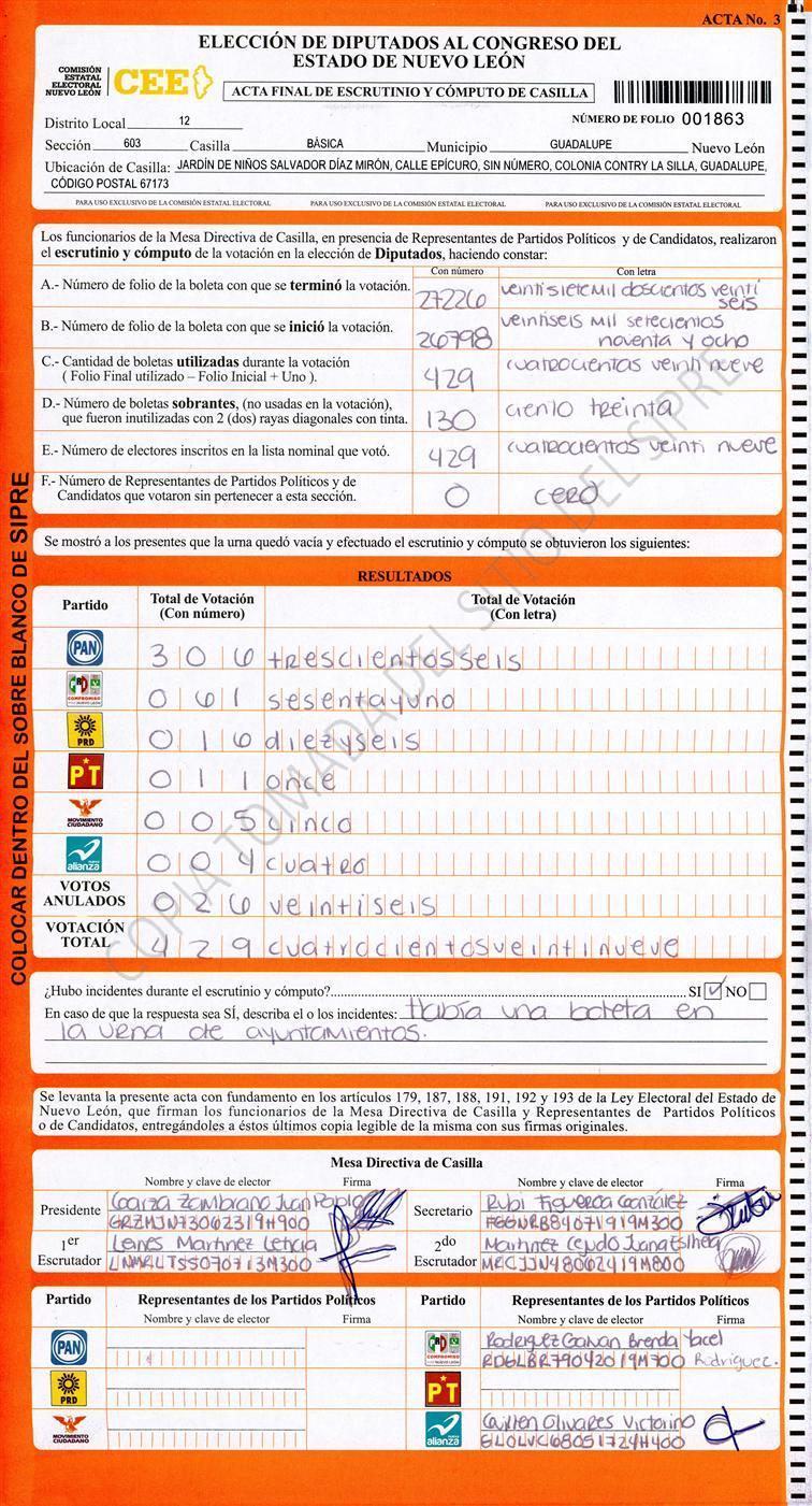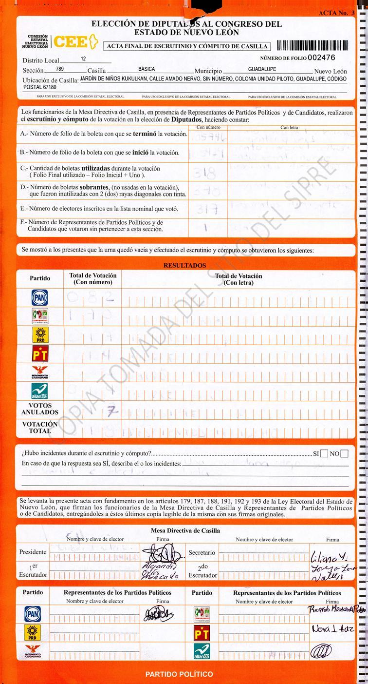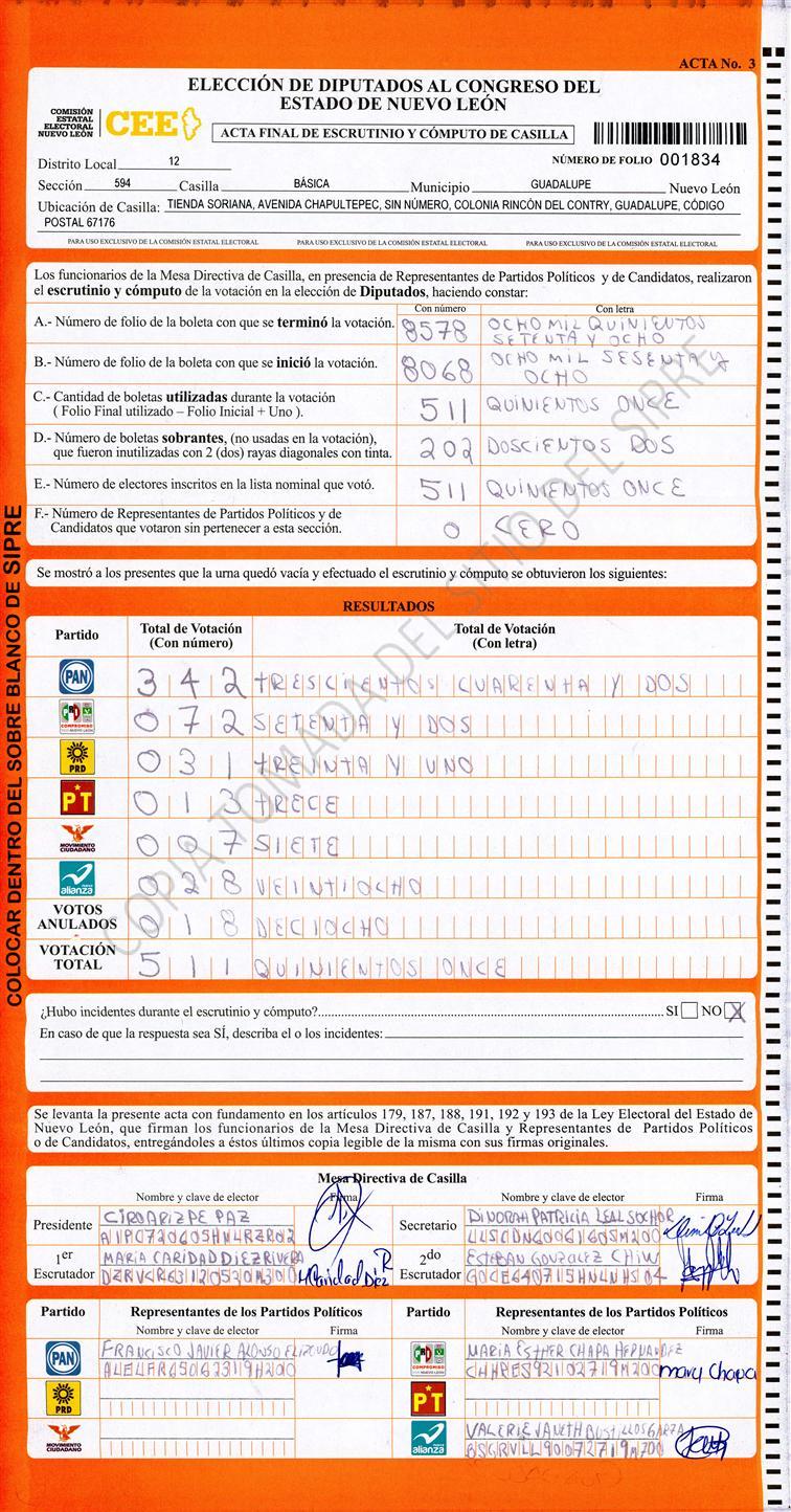, (8) Copiado Movido , (9) Con Signos Inválidos , (10) Excede Lista Nominal , (11) Otra |