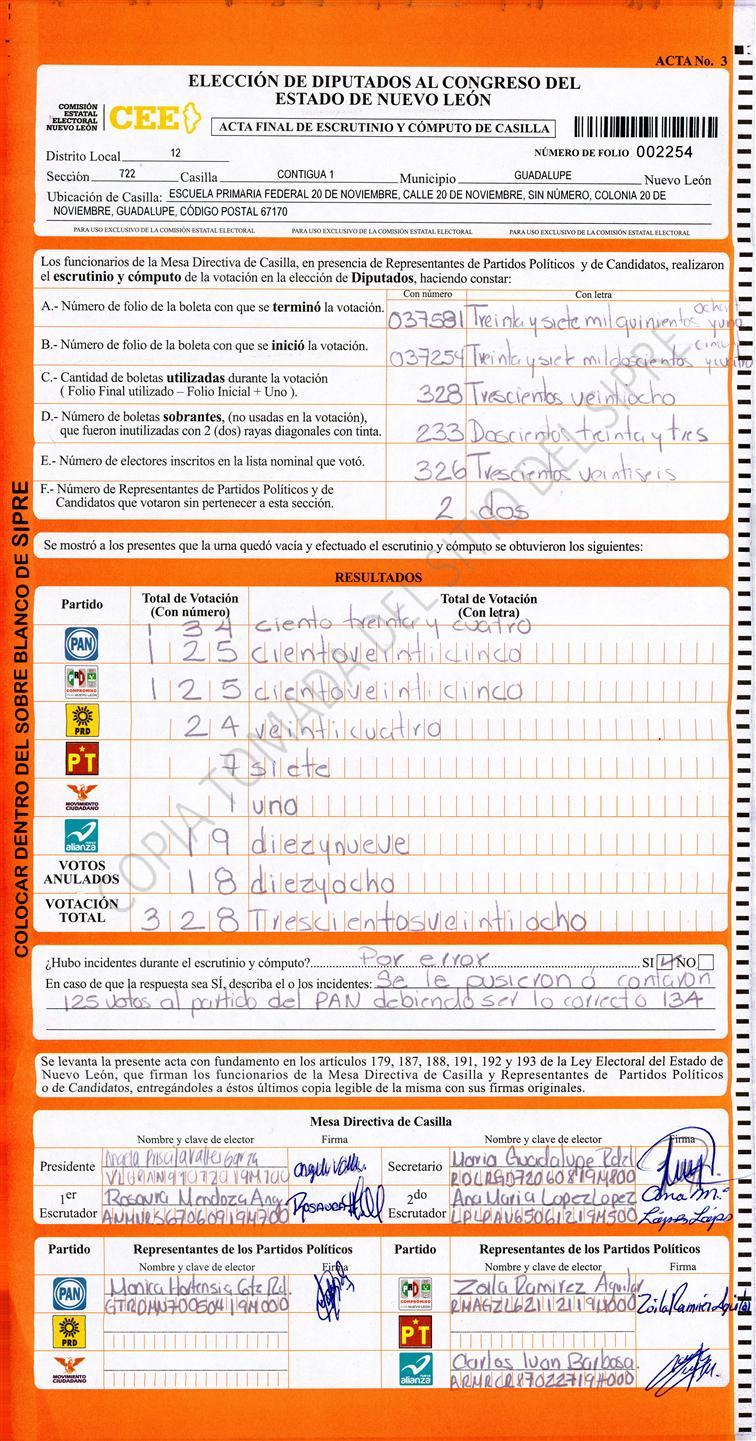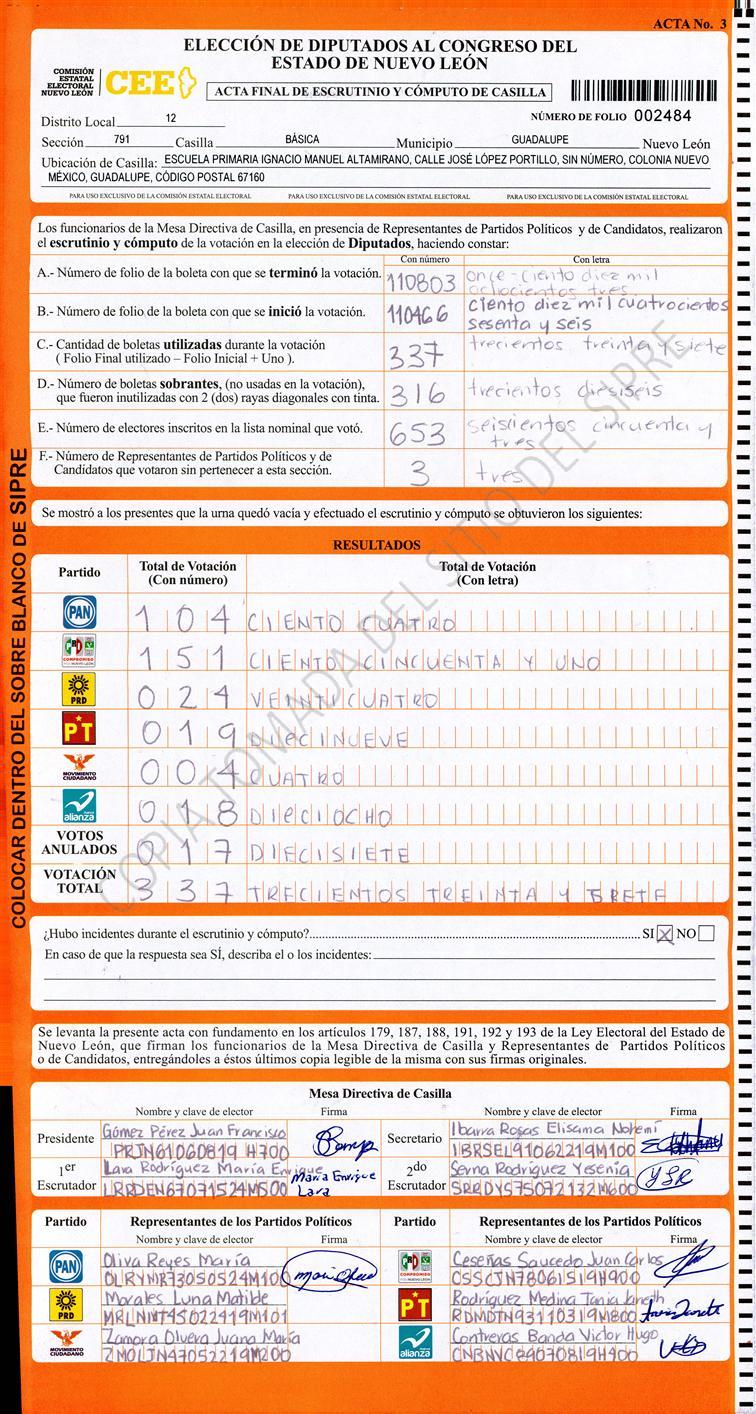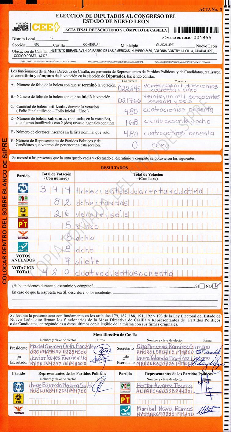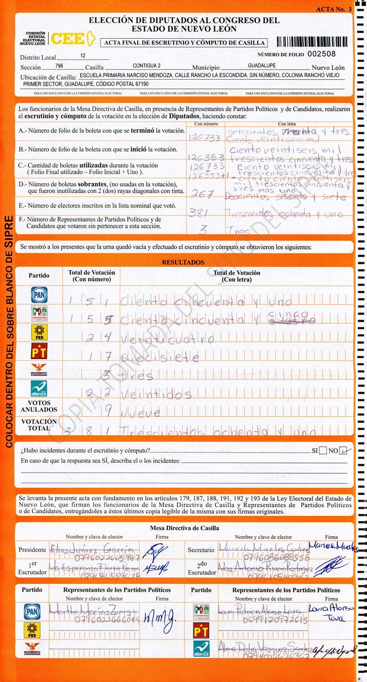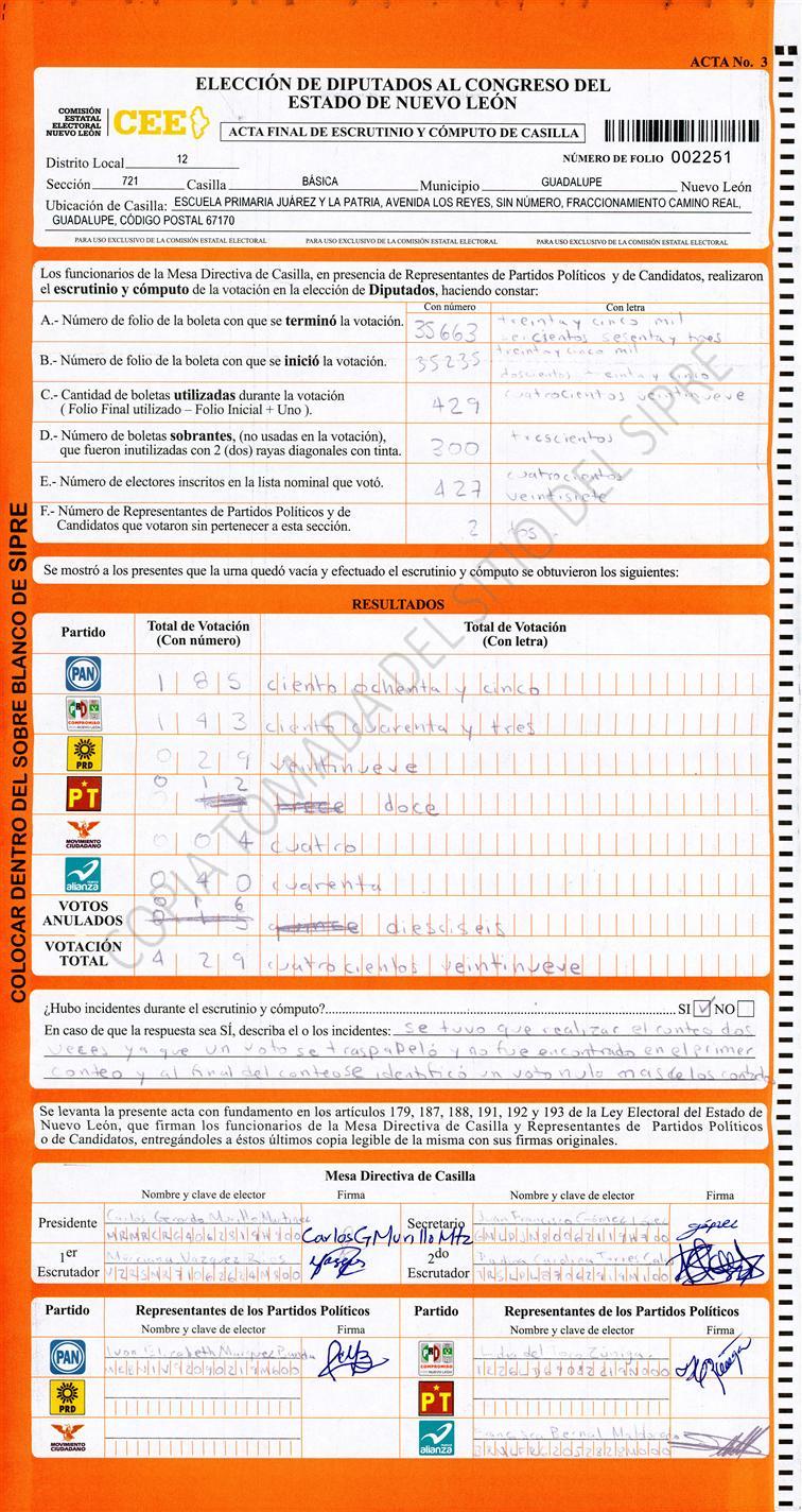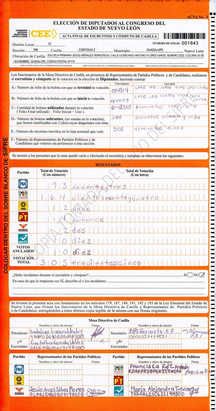 , (8) Copiado Movido , (9) Con Signos Inválidos , (10) Excede Lista Nominal , (11) Otra |