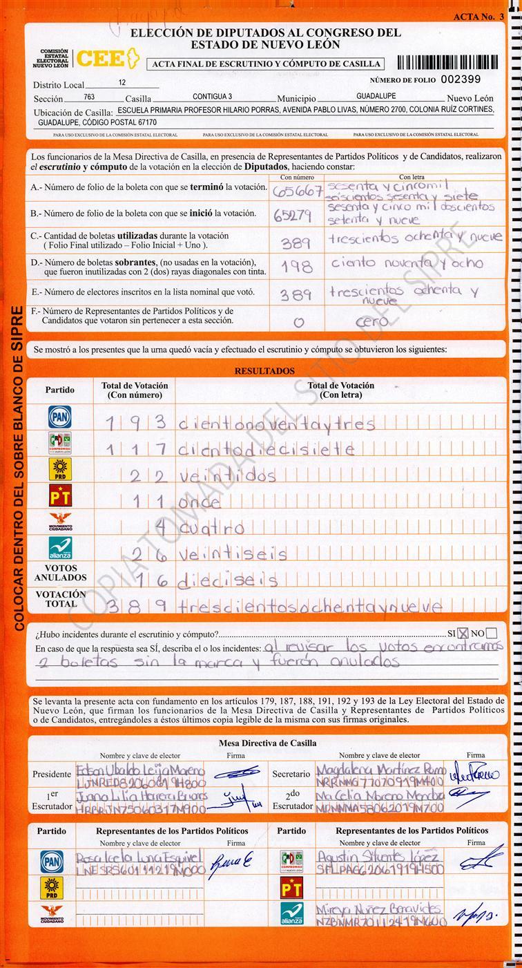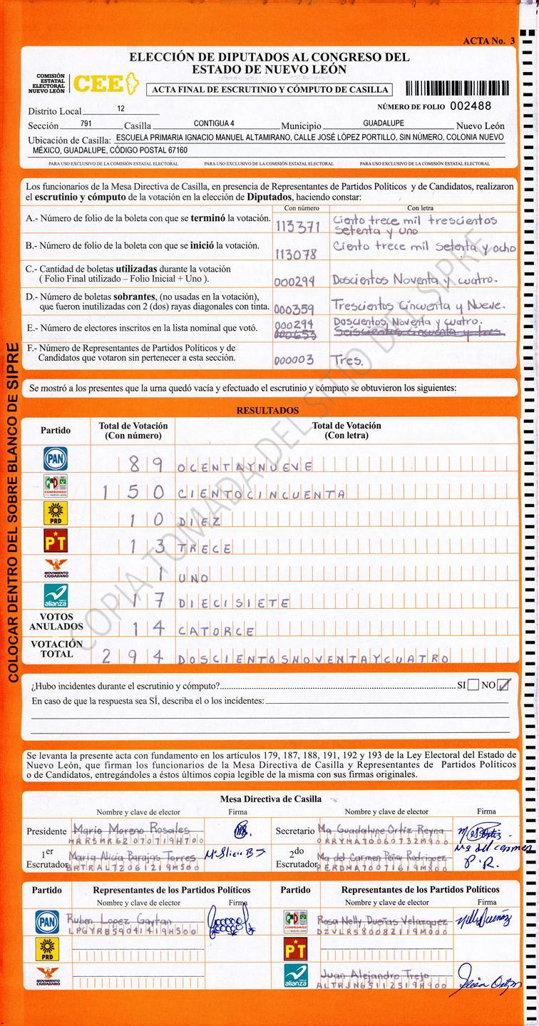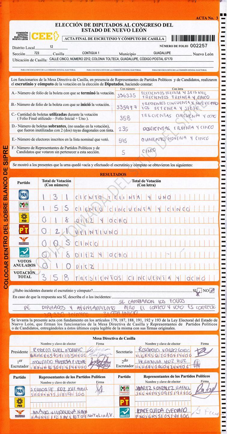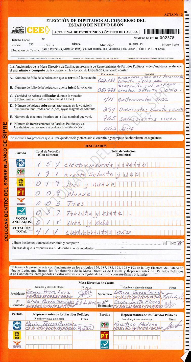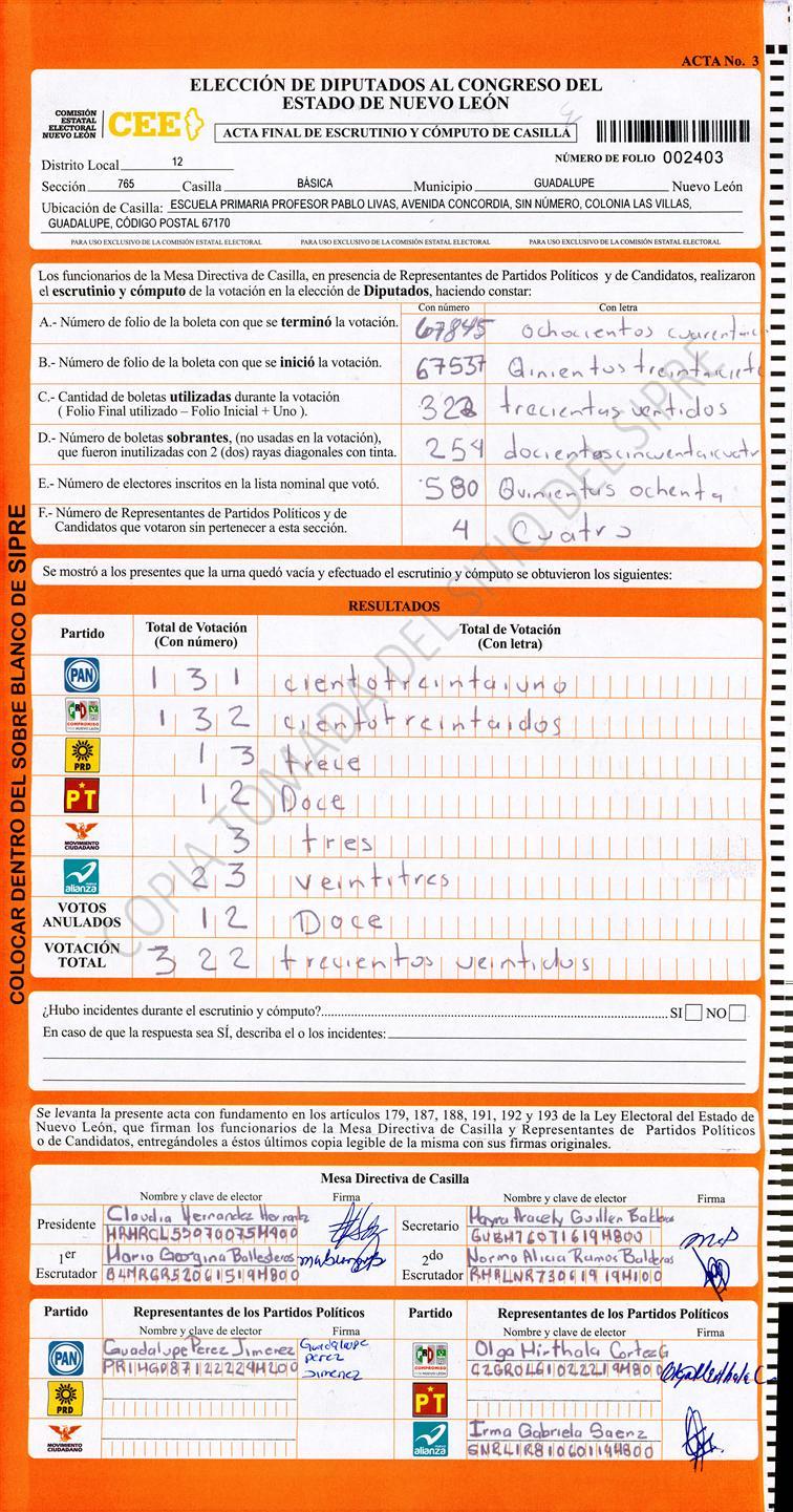 , (8) Copiado Movido , (9) Con Signos Inválidos , (10) Excede Lista Nominal , (11) Otra |