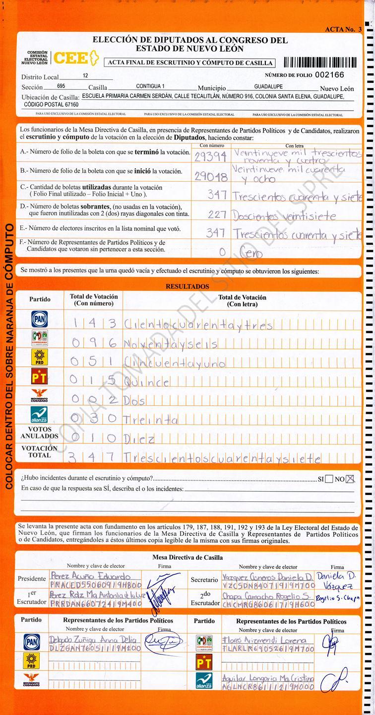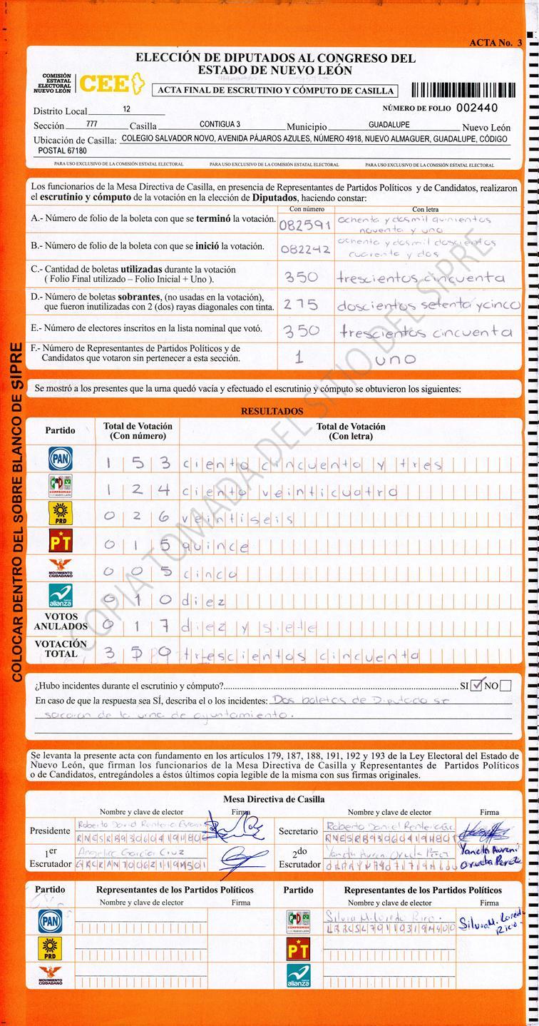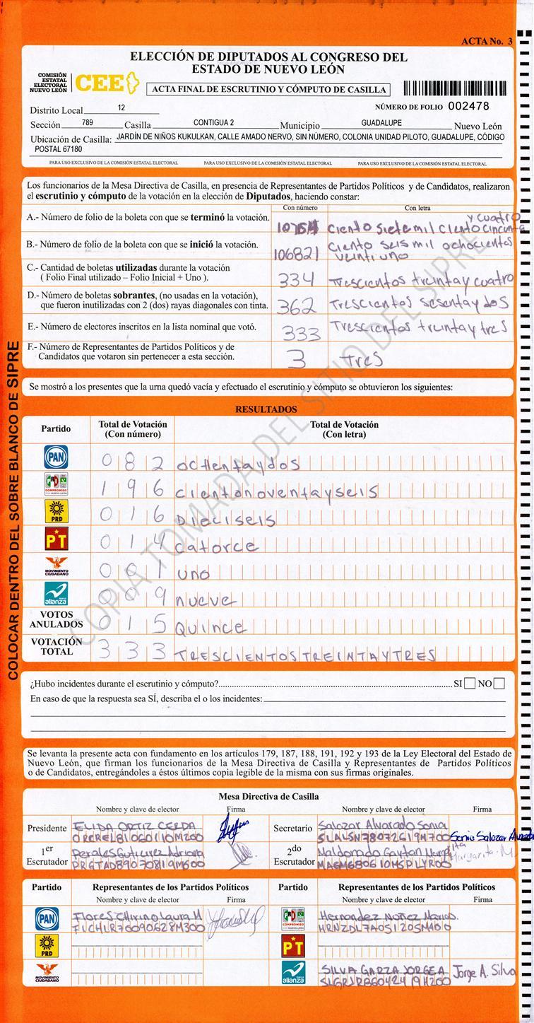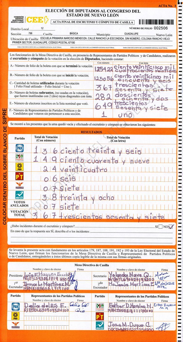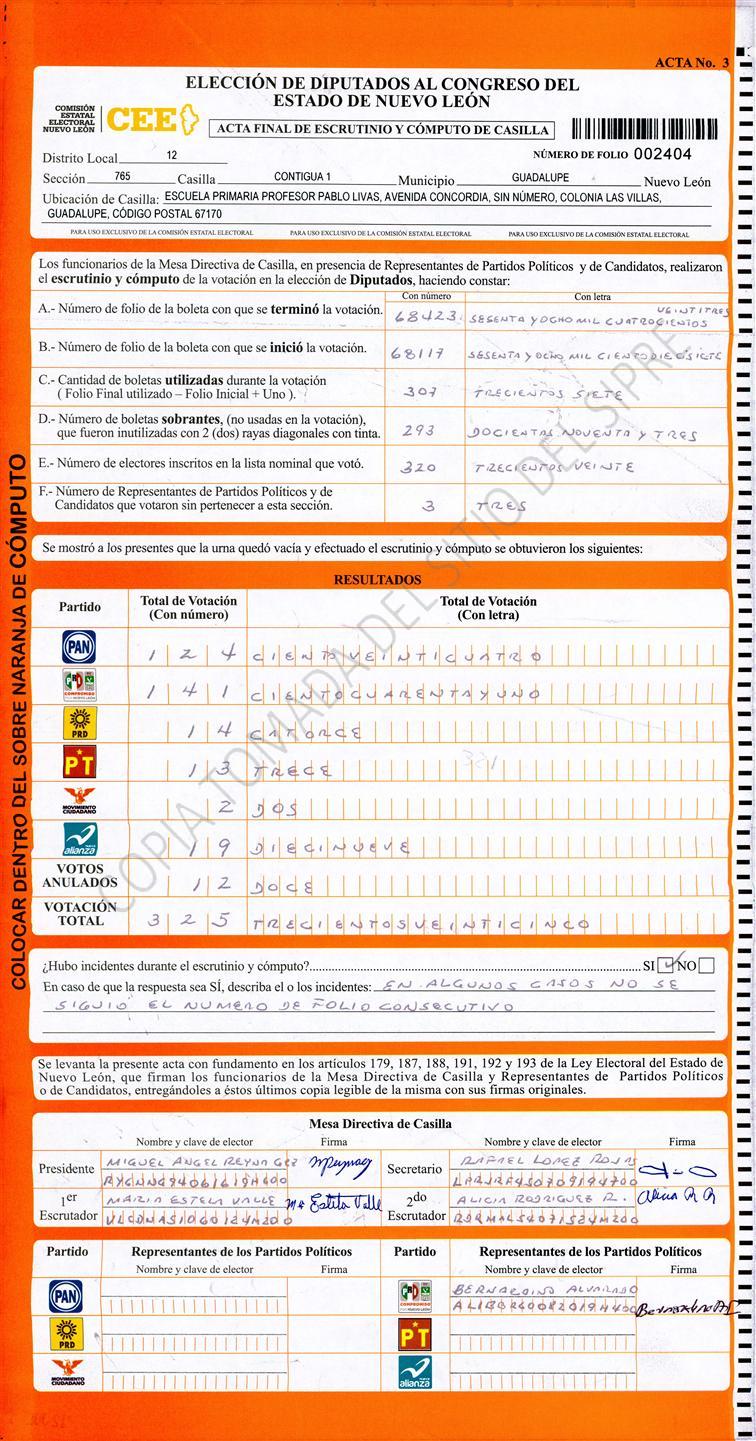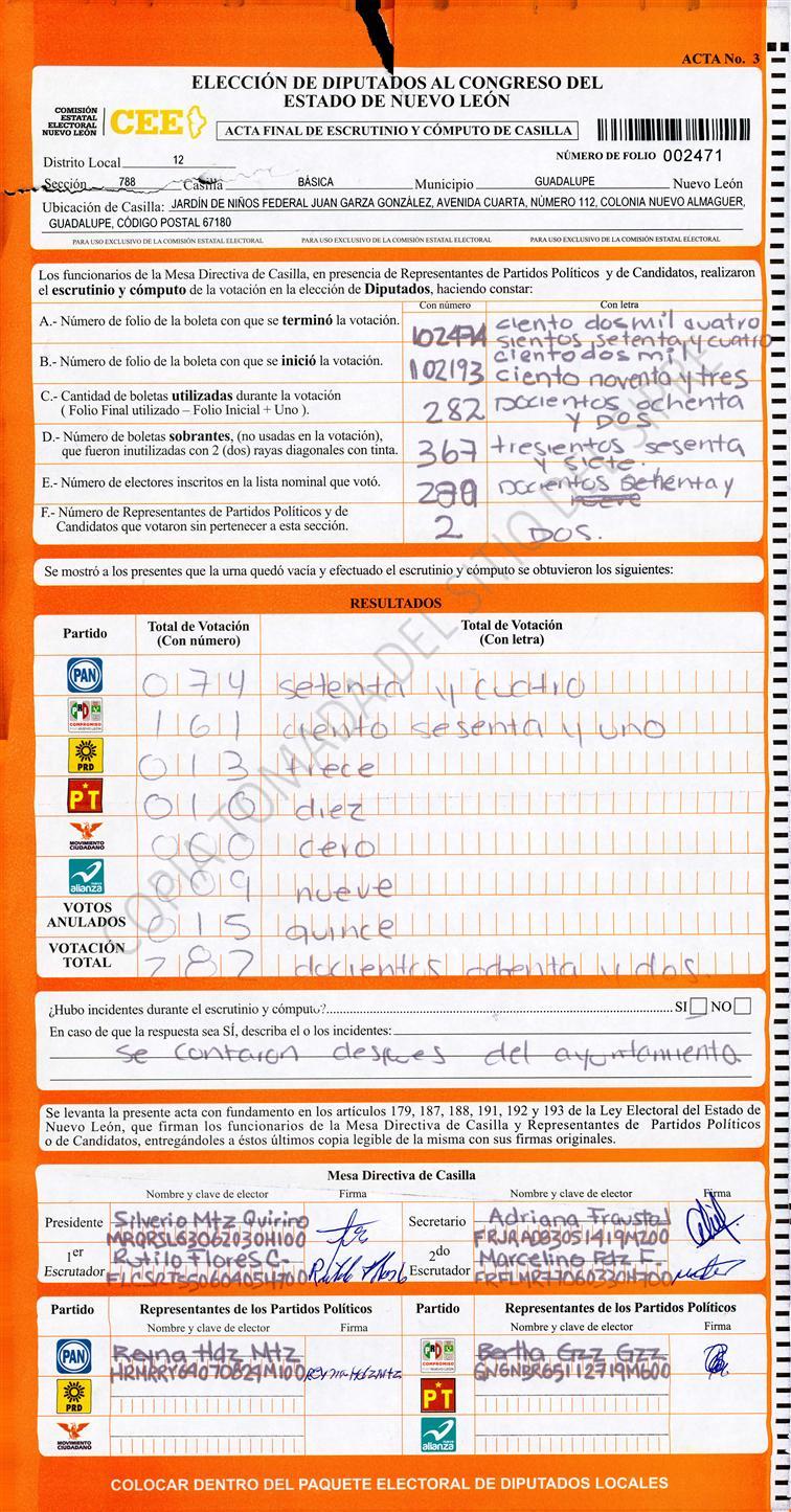 , (8) Copiado Movido , (9) Con Signos Inválidos , (10) Excede Lista Nominal , (11) Otra |