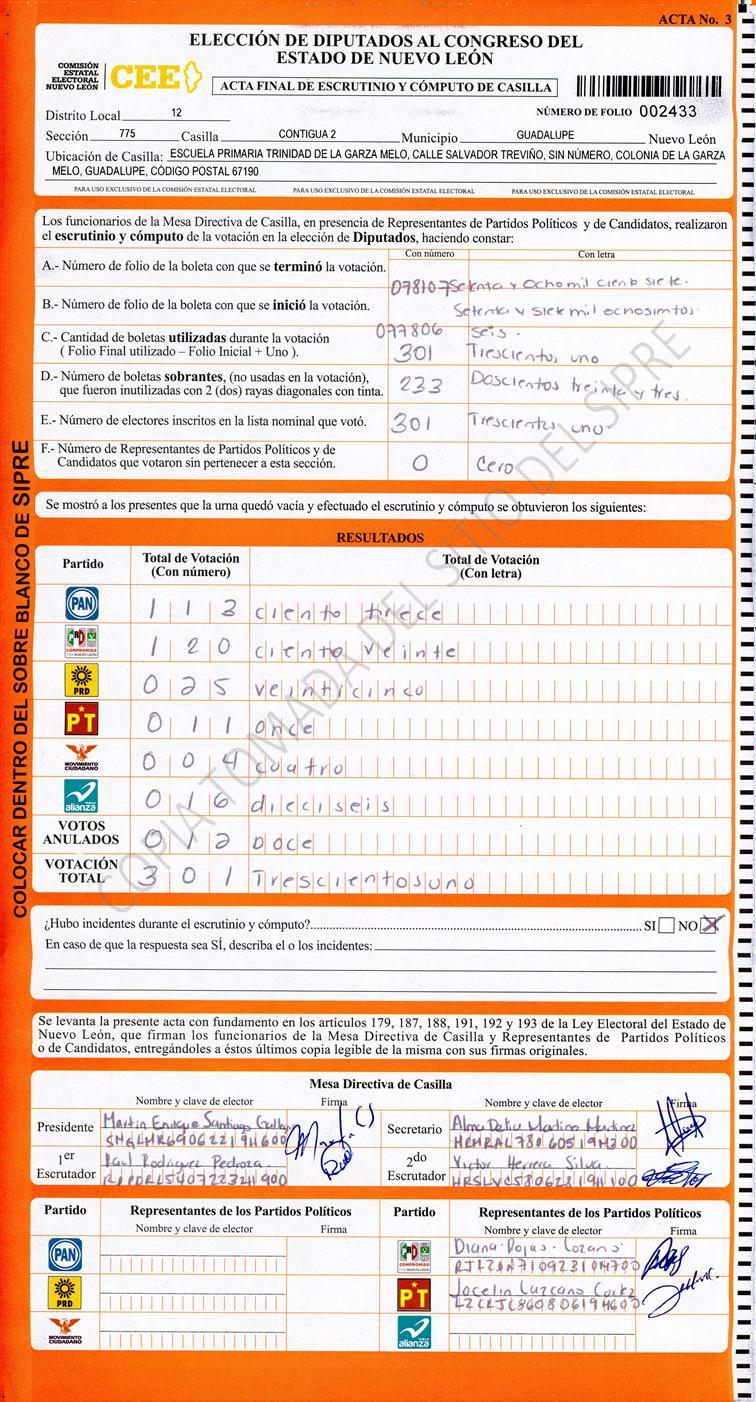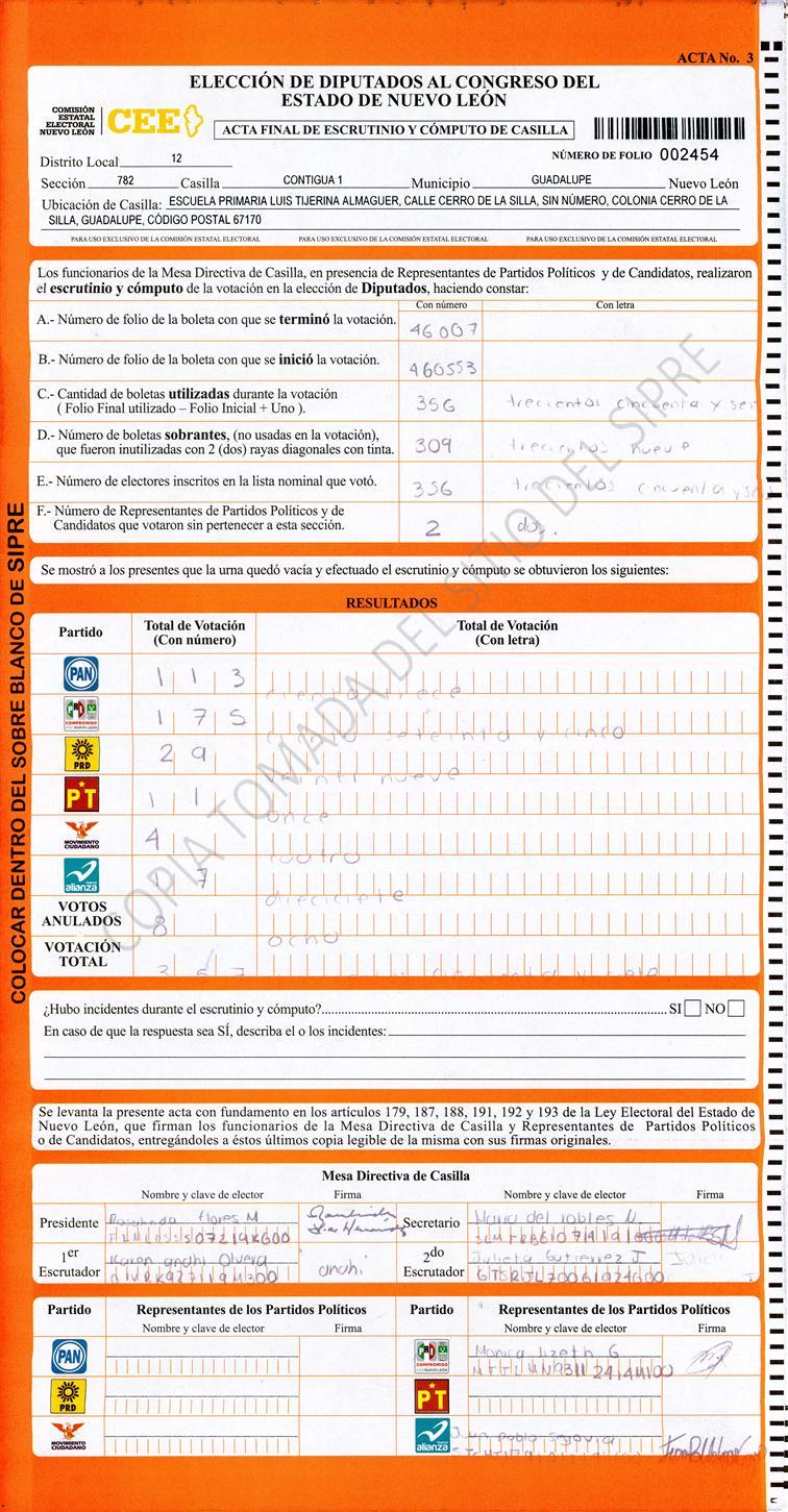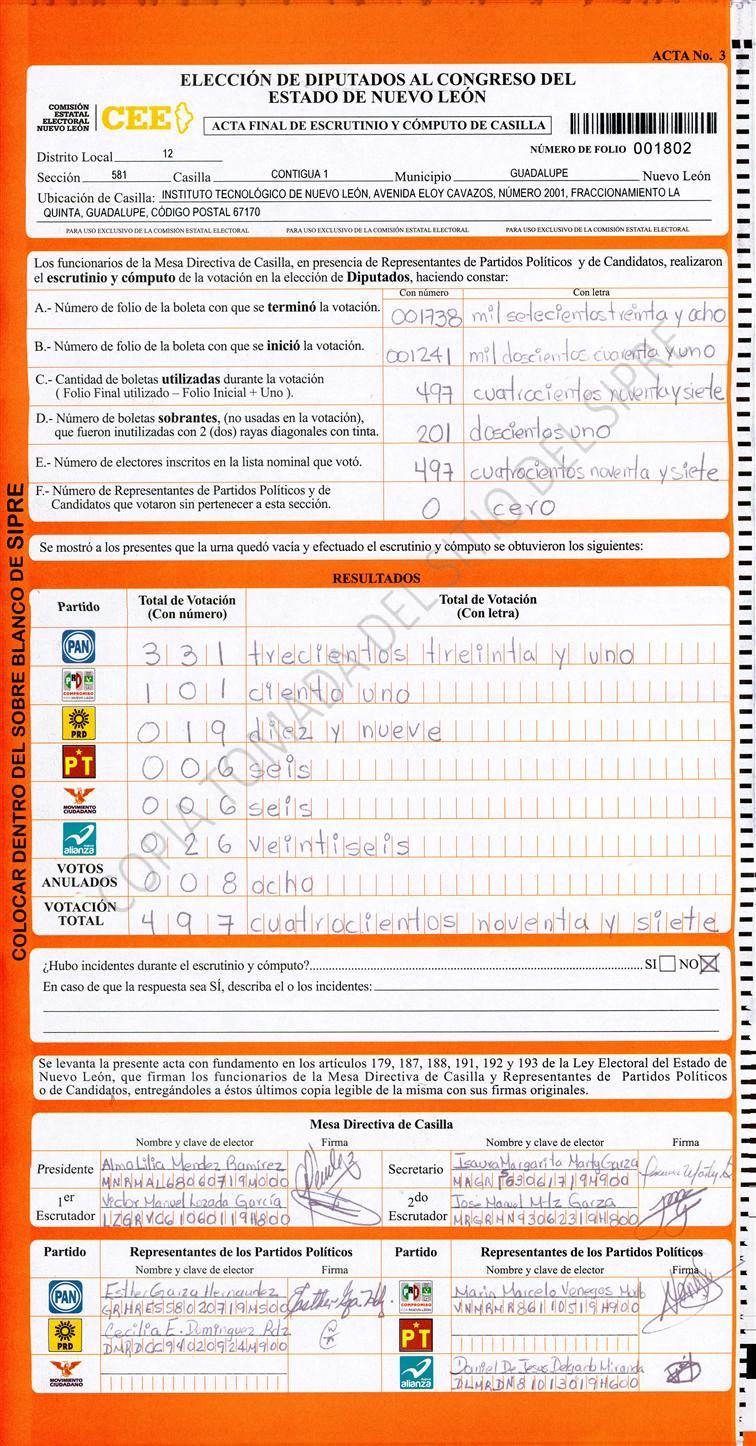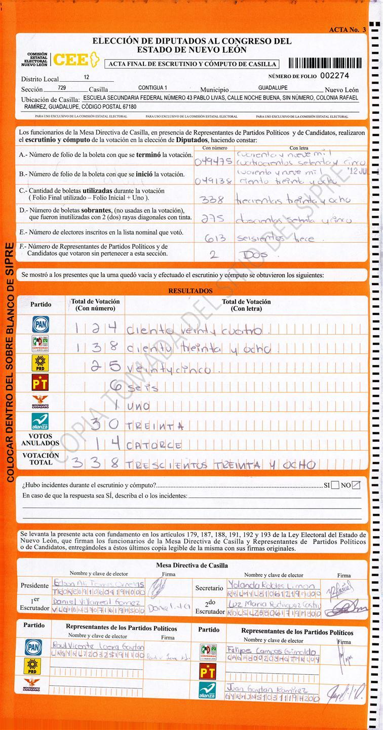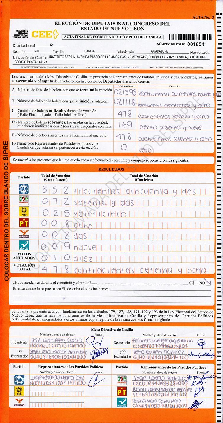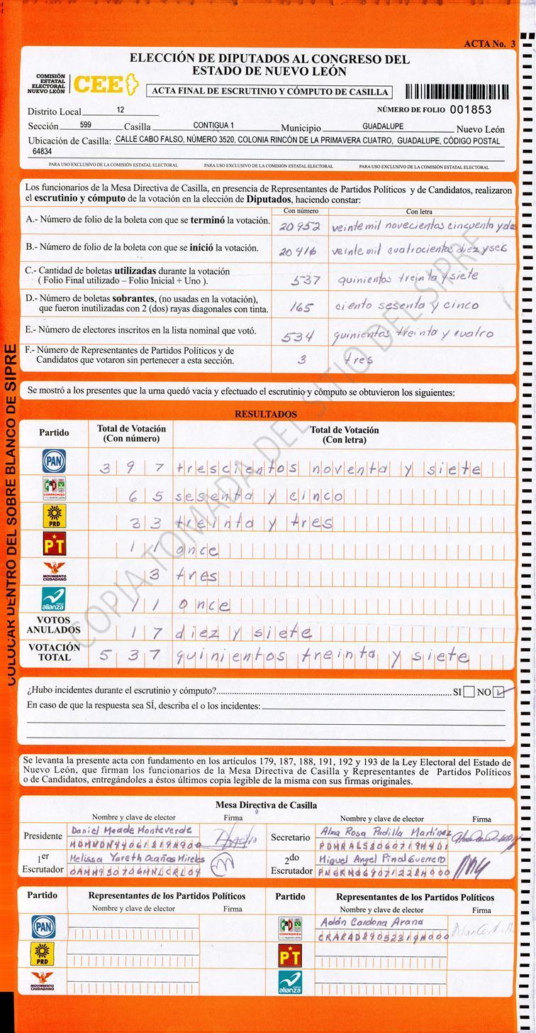, (8) Copiado Movido , (9) Con Signos Inválidos , (10) Excede Lista Nominal , (11) Otra |