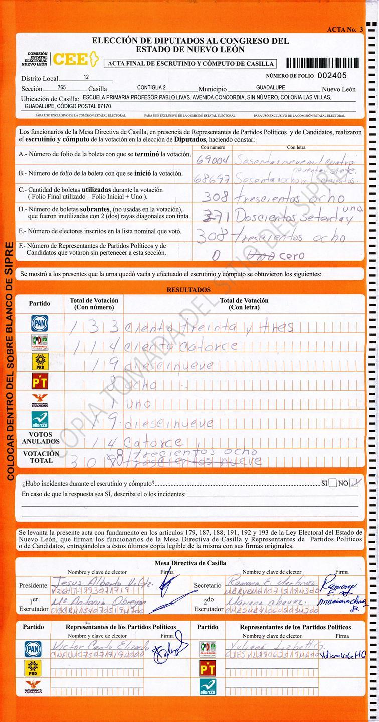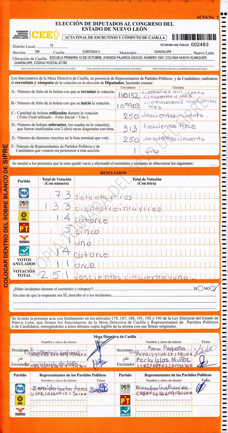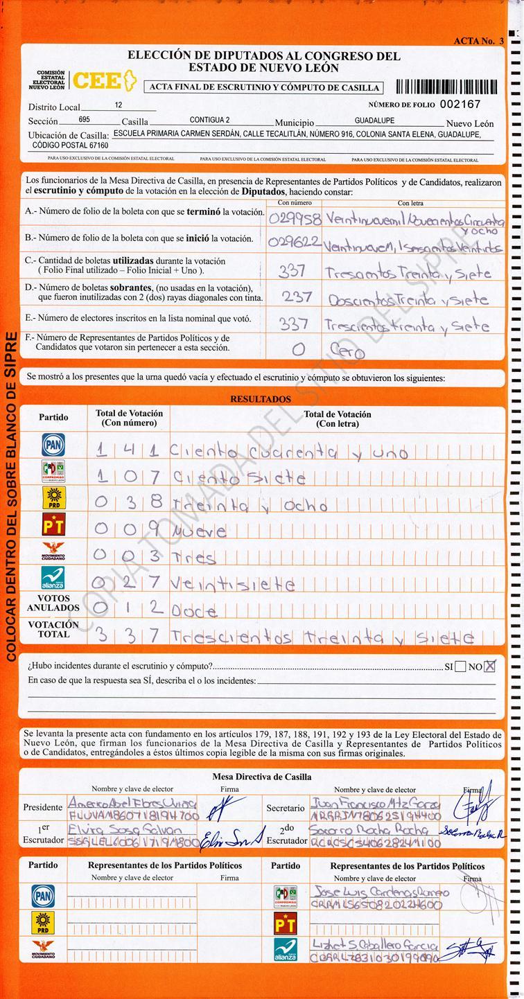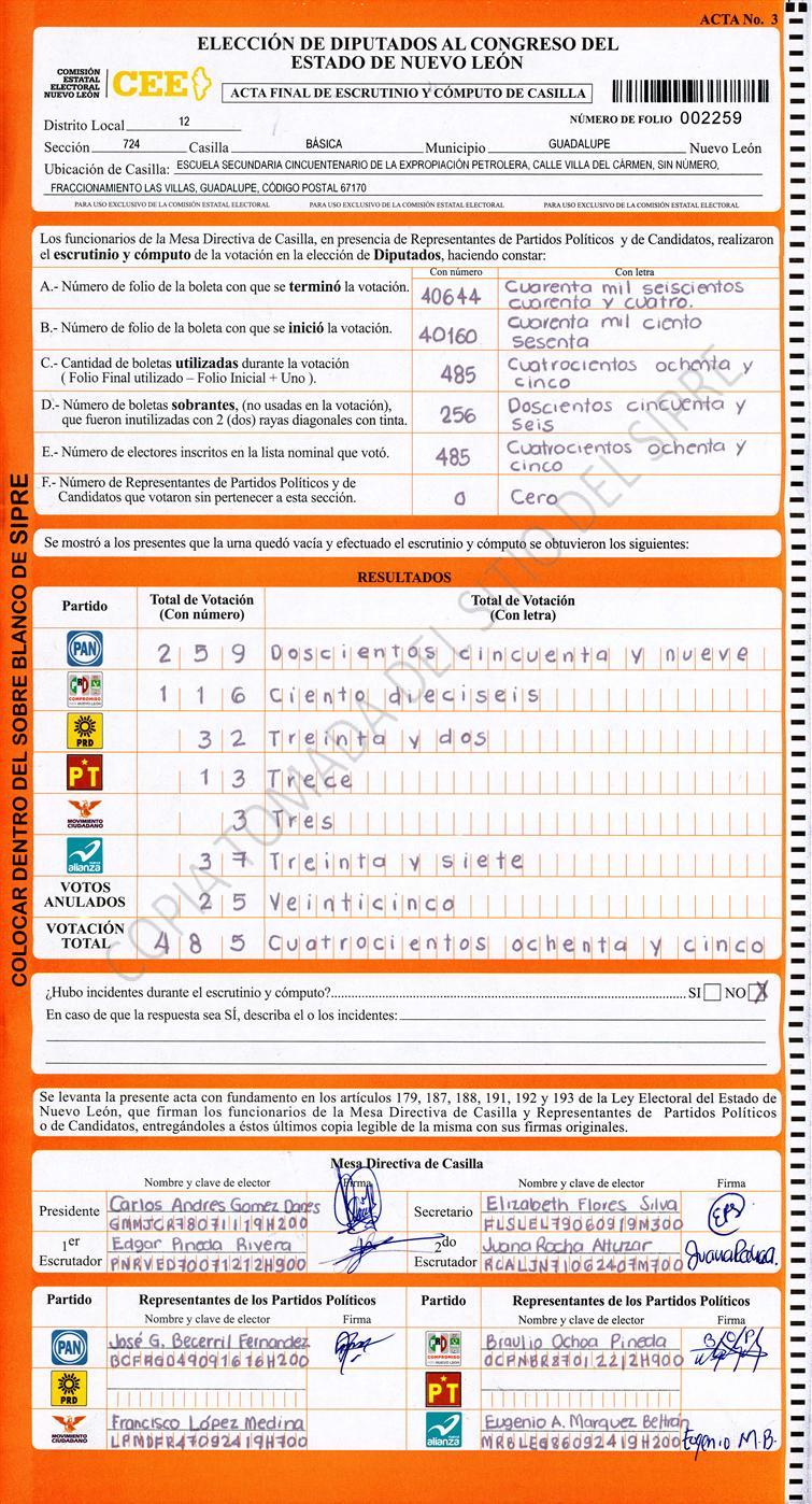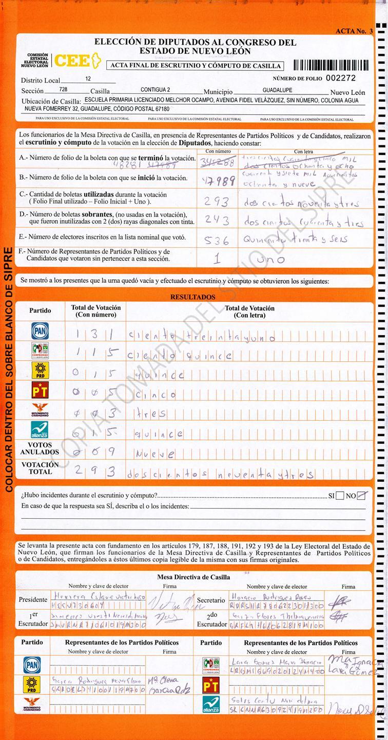 , (8) Copiado Movido , (9) Con Signos Inválidos , (10) Excede Lista Nominal , (11) Otra |