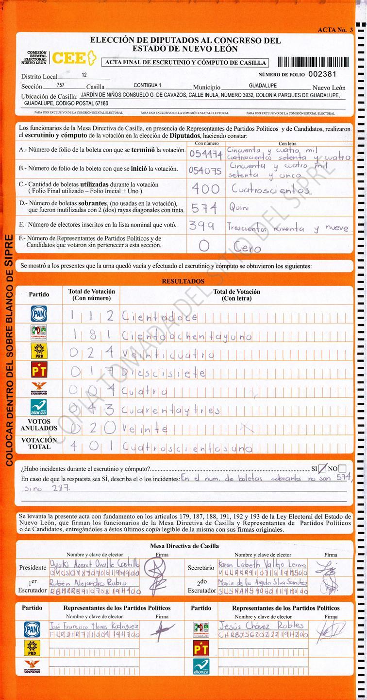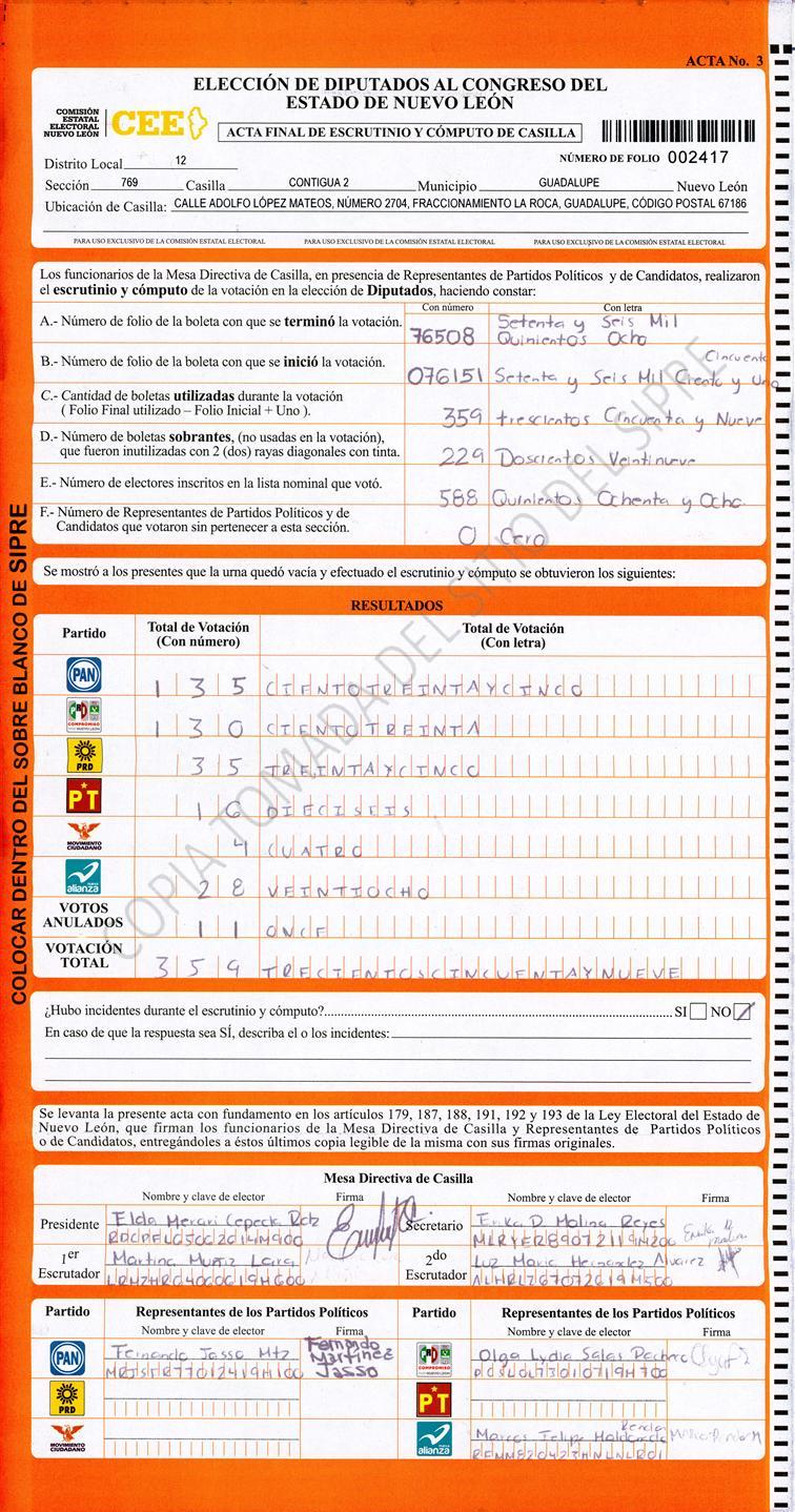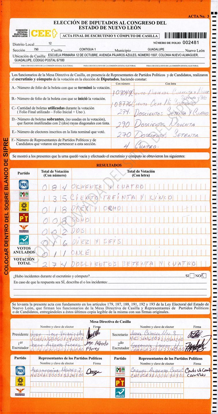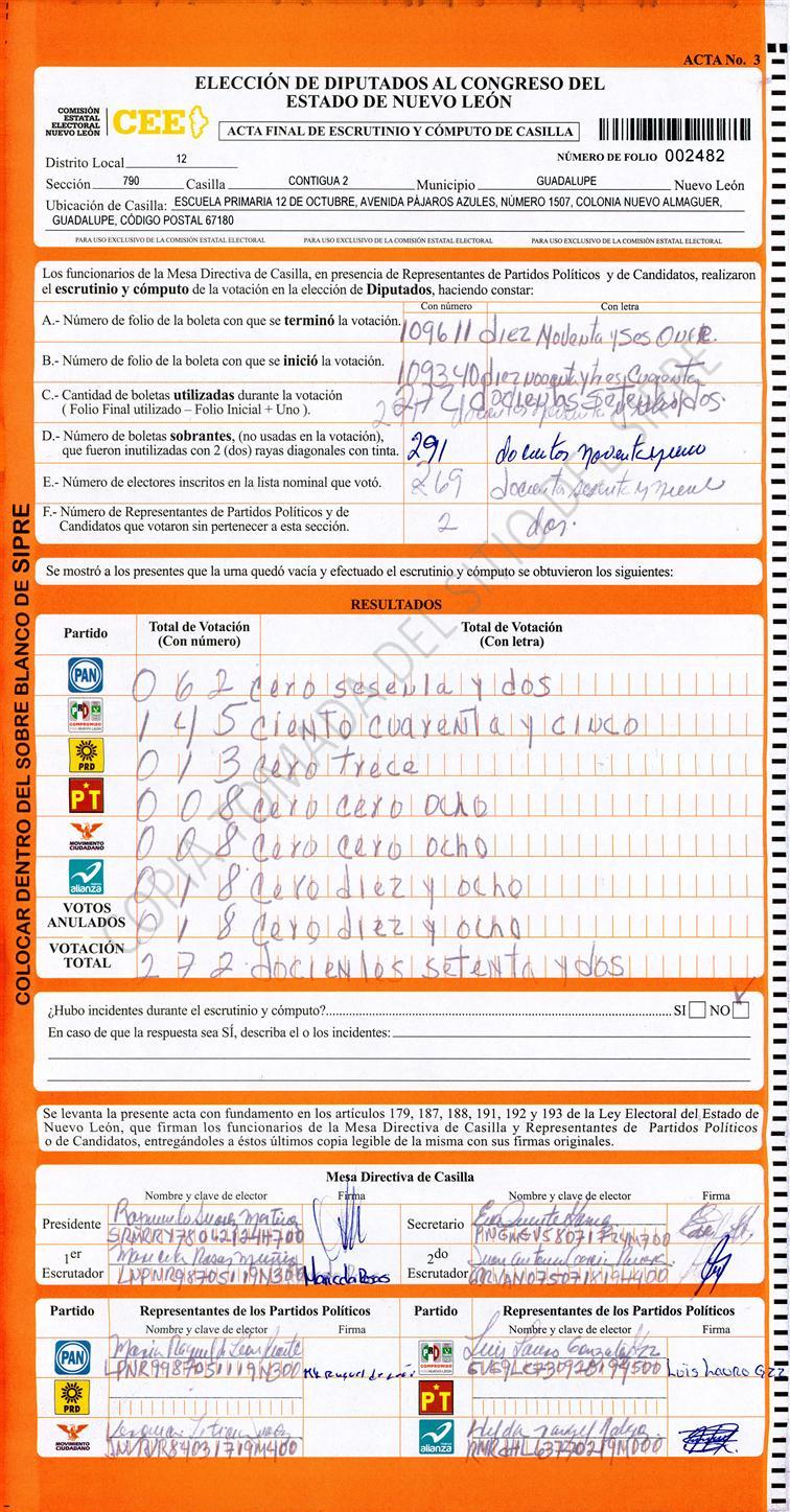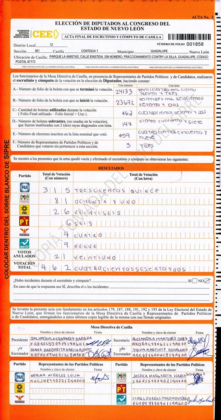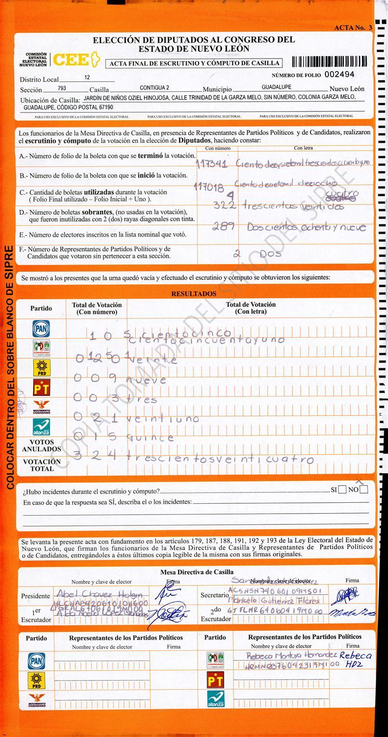 , (8) Copiado Movido , (9) Con Signos Inválidos , (10) Excede Lista Nominal , (11) Otra |