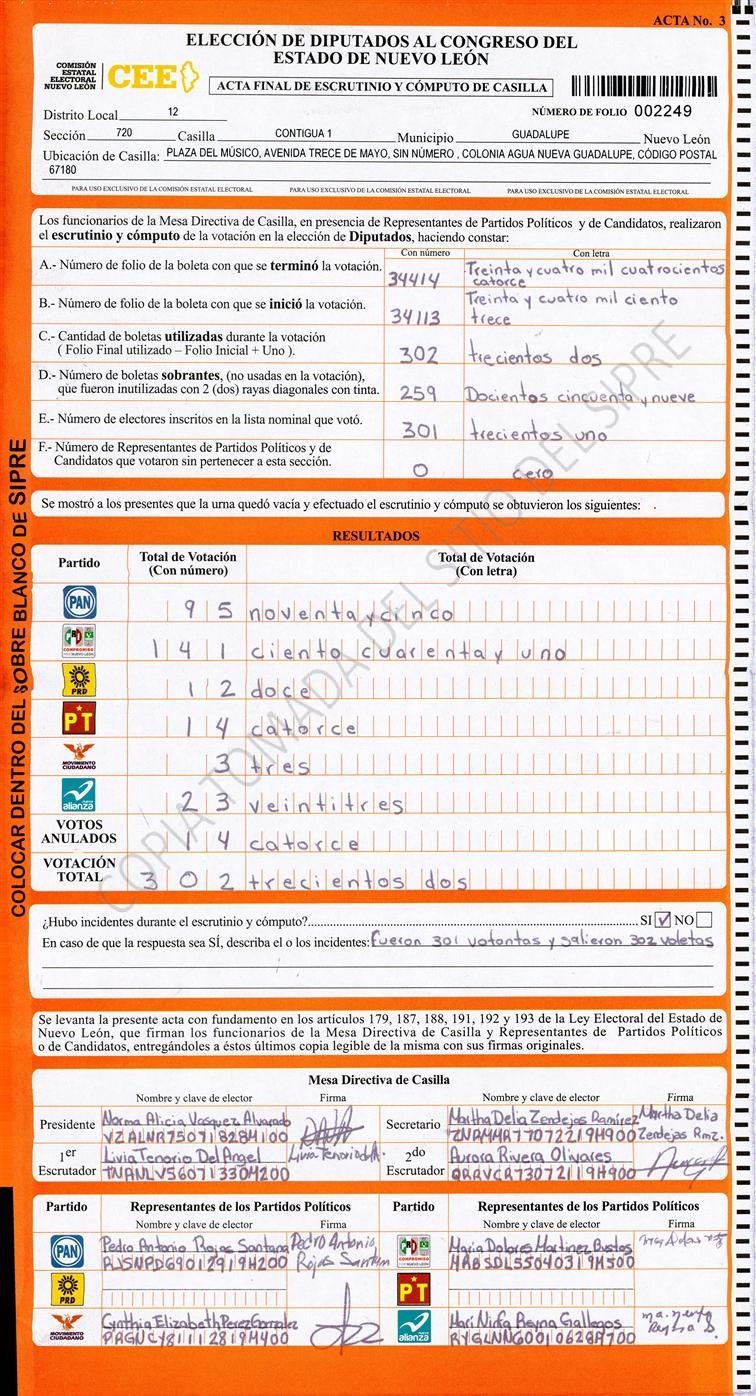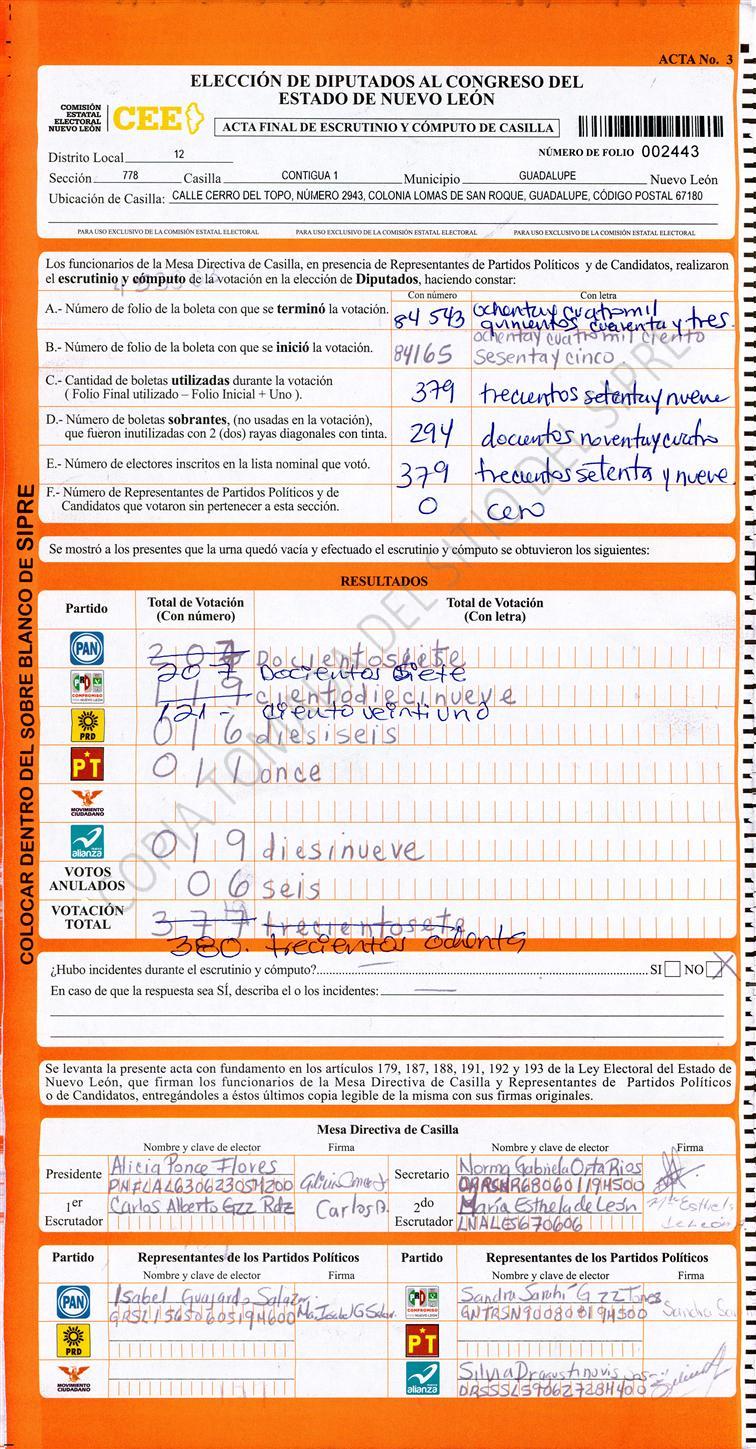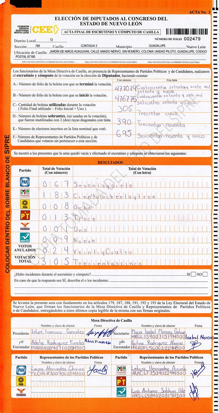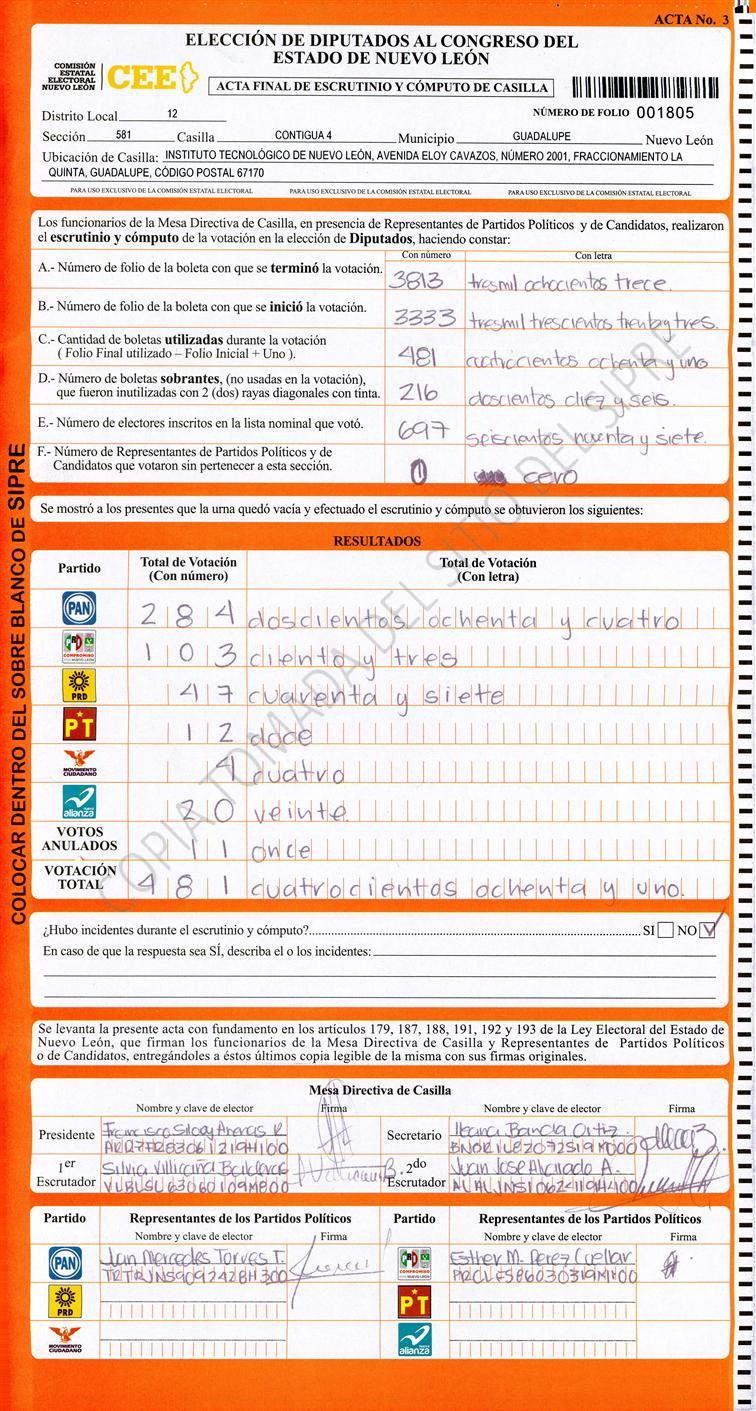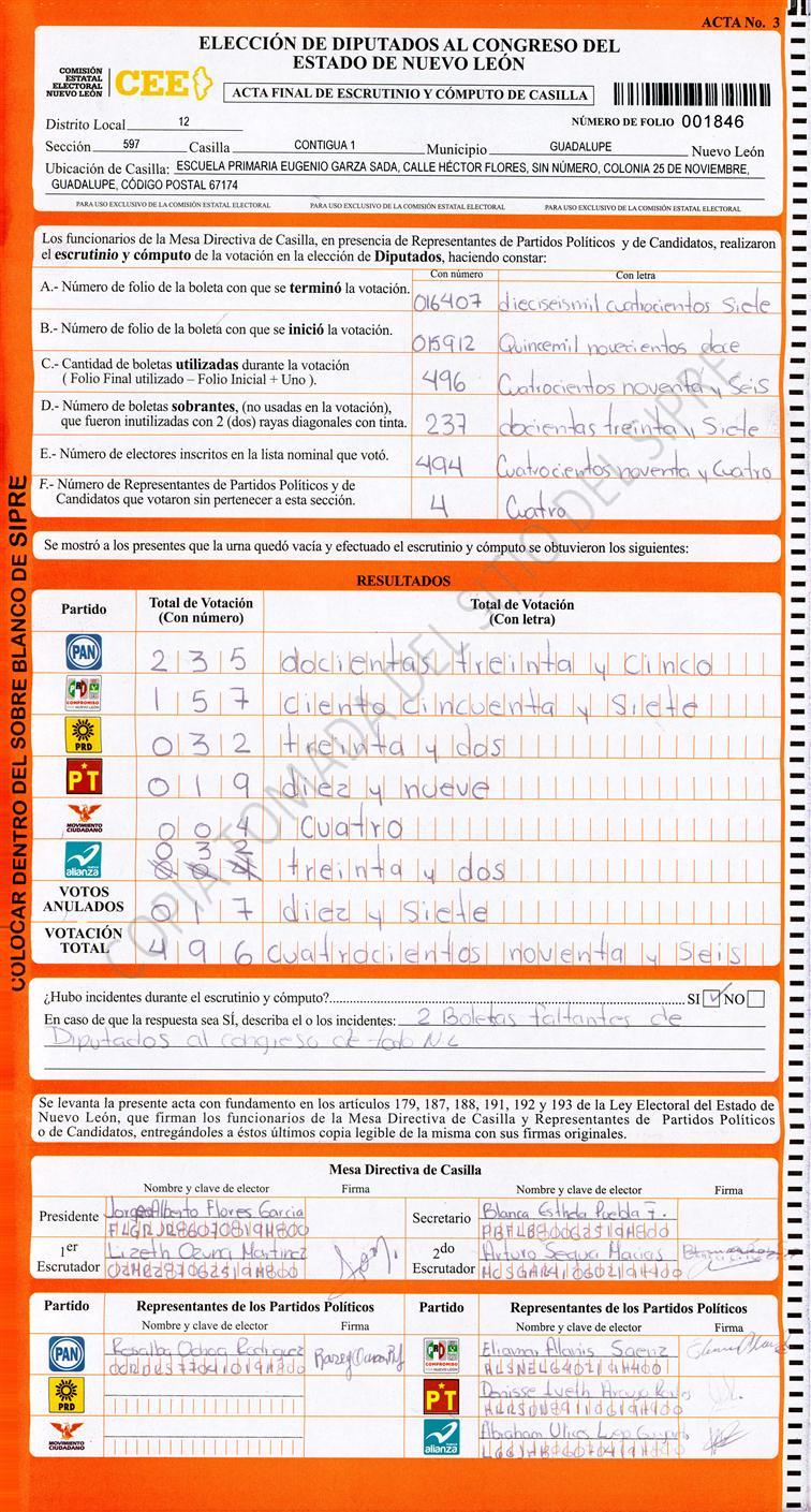 , (8) Copiado Movido , (9) Con Signos Inválidos , (10) Excede Lista Nominal , (11) Otra |