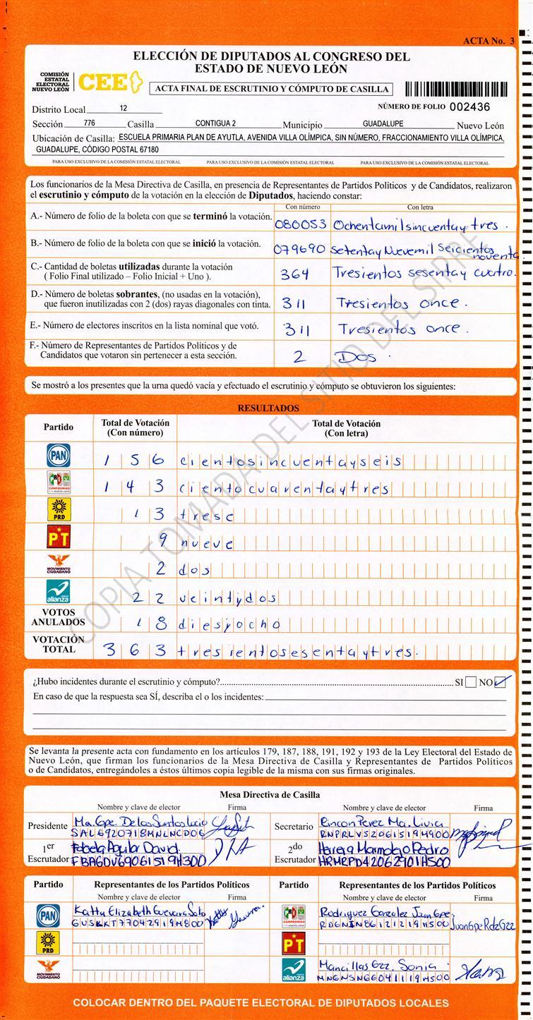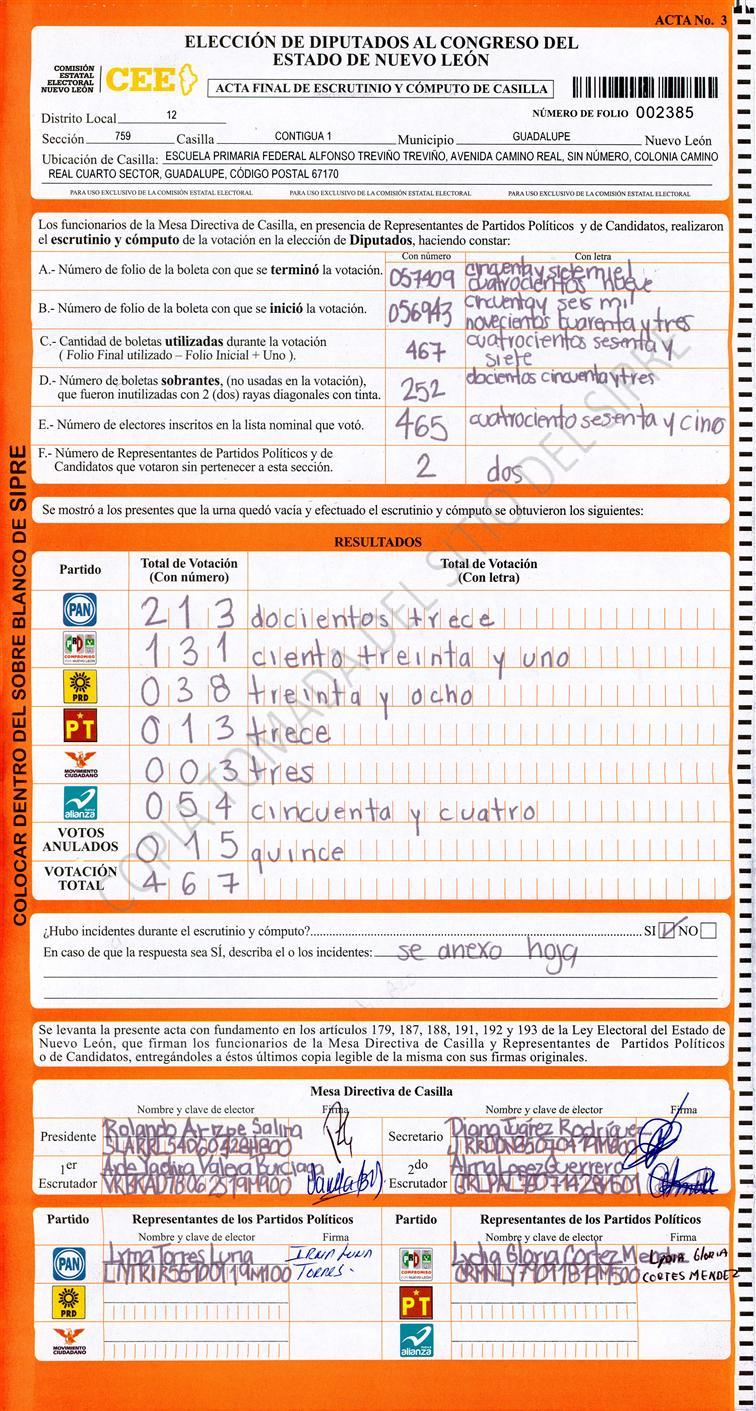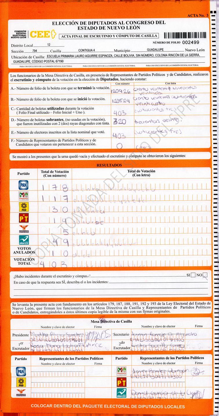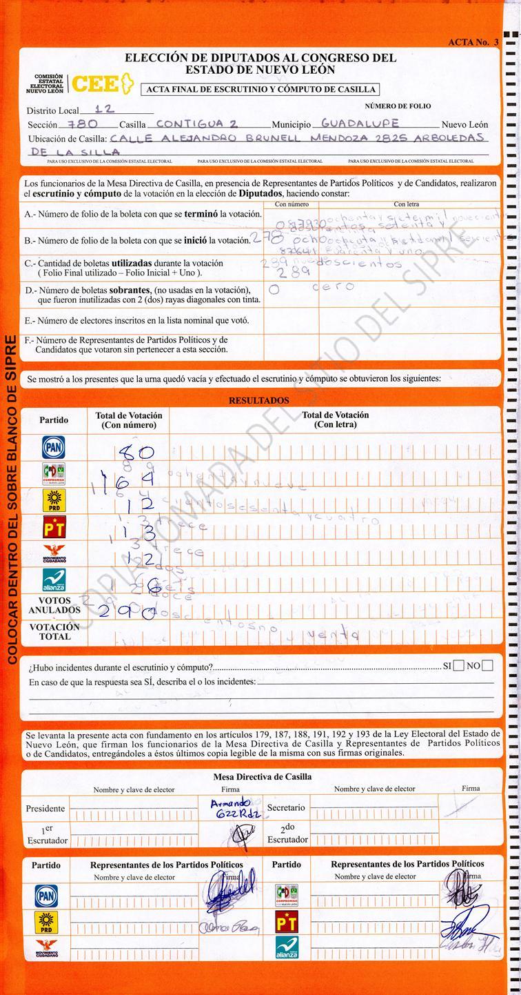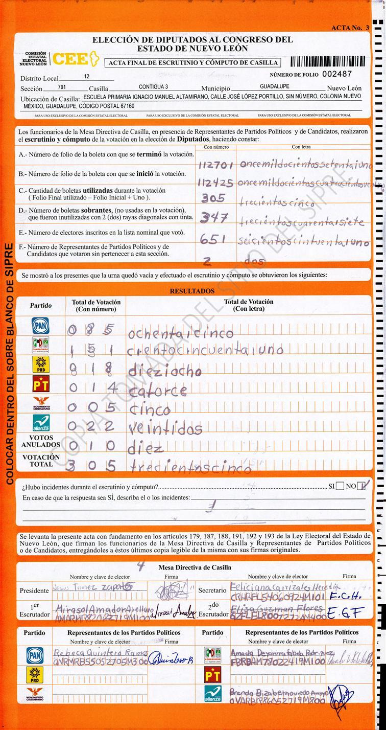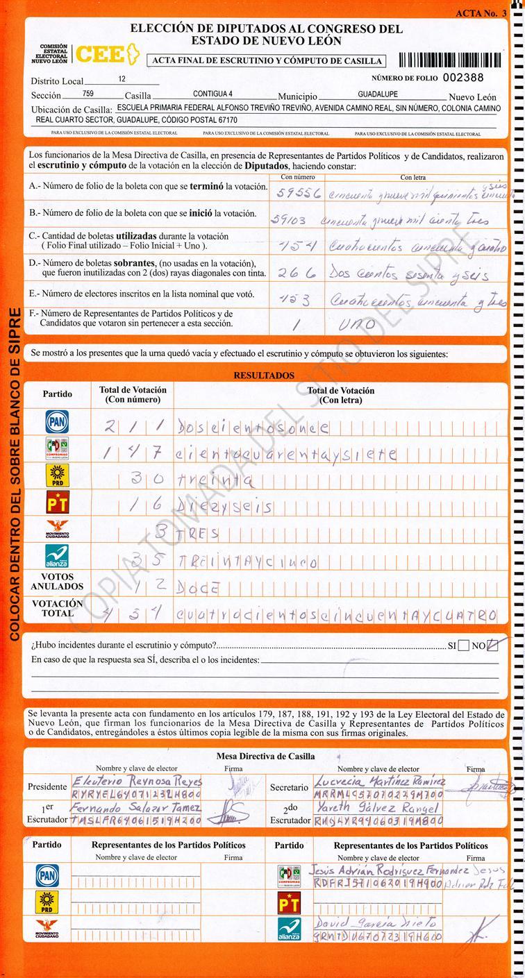, (8) Copiado Movido , (9) Con Signos Inválidos , (10) Excede Lista Nominal , (11) Otra |