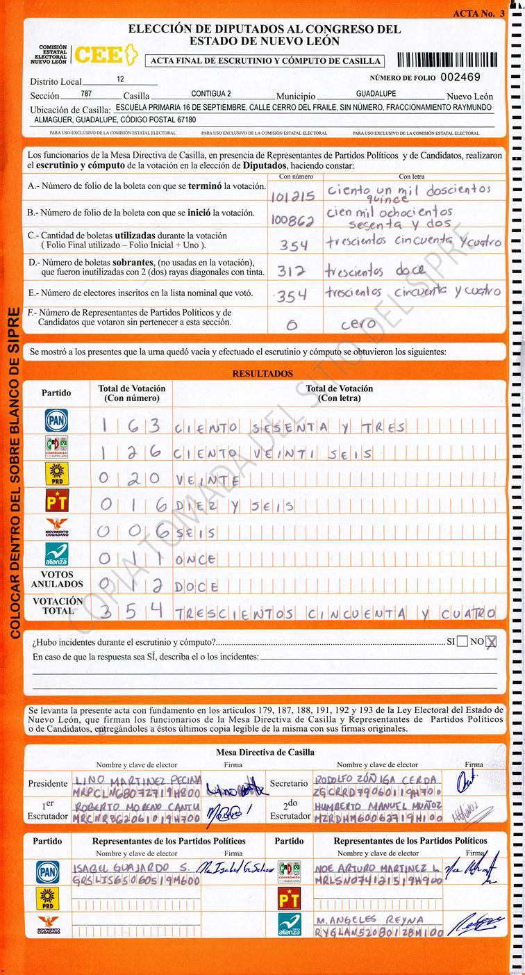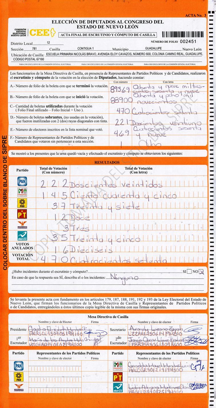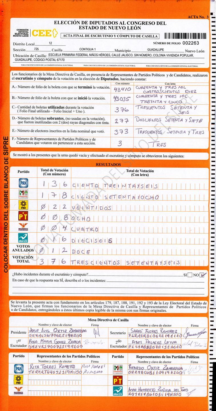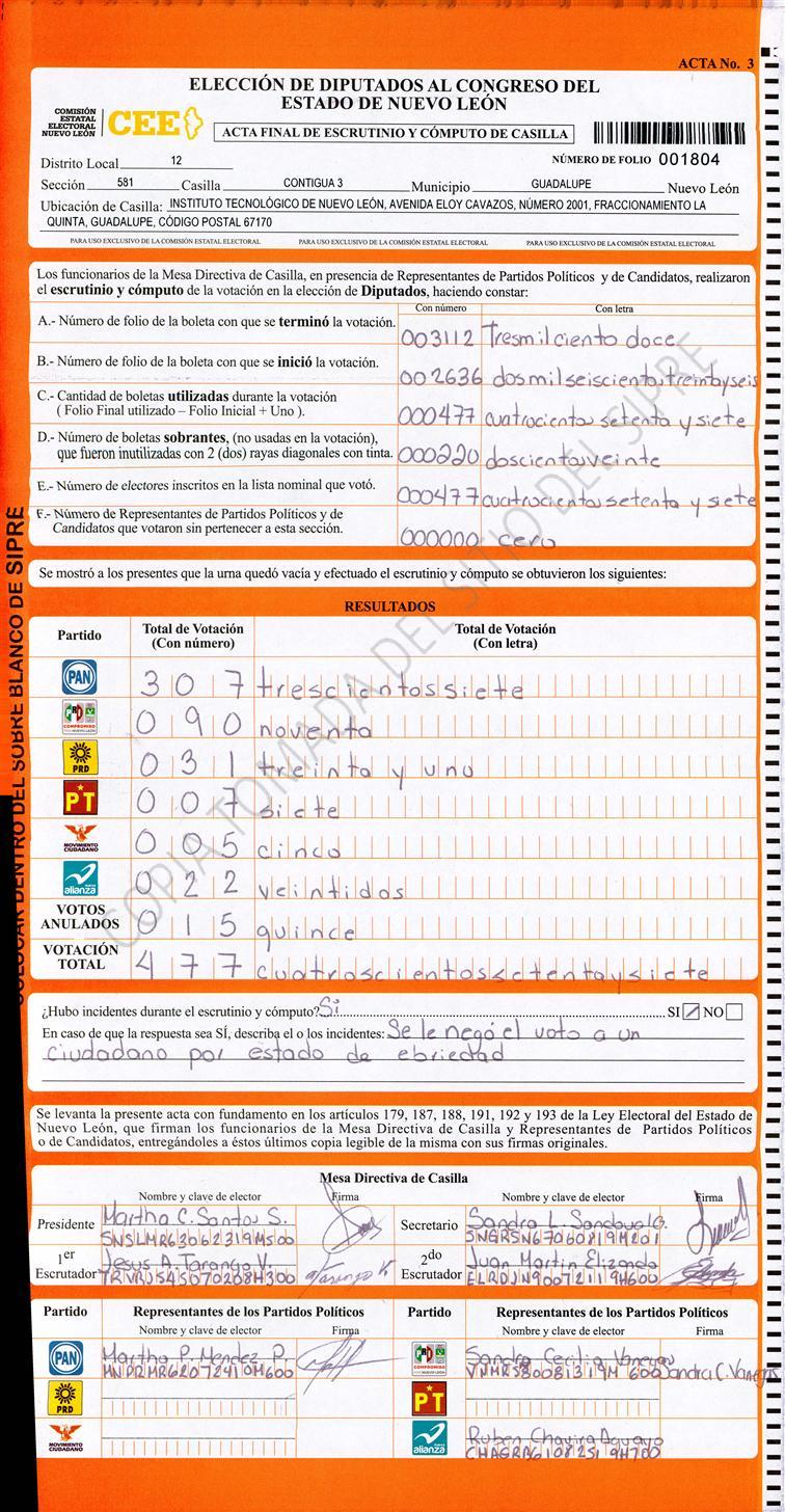 Acta con Incidencia: No hay acta |