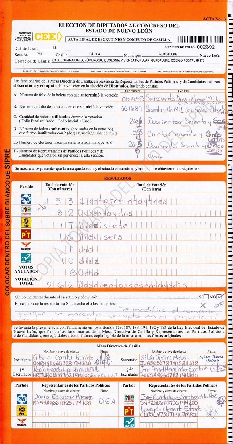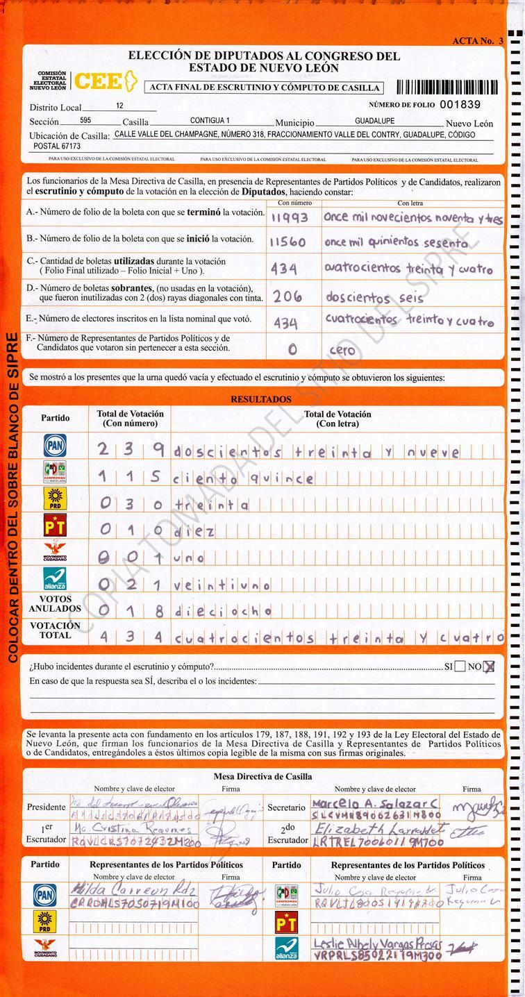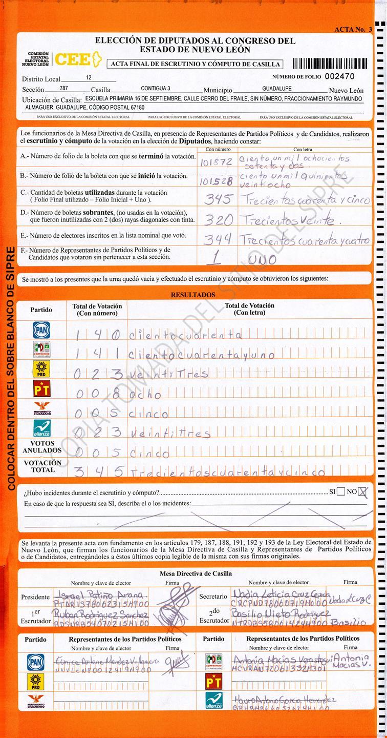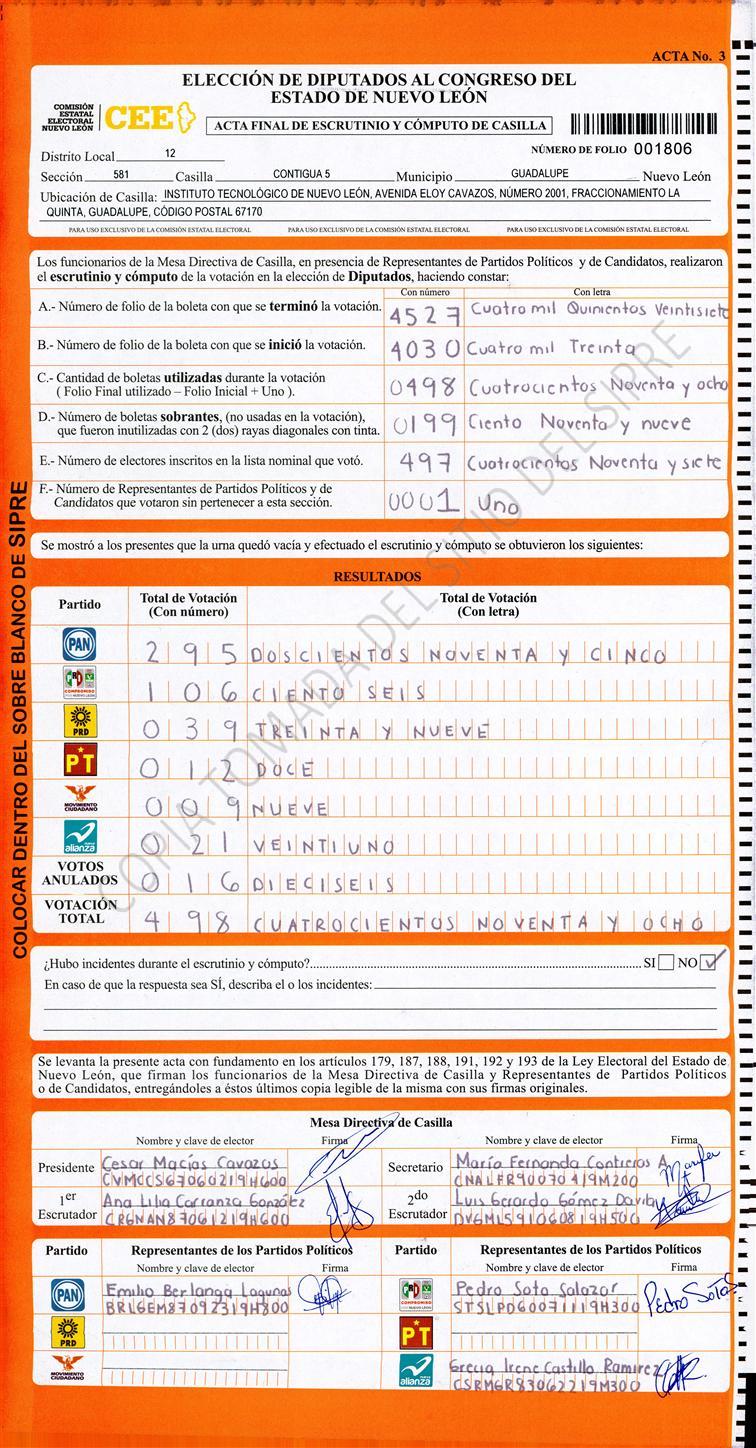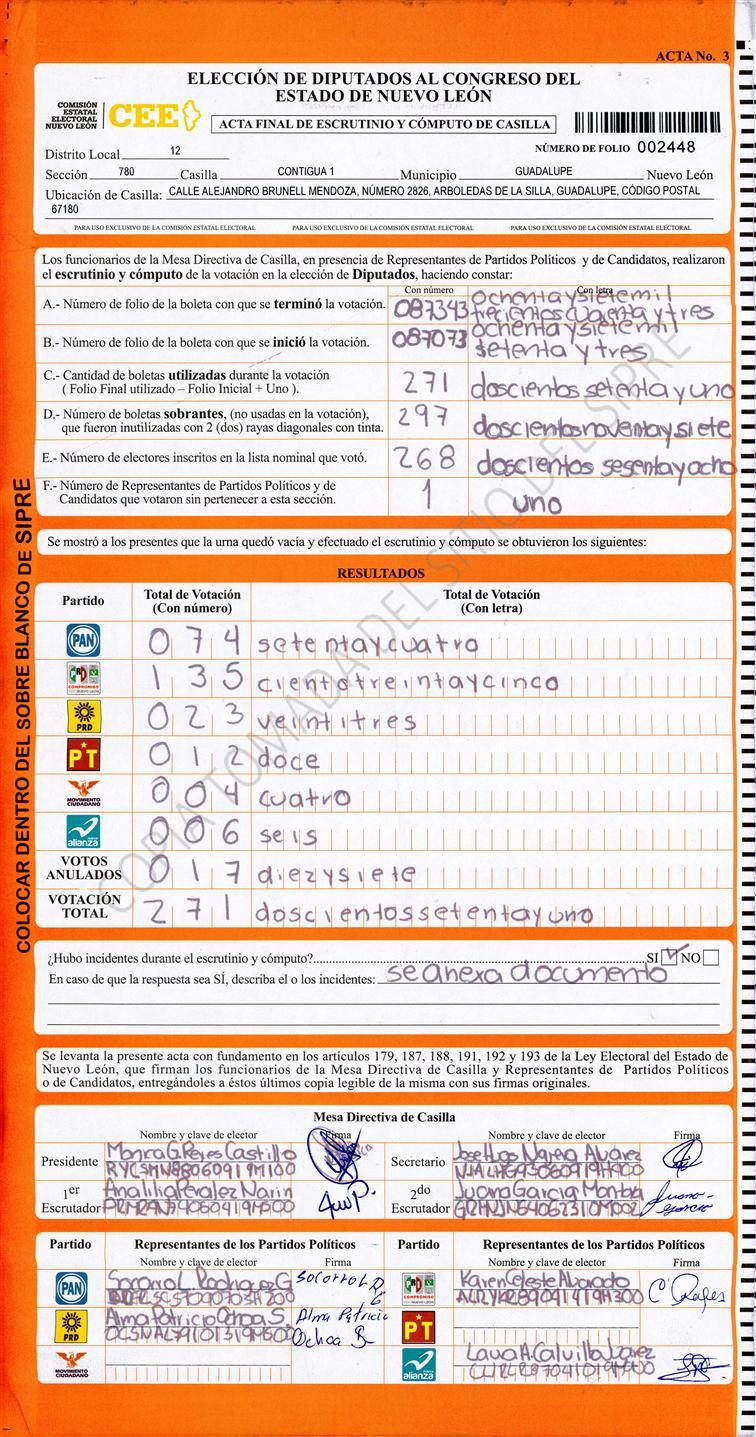 Acta con Incidencia: No hay acta |